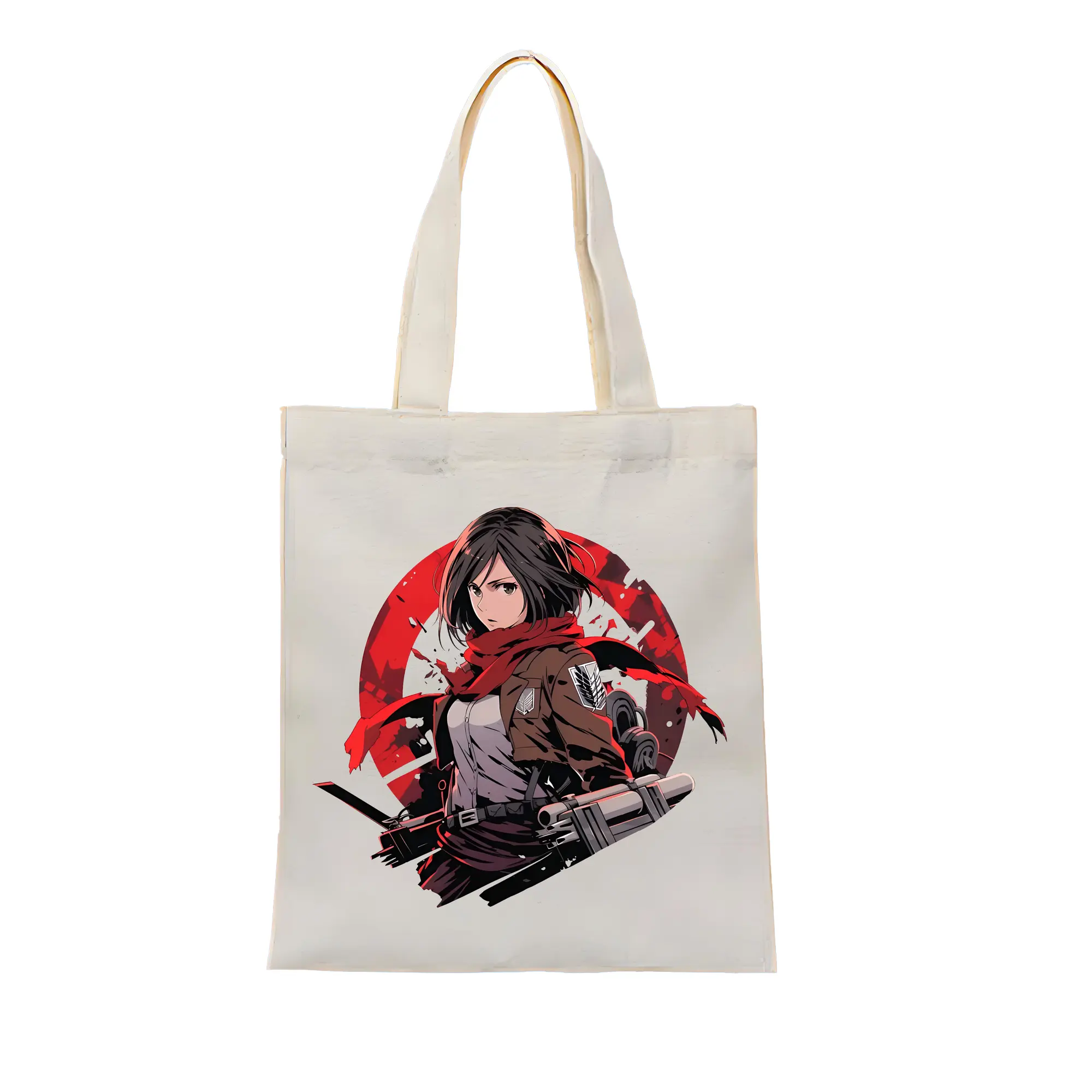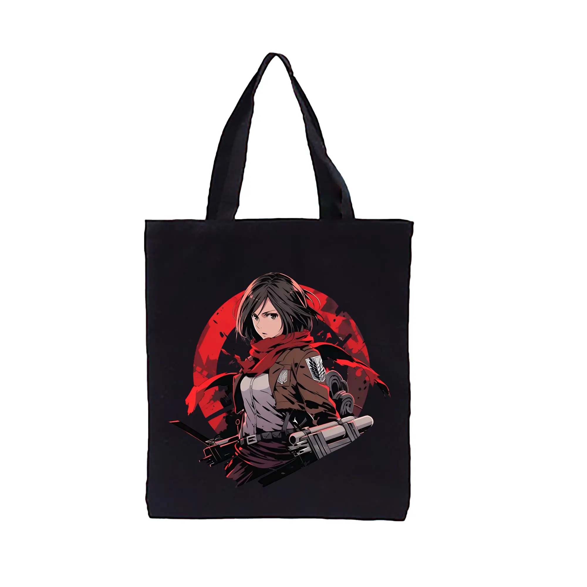 進撃の巨人 グッズ ミカサ・アッカーマン - 縦型キャンバス手提げバッグ(トートバッグ) ・ キャンバス素材 ・ ショッピング用 ・ 軽量 丈夫 お手入れ簡単