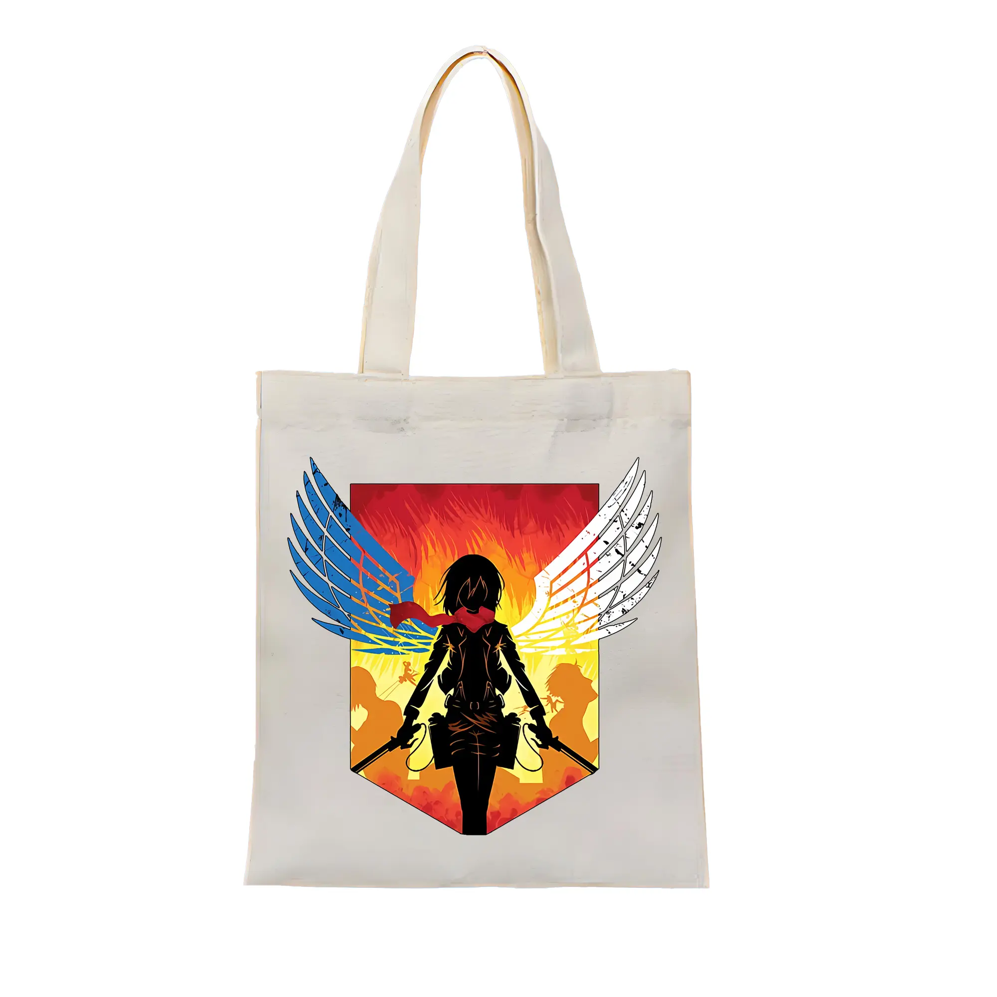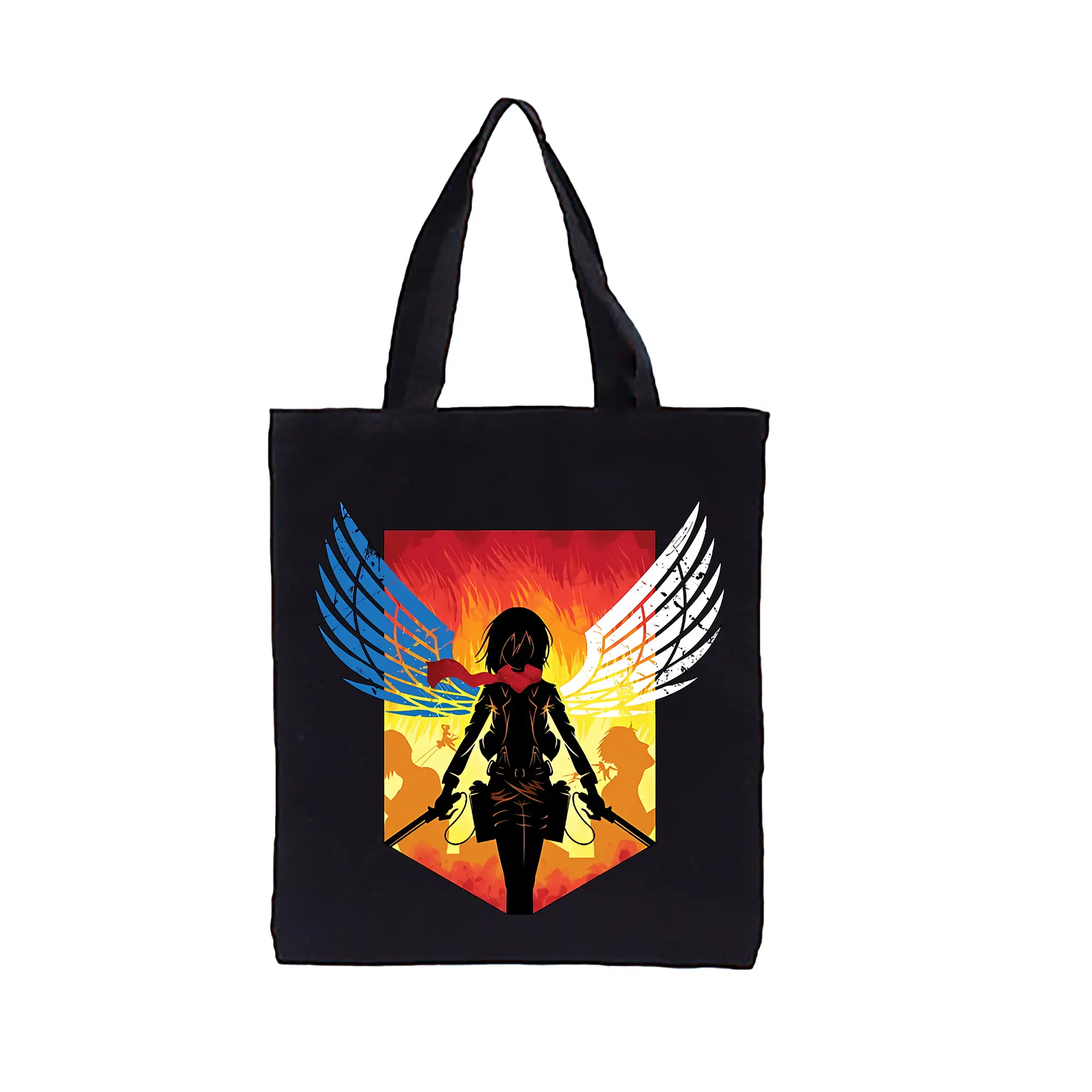進撃の巨人 グッズ ミカサ・アッカーマン - 縦型キャンバス手提げバッグ(トートバッグ) ・ キャンバス素材 ・ ショッピング用 ・ 軽量 丈夫 お手入れ簡単
