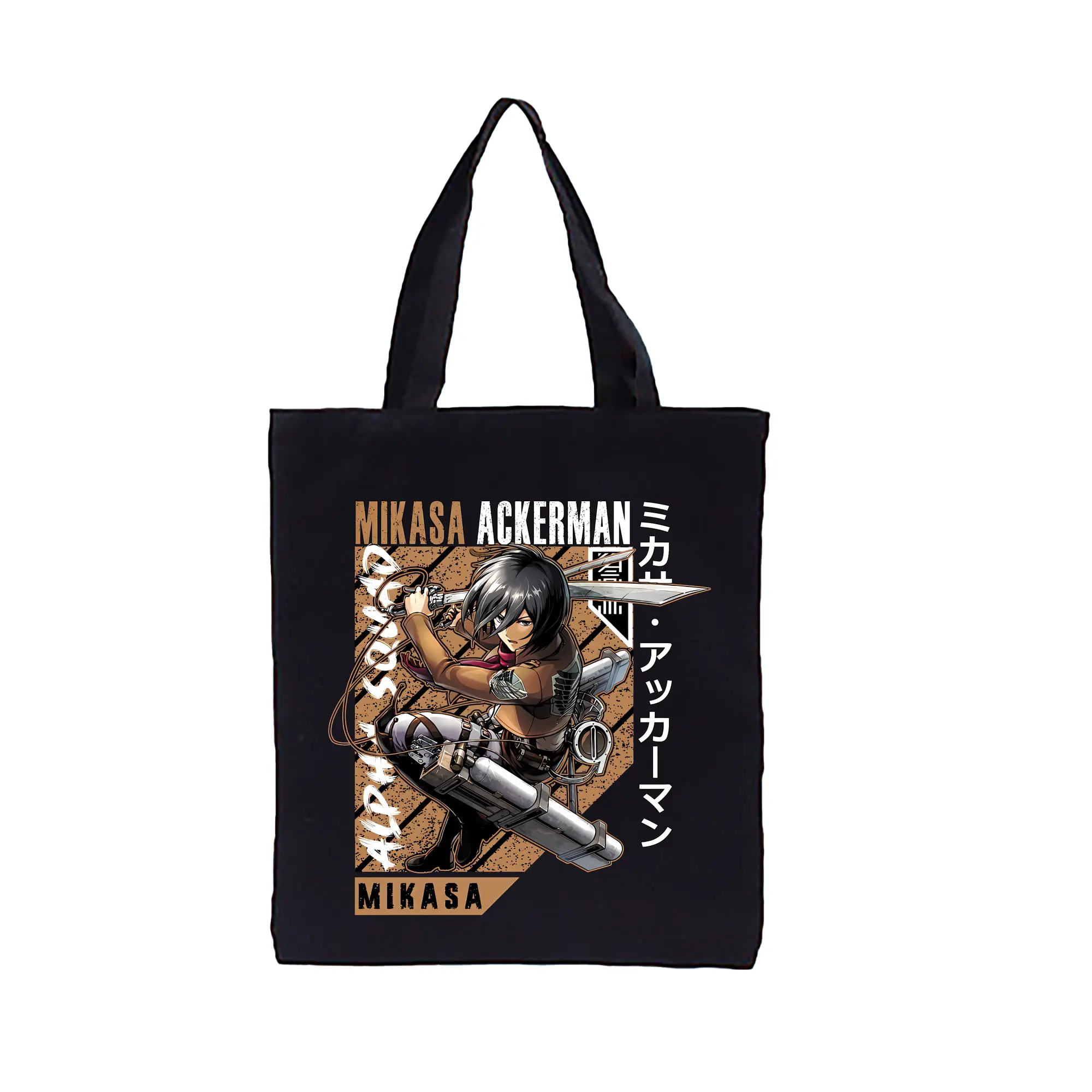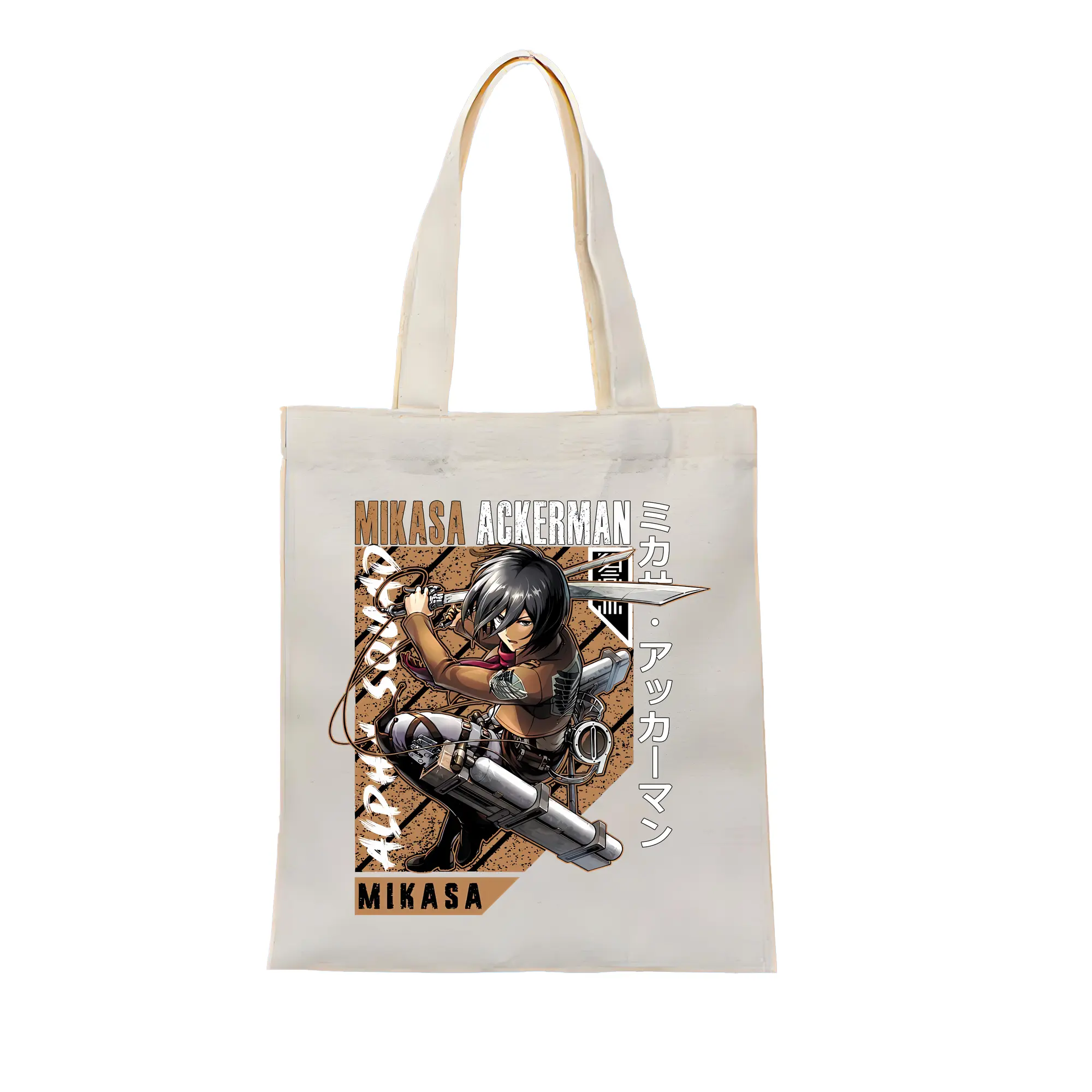 進撃の巨人 グッズ ミカサ・アッカーマン - 縦型キャンバス手提げバッグ(トートバッグ) ・ キャンバス素材 ・ ショッピング用 ・ 軽量 丈夫 お手入れ簡単