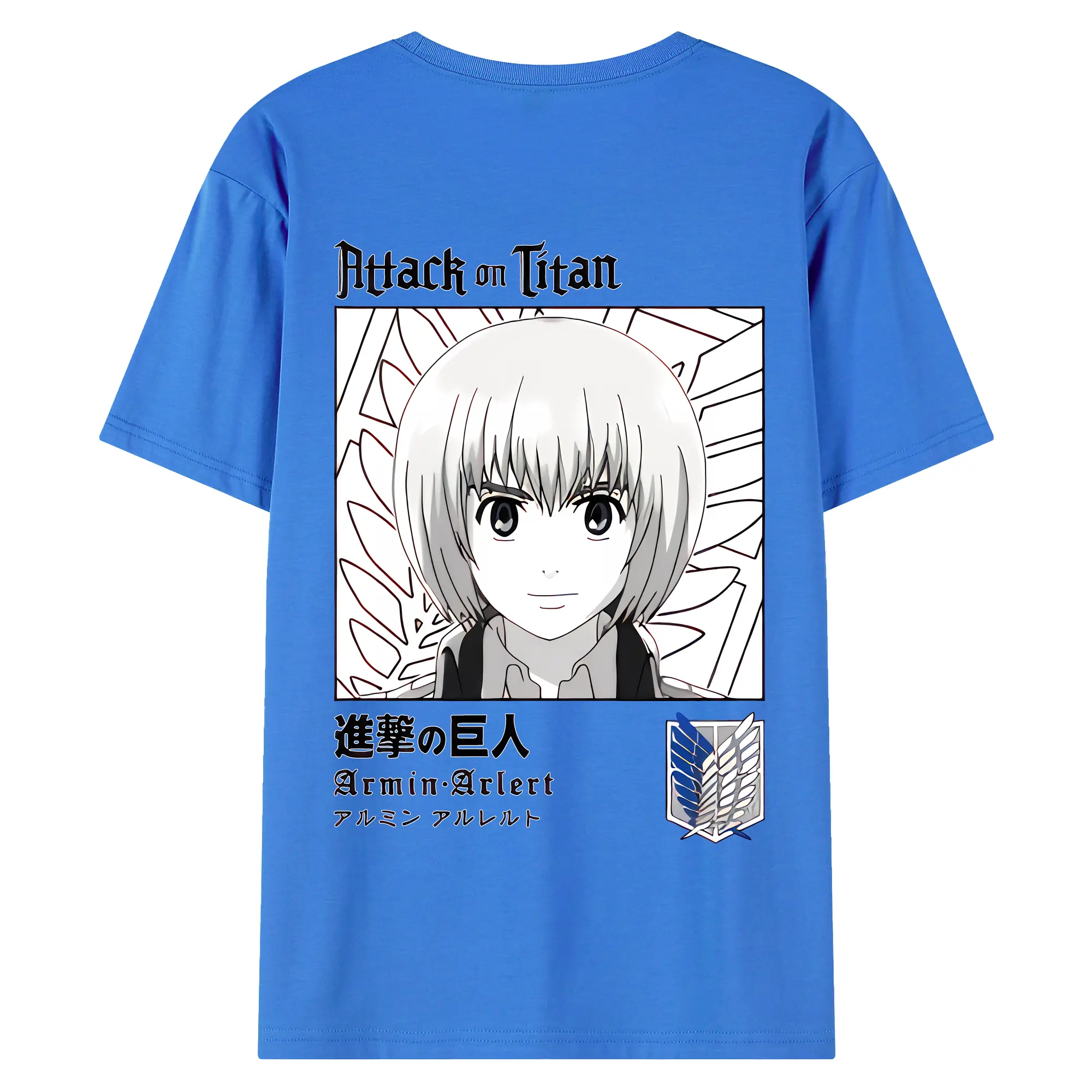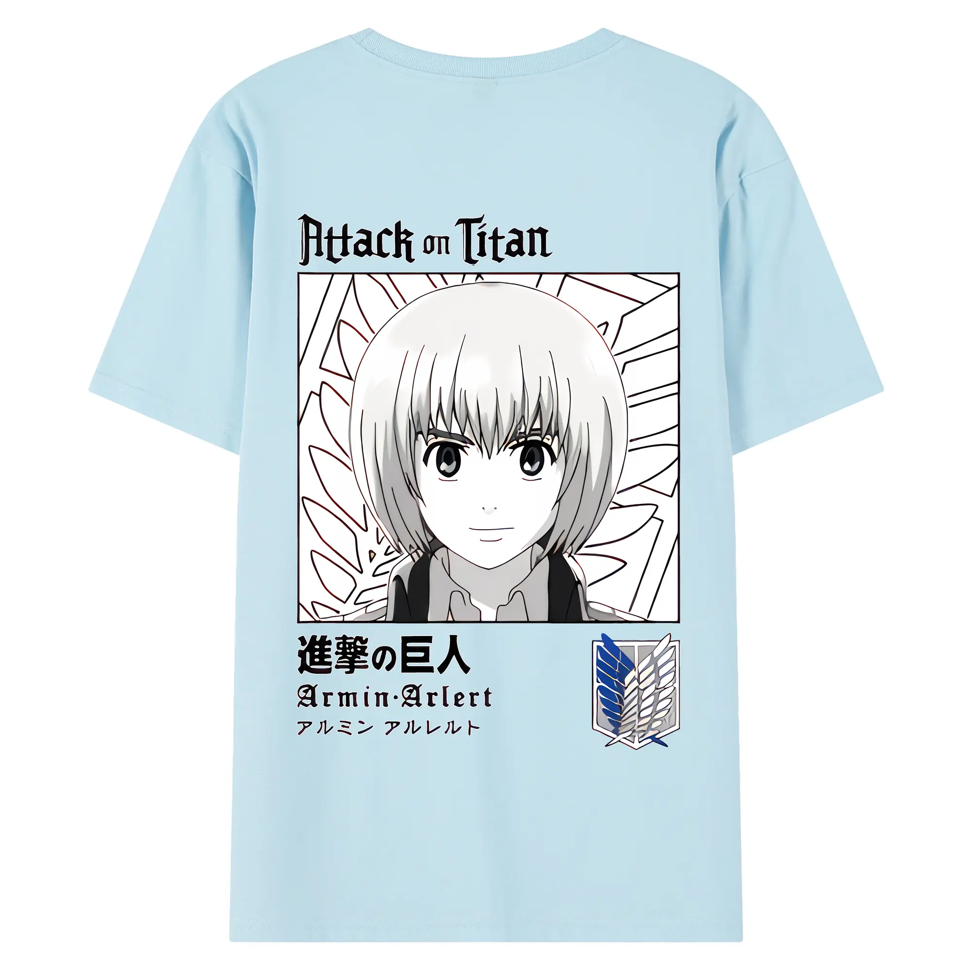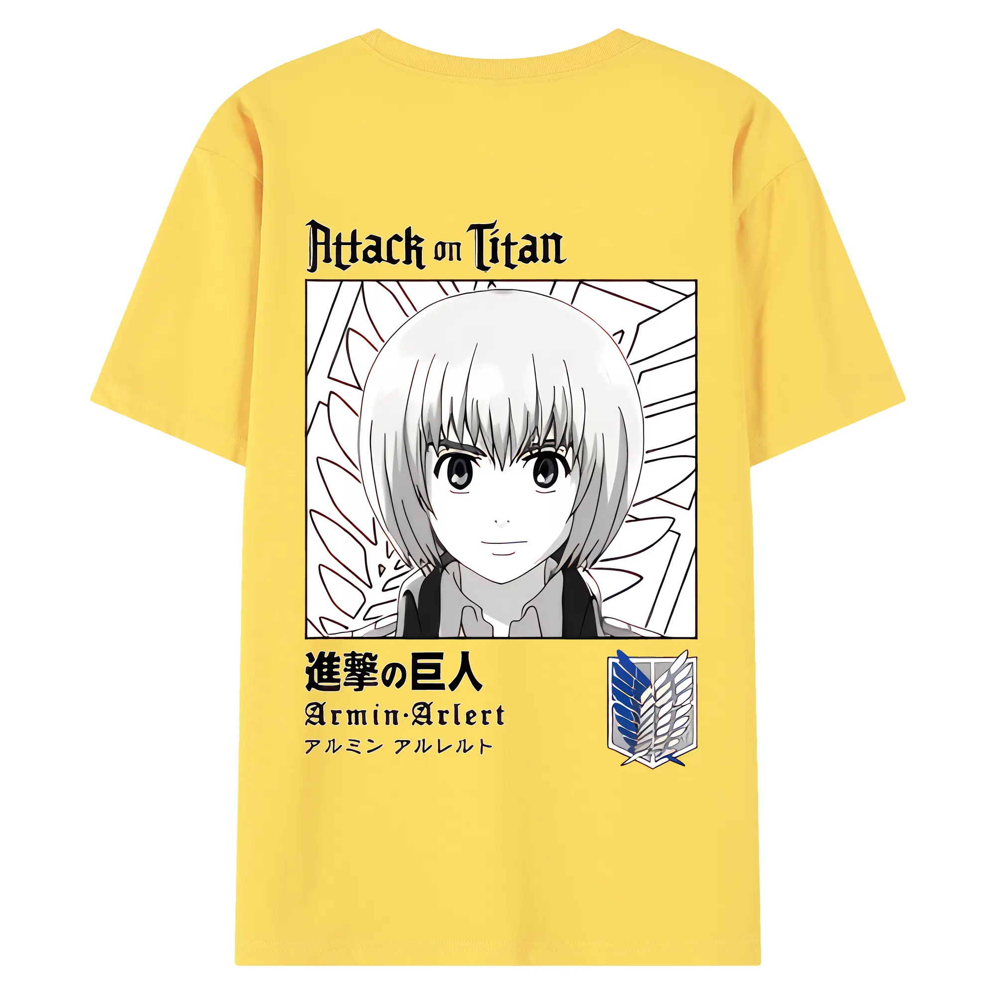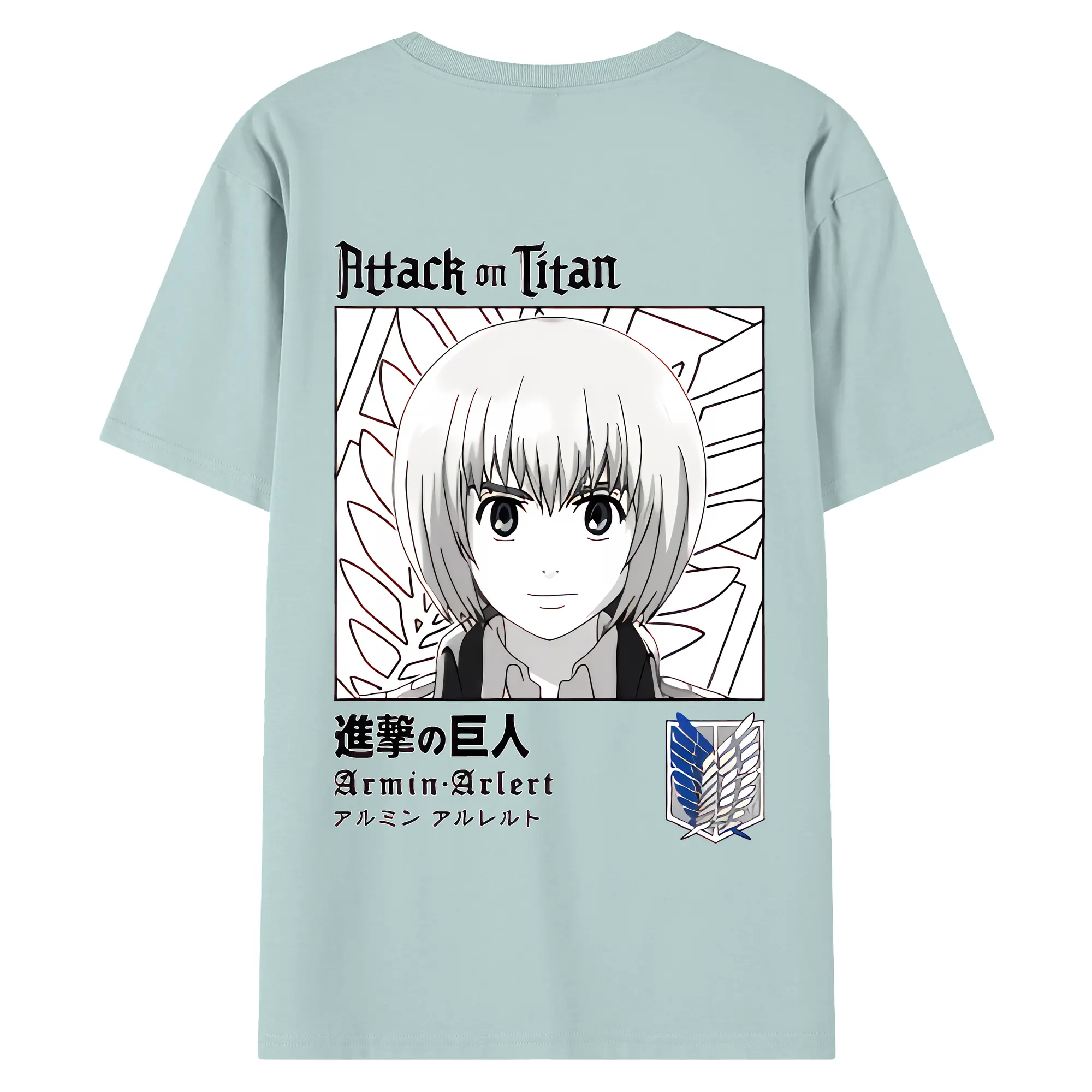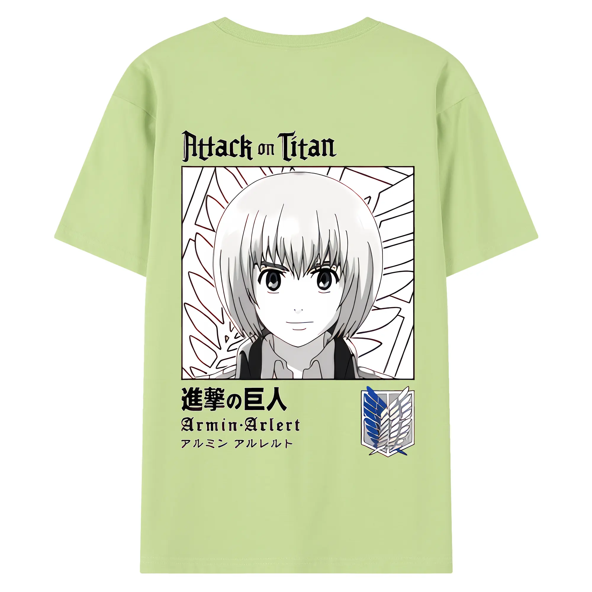 進撃の巨人 グッズ アルミン・アルレルト - 綿100% ヴィンテージ風 半袖Tシャツ ・ 背面プリント ・ 柔らか肌触り ・ 通気性 快適 ・ スポーツ カジュアル 外出用