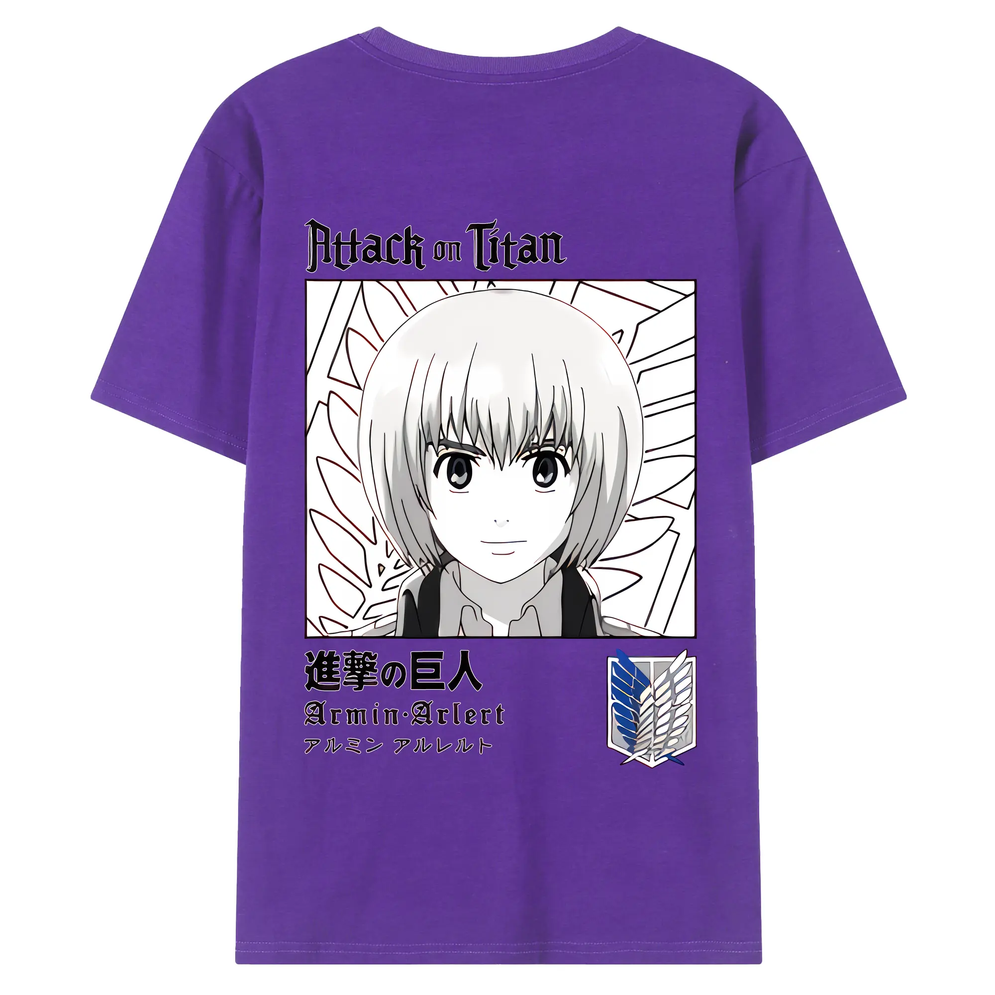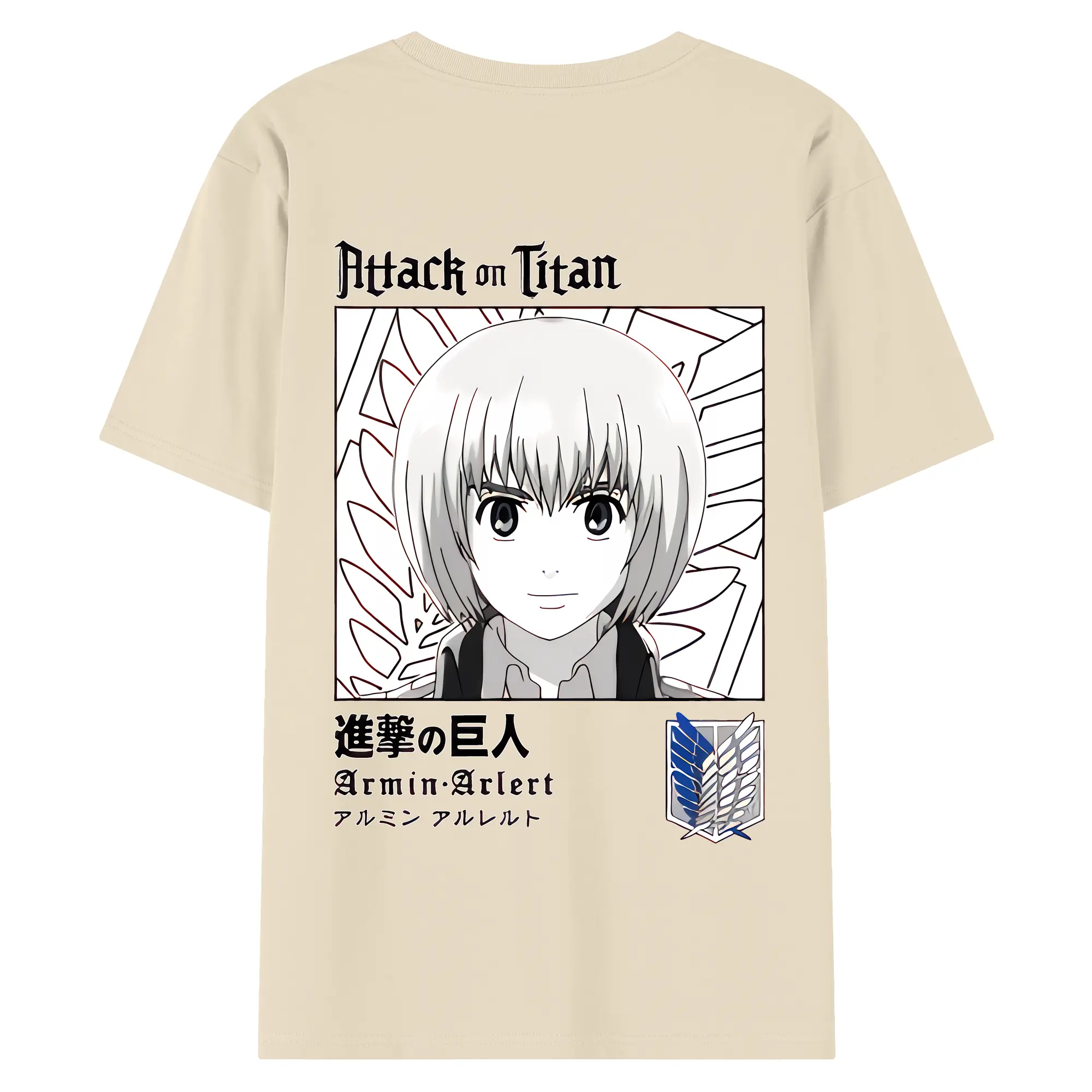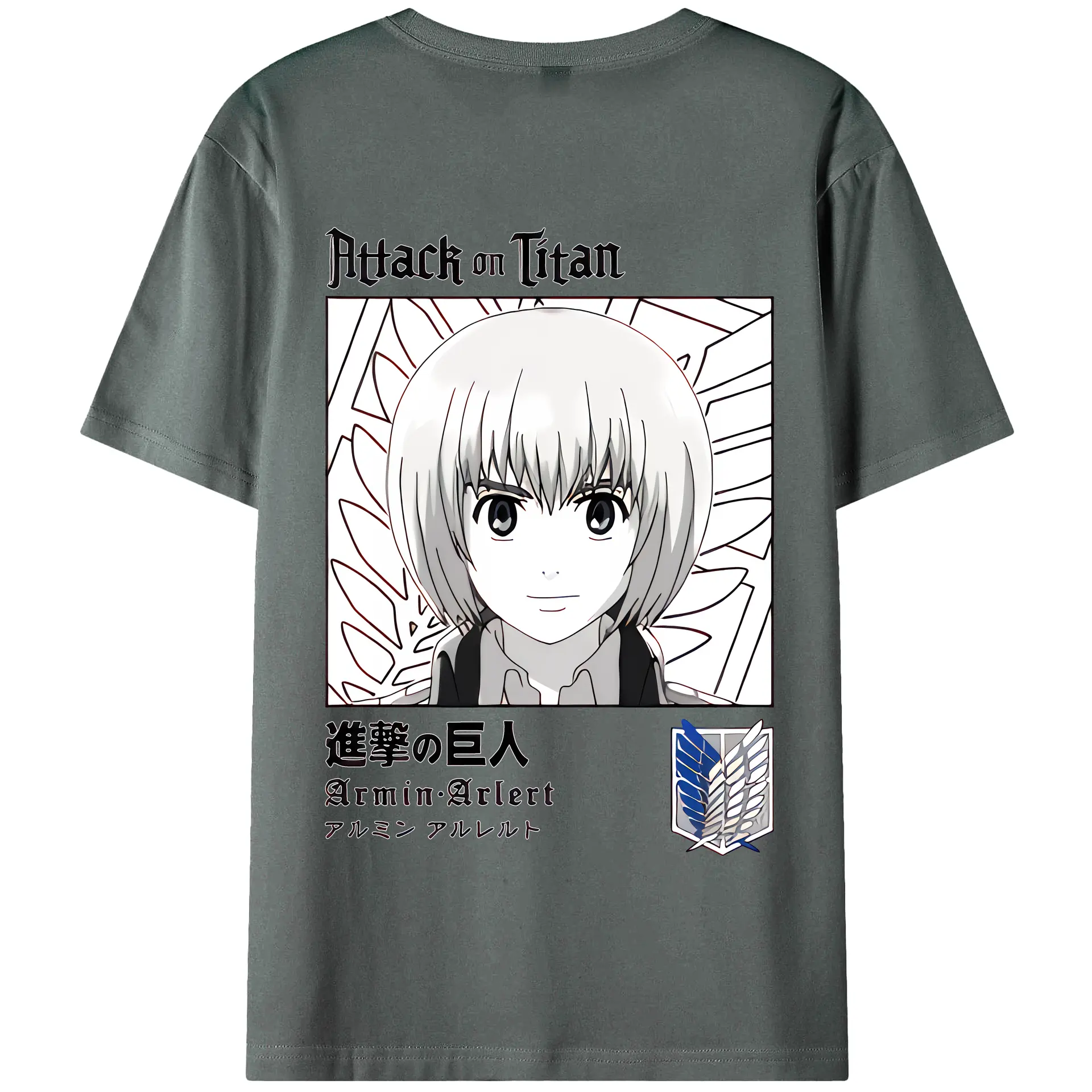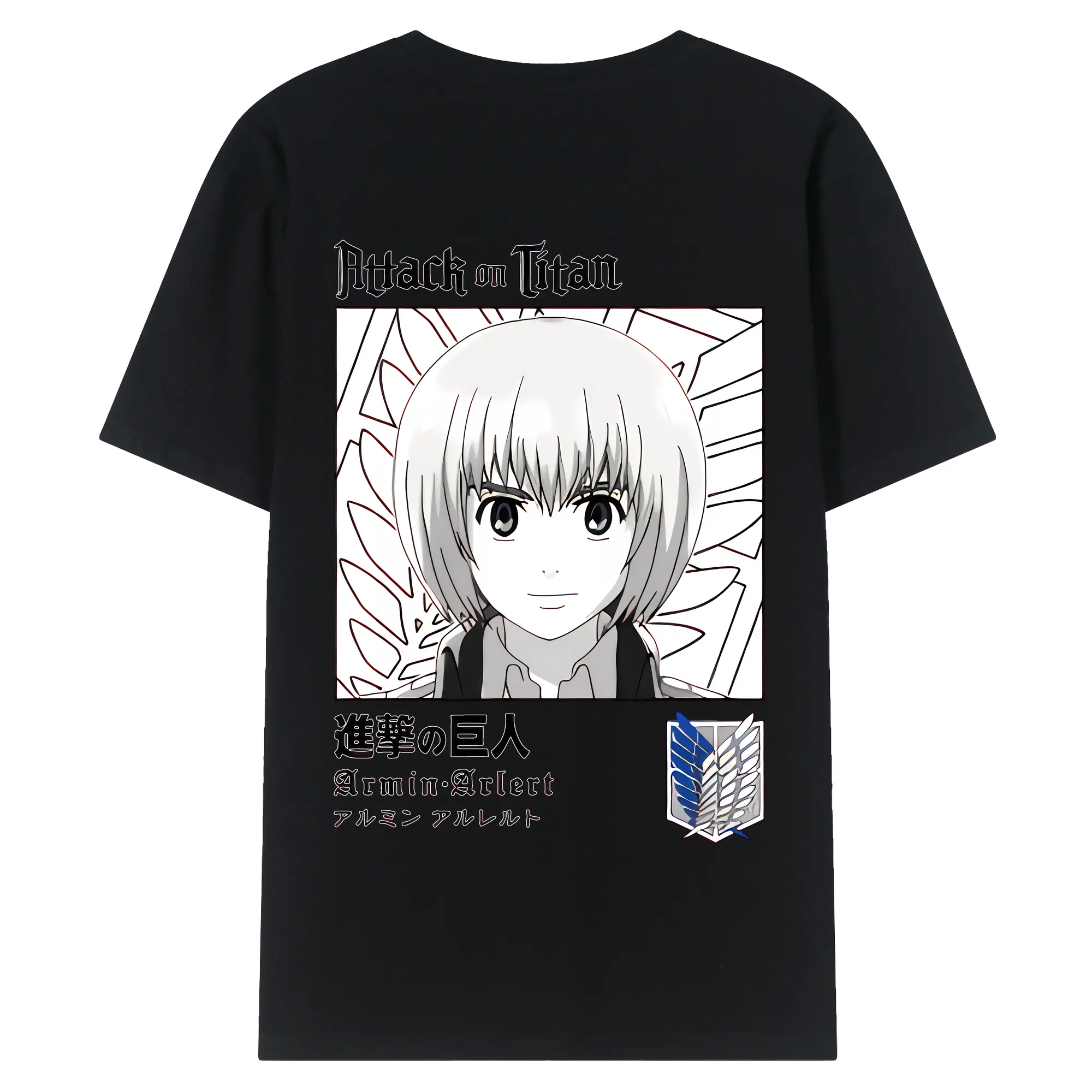 進撃の巨人 グッズ アルミン・アルレルト - 綿100% ヴィンテージ風 半袖Tシャツ ・ 背面プリント ・ 柔らか肌触り ・ 通気性 快適 ・ スポーツ カジュアル 外出用