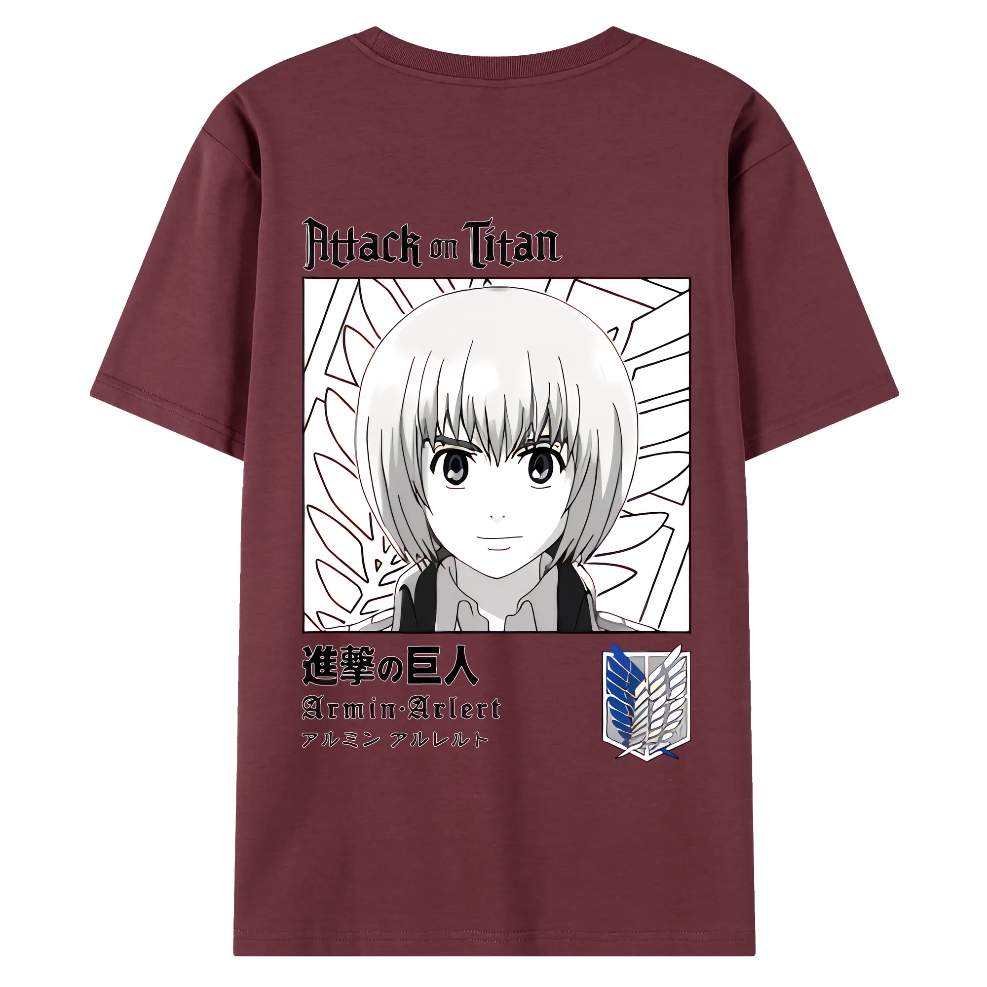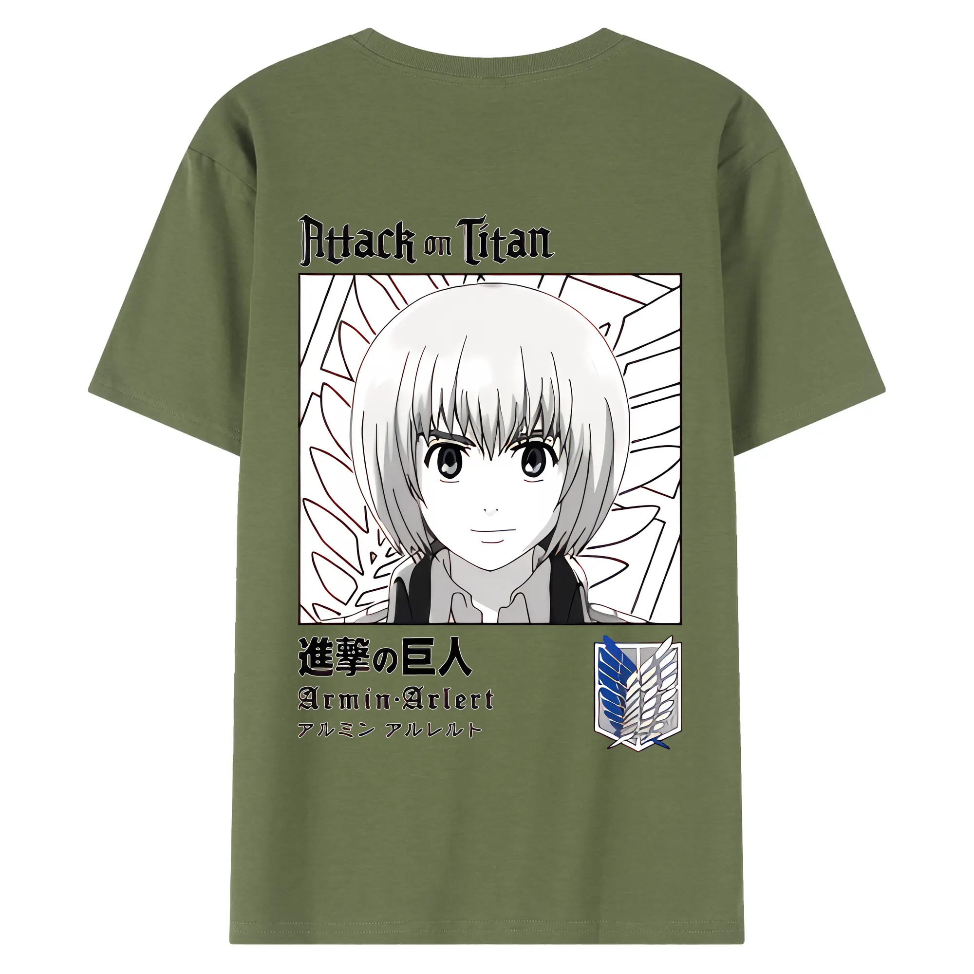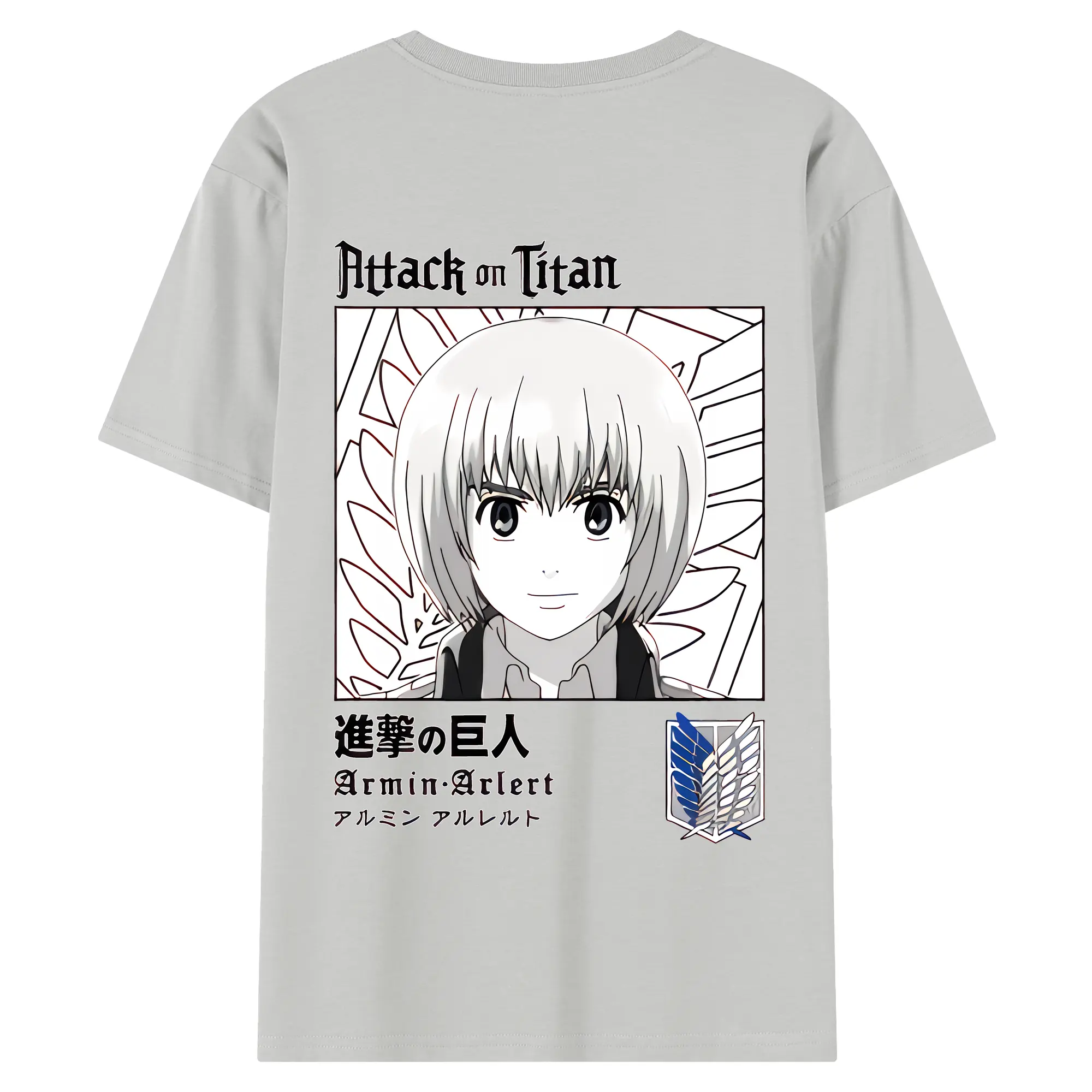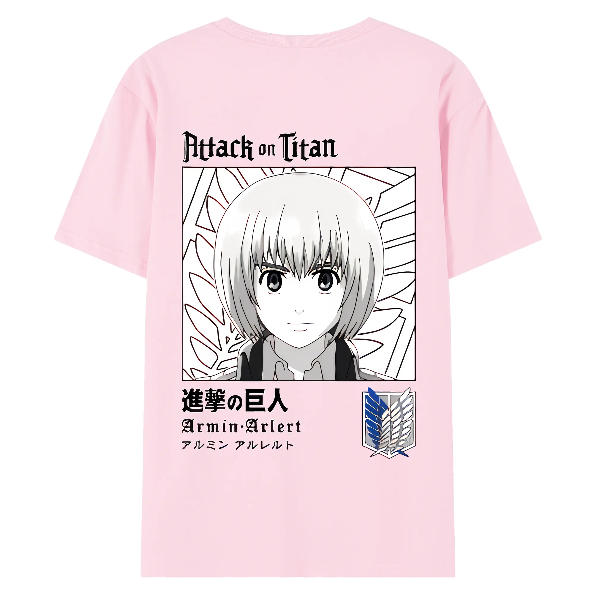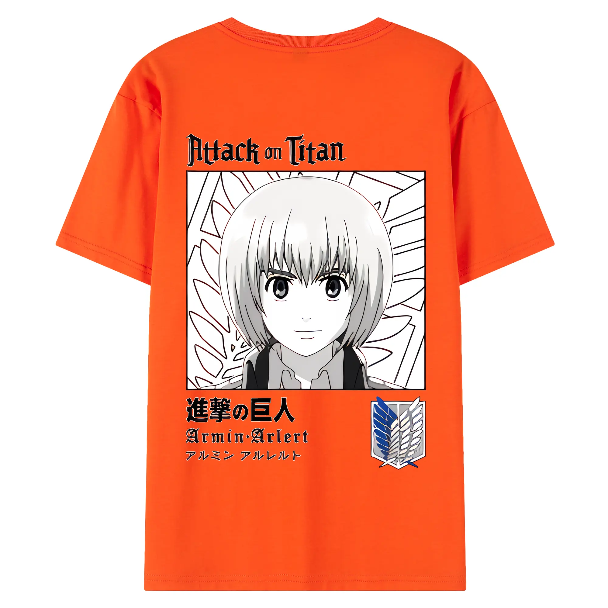 進撃の巨人 グッズ アルミン・アルレルト - 綿100% ヴィンテージ風 半袖Tシャツ ・ 背面プリント ・ 柔らか肌触り ・ 通気性 快適 ・ スポーツ カジュアル 外出用