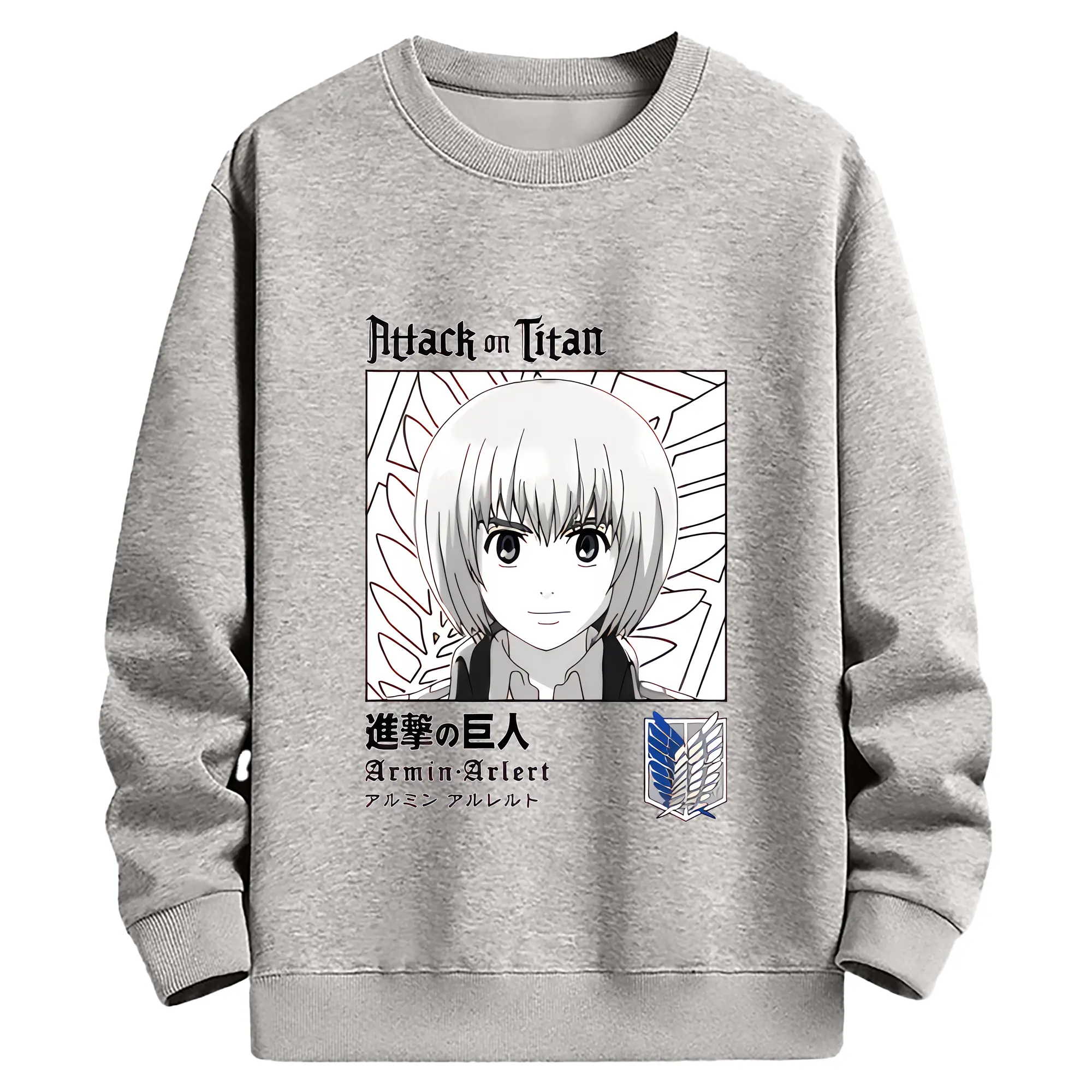 進撃の巨人 グッズ アルミン・アルレルト - 薄手 クルーネック スウェット 裏毛260g · ポリエステル 春秋向け カジュアル 男女兼用 · トレーナー デイリー スポーツ 散歩に最適