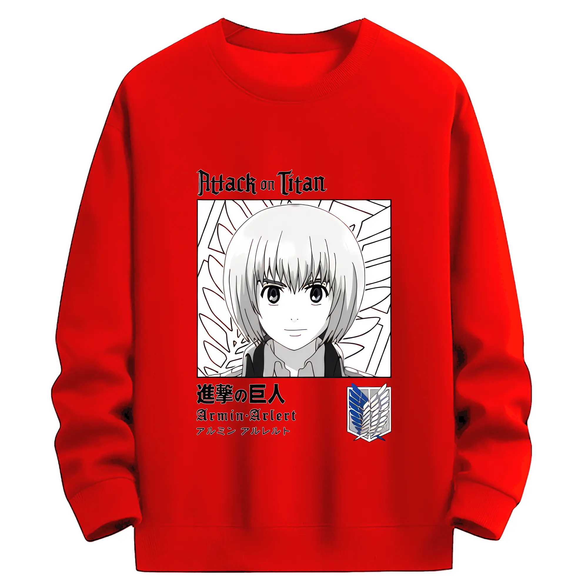 進撃の巨人 グッズ アルミン・アルレルト - 高品質 クルーネック スウェット ・ コットン59% ポリエステル41% ・ ユニセックス 長袖 トレーナー ・ カジュアル デイリー スポーツ 散歩用