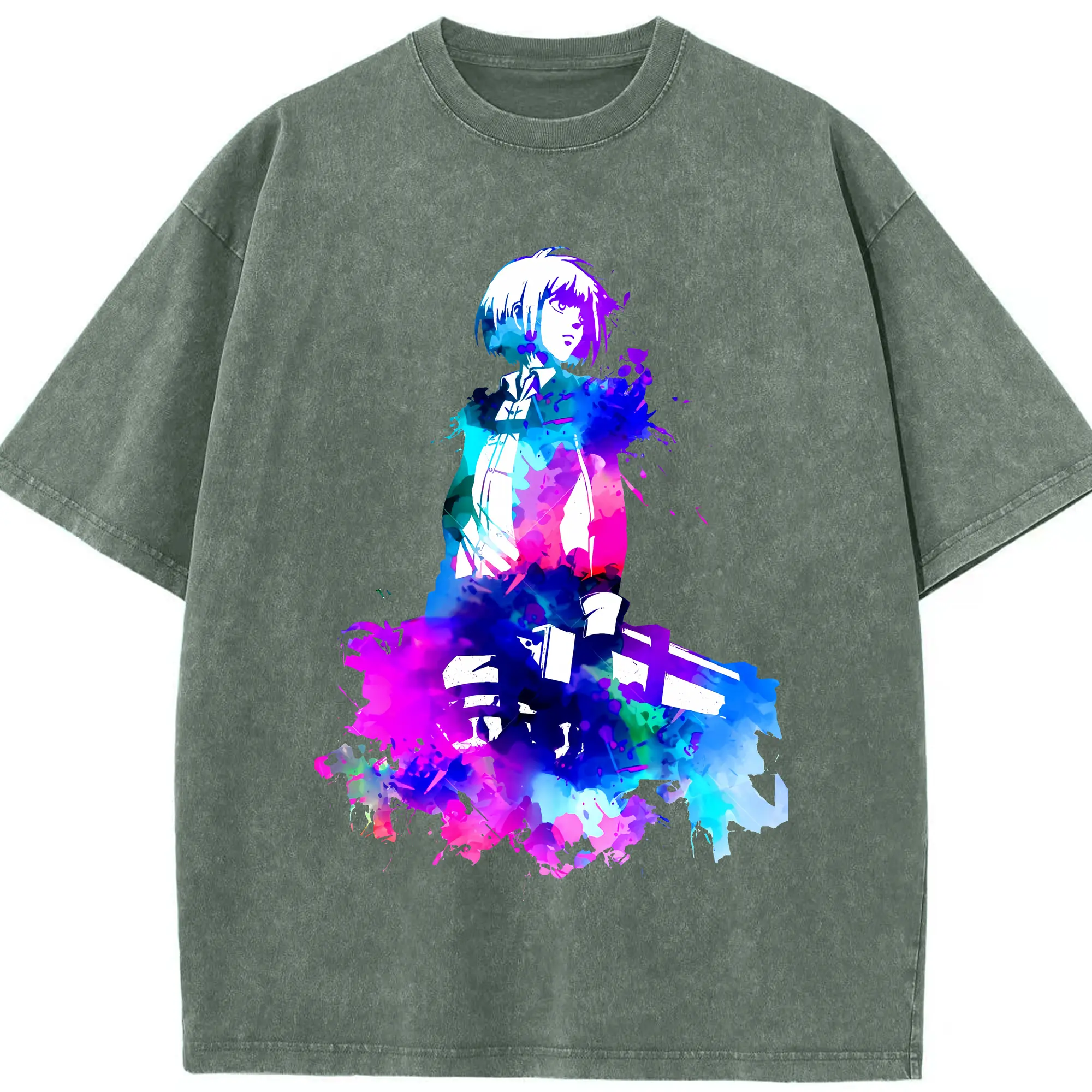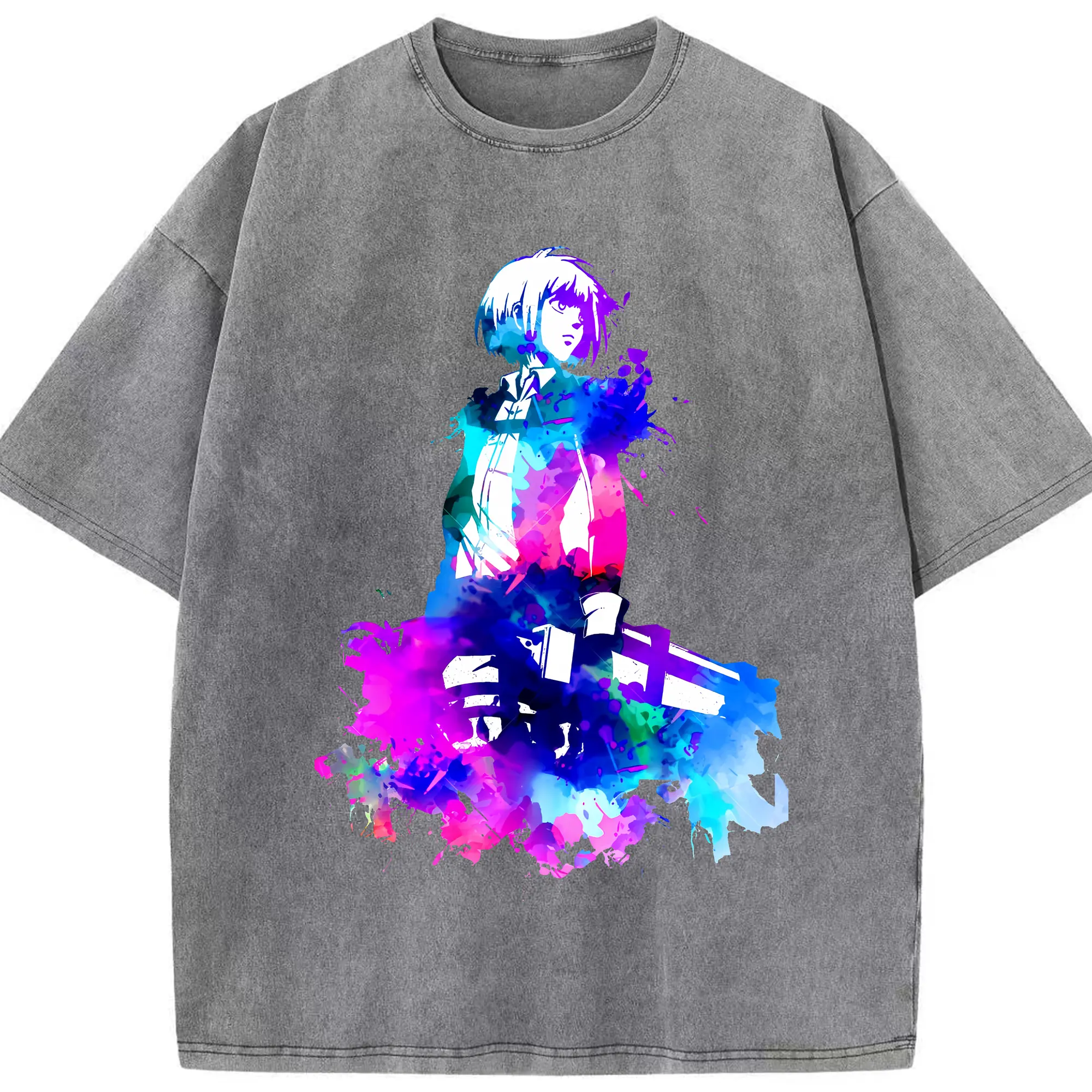鬼滅の刃 グッズ,冨岡 義勇 - 綿100% ヴィンテージ風 半袖Tシャツ ・ フロントプリント ・ 柔らか肌触り ・ 通気性 快適 ・ スポーツ カジュアル 外出用