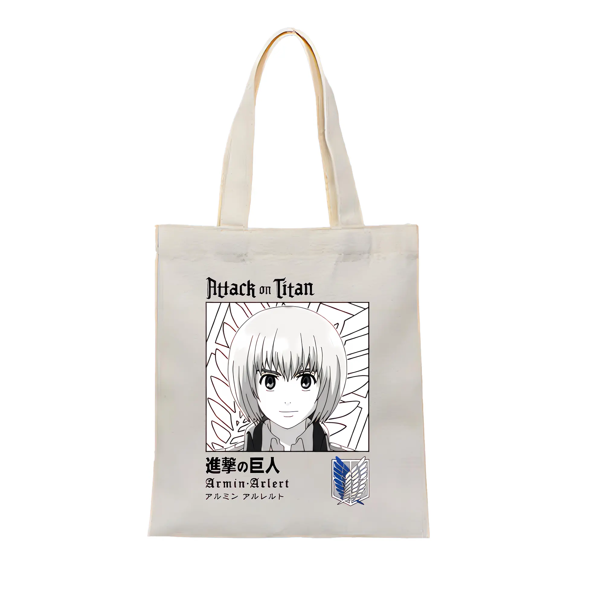 進撃の巨人 グッズ アルミン・アルレルト - 縦型キャンバス手提げバッグ(トートバッグ) ・ キャンバス素材 ・ ショッピング用 ・ 軽量 丈夫 お手入れ簡単