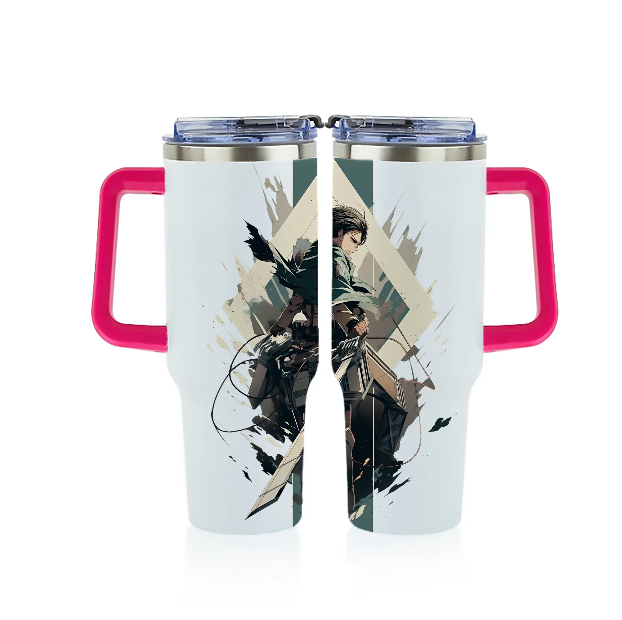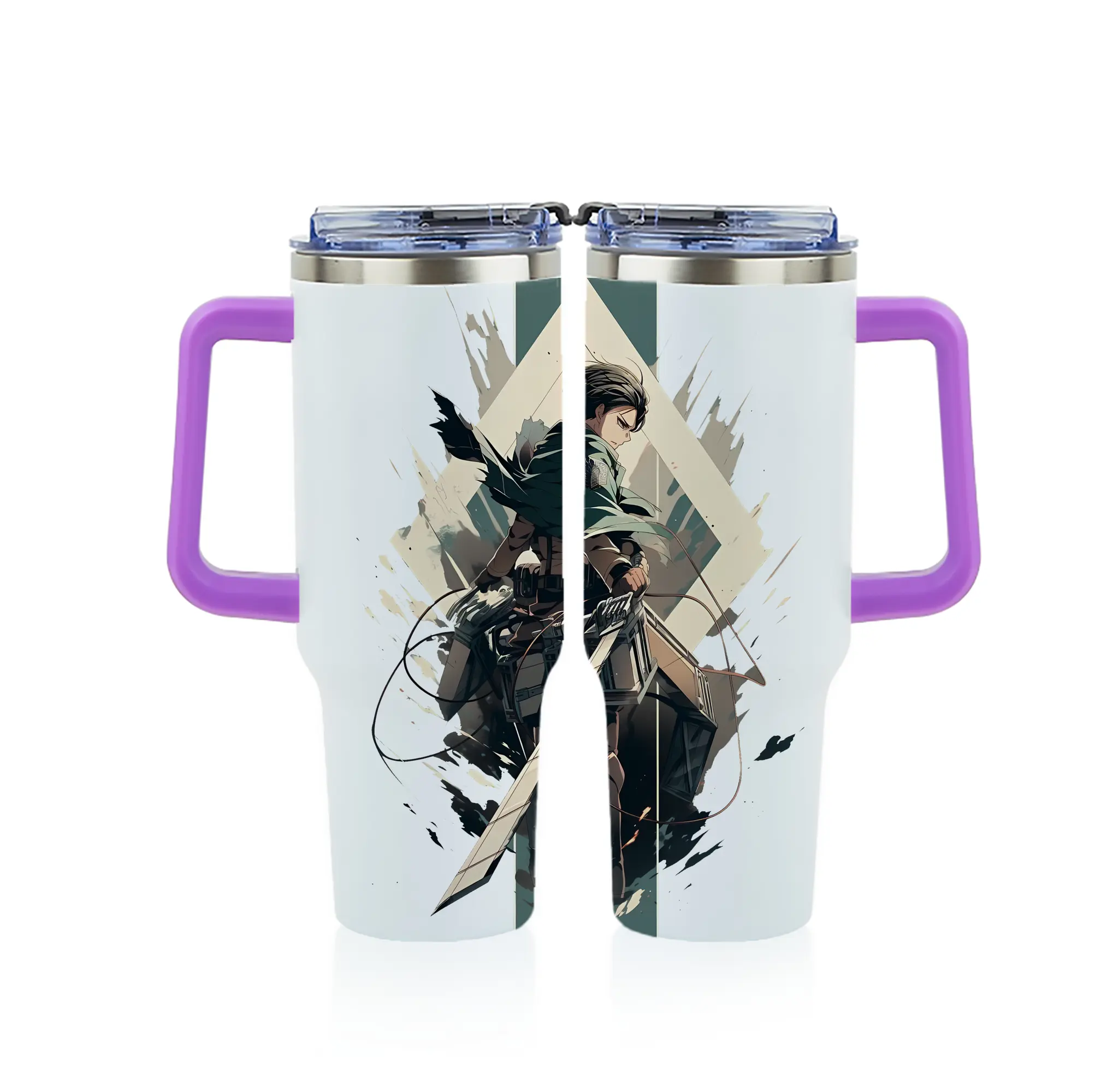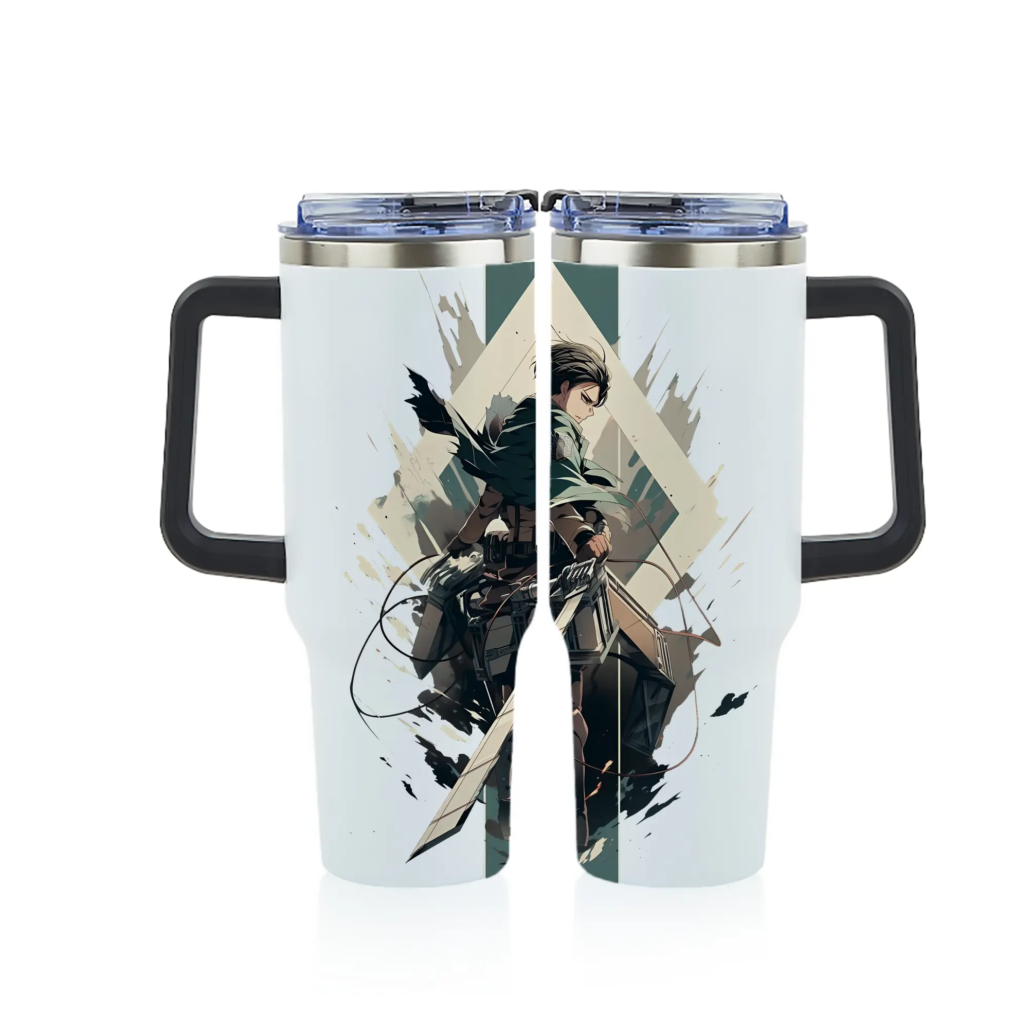 進撃の巨人 グッズ リヴァイ・アッカーマン - 1200mL フルプリント車用タンブラー ・ 304ステンレス 内側 ・ 201ステンレス 外側 ・ 保温 保冷 ・ 通勤 ドライブ アウトドア用