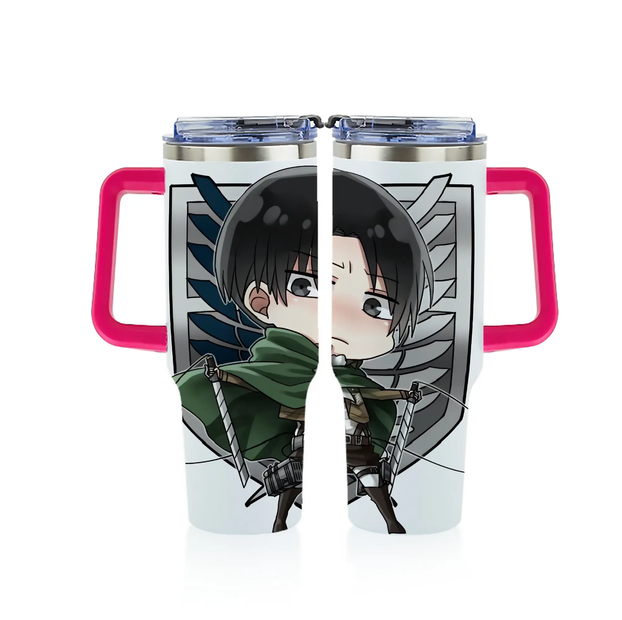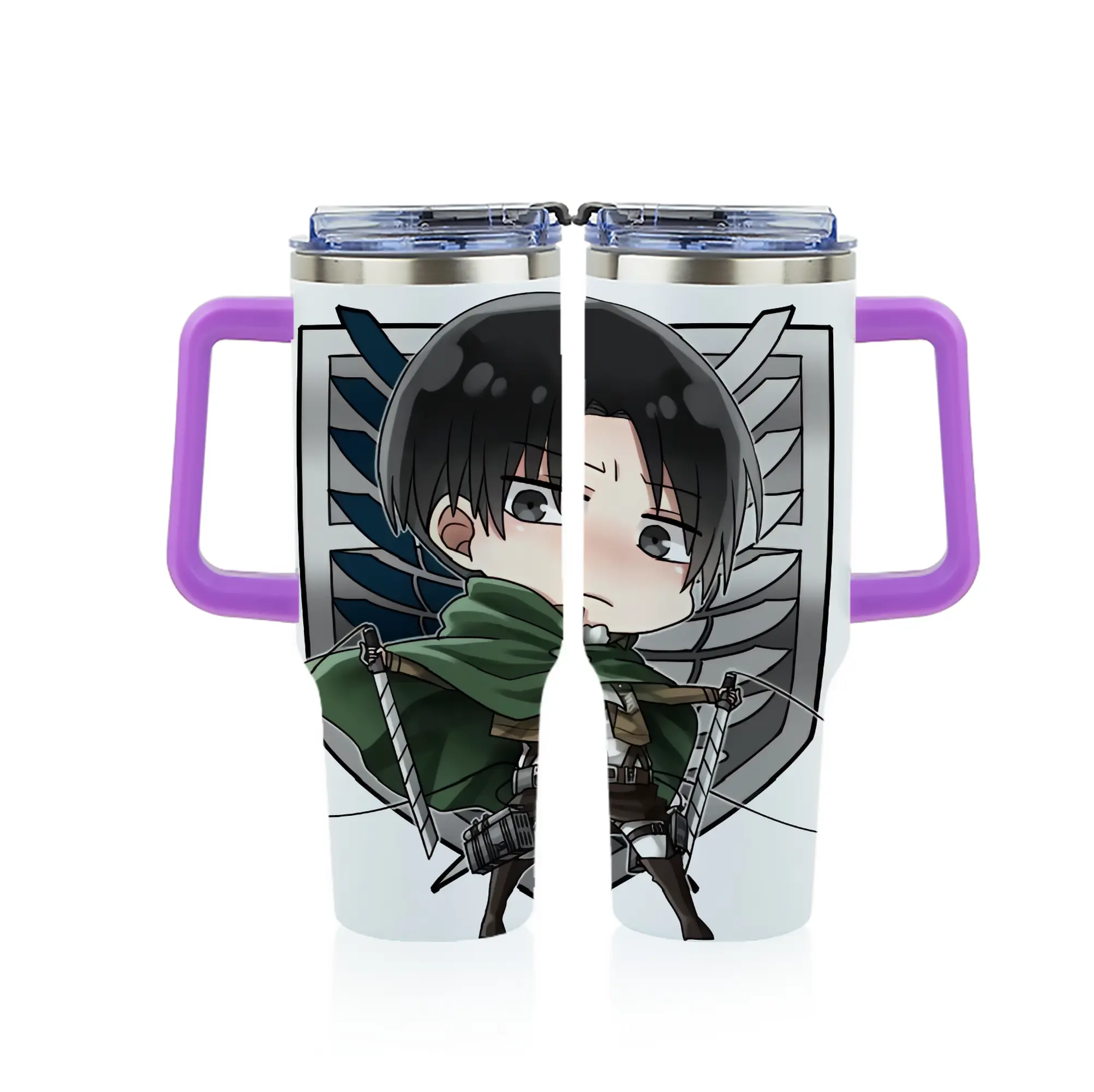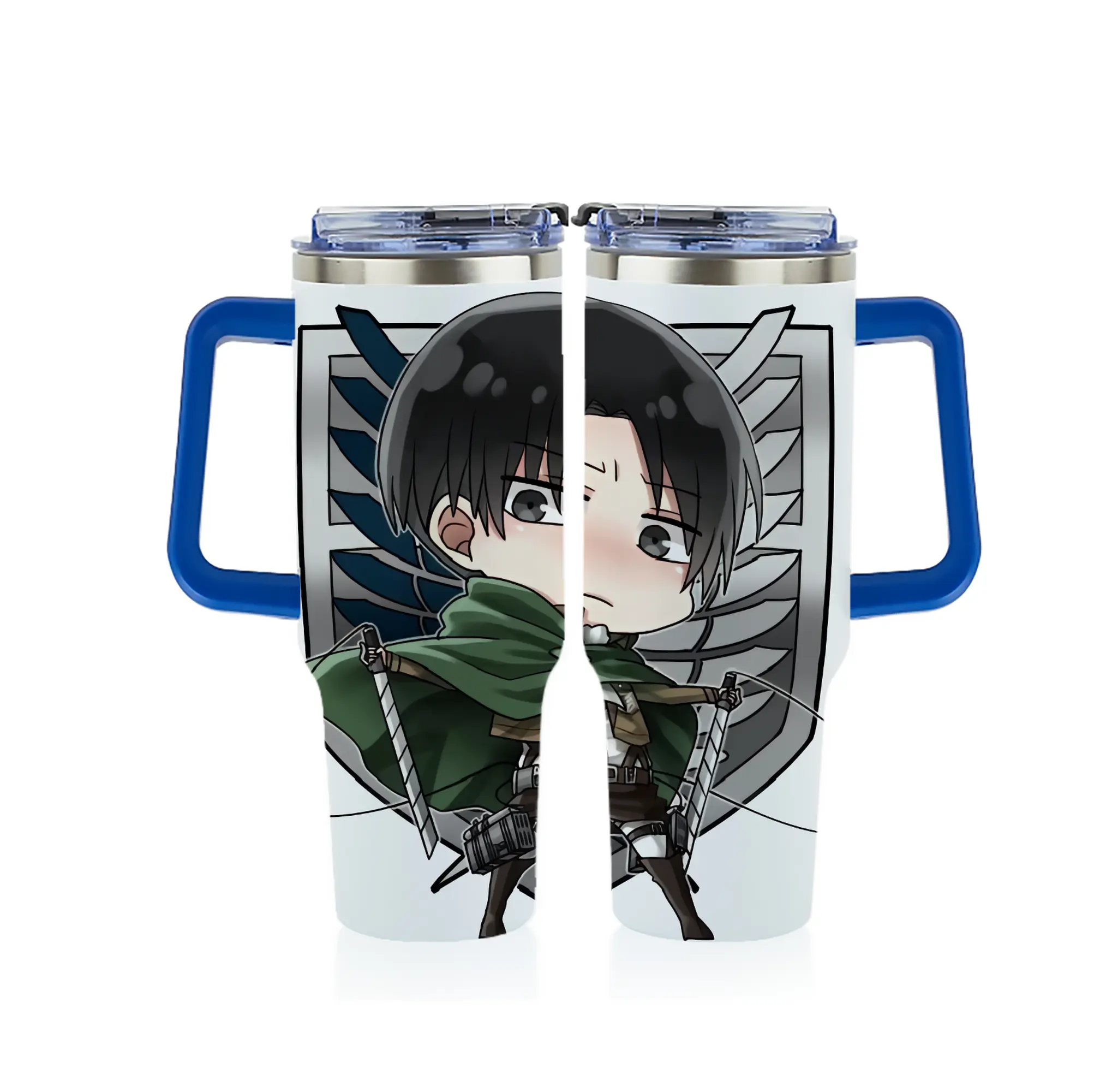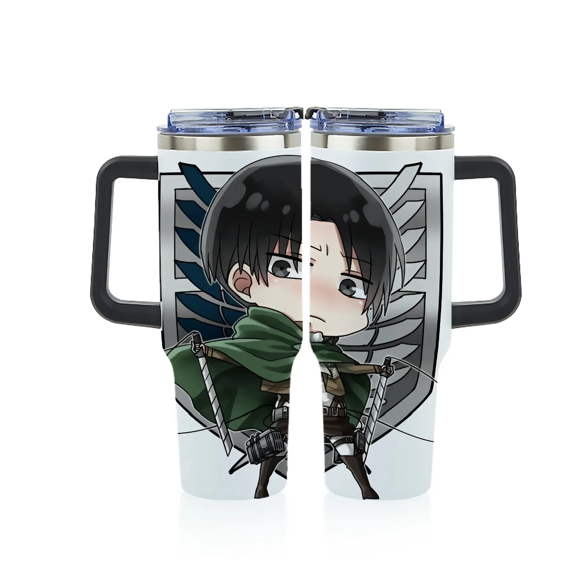 進撃の巨人 グッズ リヴァイ・アッカーマン - 1200mL フルプリント車用タンブラー ・ 304ステンレス 内側 ・ 201ステンレス 外側 ・ 保温 保冷 ・ 通勤 ドライブ アウトドア用