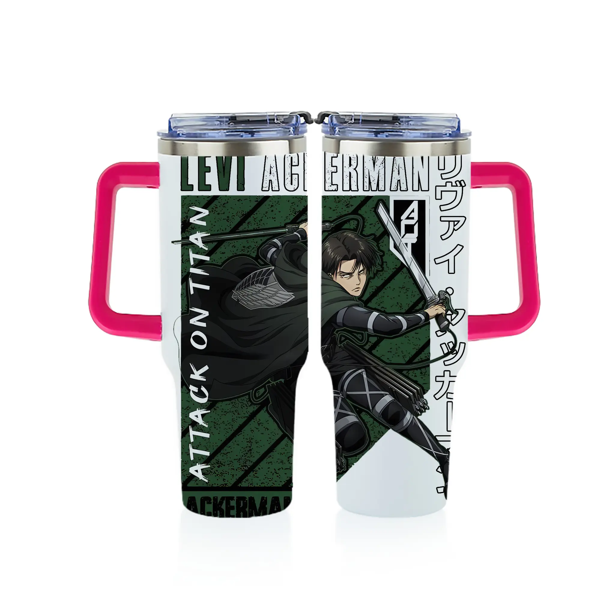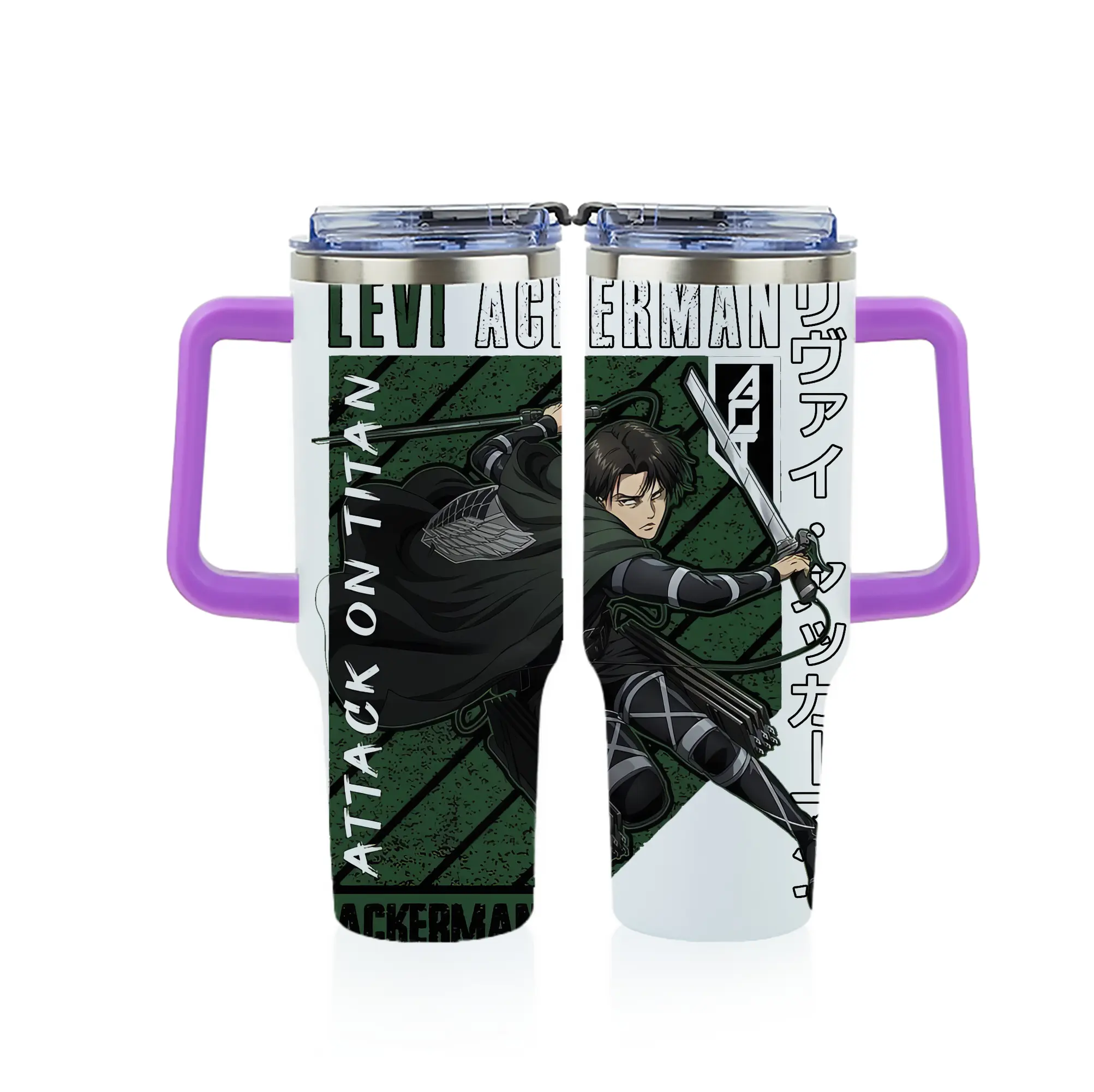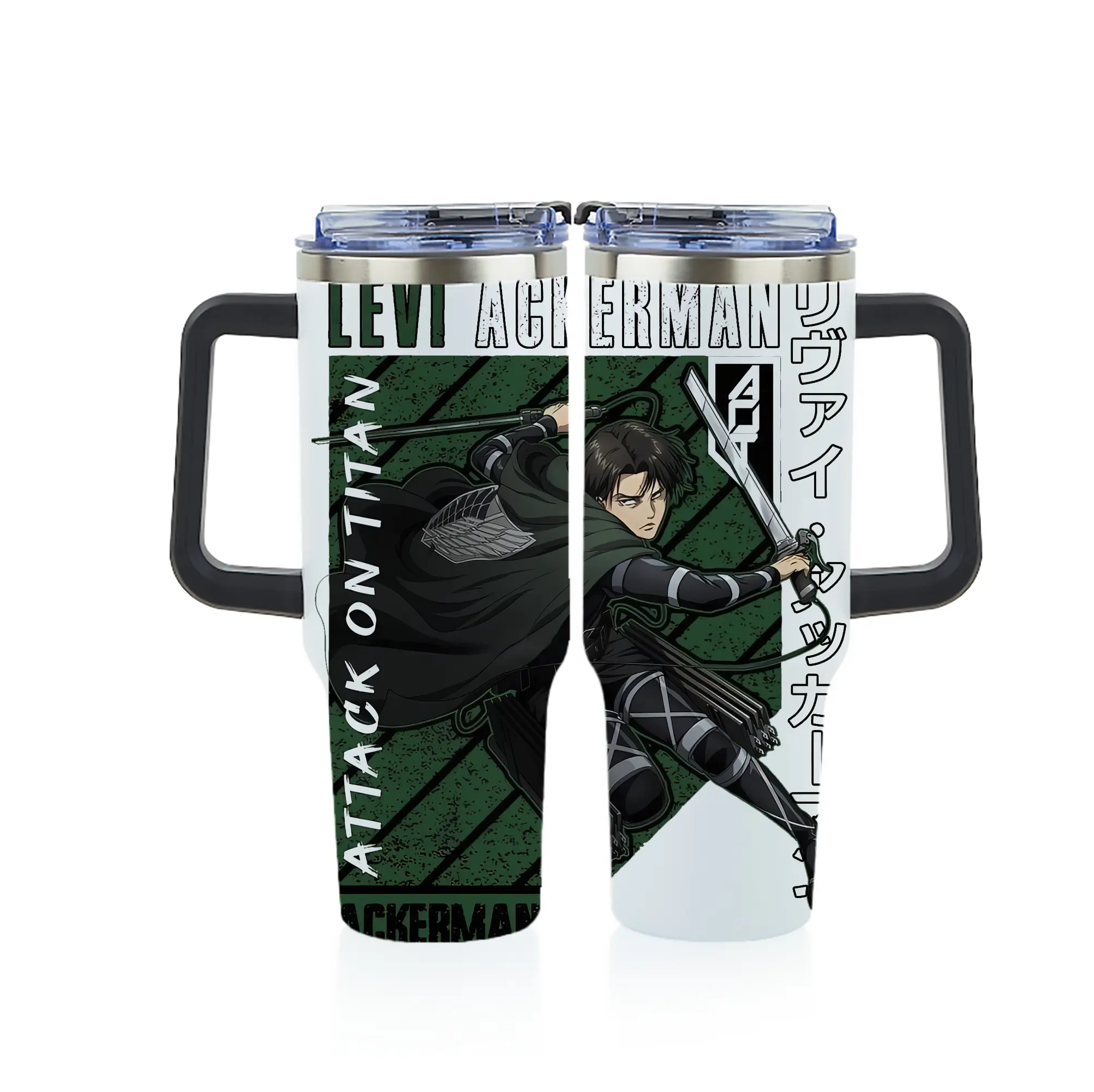 進撃の巨人 グッズ リヴァイ・アッカーマン - 1200mL フルプリント車用タンブラー ・ 304ステンレス 内側 ・ 201ステンレス 外側 ・ 保温 保冷 ・ 通勤 ドライブ アウトドア用