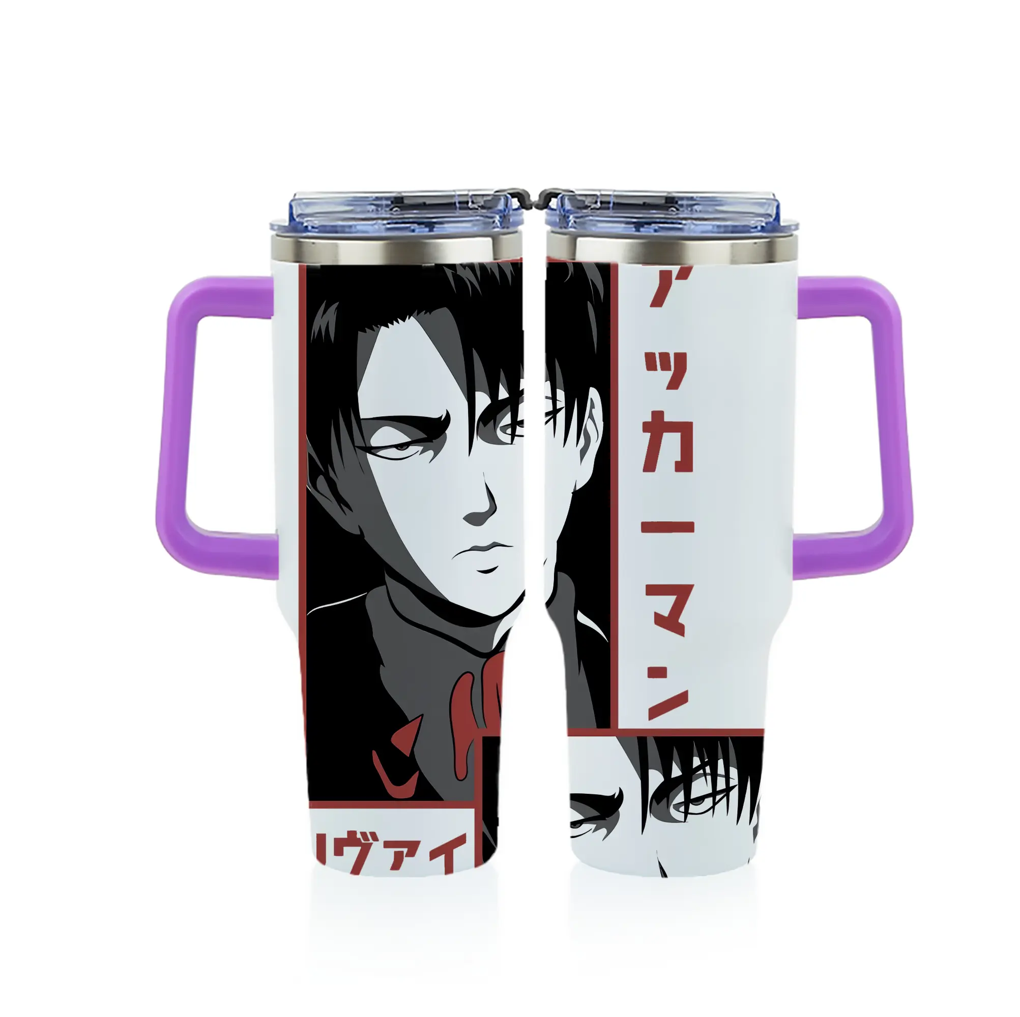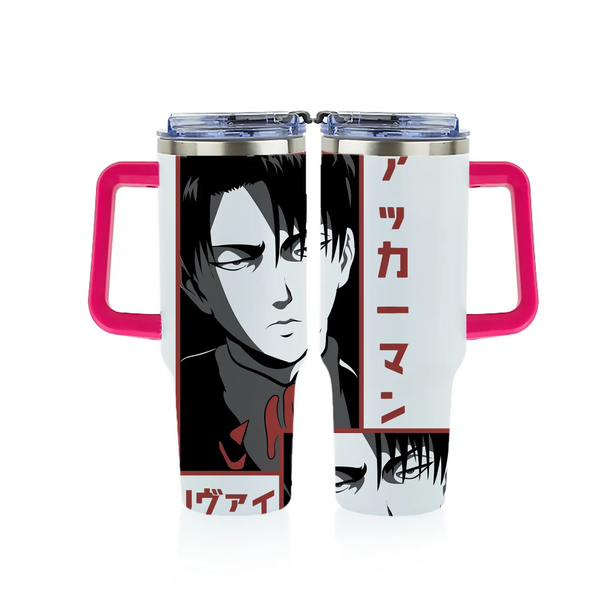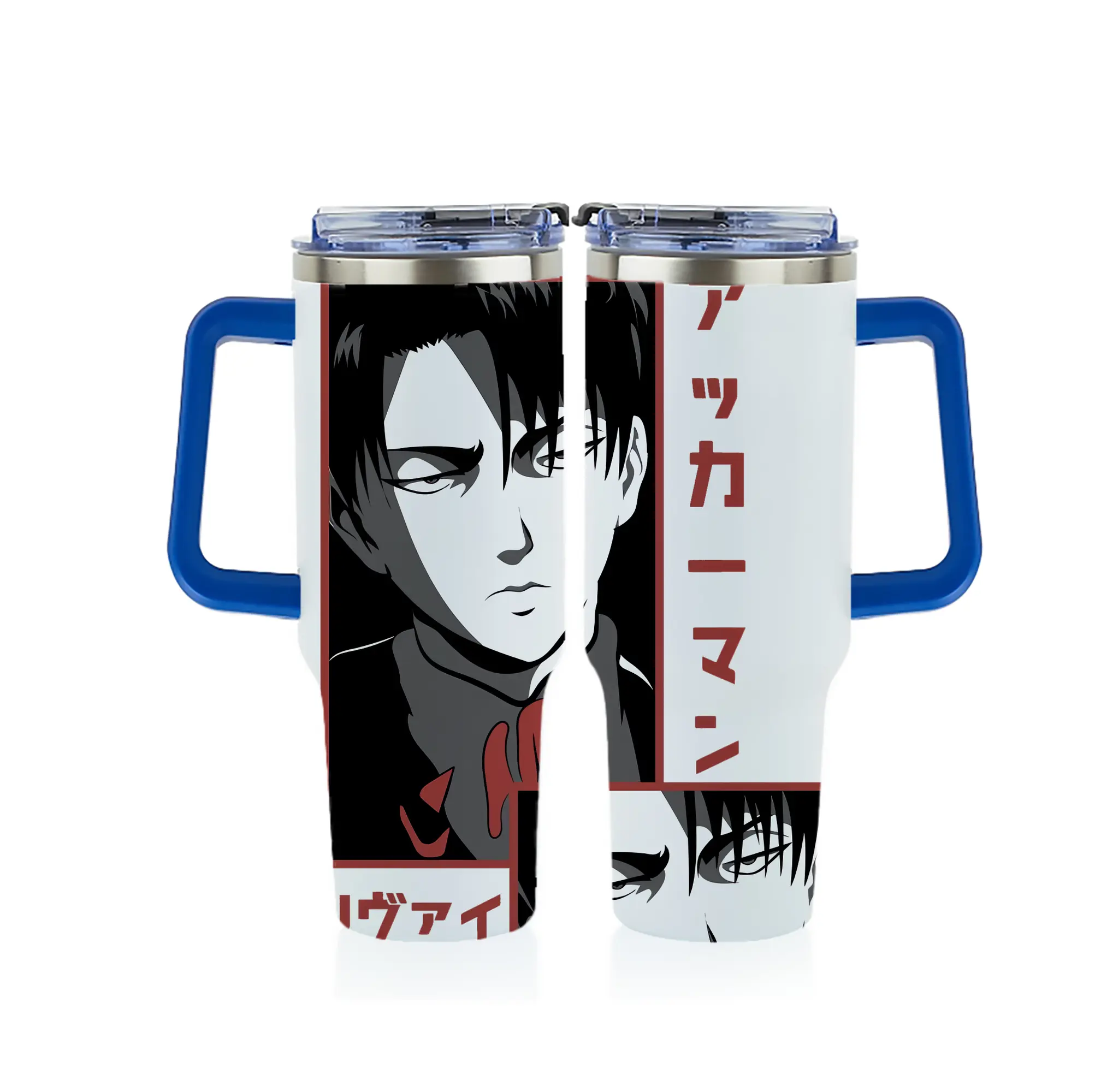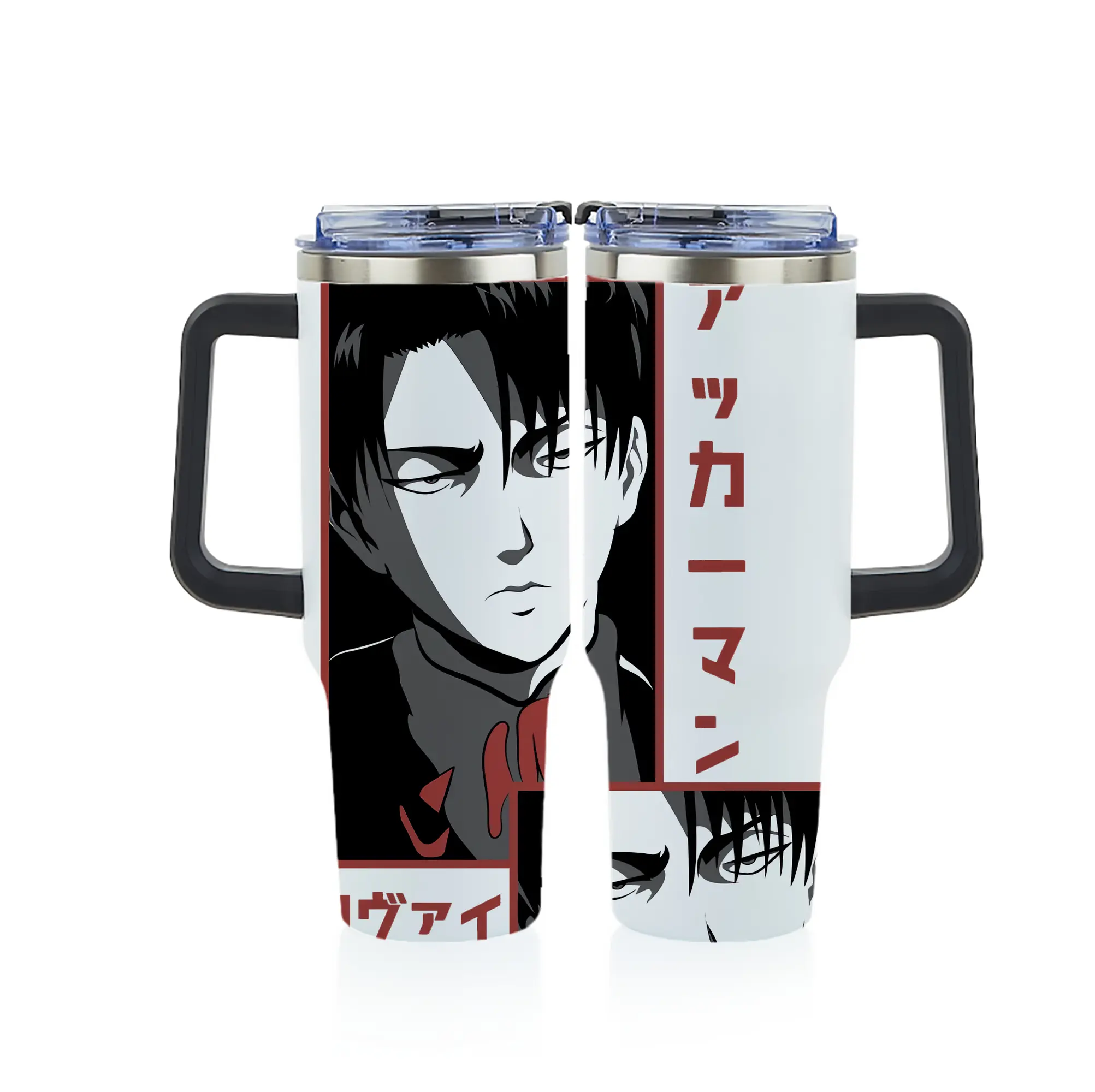 進撃の巨人 グッズ リヴァイ・アッカーマン - 1200mL フルプリント車用タンブラー ・ 304ステンレス 内側 ・ 201ステンレス 外側 ・ 保温 保冷 ・ 通勤 ドライブ アウトドア用