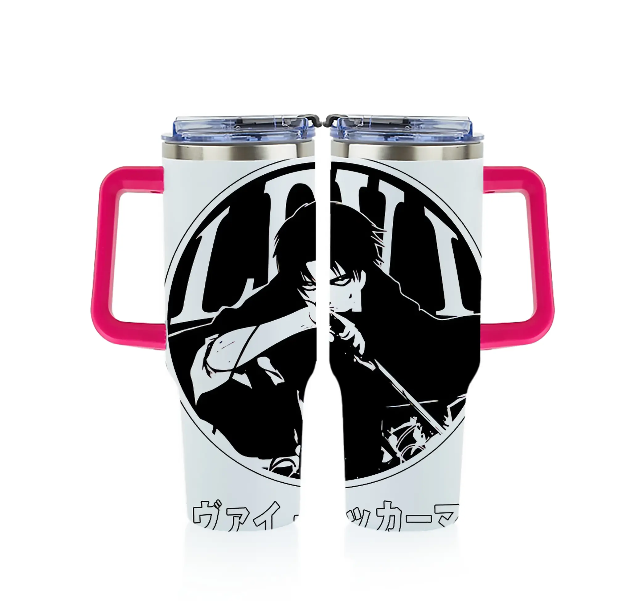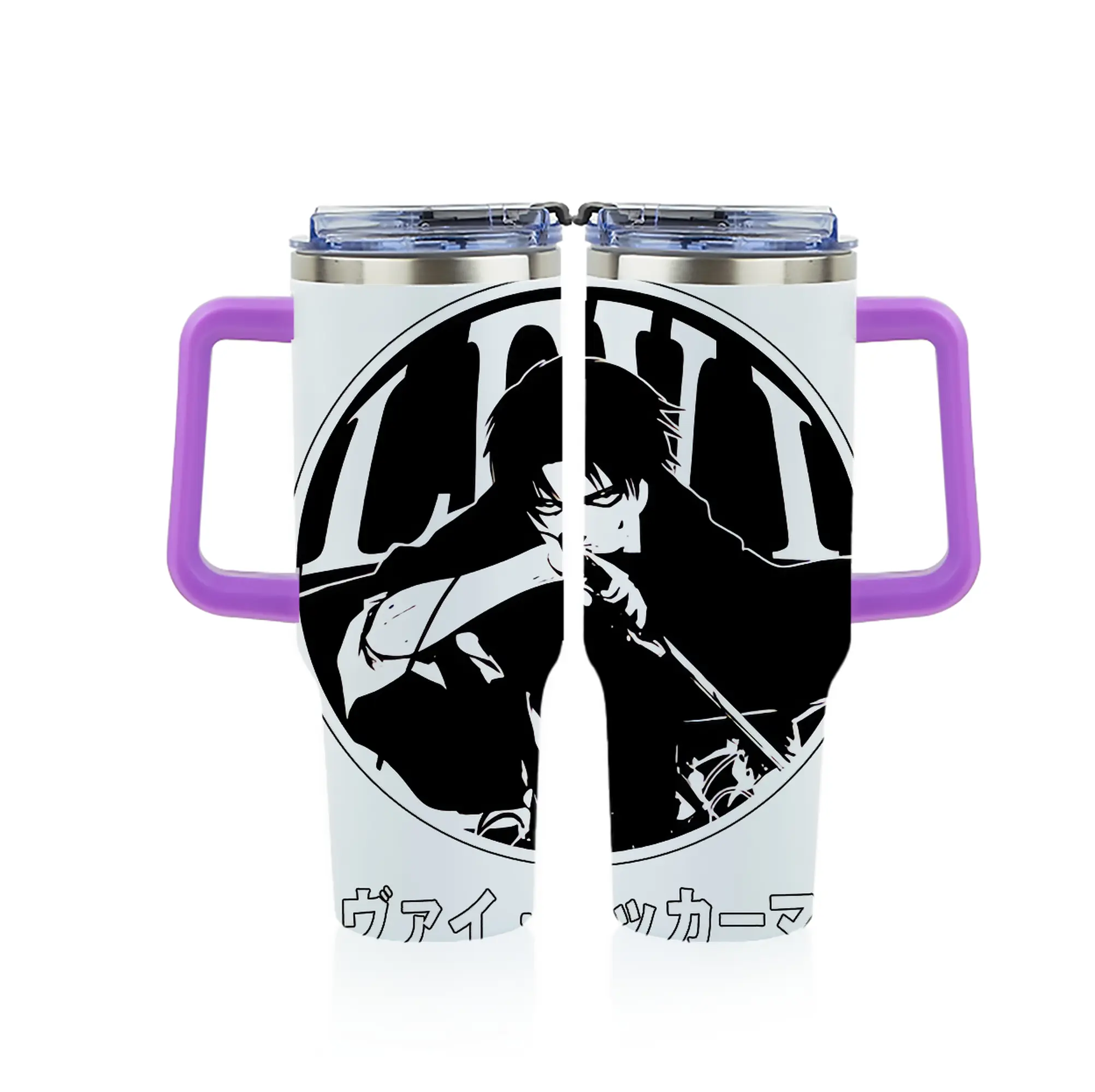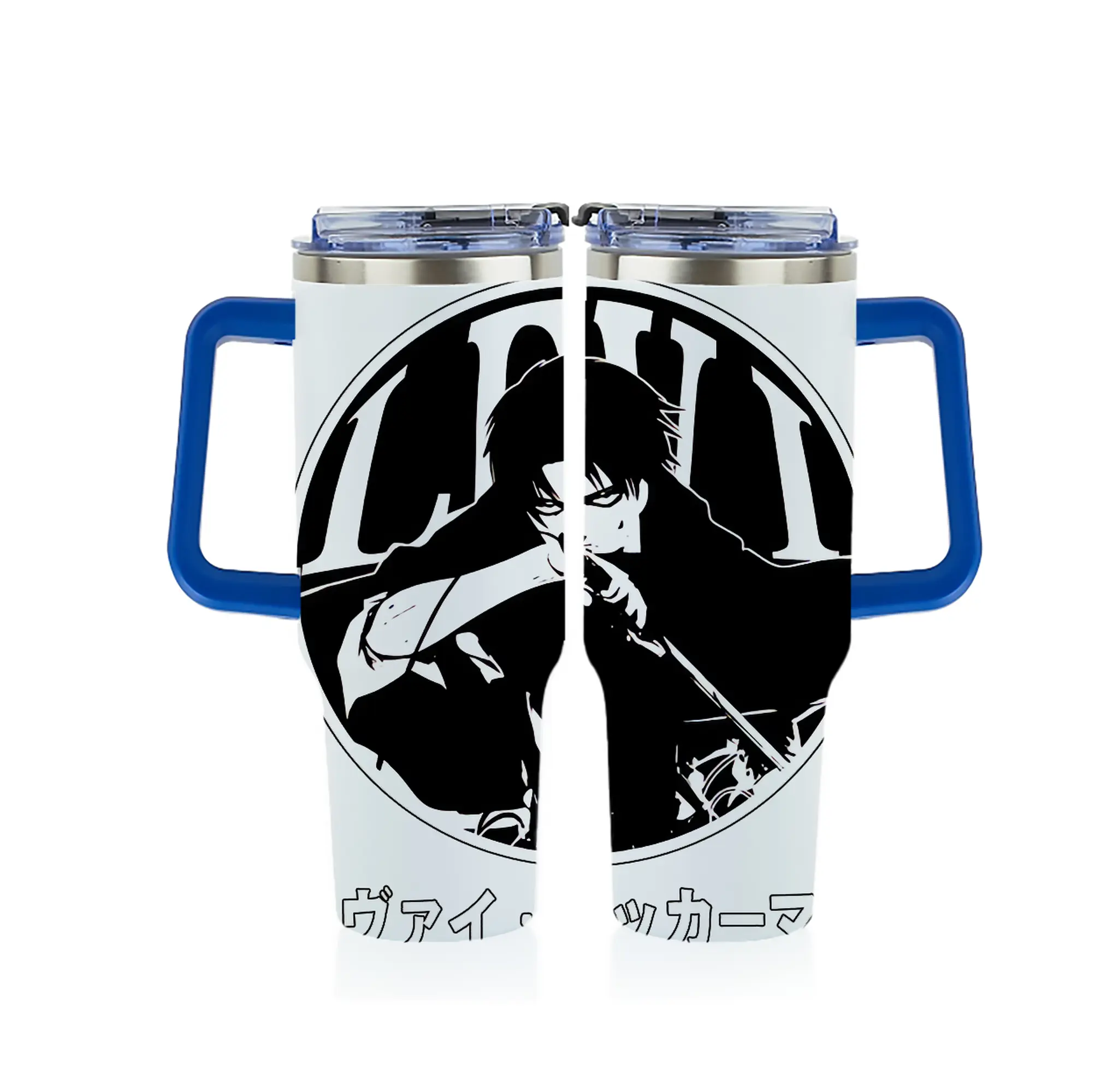 進撃の巨人 グッズ リヴァイ・アッカーマン - 1200mL フルプリント車用タンブラー ・ 304ステンレス 内側 ・ 201ステンレス 外側 ・ 保温 保冷 ・ 通勤 ドライブ アウトドア用
