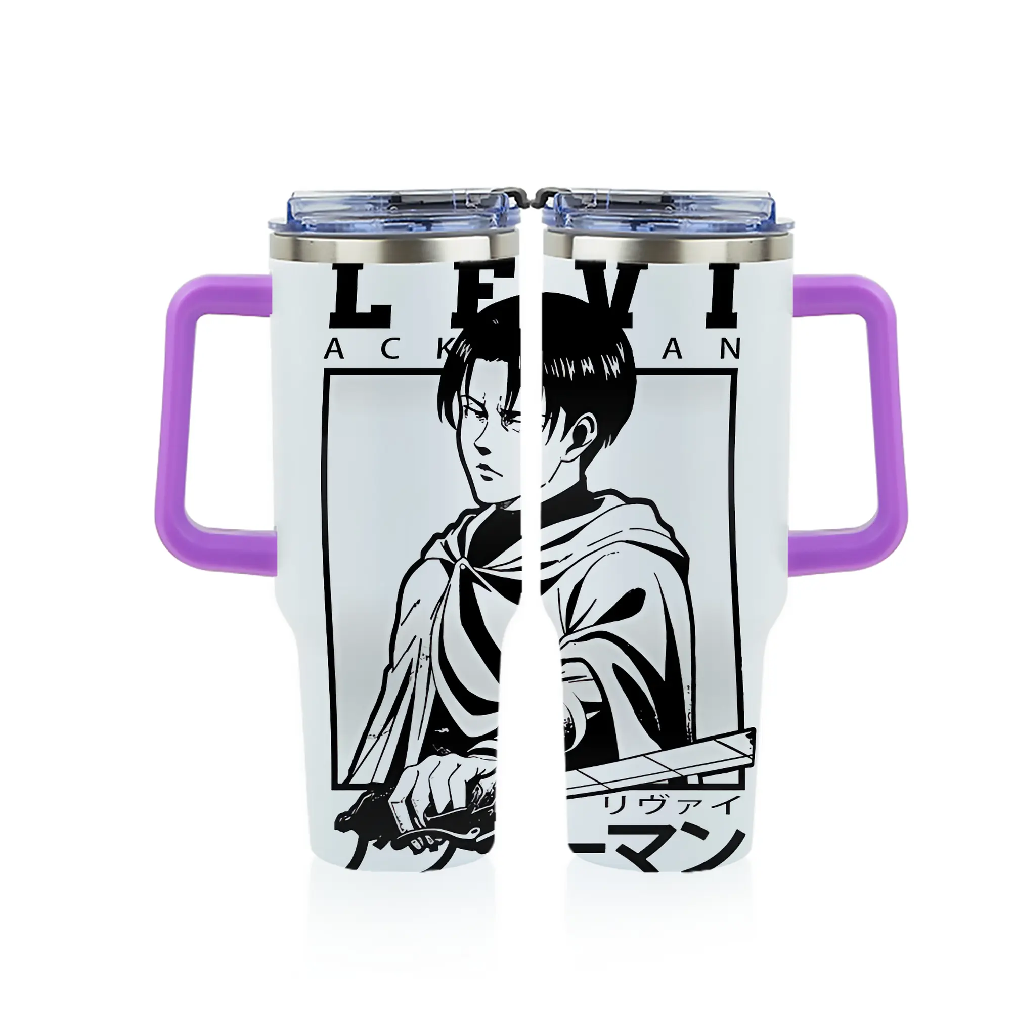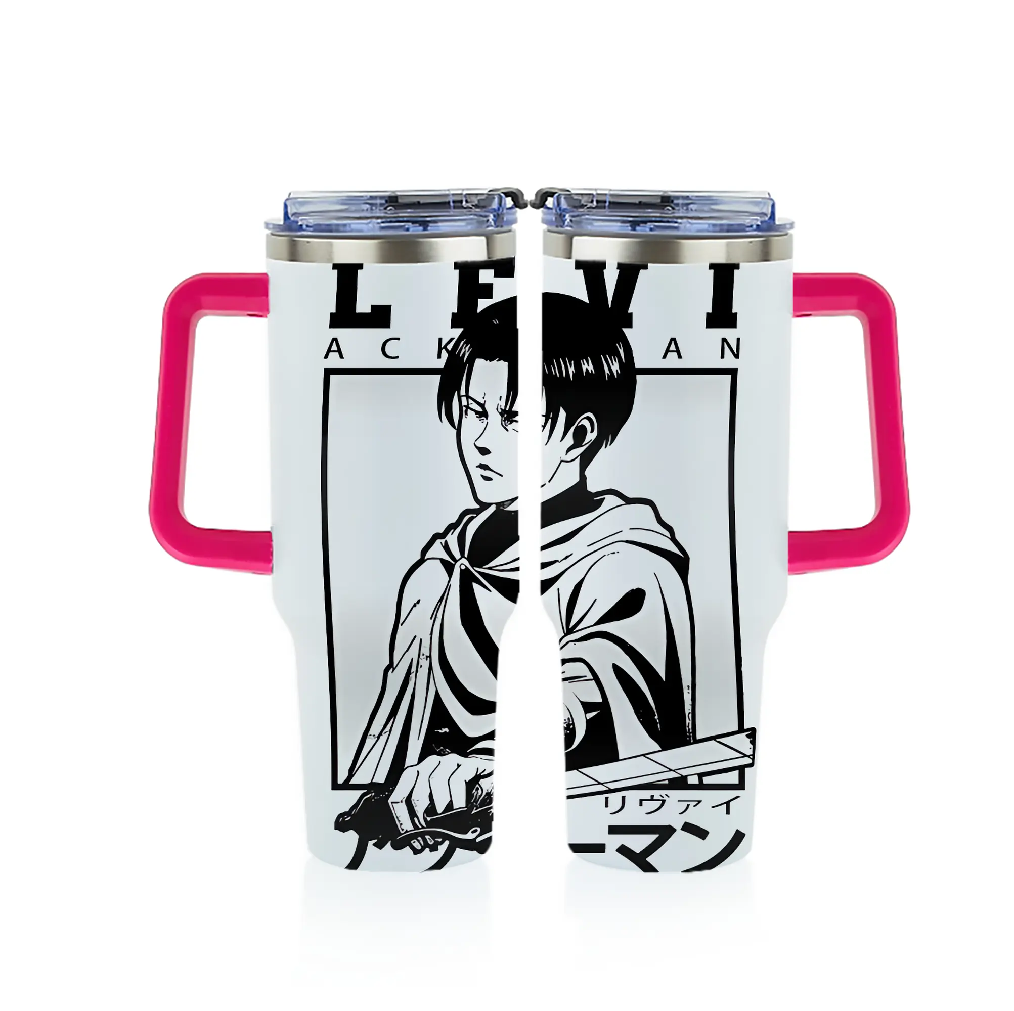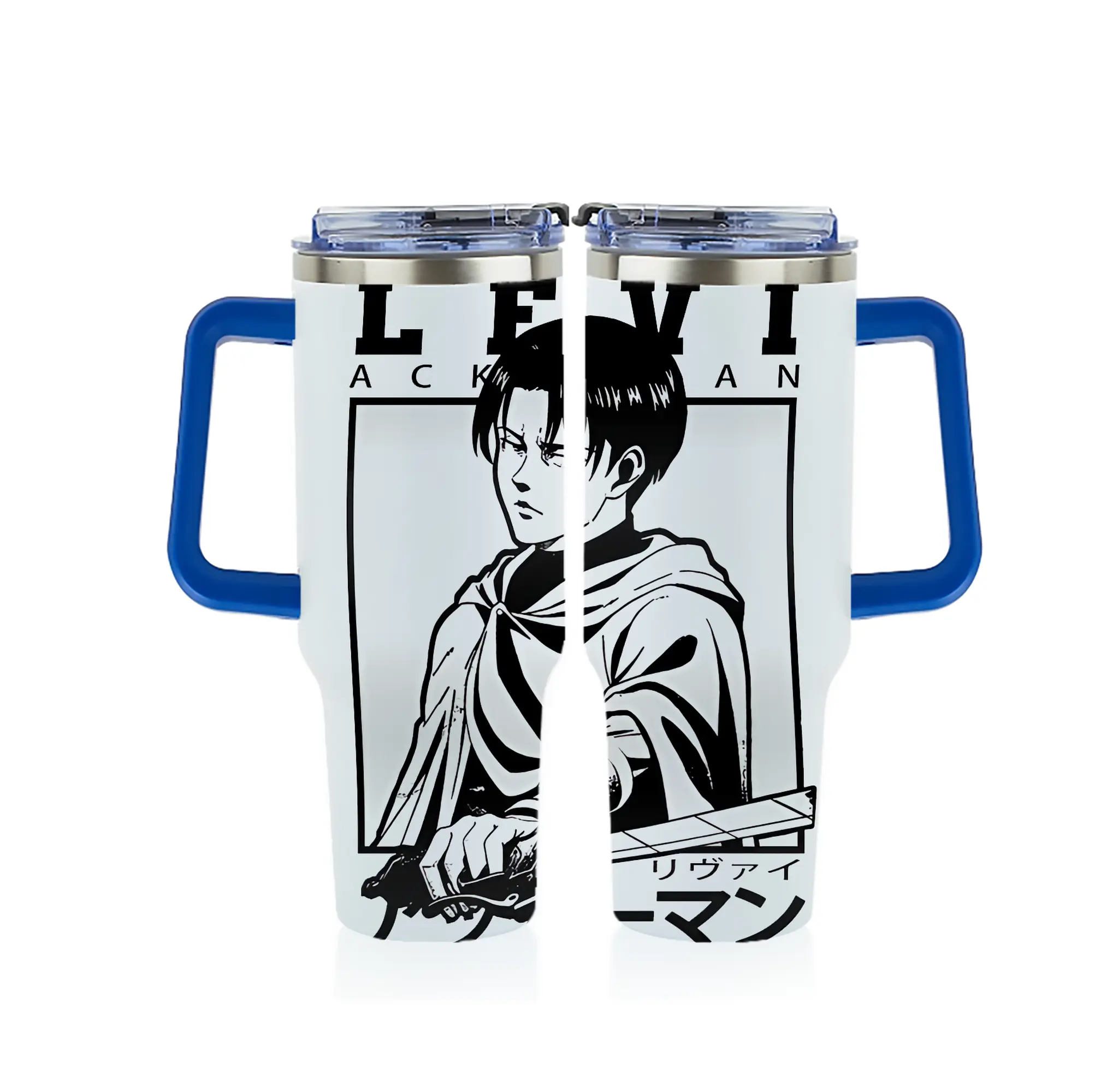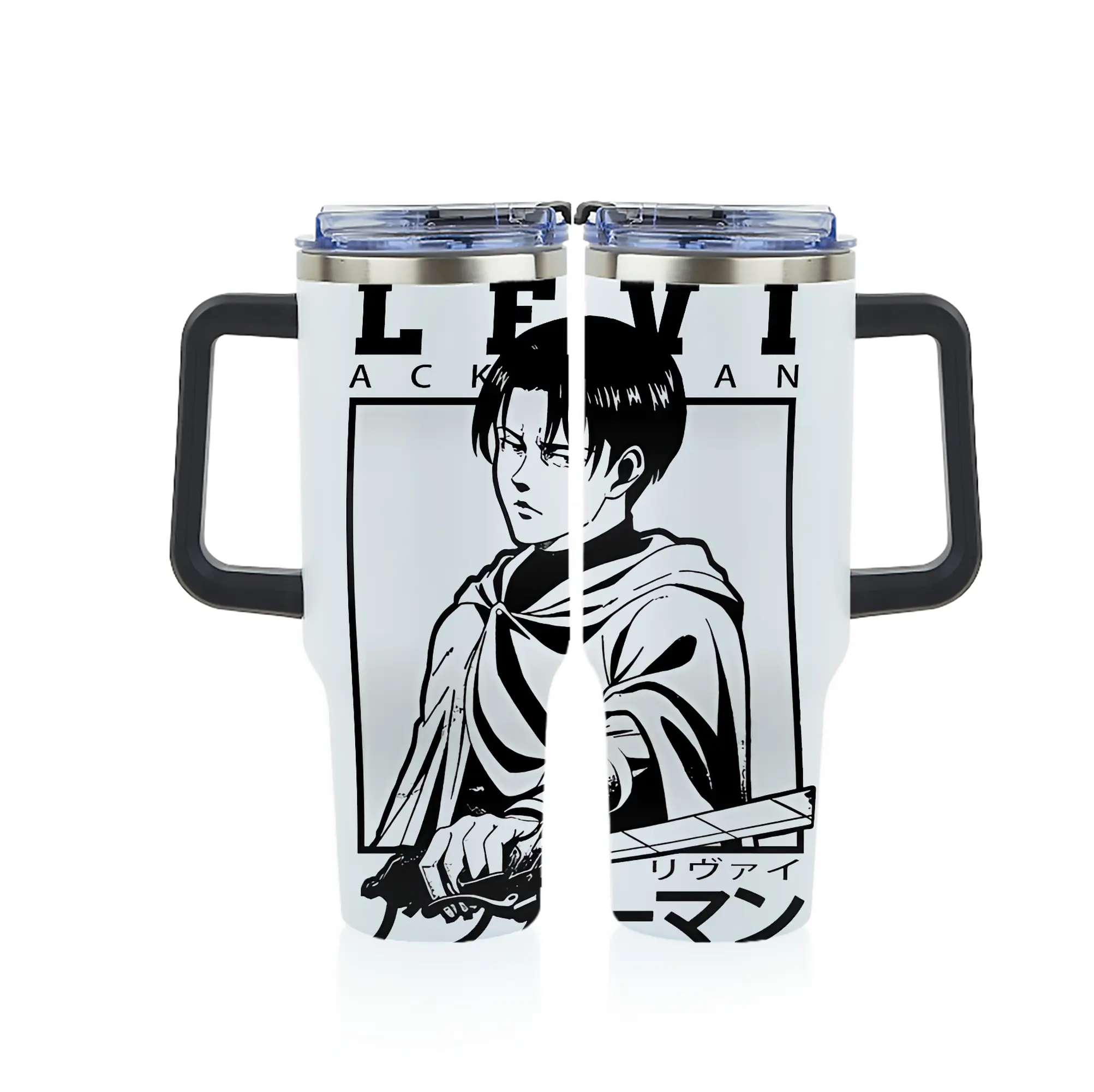 進撃の巨人 グッズ リヴァイ・アッカーマン - 1200mL フルプリント車用タンブラー ・ 304ステンレス 内側 ・ 201ステンレス 外側 ・ 保温 保冷 ・ 通勤 ドライブ アウトドア用