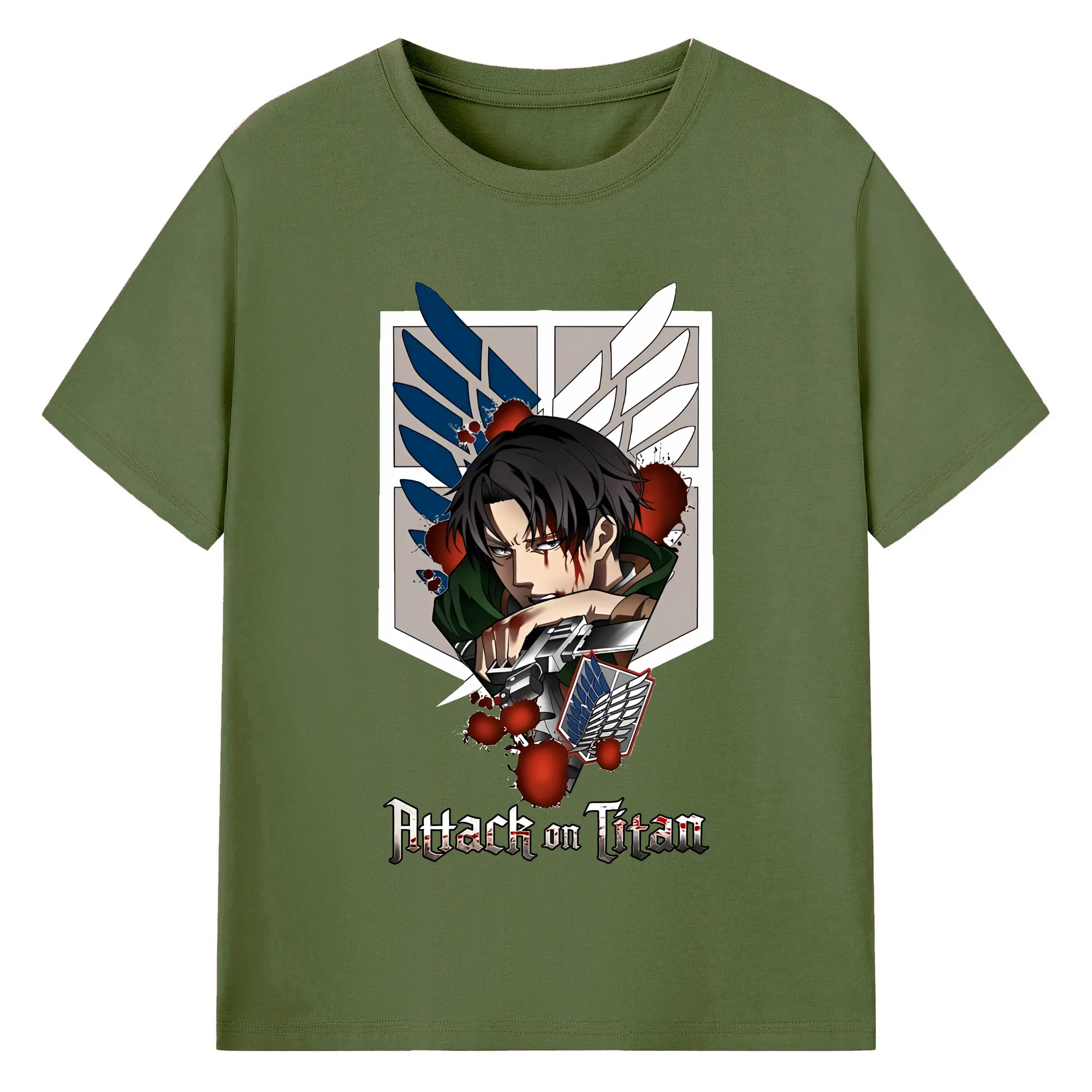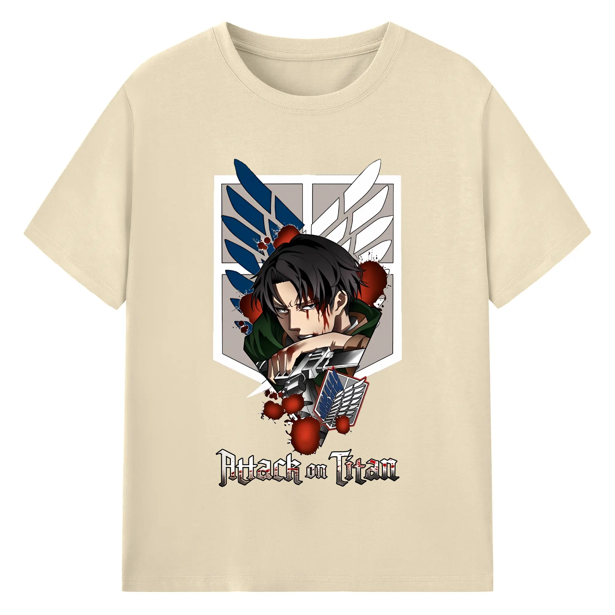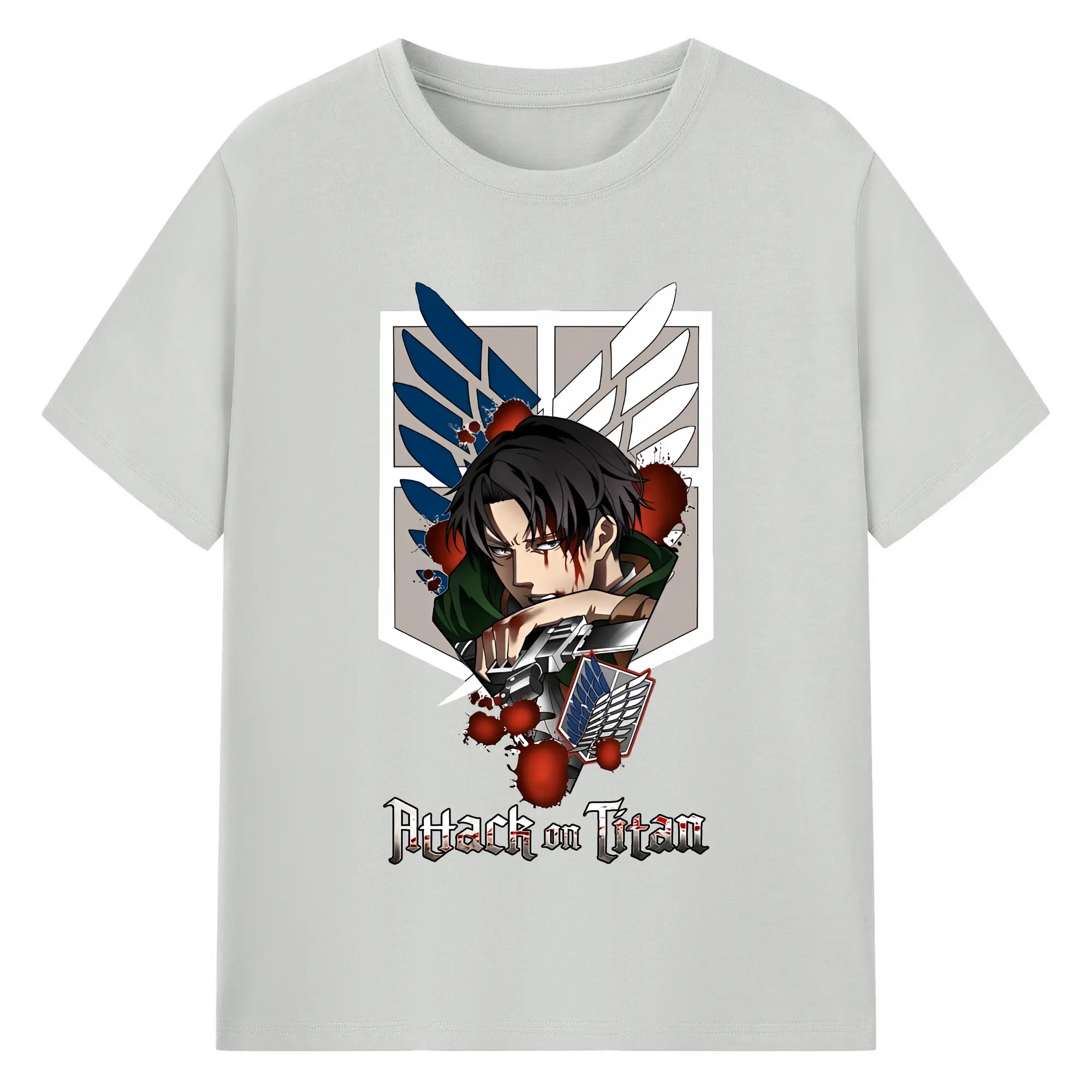 進撃の巨人 グッズ リヴァイ・アッカーマン - 綿100% 半袖Tシャツ ・ バックプリント ・ 快適 通気性 ・ 日常使い 散歩 スポーツ用