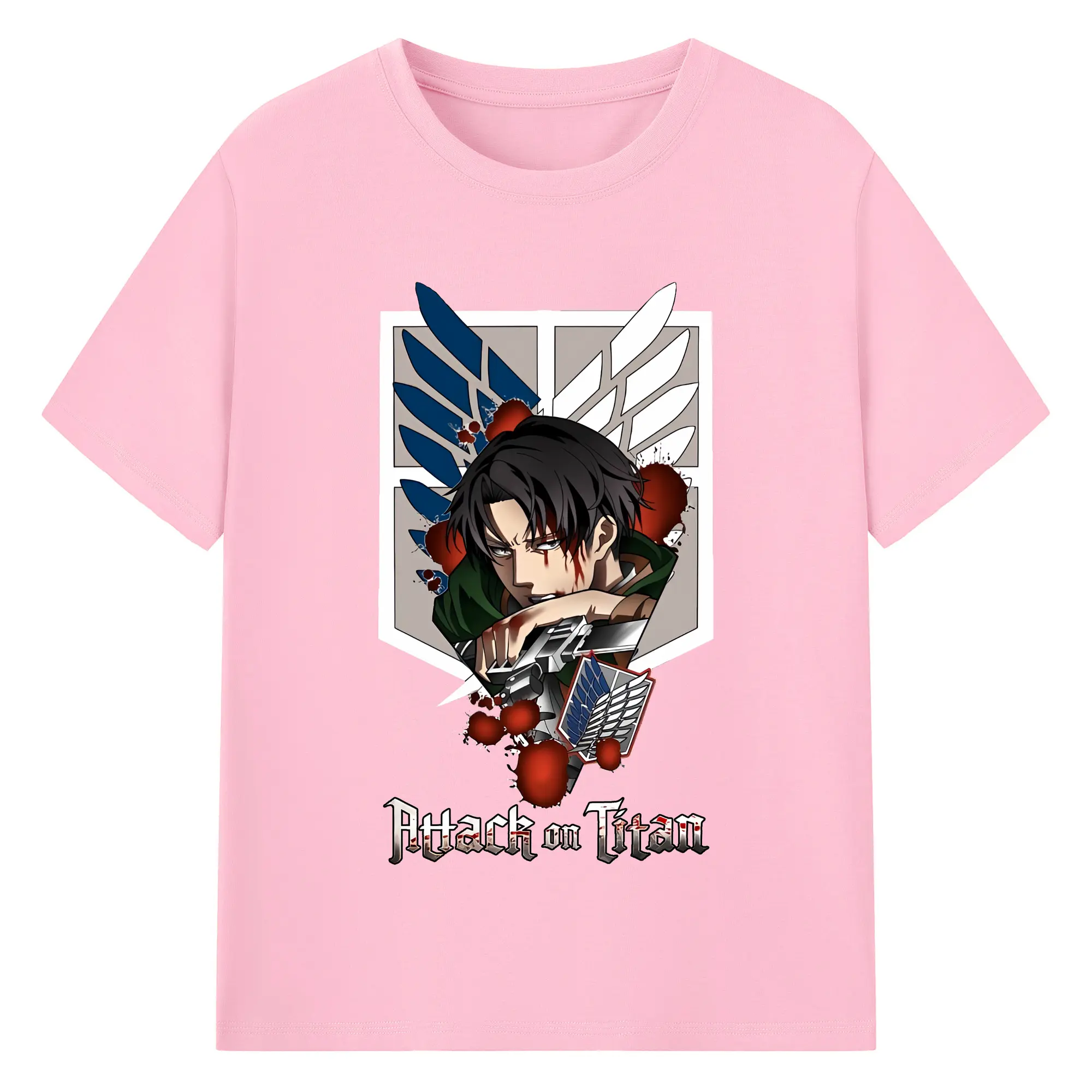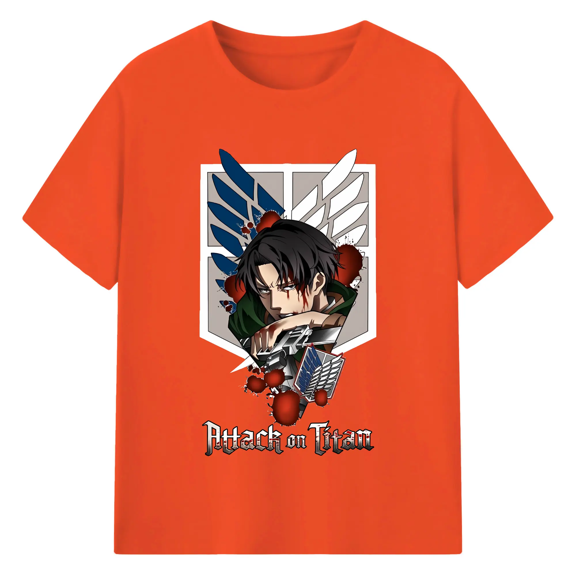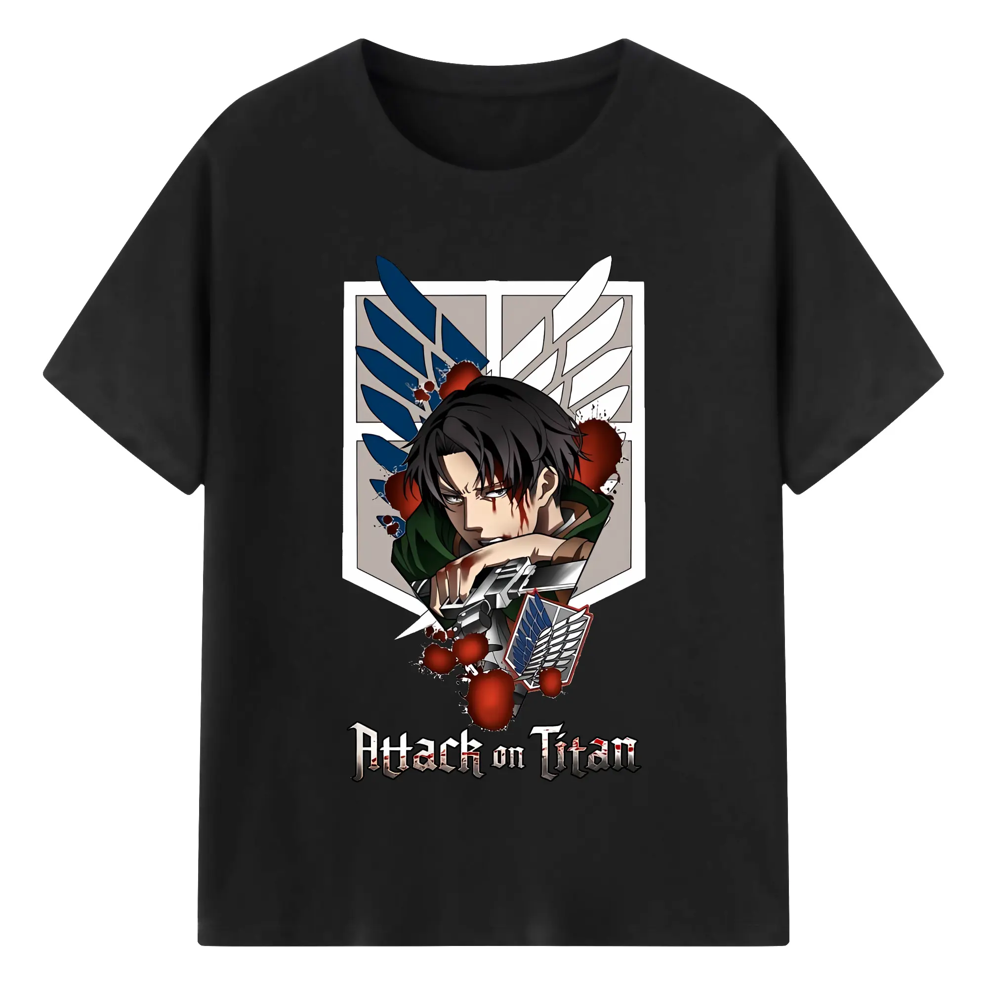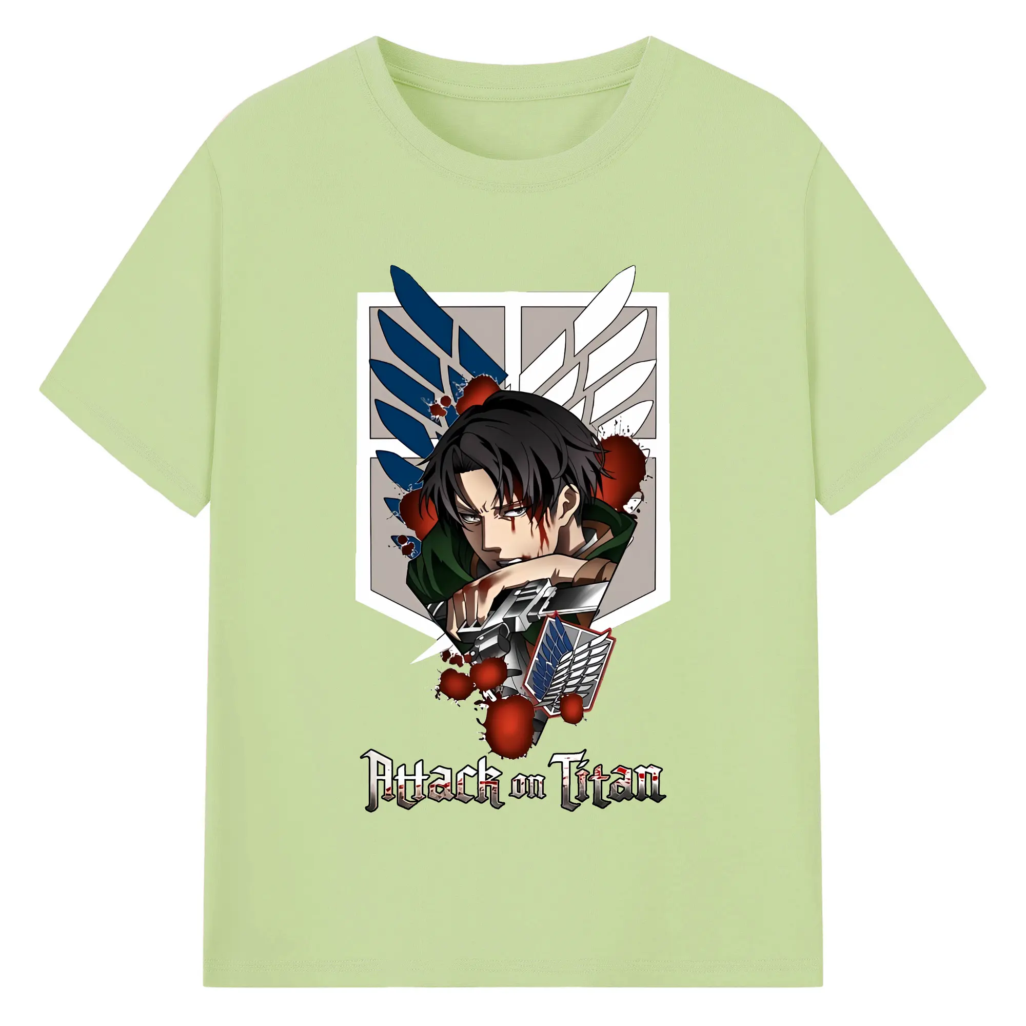 進撃の巨人 グッズ リヴァイ・アッカーマン - 綿100% 半袖Tシャツ ・ バックプリント ・ 快適 通気性 ・ 日常使い 散歩 スポーツ用