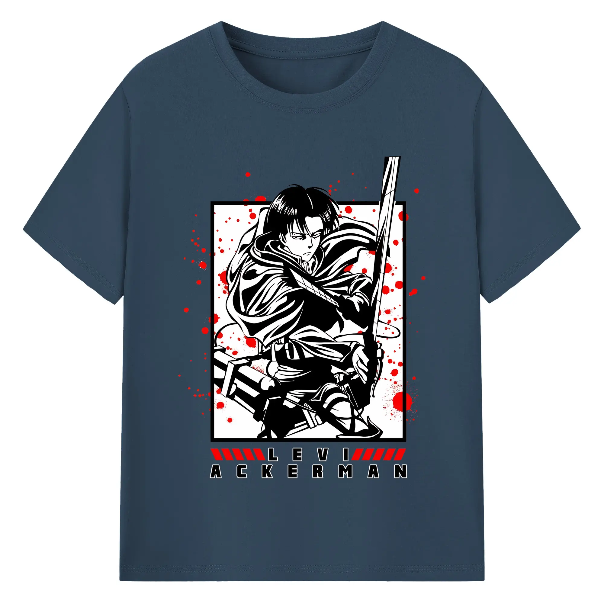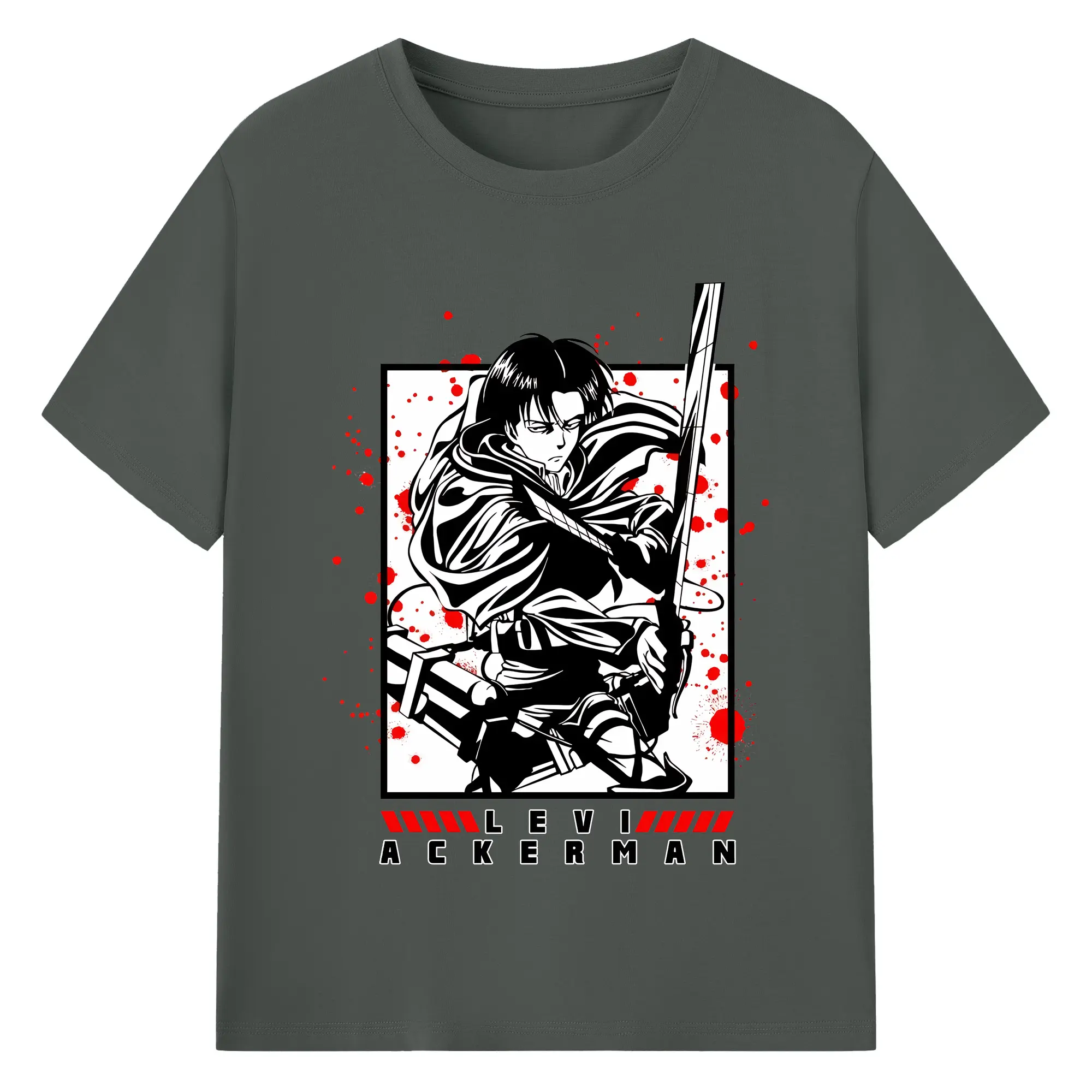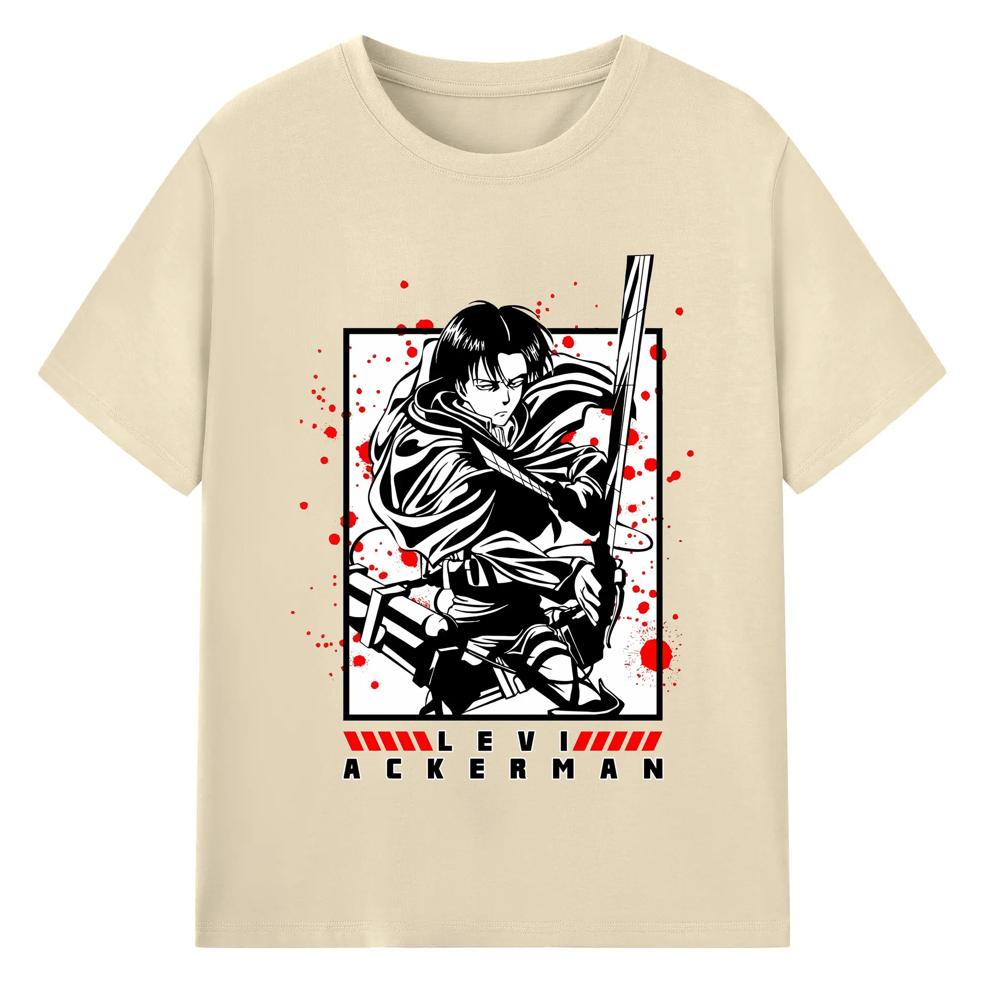 進撃の巨人 グッズ リヴァイ・アッカーマン - 綿100% ヴィンテージ風 半袖Tシャツ ・ フロントプリント ・ 柔らか肌触り ・ 通気性 快適 ・ スポーツ カジュアル 外出用