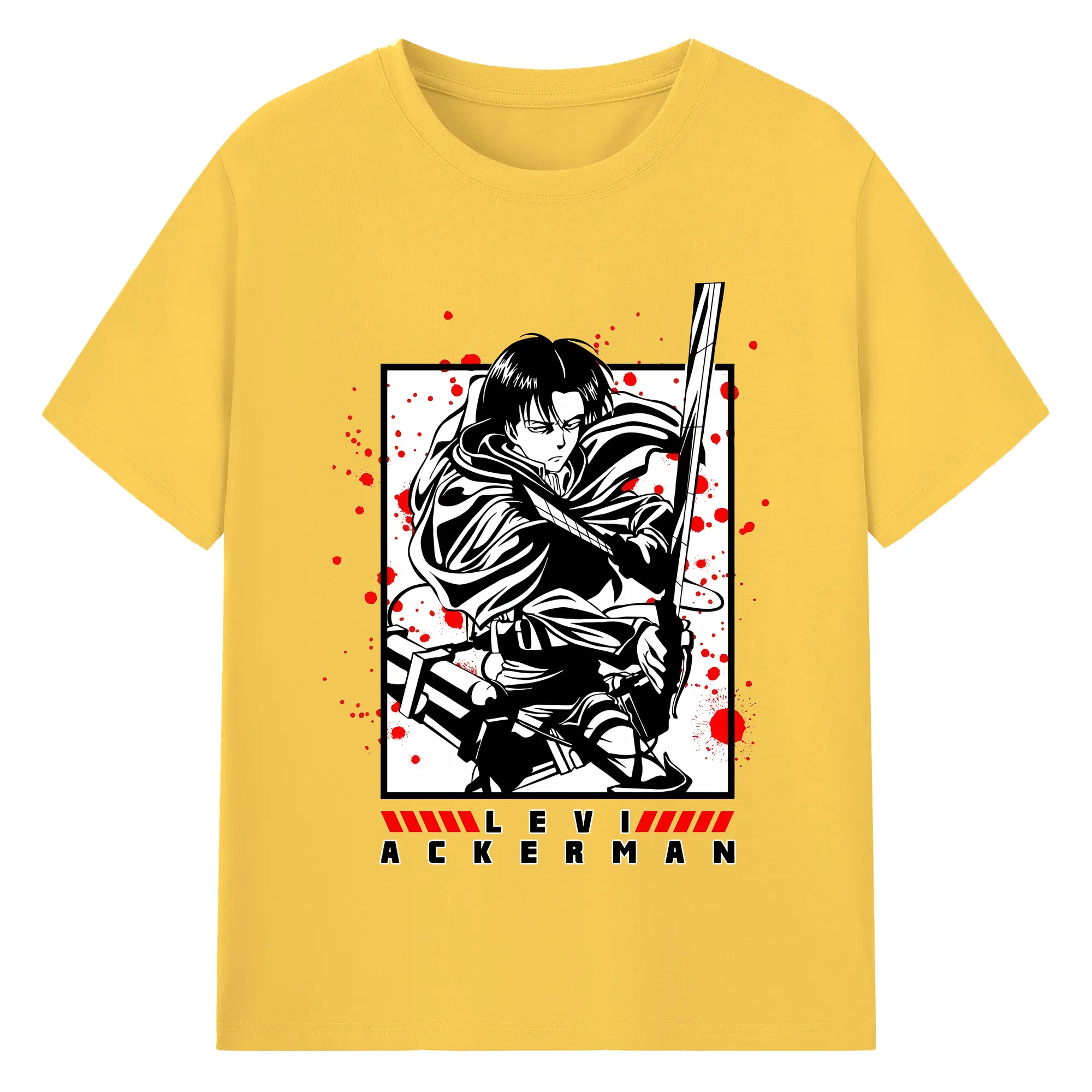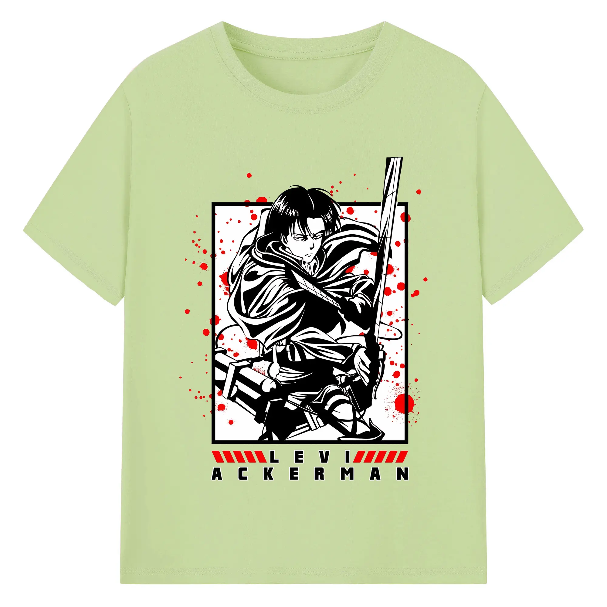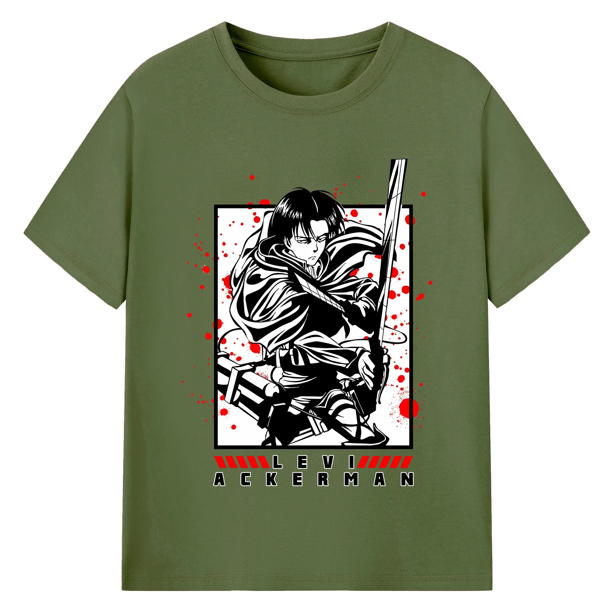 進撃の巨人 グッズ リヴァイ・アッカーマン - 綿100% ヴィンテージ風 半袖Tシャツ ・ フロントプリント ・ 柔らか肌触り ・ 通気性 快適 ・ スポーツ カジュアル 外出用