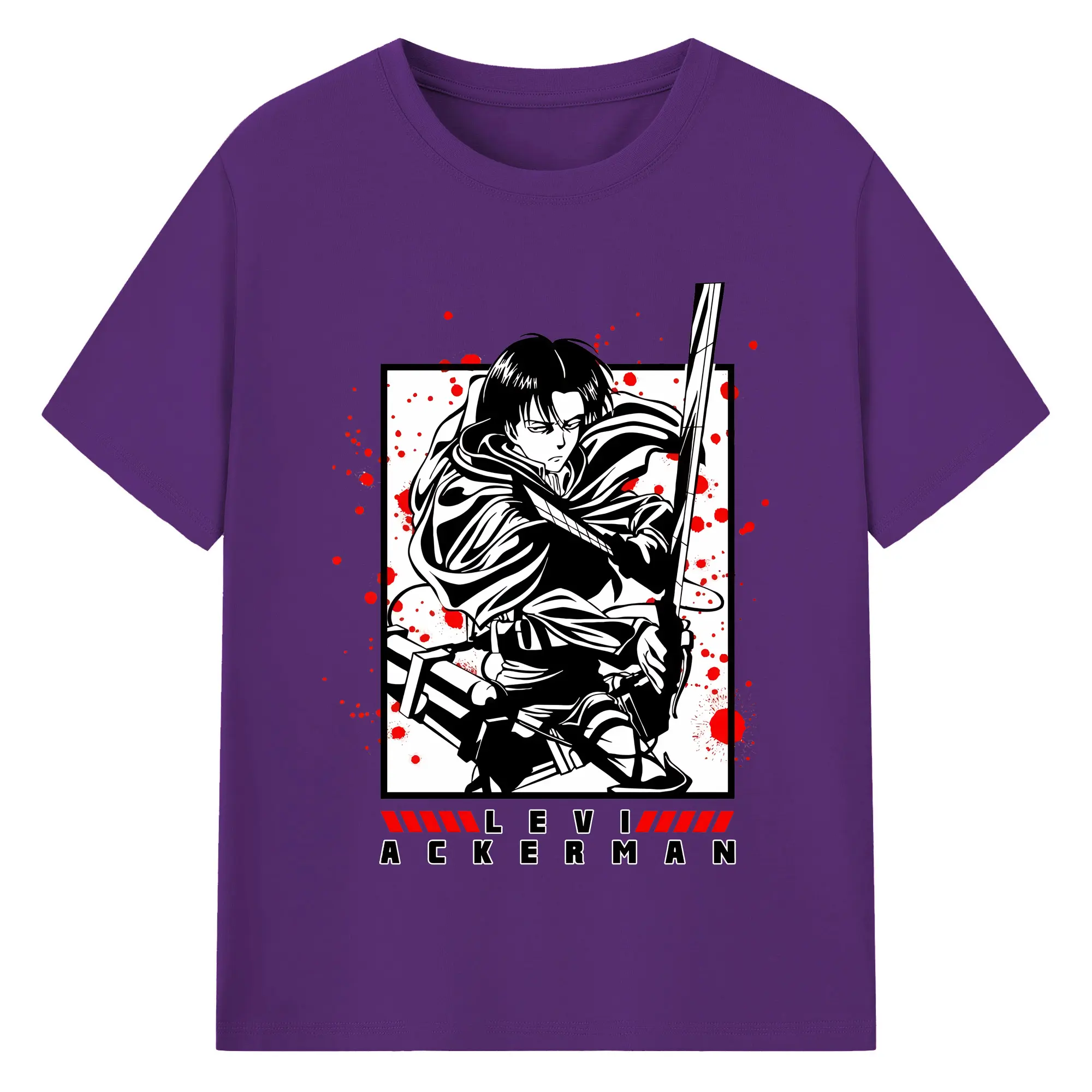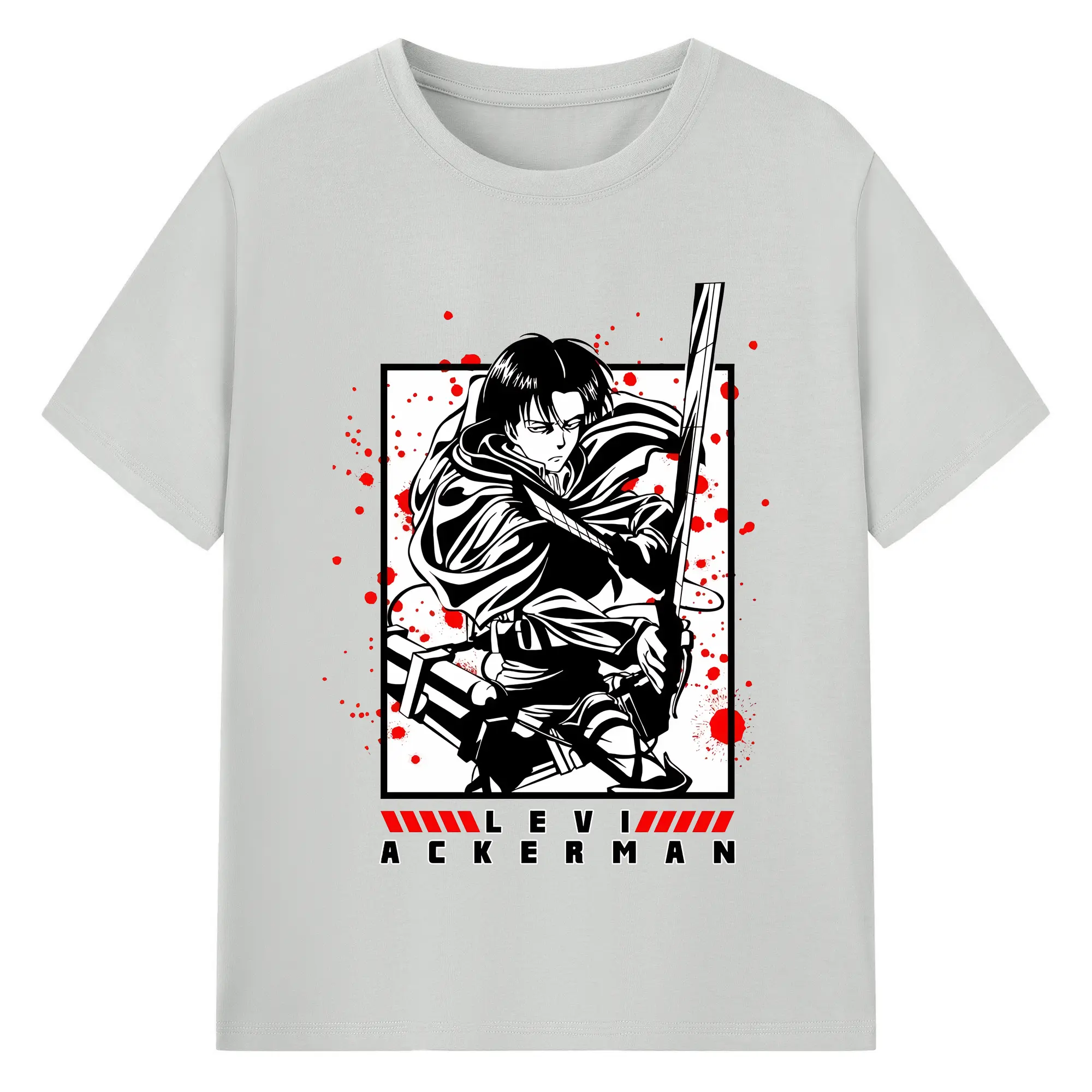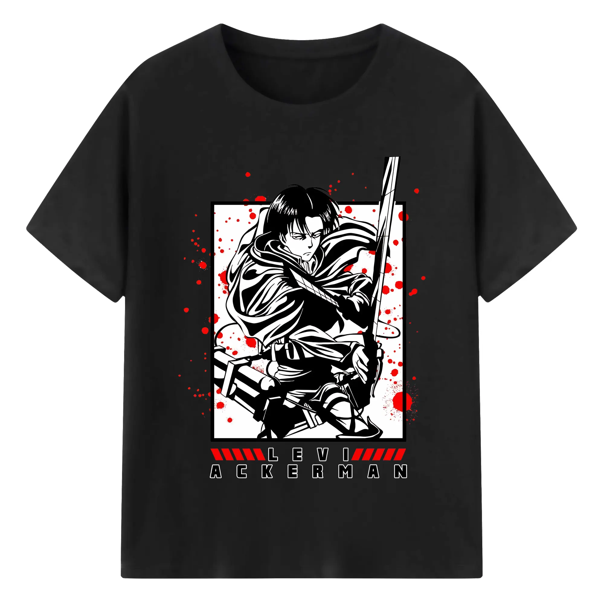 進撃の巨人 グッズ リヴァイ・アッカーマン - 綿100% 半袖Tシャツ ・ バックプリント ・ 快適 通気性 ・ 日常使い 散歩 スポーツ用