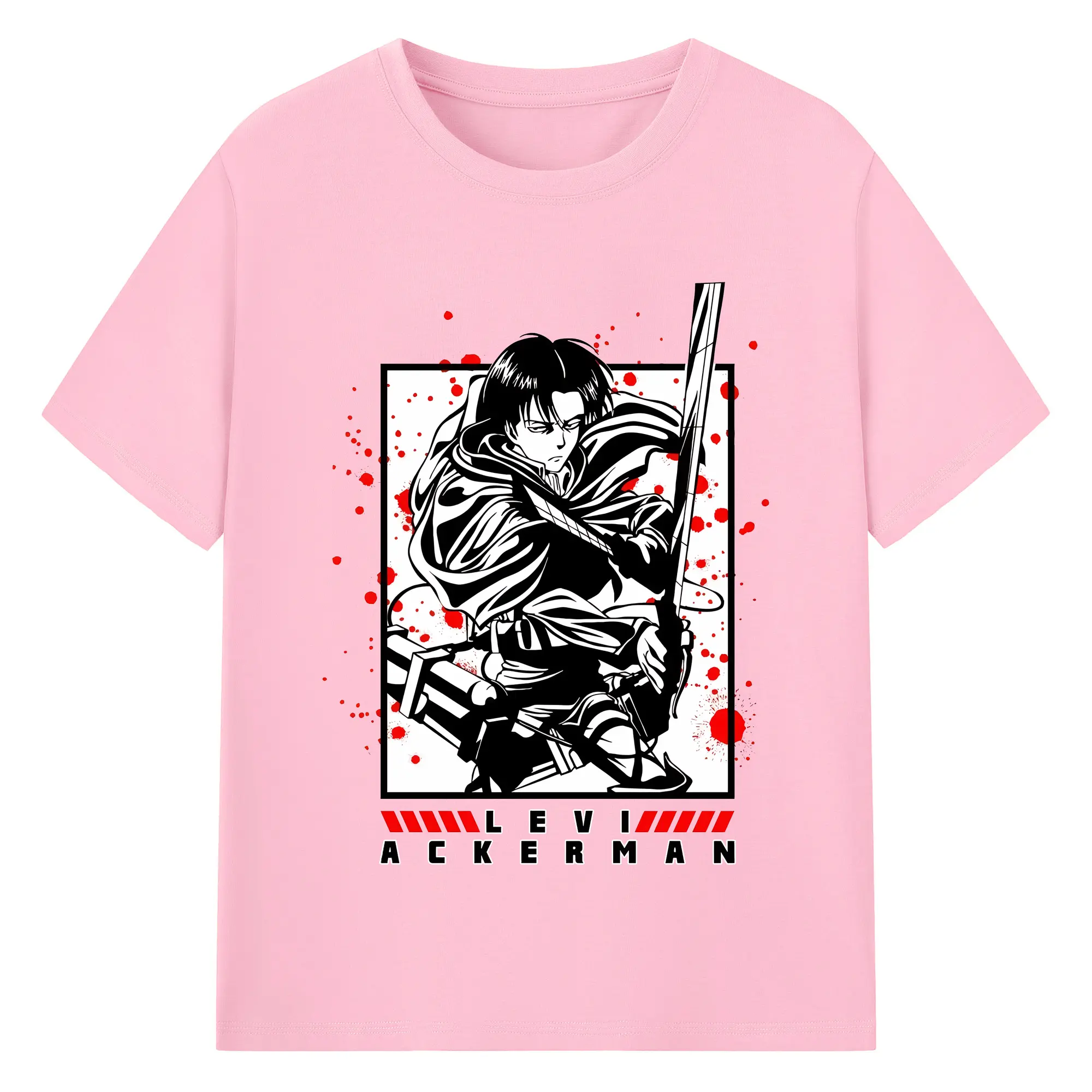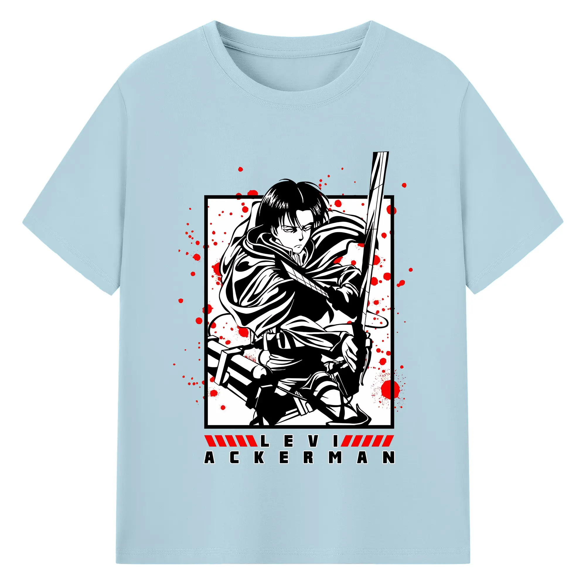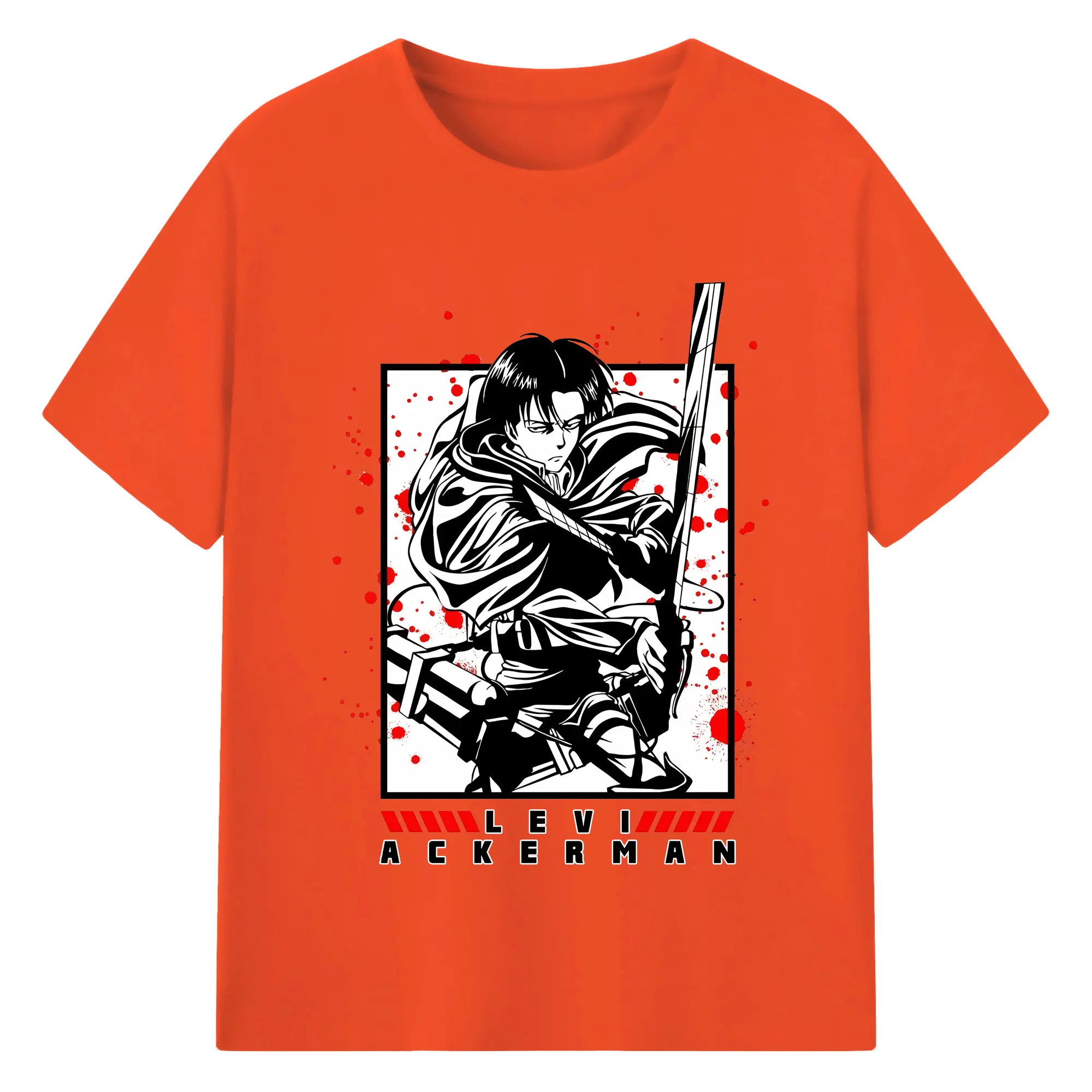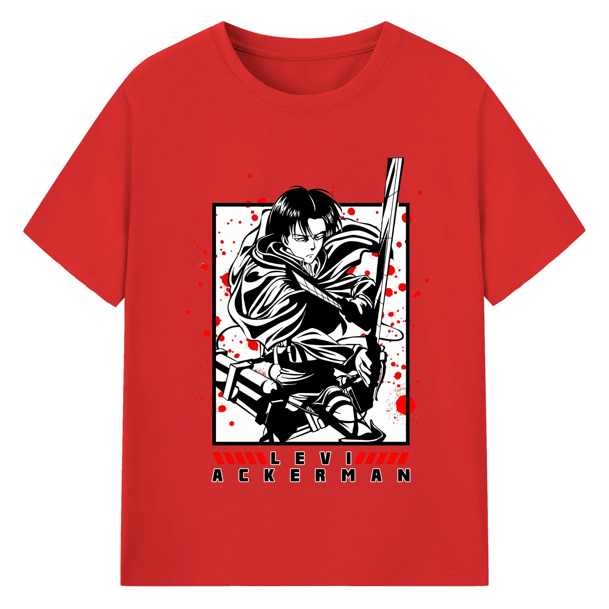 進撃の巨人 グッズ リヴァイ・アッカーマン - 綿100% 半袖Tシャツ ・ バックプリント ・ 快適 通気性 ・ 日常使い 散歩 スポーツ用