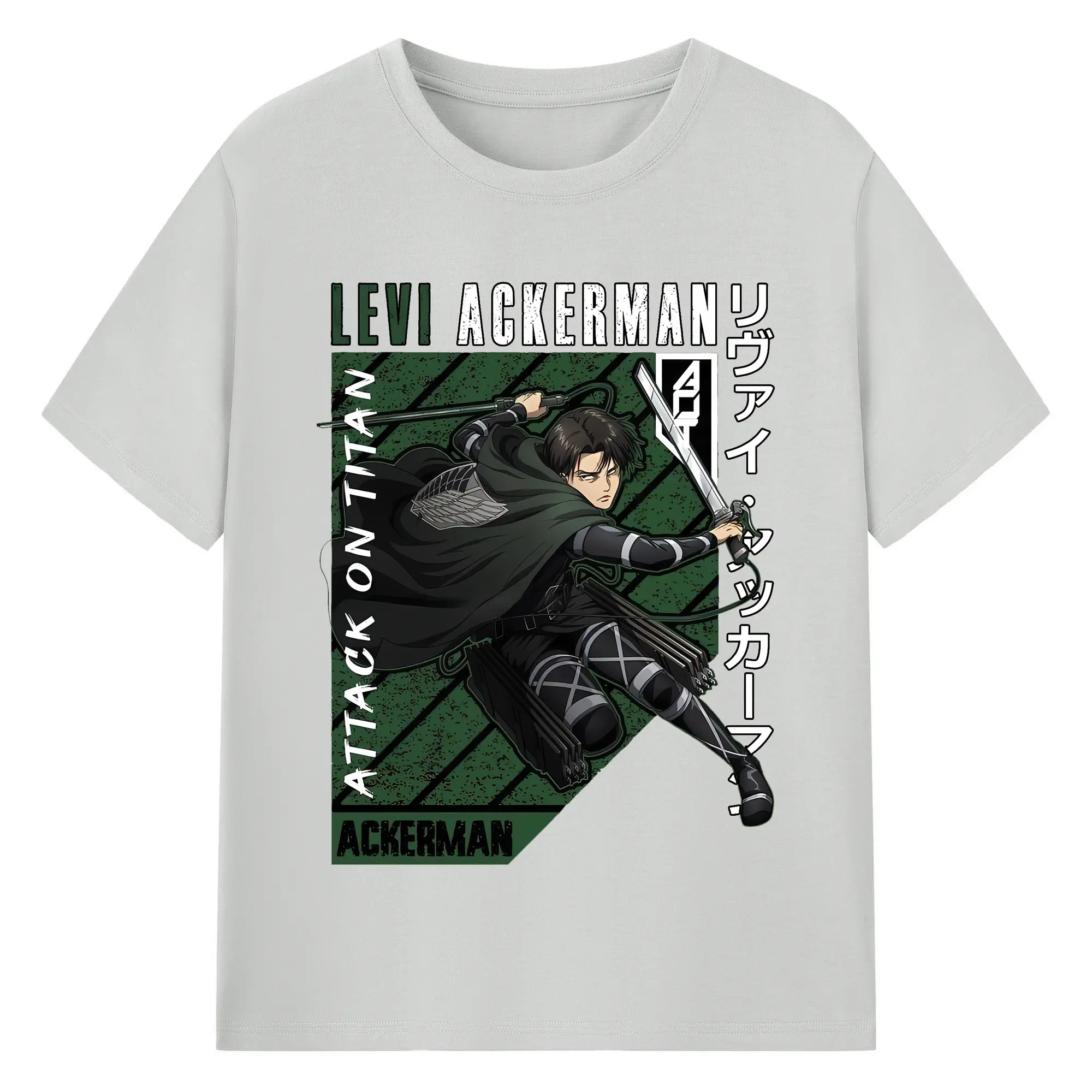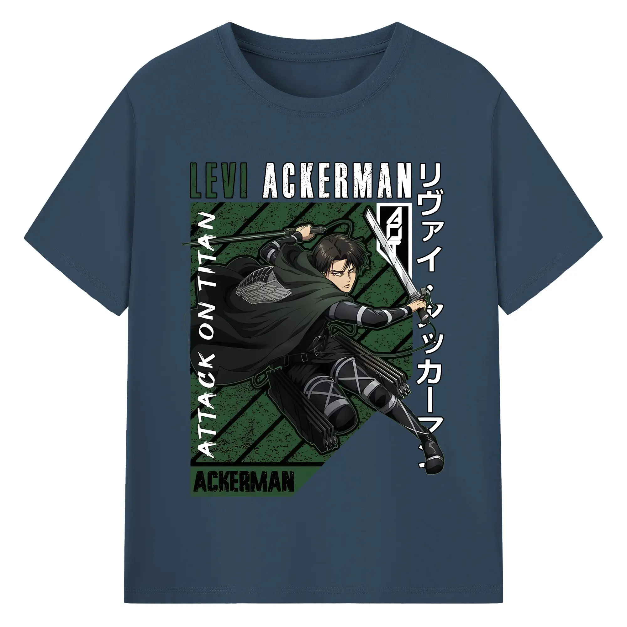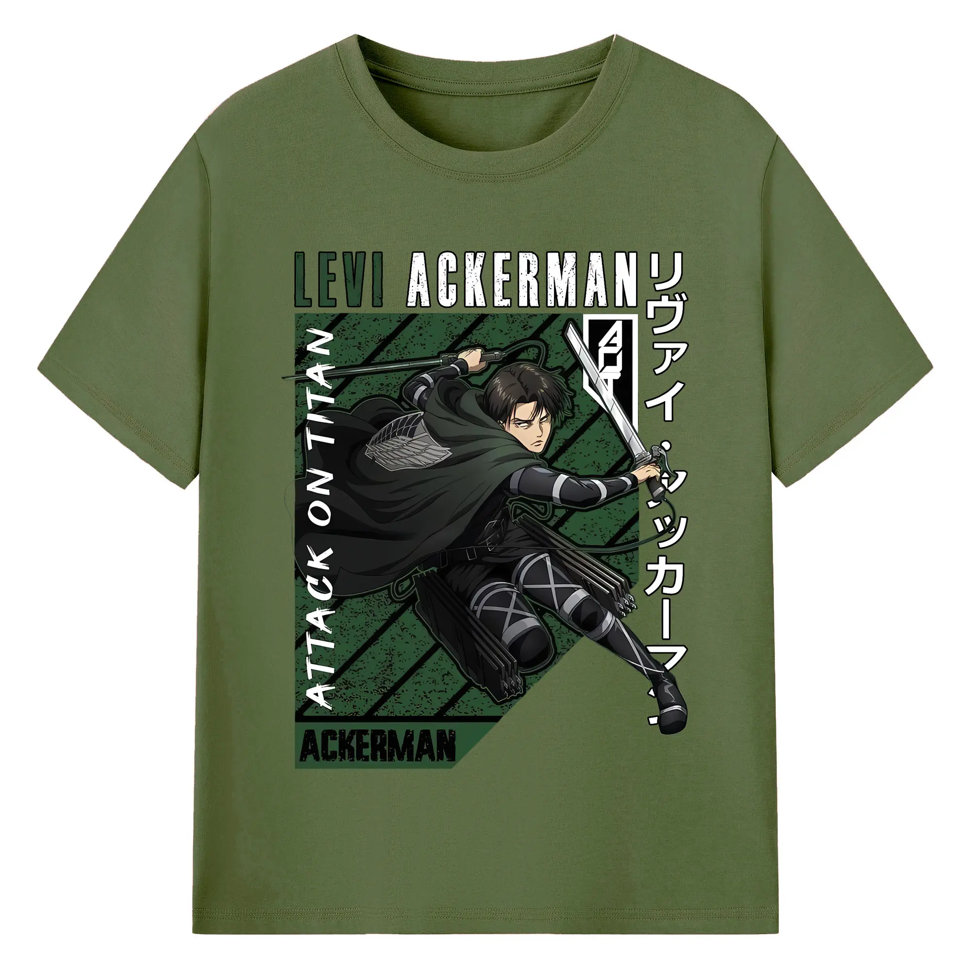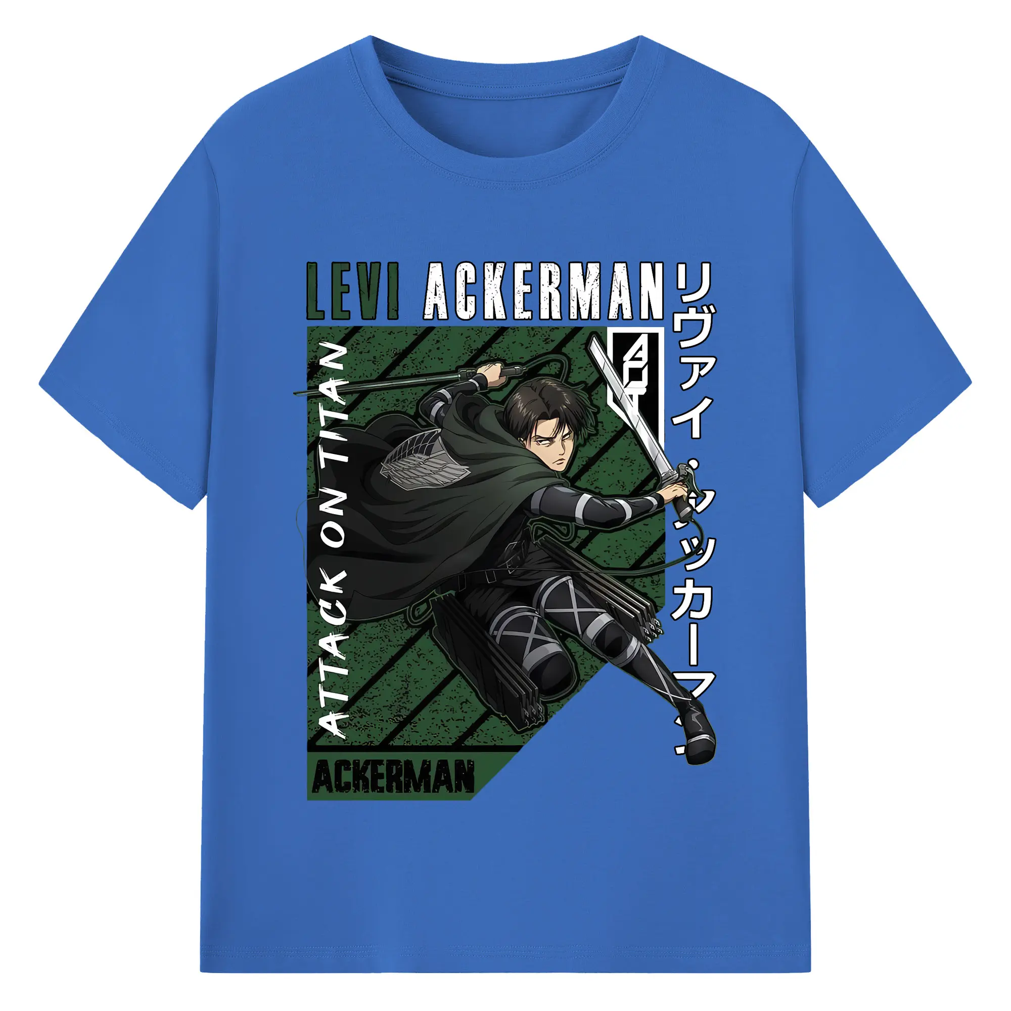 進撃の巨人 グッズ リヴァイ・アッカーマン - 綿100% 半袖Tシャツ ・ バックプリント ・ 快適 通気性 ・ 日常使い 散歩 スポーツ用