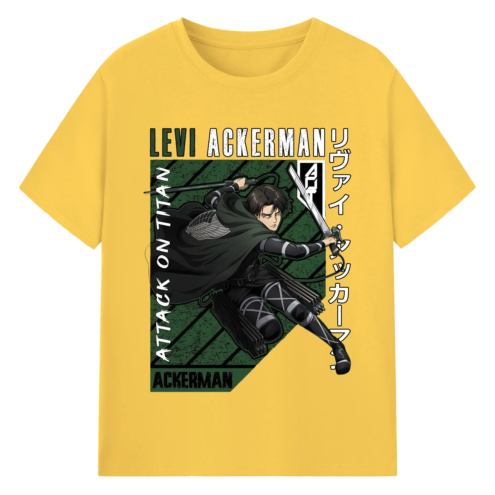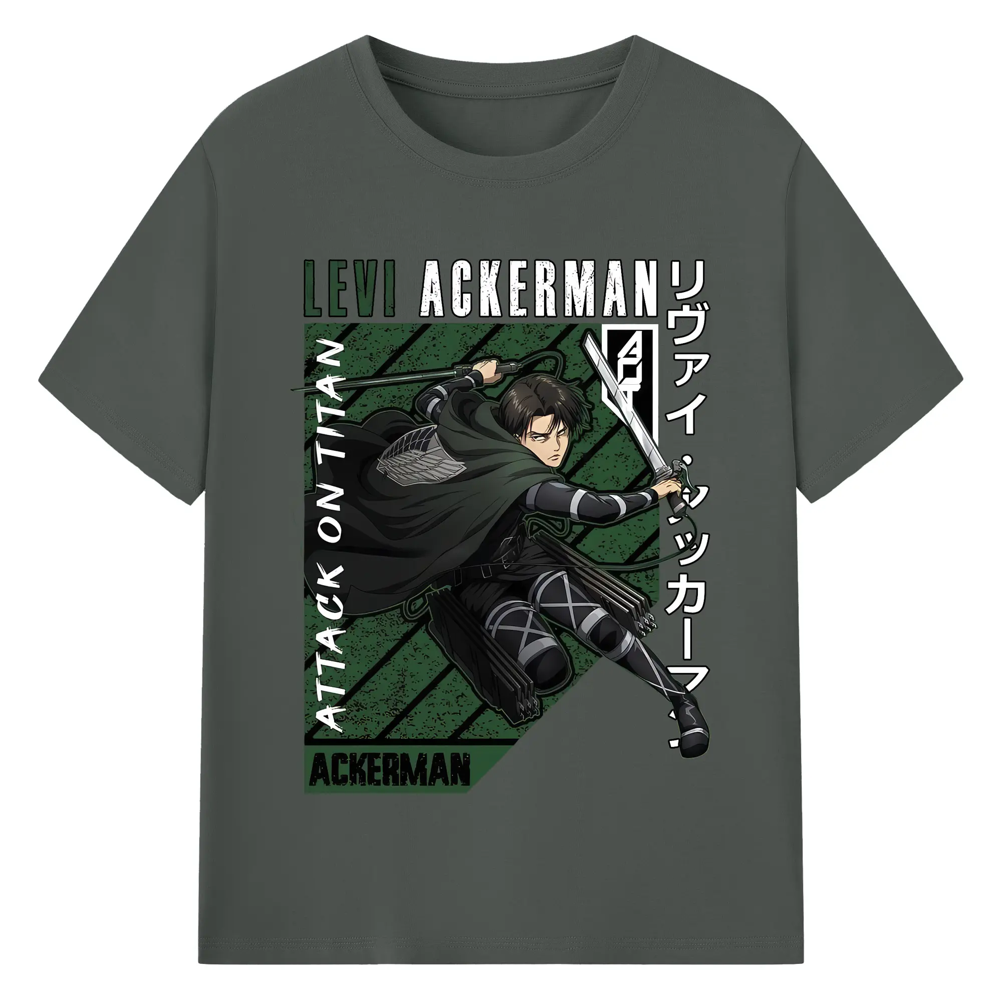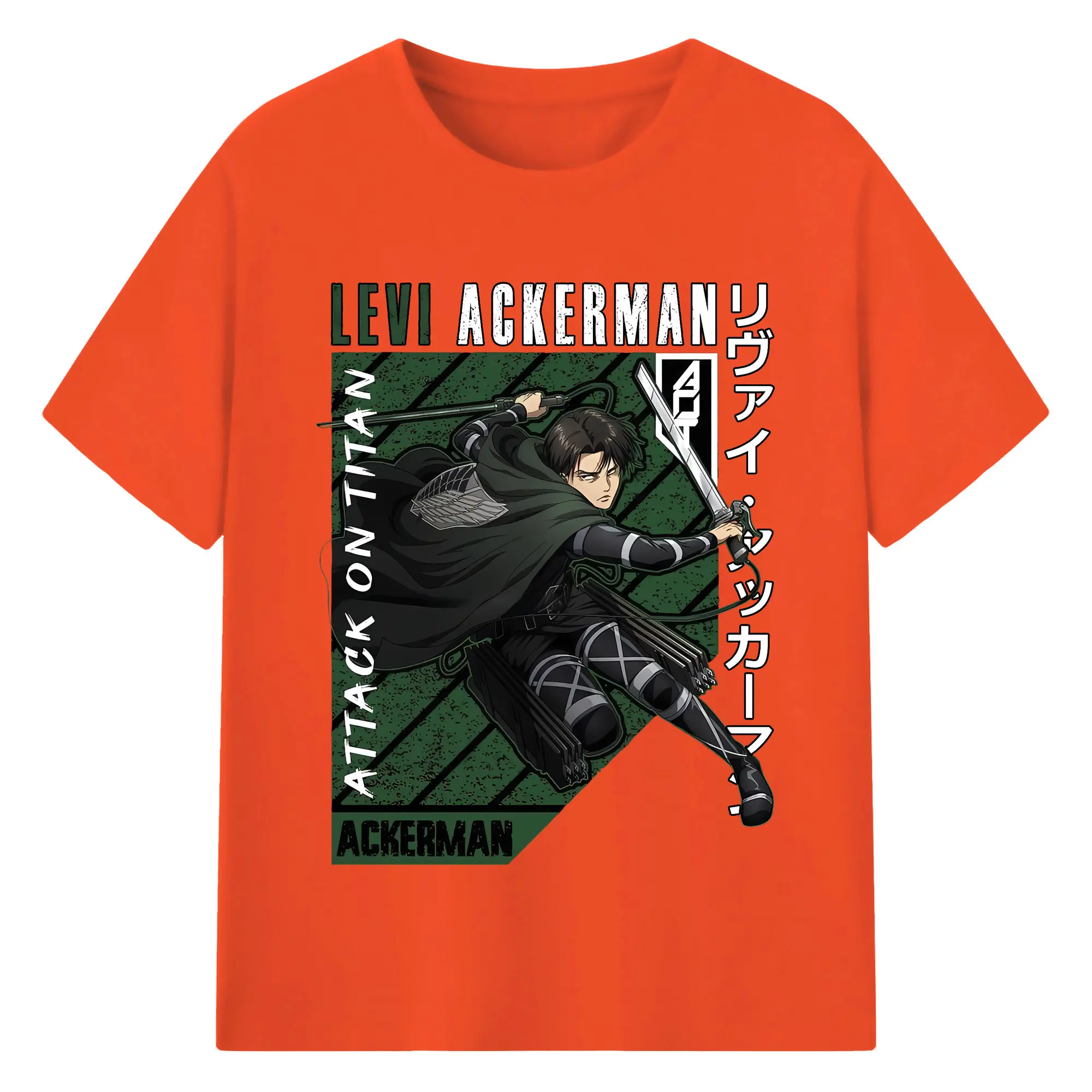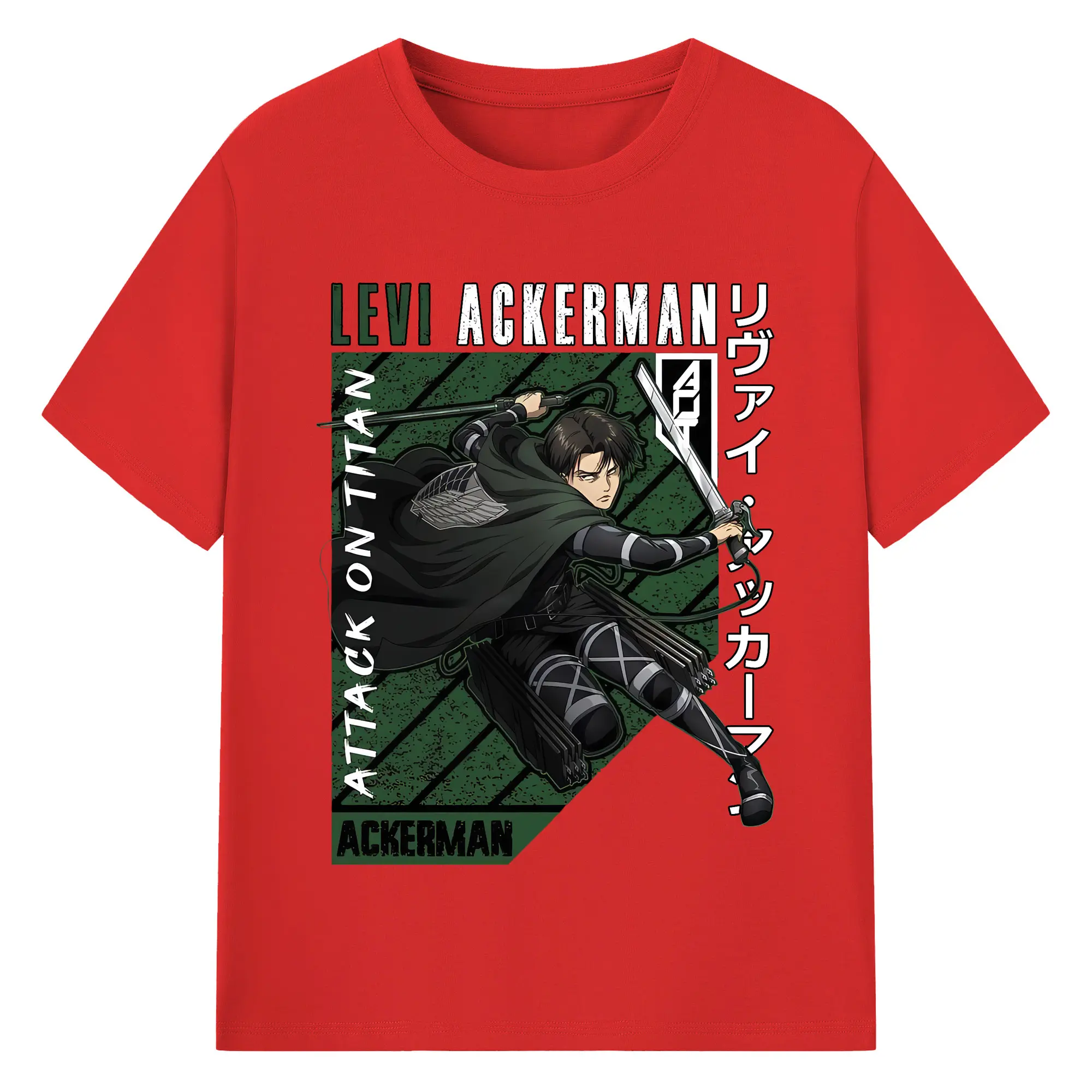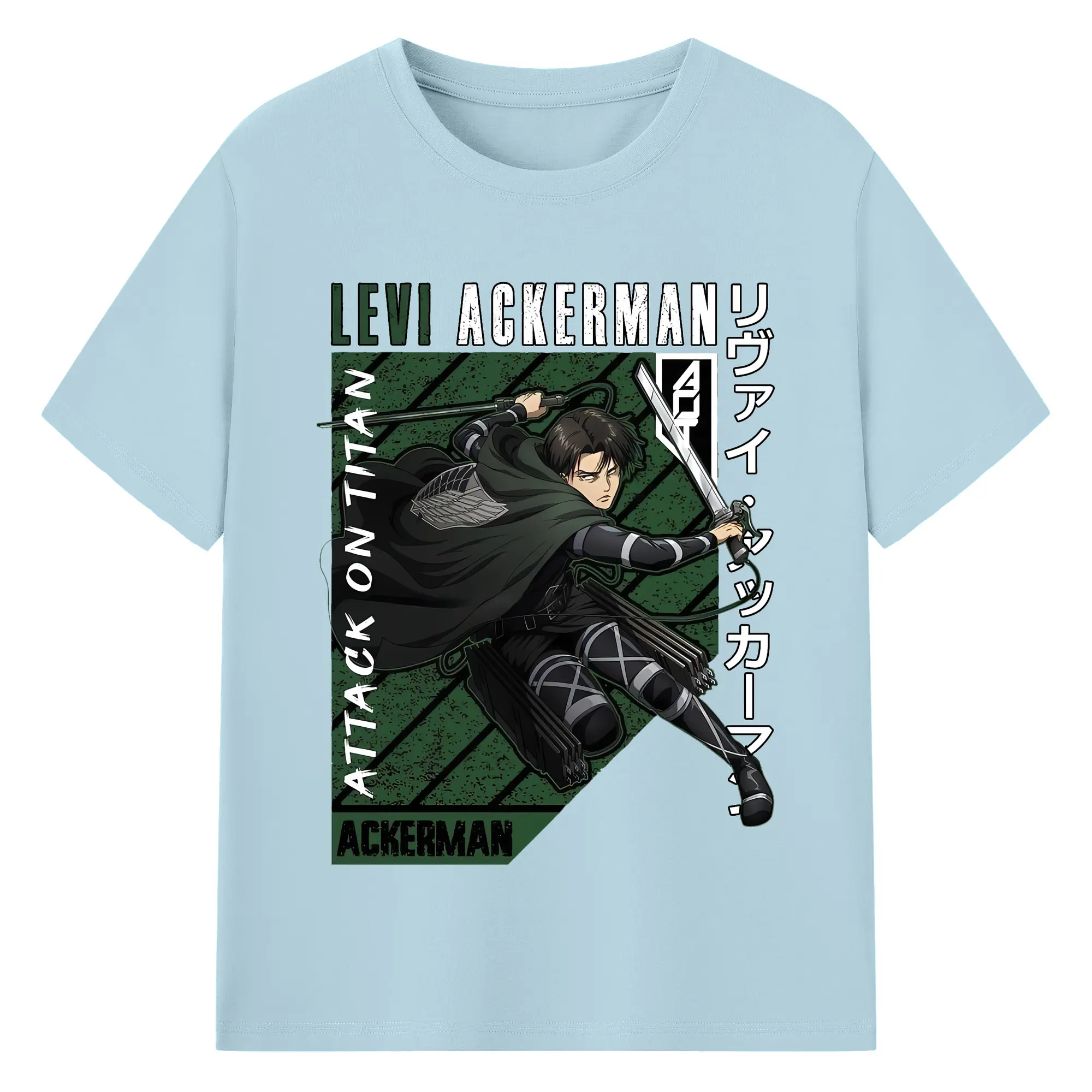進撃の巨人 グッズ リヴァイ・アッカーマン - 綿100% 半袖Tシャツ ・ バックプリント ・ 快適 通気性 ・ 日常使い 散歩 スポーツ用