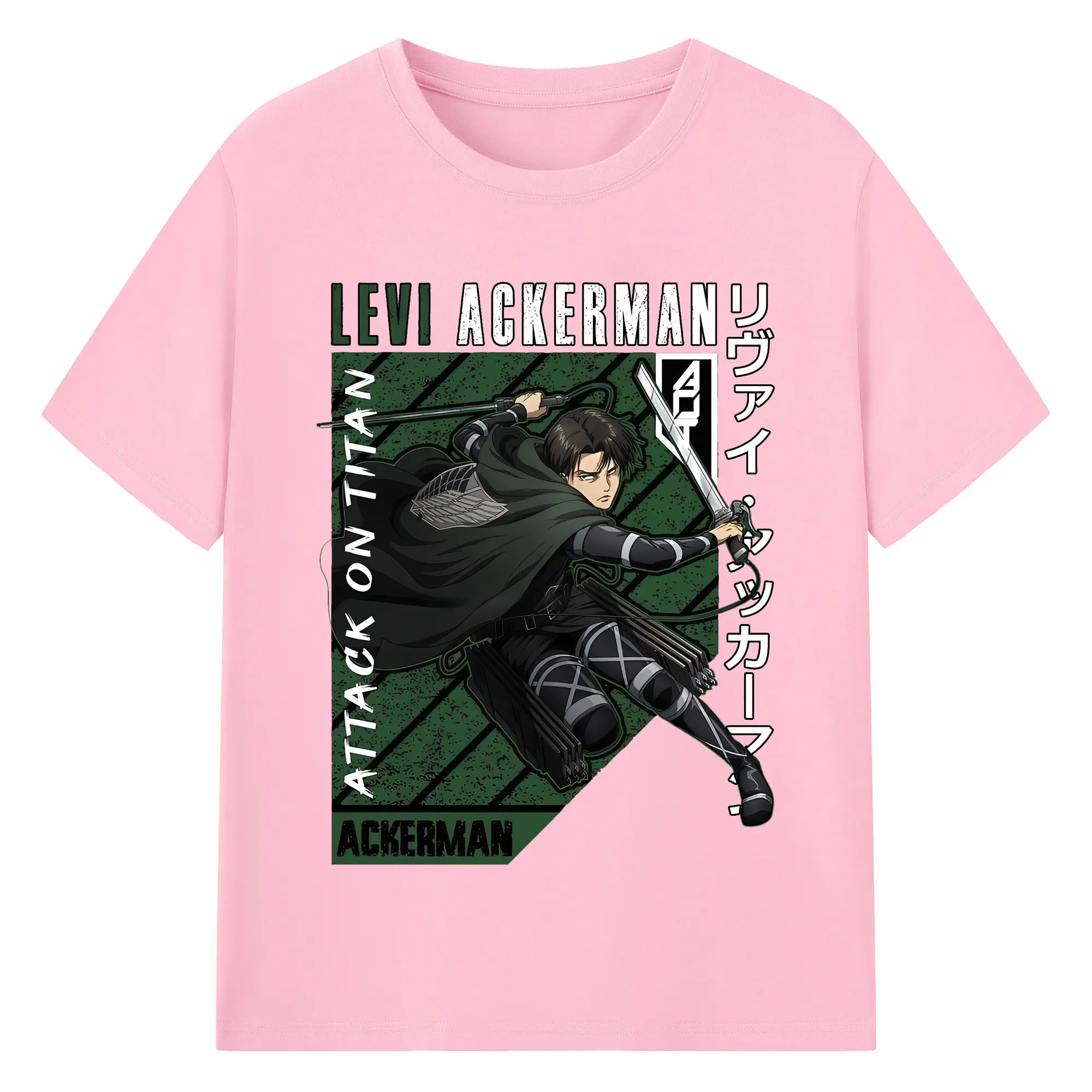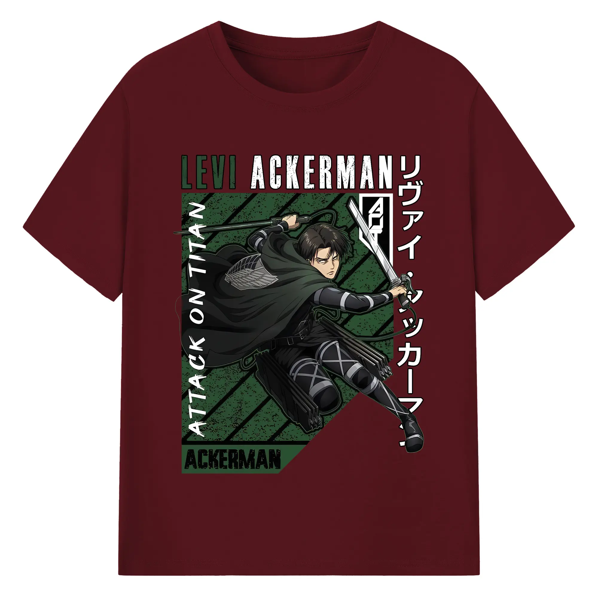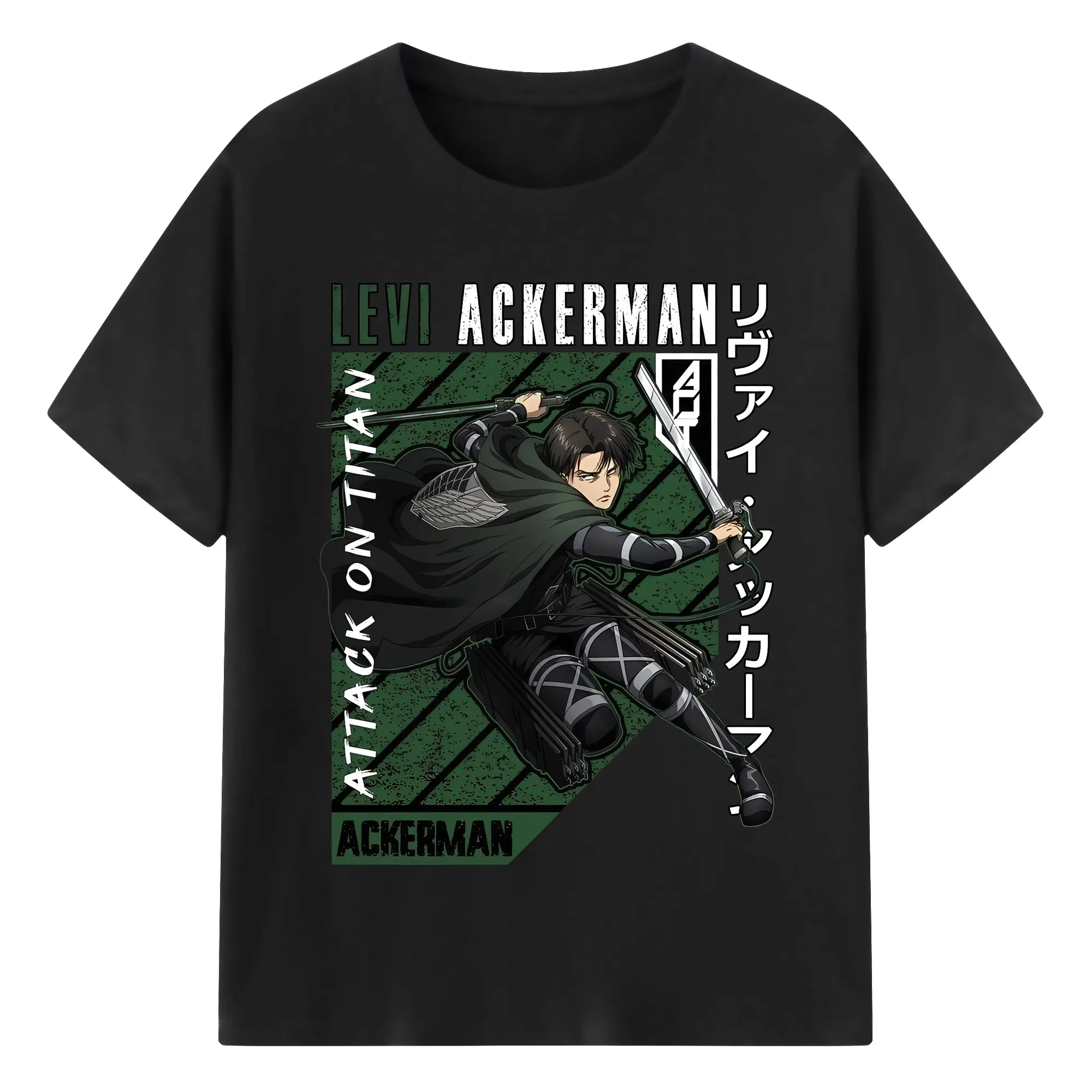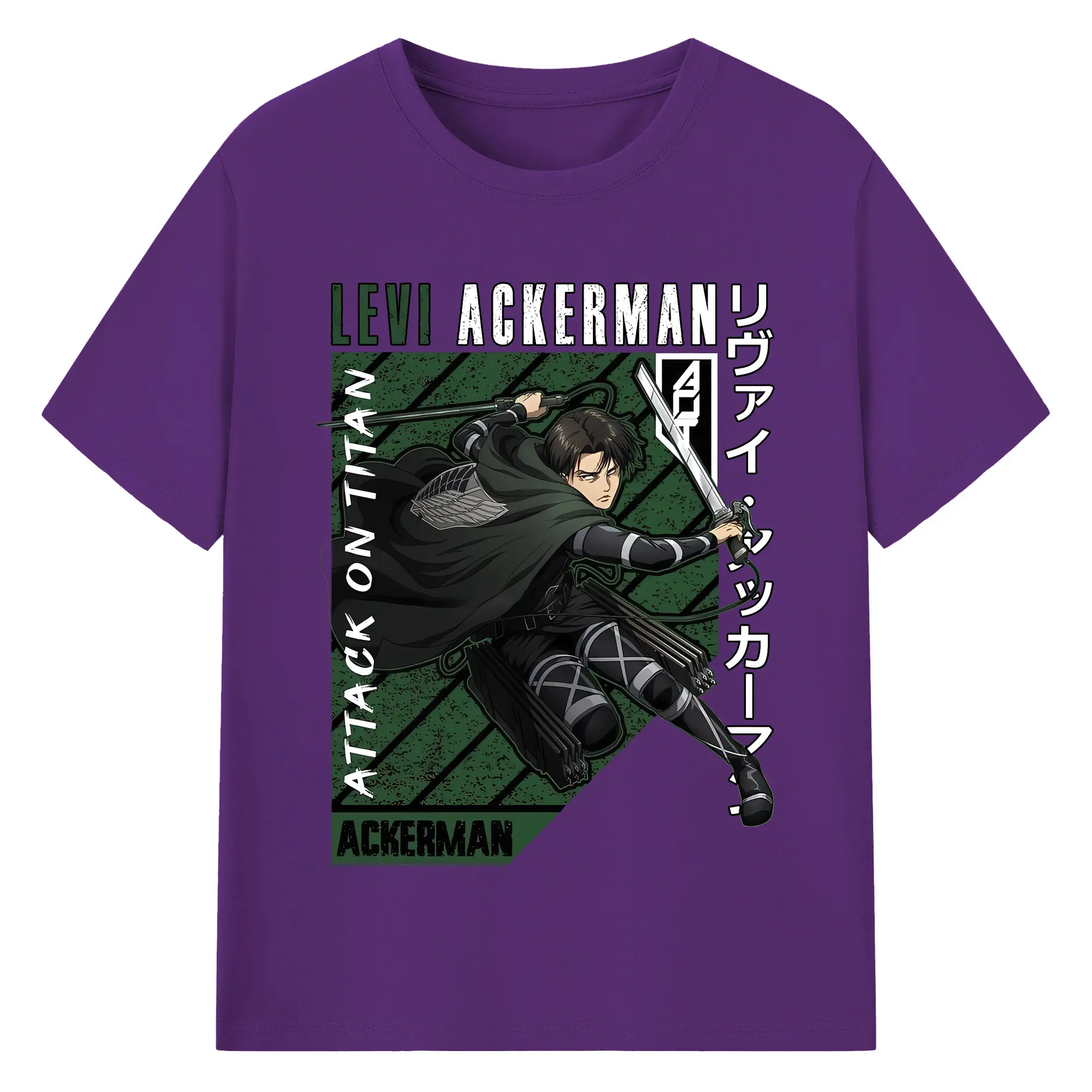 進撃の巨人 グッズ リヴァイ・アッカーマン - 綿100% 半袖Tシャツ ・ バックプリント ・ 快適 通気性 ・ 日常使い 散歩 スポーツ用