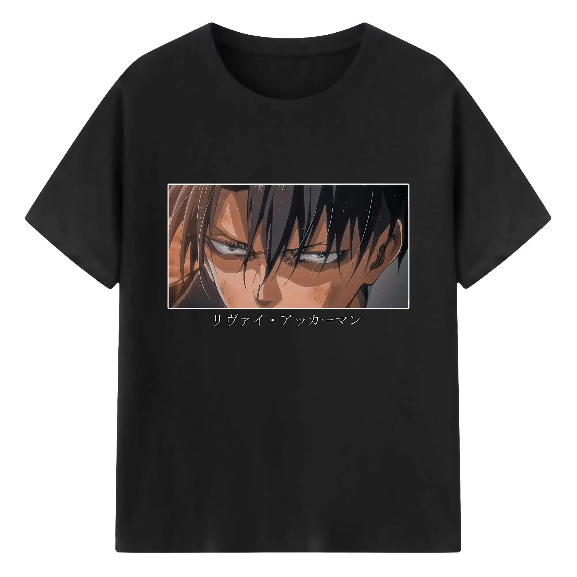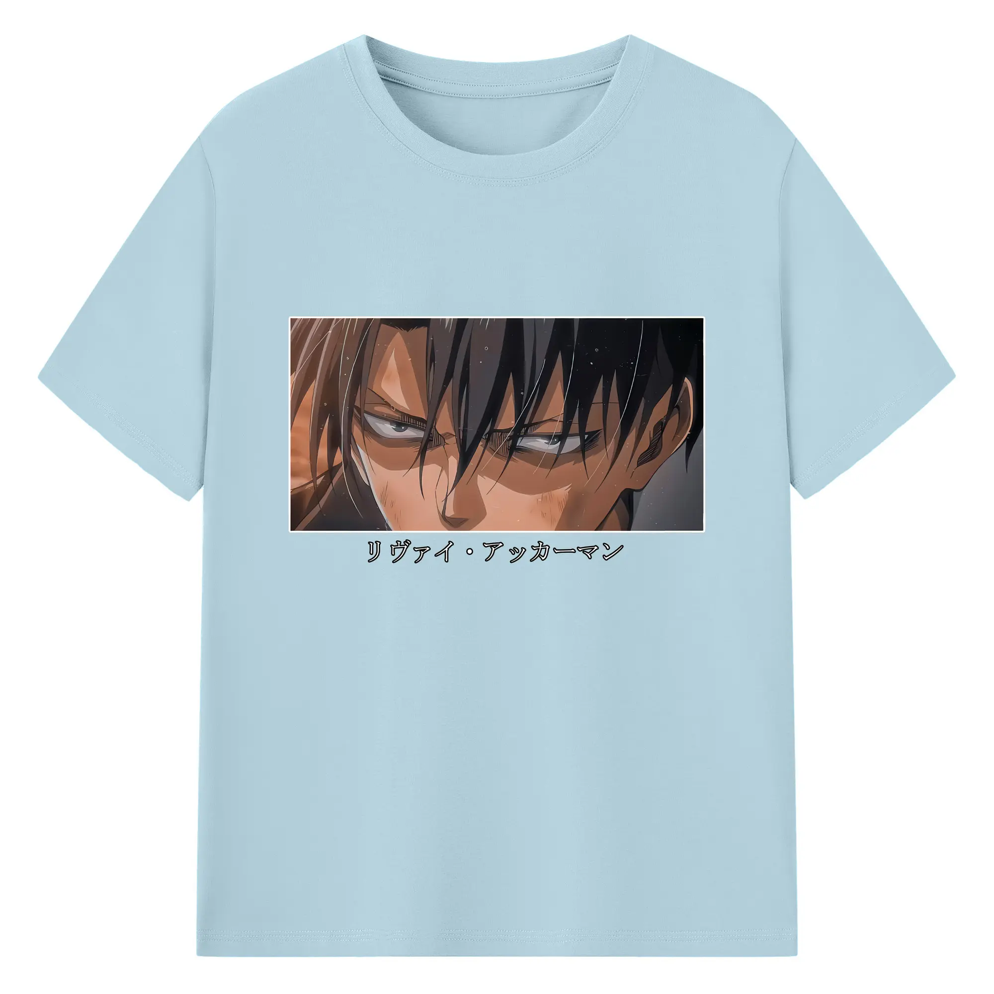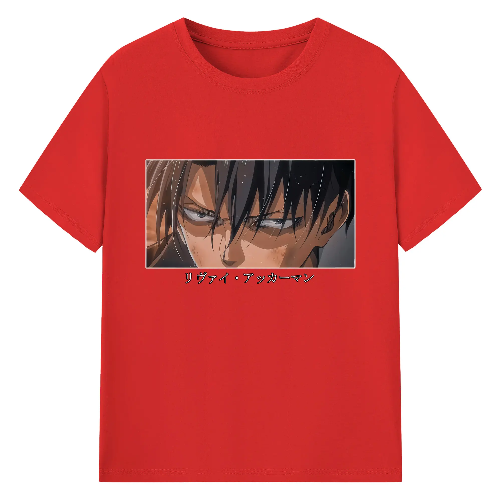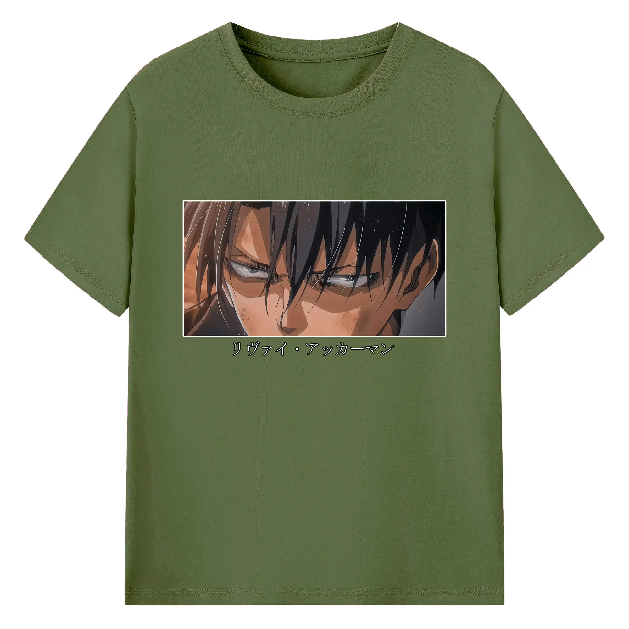 進撃の巨人 グッズ リヴァイ・アッカーマン - 綿100% 半袖Tシャツ ・ バックプリント ・ 快適 通気性 ・ 日常使い 散歩 スポーツ用