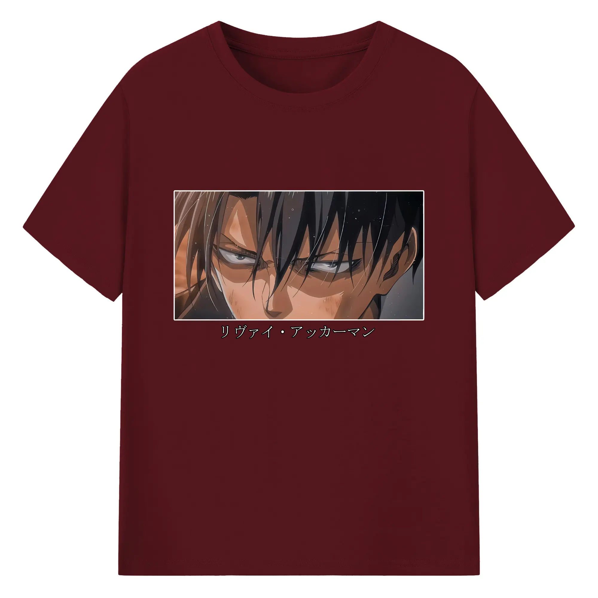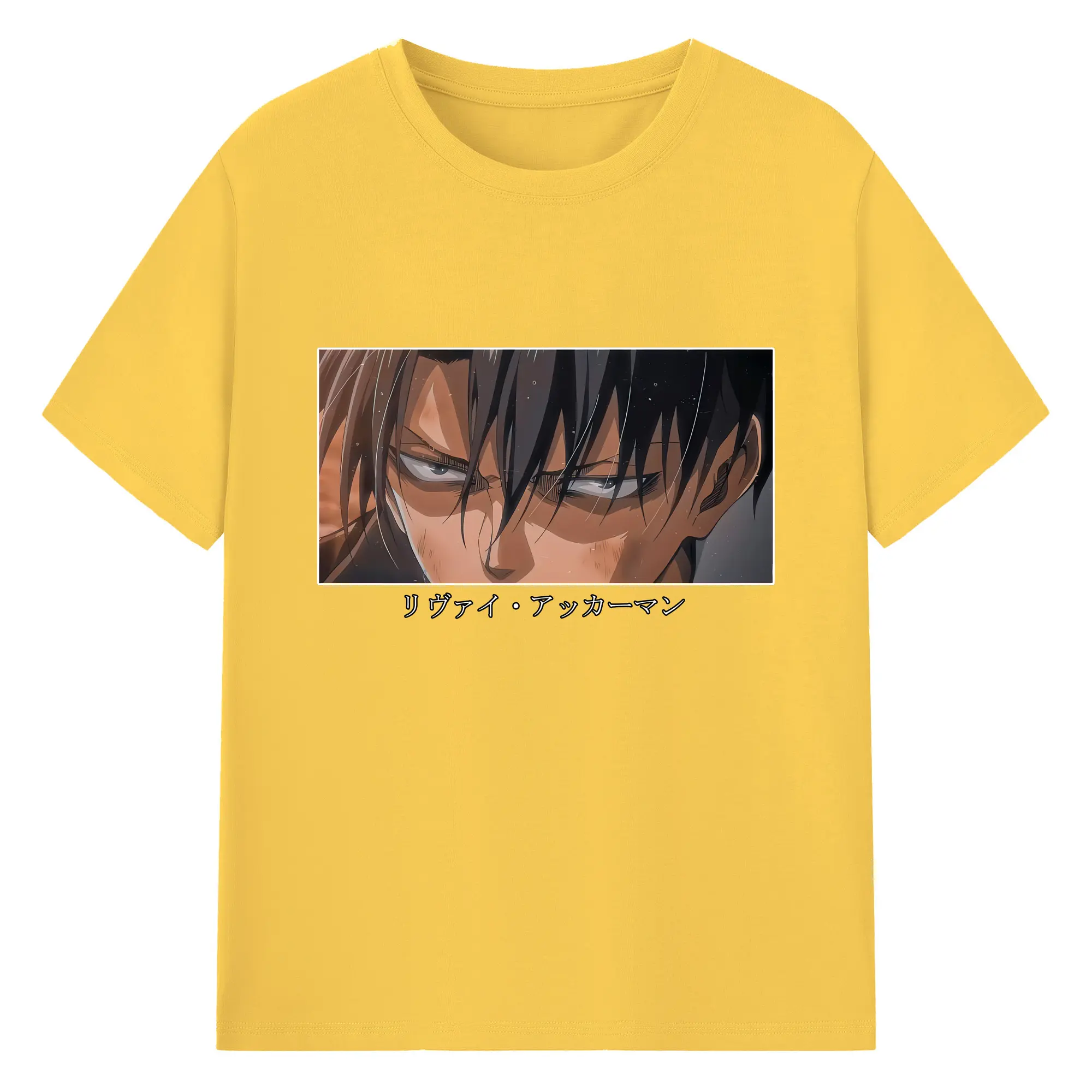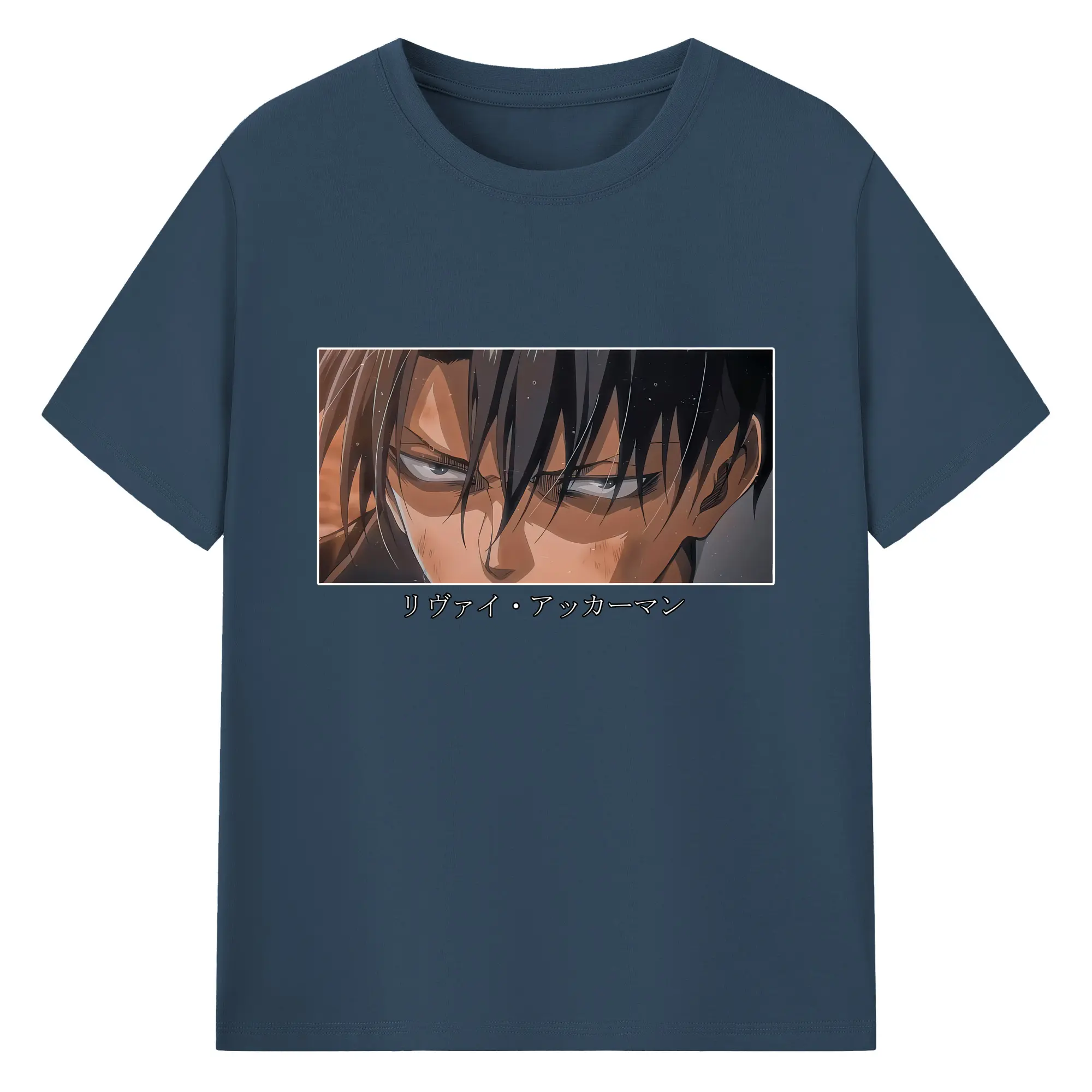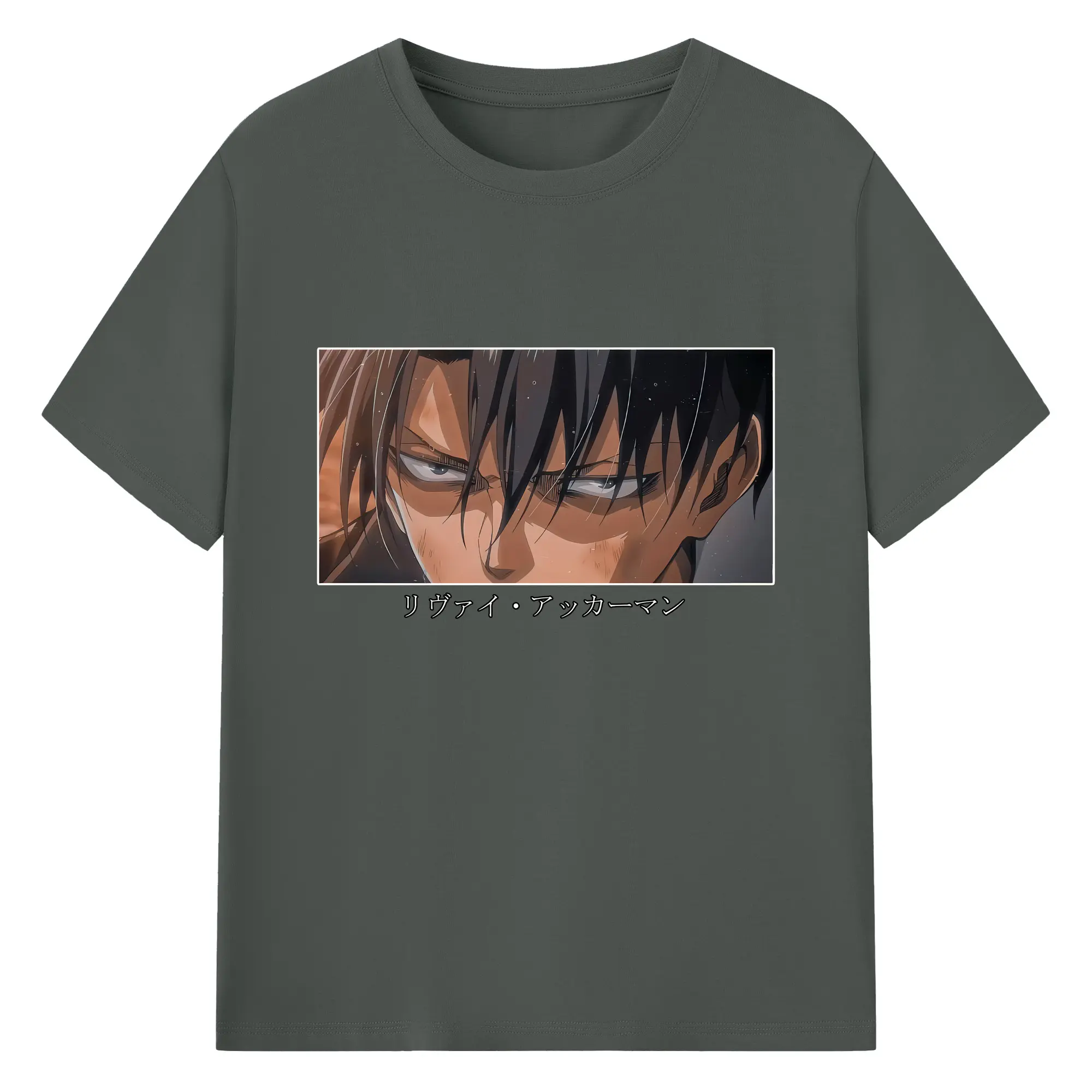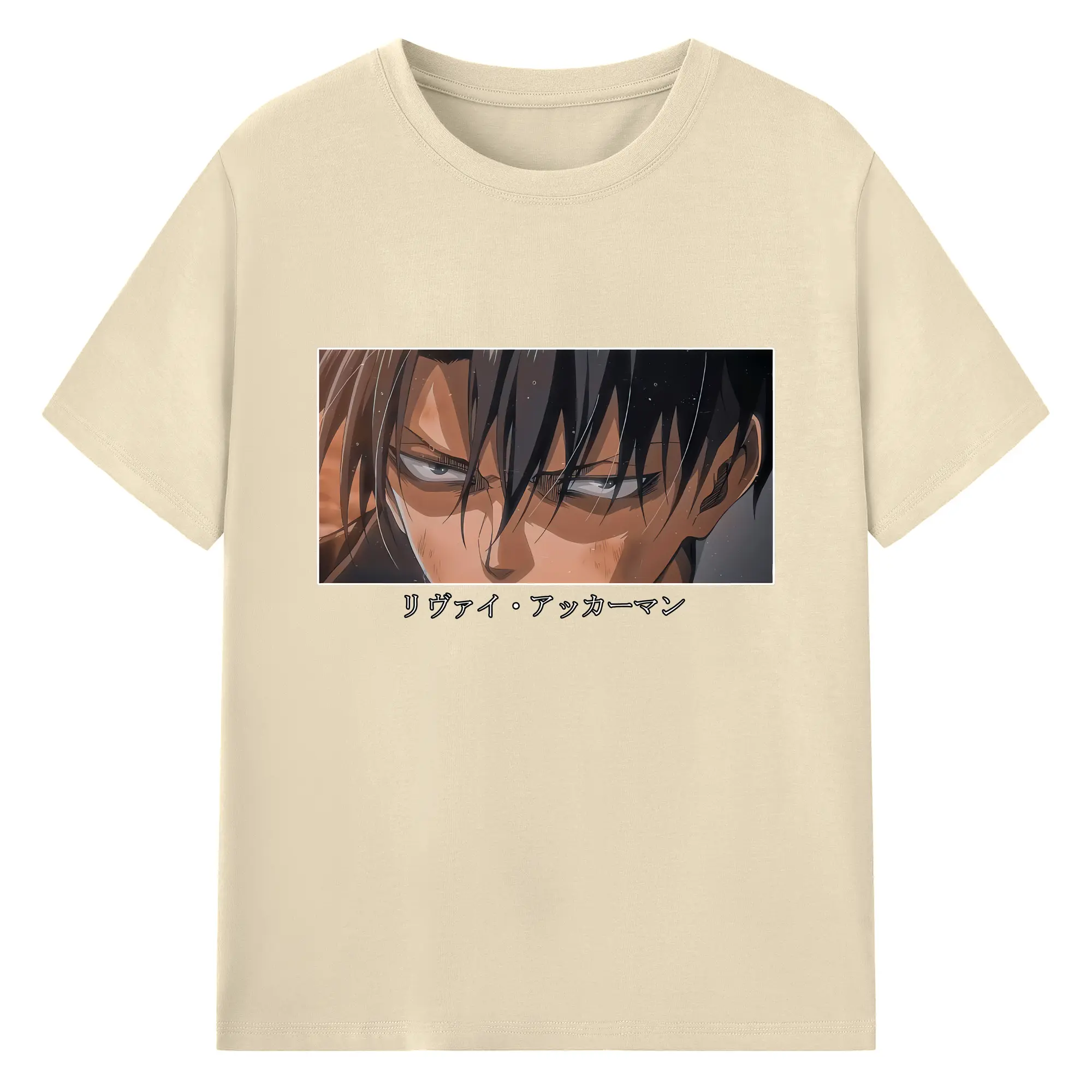 進撃の巨人 グッズ リヴァイ・アッカーマン - 綿100% ヴィンテージ風 半袖Tシャツ ・ フロントプリント ・ 柔らか肌触り ・ 通気性 快適 ・ スポーツ カジュアル 外出用