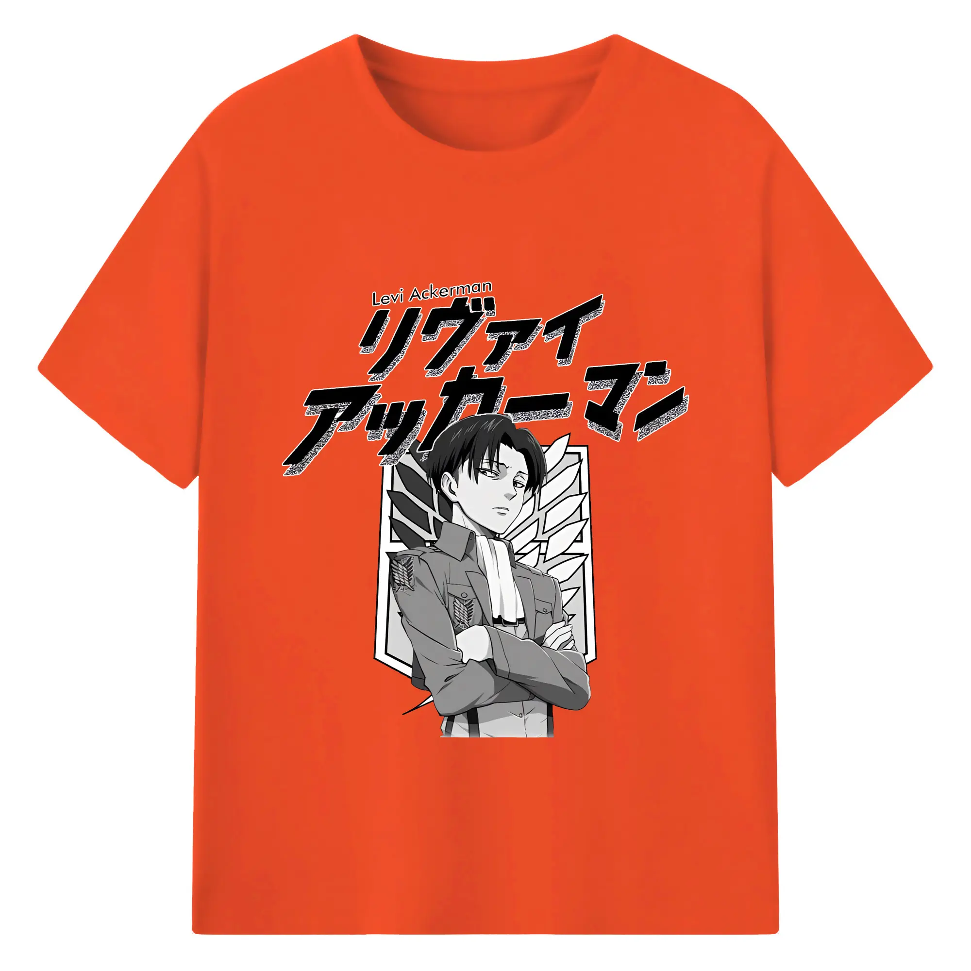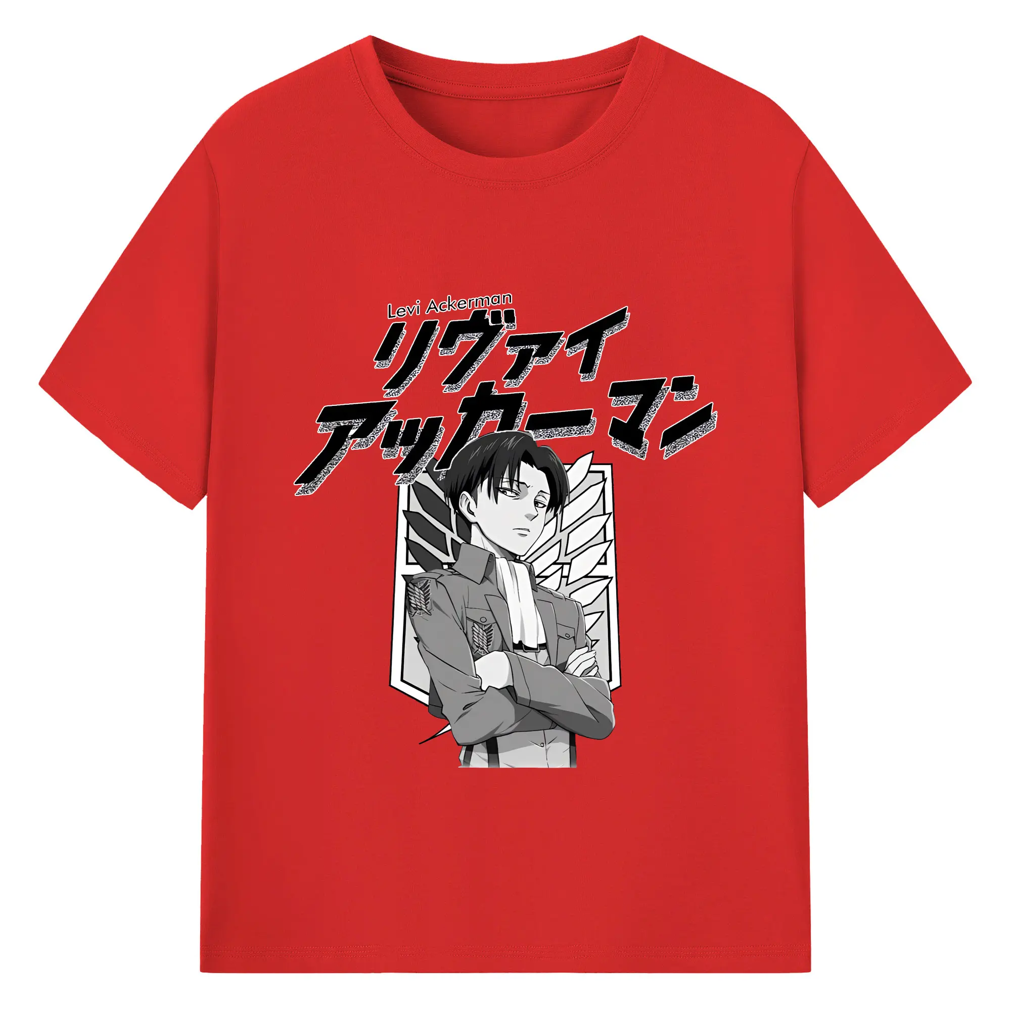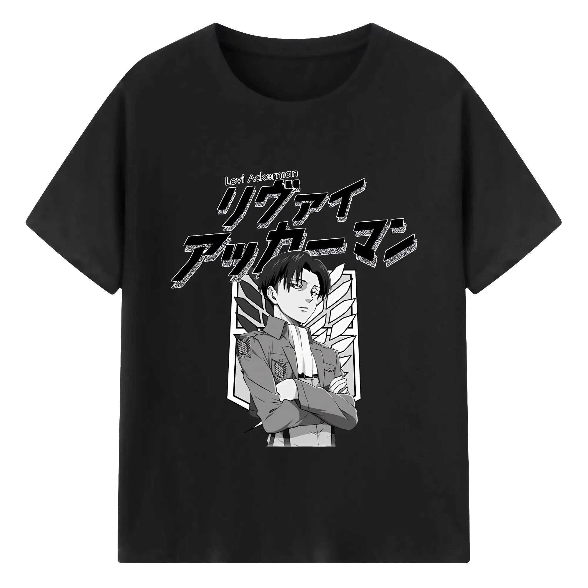 進撃の巨人 グッズ リヴァイ・アッカーマン - 綿100% 半袖Tシャツ ・ バックプリント ・ 快適 通気性 ・ 日常使い 散歩 スポーツ用