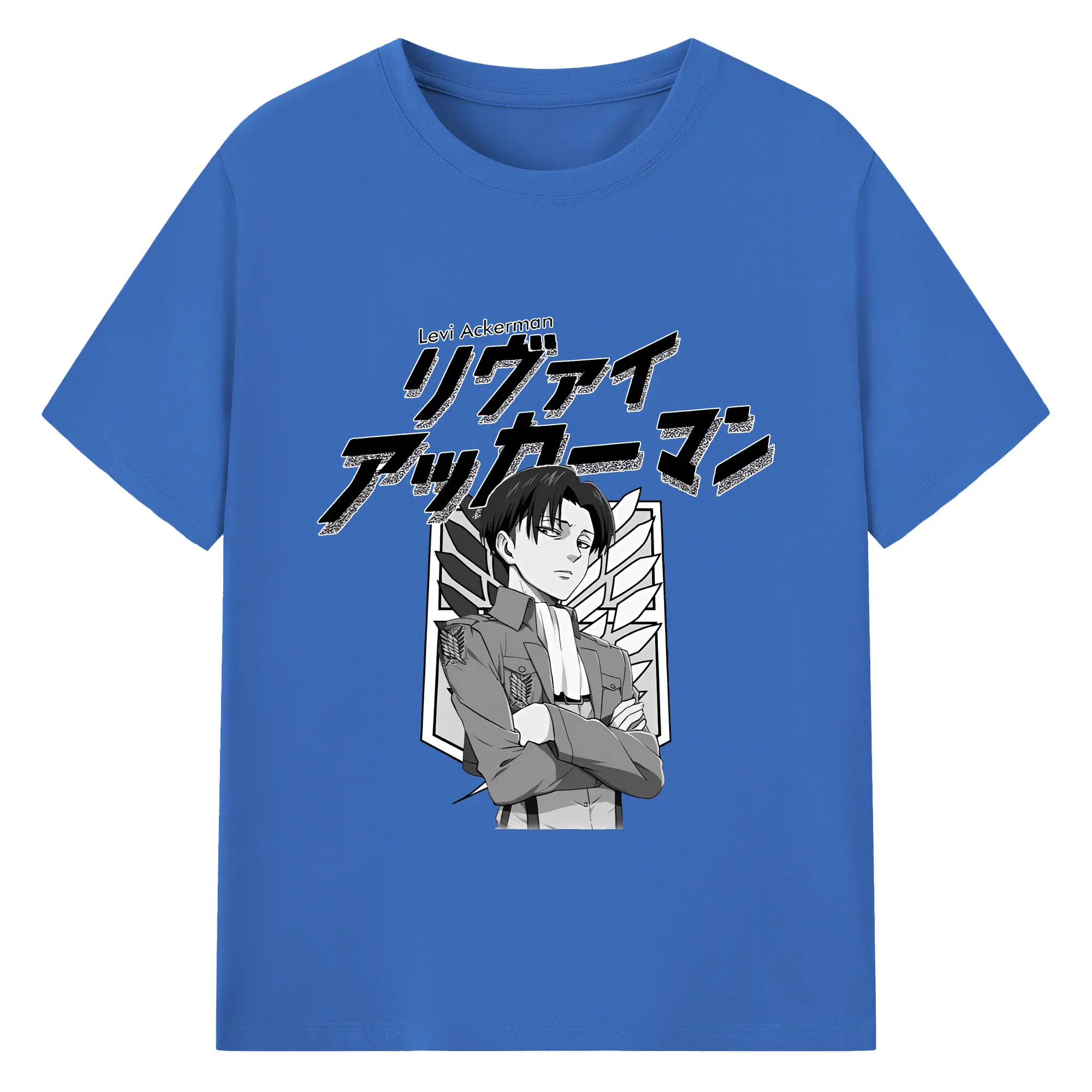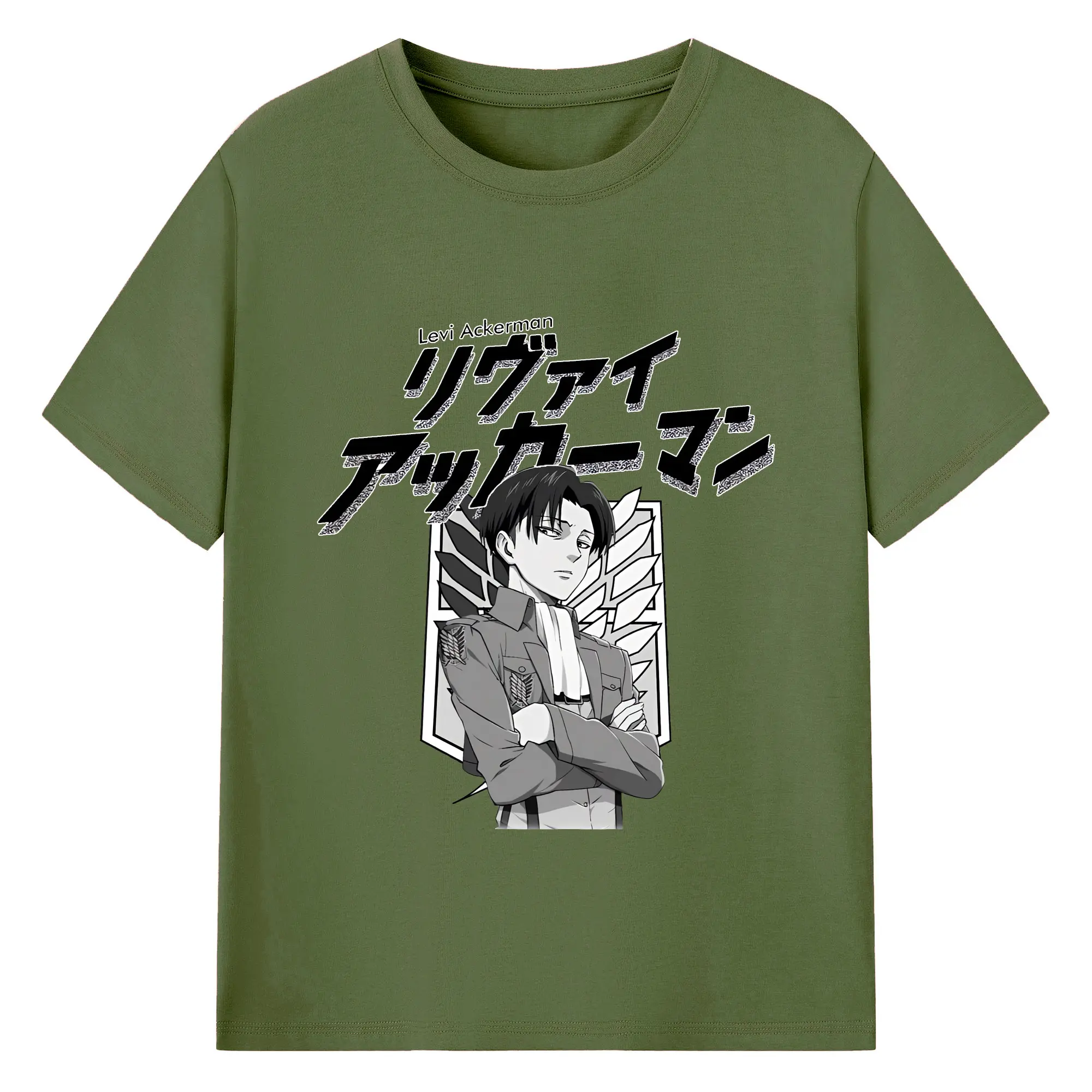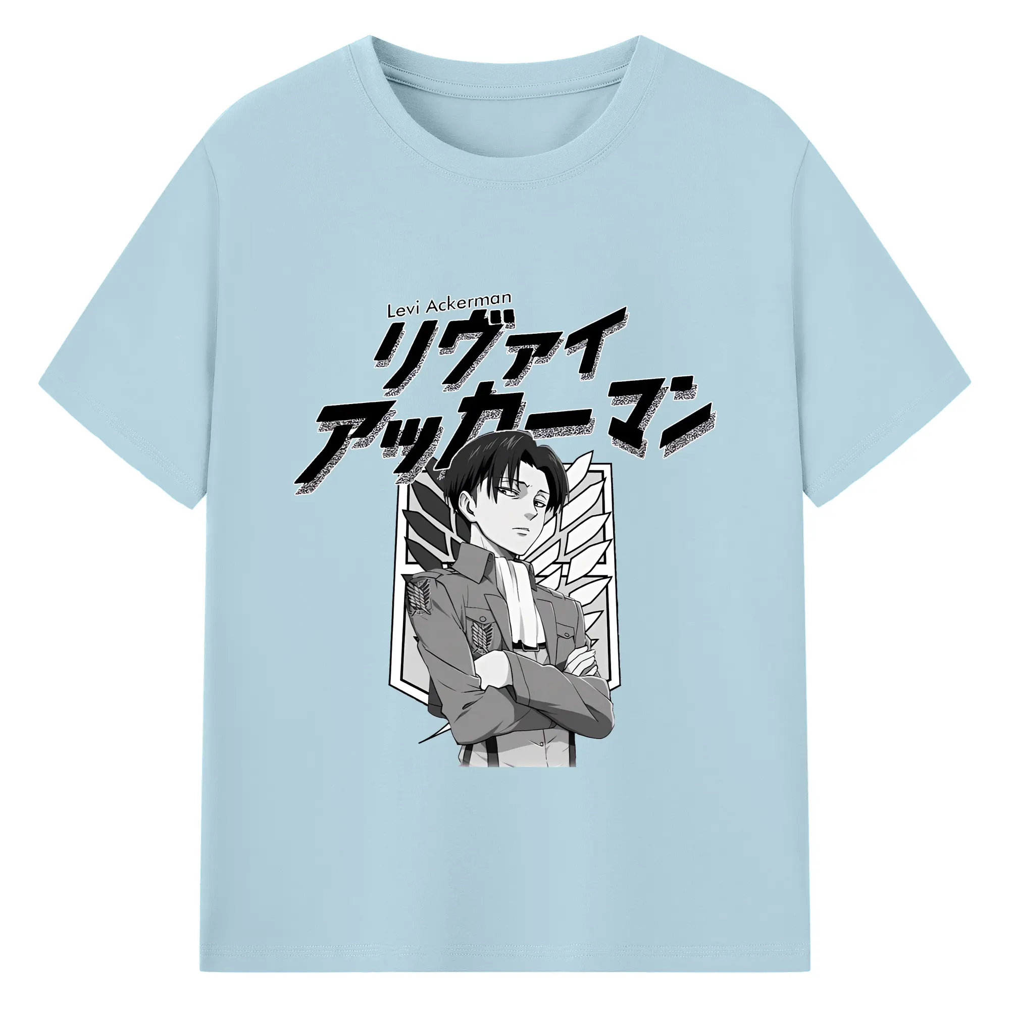 進撃の巨人 グッズ リヴァイ・アッカーマン - 綿100% 半袖Tシャツ ・ バックプリント ・ 快適 通気性 ・ 日常使い 散歩 スポーツ用