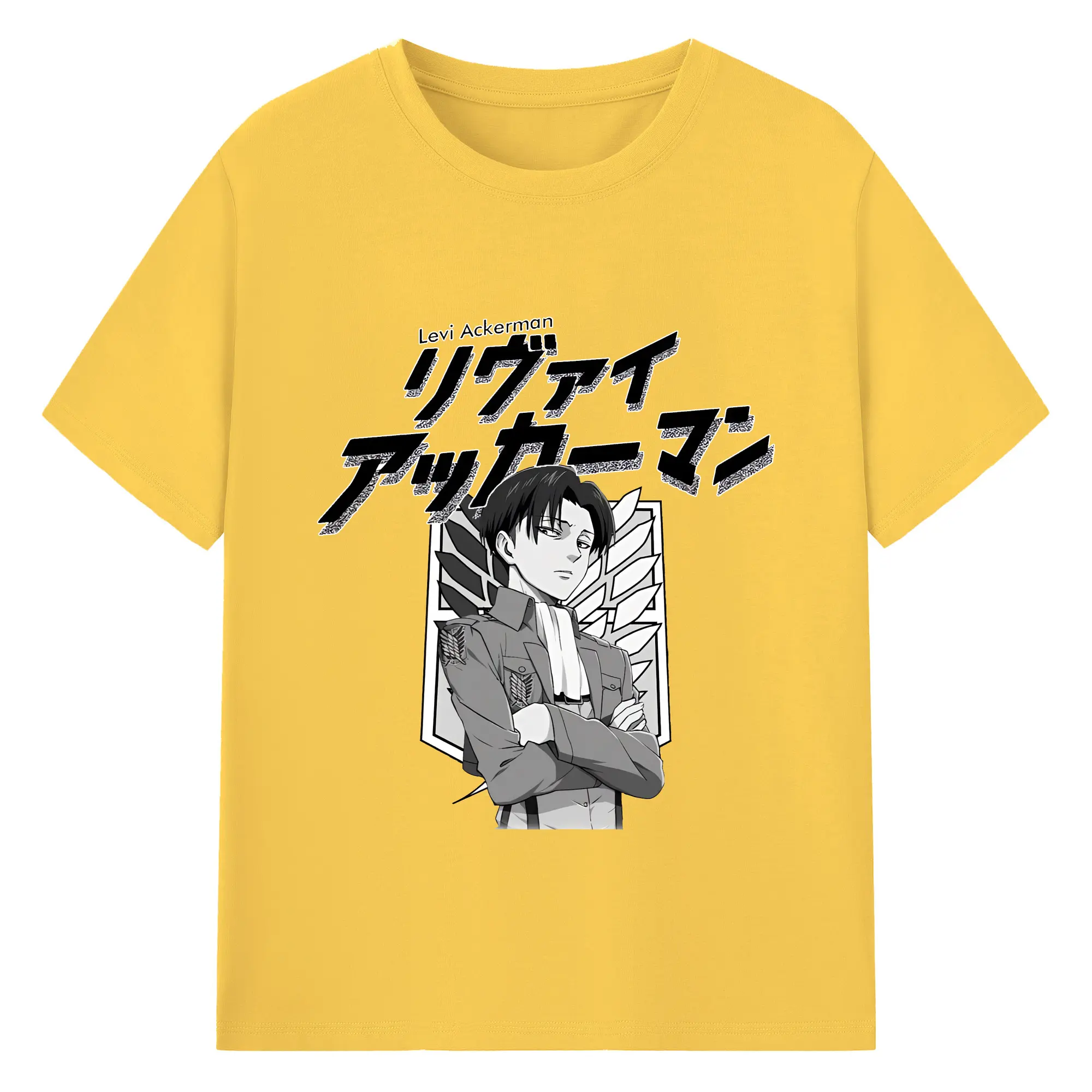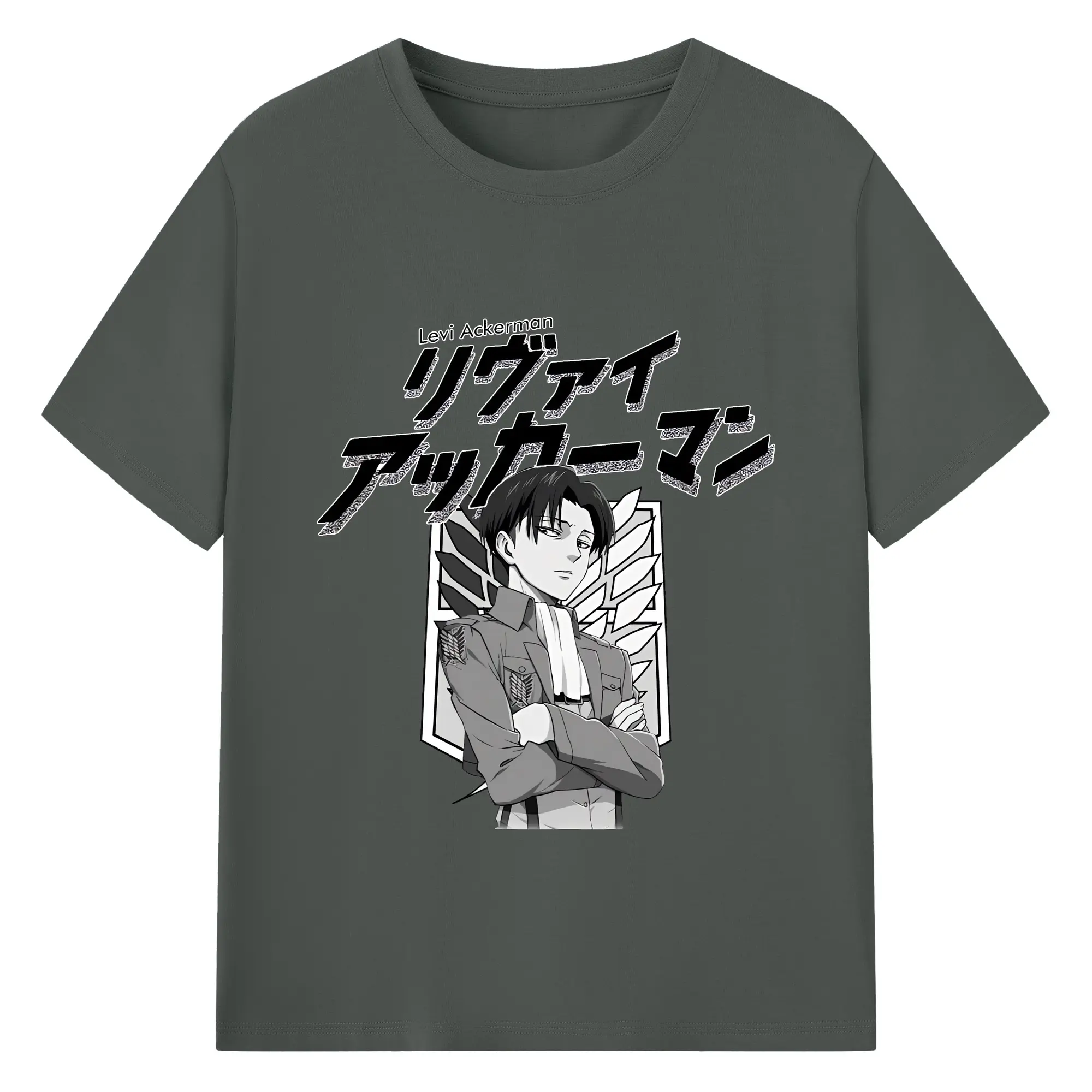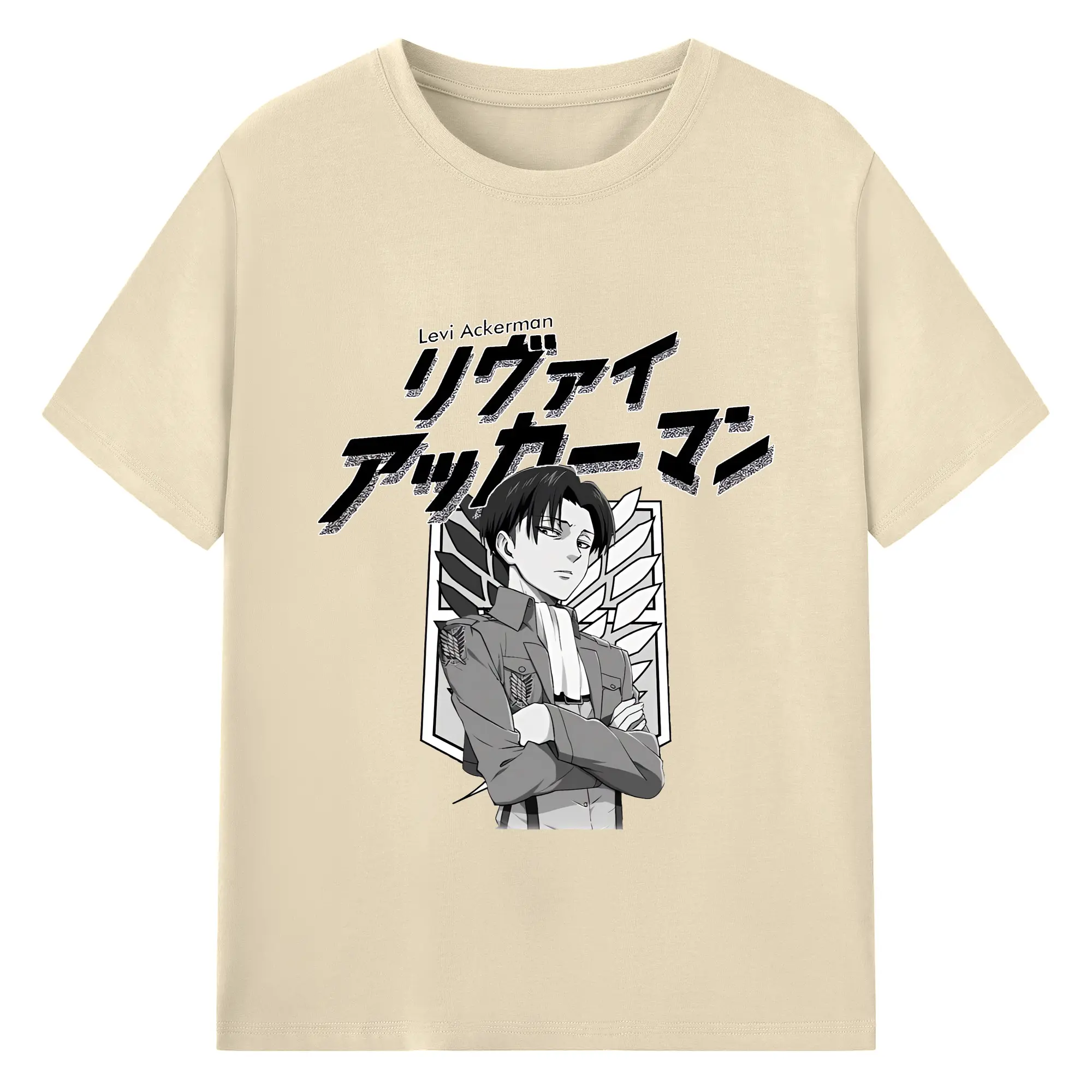進撃の巨人 グッズ リヴァイ・アッカーマン - 綿100% ヴィンテージ風 半袖Tシャツ ・ フロントプリント ・ 柔らか肌触り ・ 通気性 快適 ・ スポーツ カジュアル 外出用