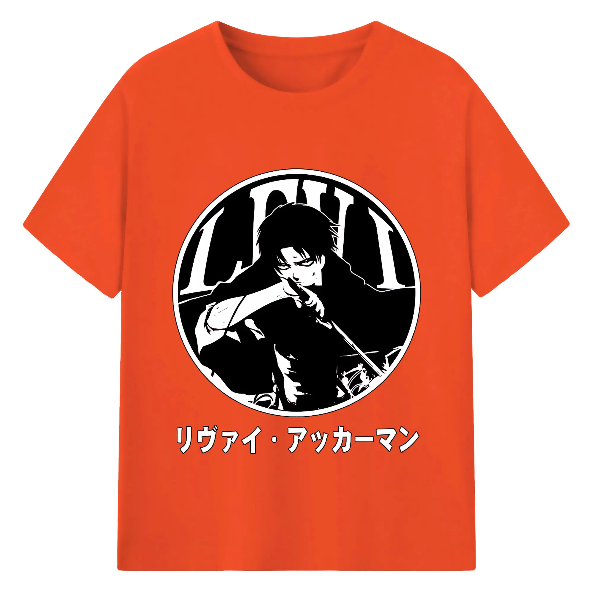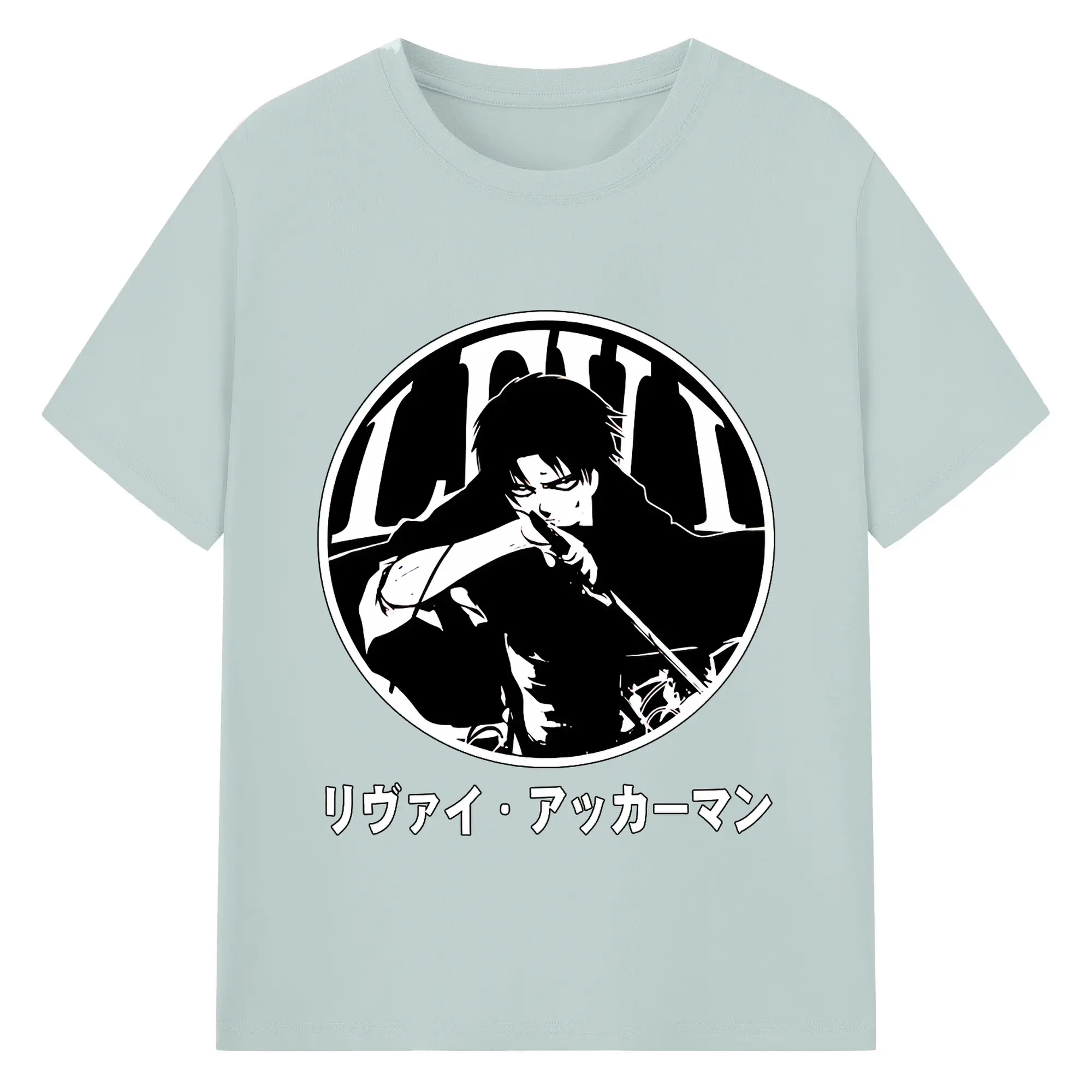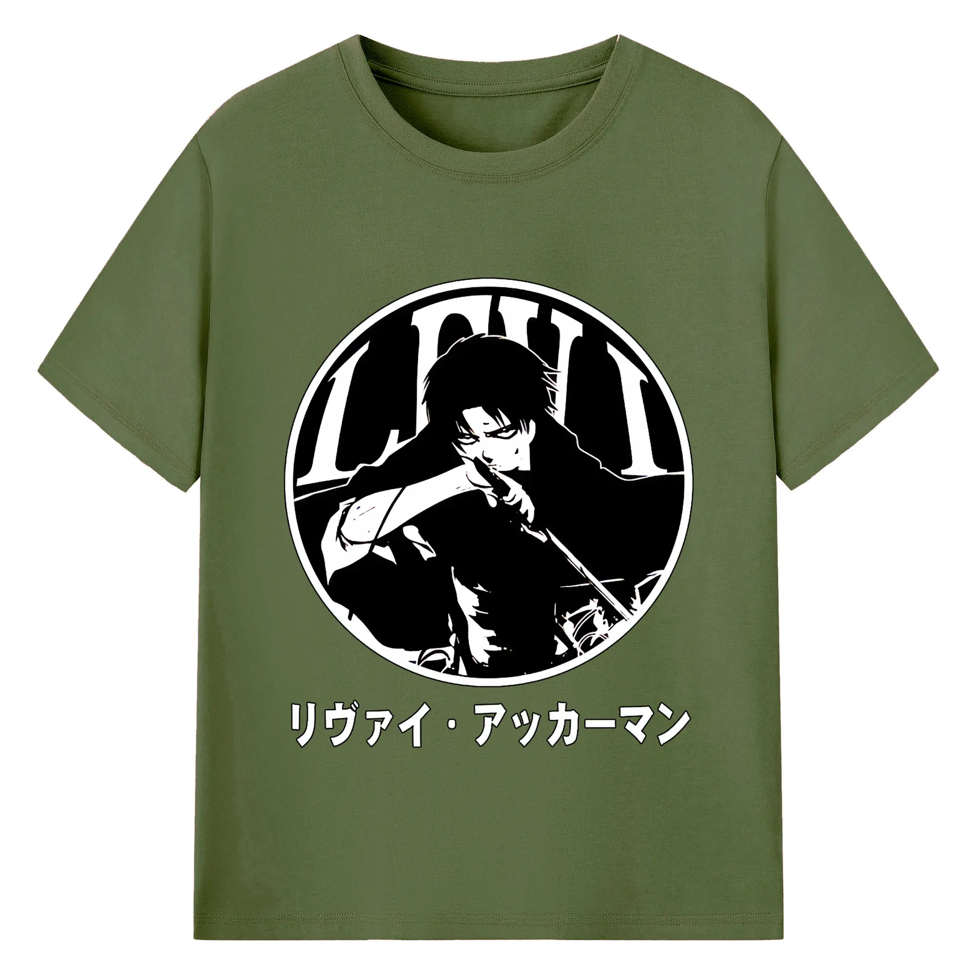 進撃の巨人 グッズ リヴァイ・アッカーマン - 綿100% 半袖Tシャツ ・ バックプリント ・ 快適 通気性 ・ 日常使い 散歩 スポーツ用