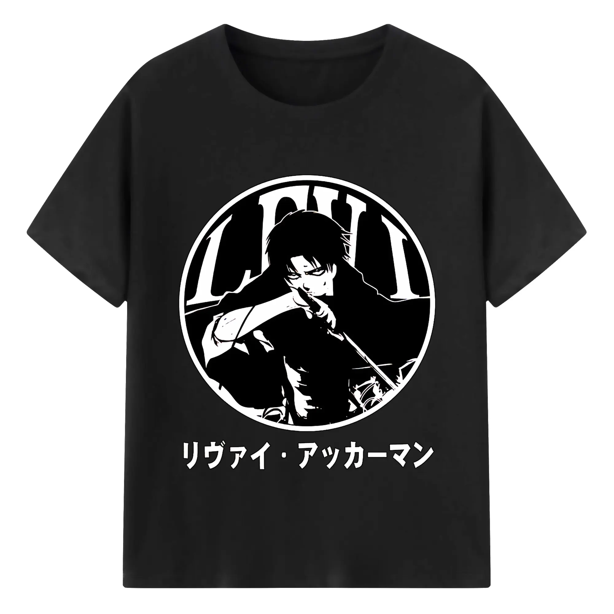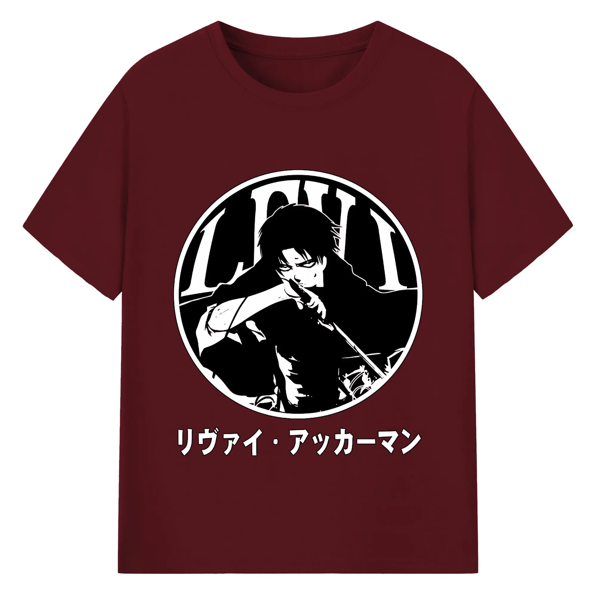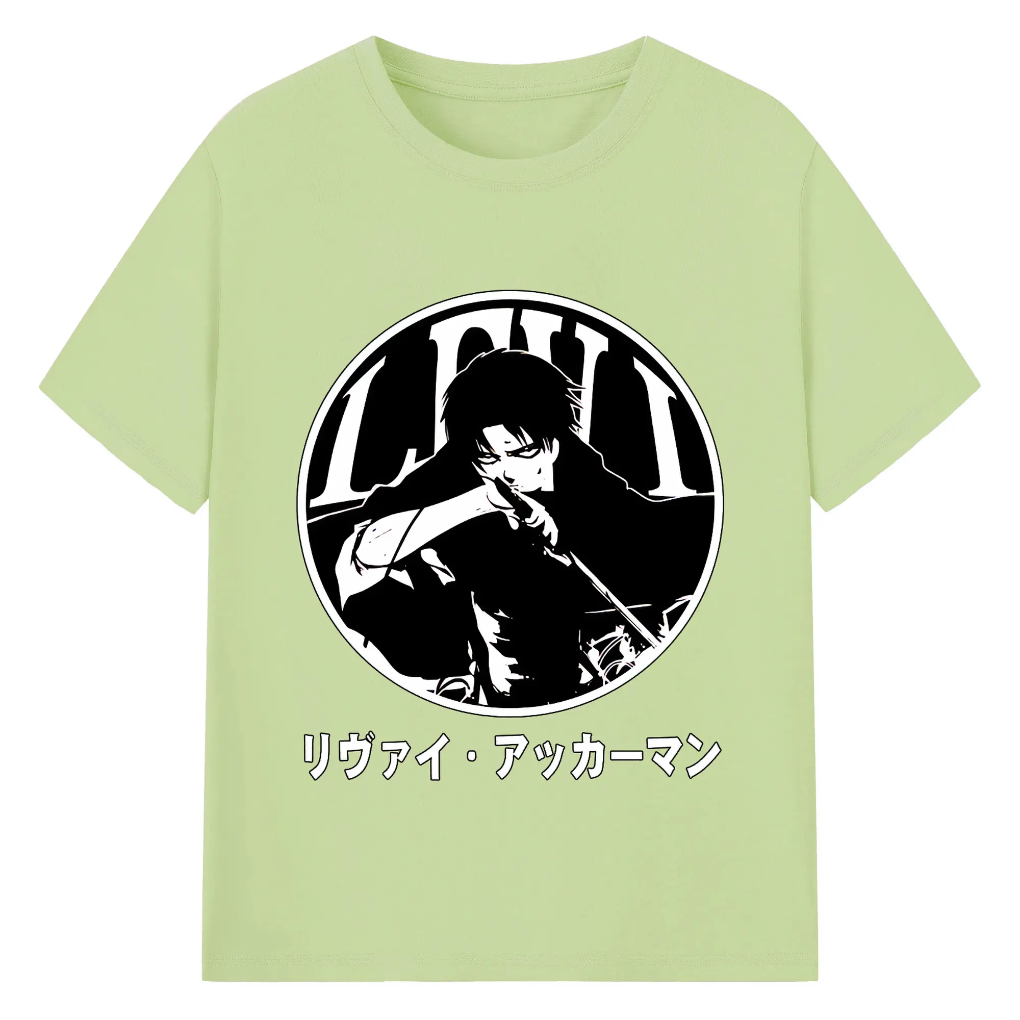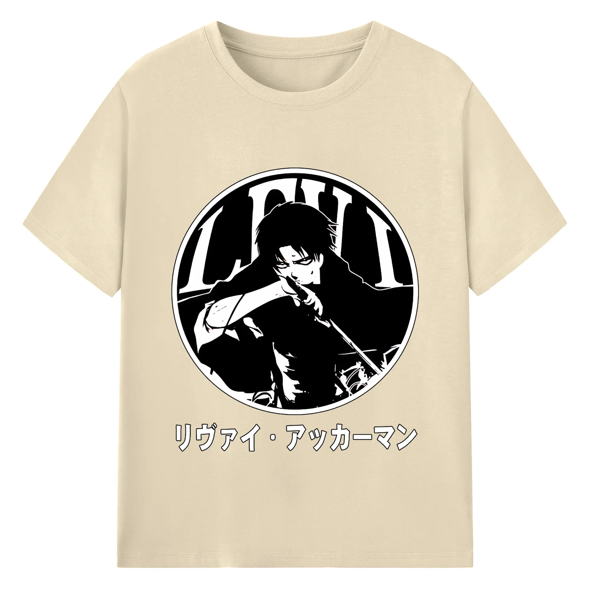 進撃の巨人 グッズ リヴァイ・アッカーマン - 綿100% 半袖Tシャツ ・ バックプリント ・ 快適 通気性 ・ 日常使い 散歩 スポーツ用