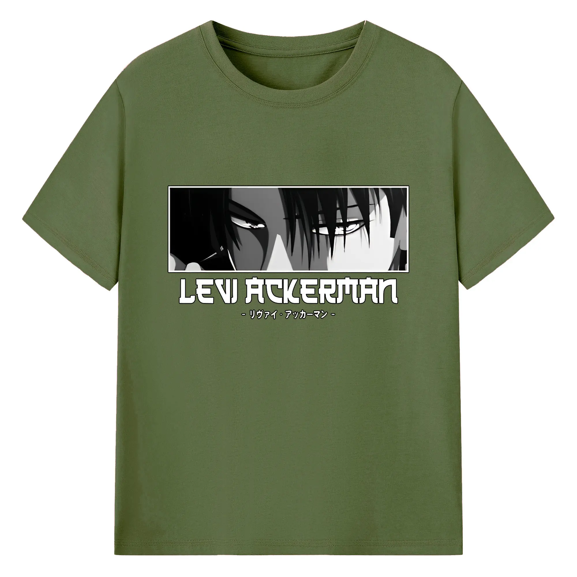進撃の巨人 グッズ リヴァイ・アッカーマン - 綿100% 半袖Tシャツ ・ バックプリント ・ 快適 通気性 ・ 日常使い 散歩 スポーツ用