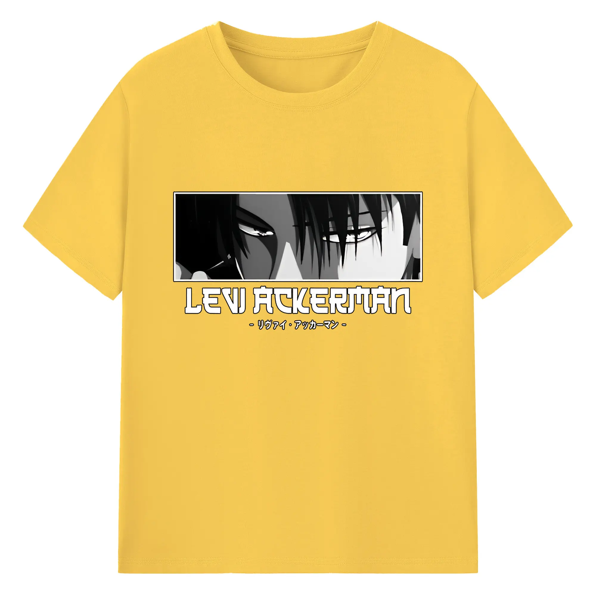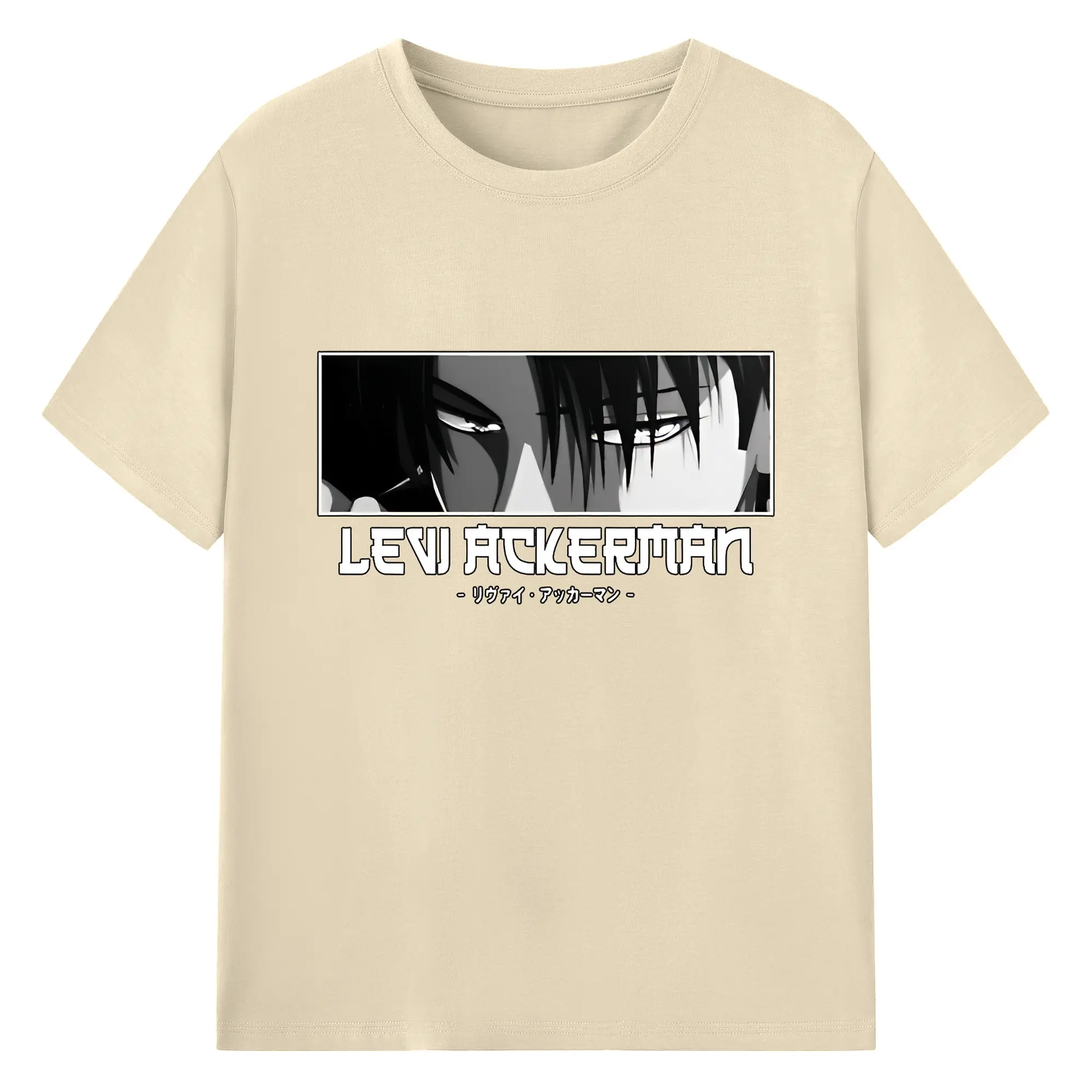 進撃の巨人 グッズ リヴァイ・アッカーマン - 綿100% ヴィンテージ風 半袖Tシャツ ・ フロントプリント ・ 柔らか肌触り ・ 通気性 快適 ・ スポーツ カジュアル 外出用