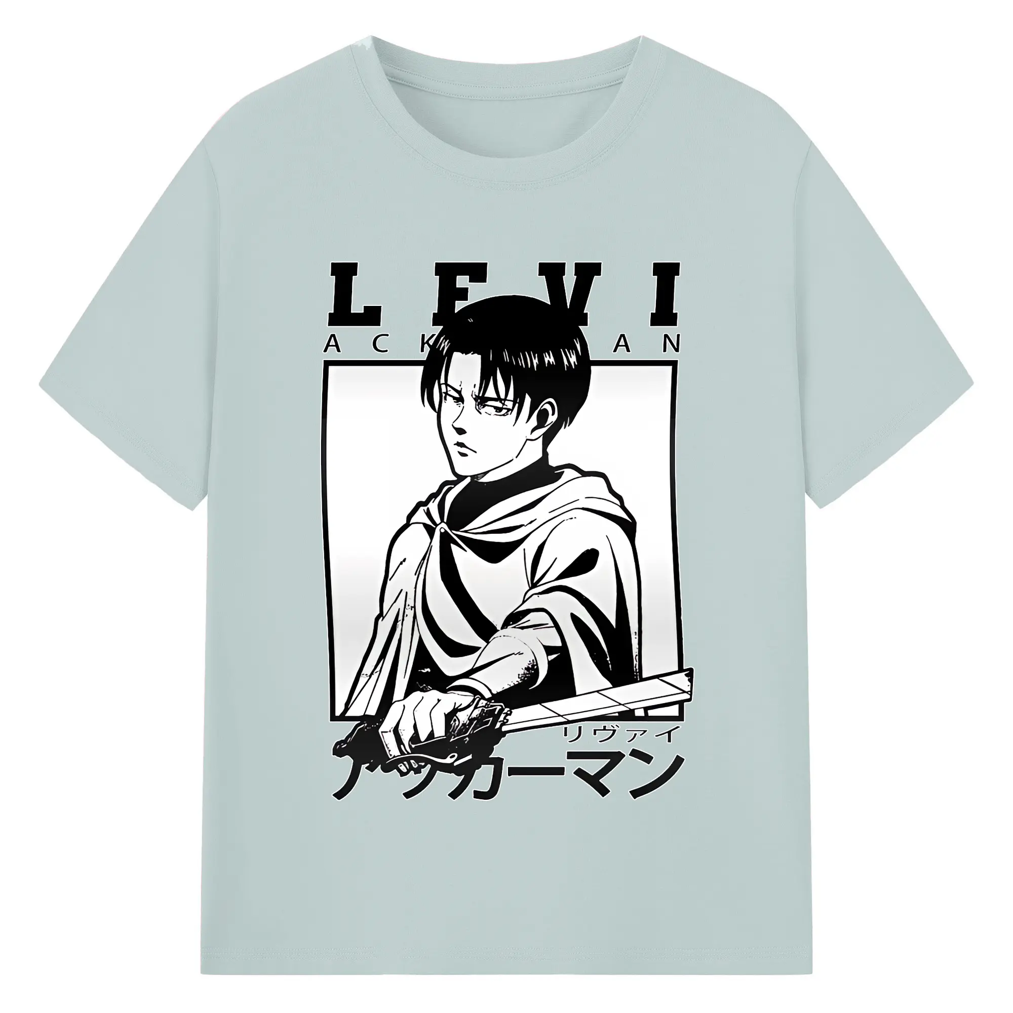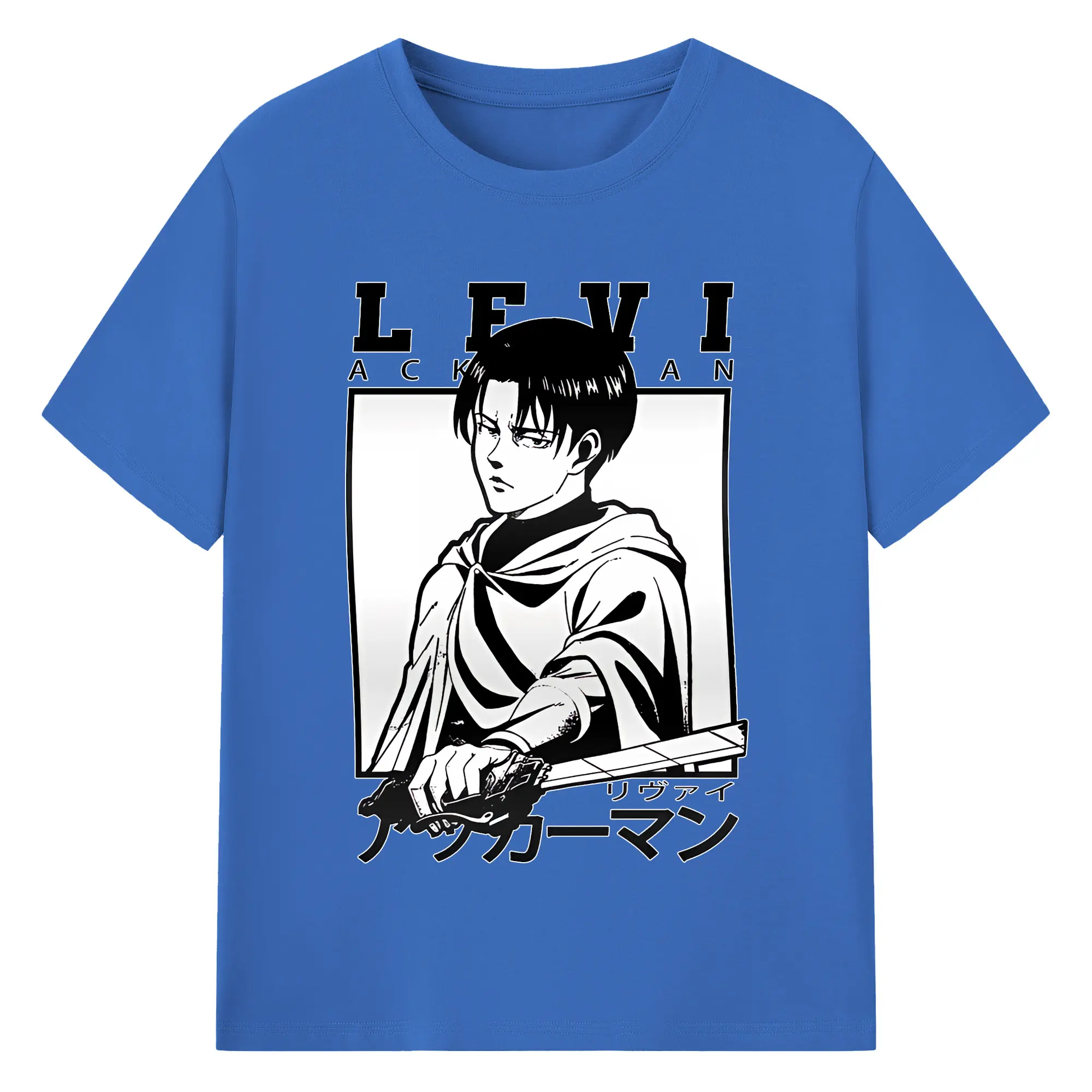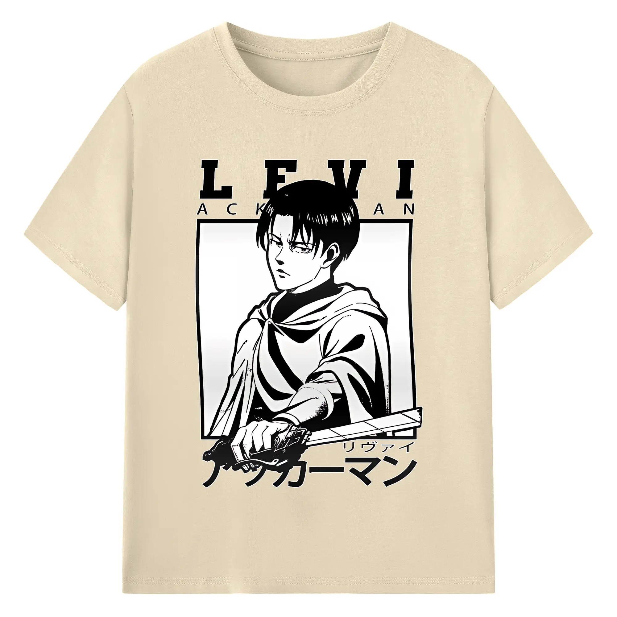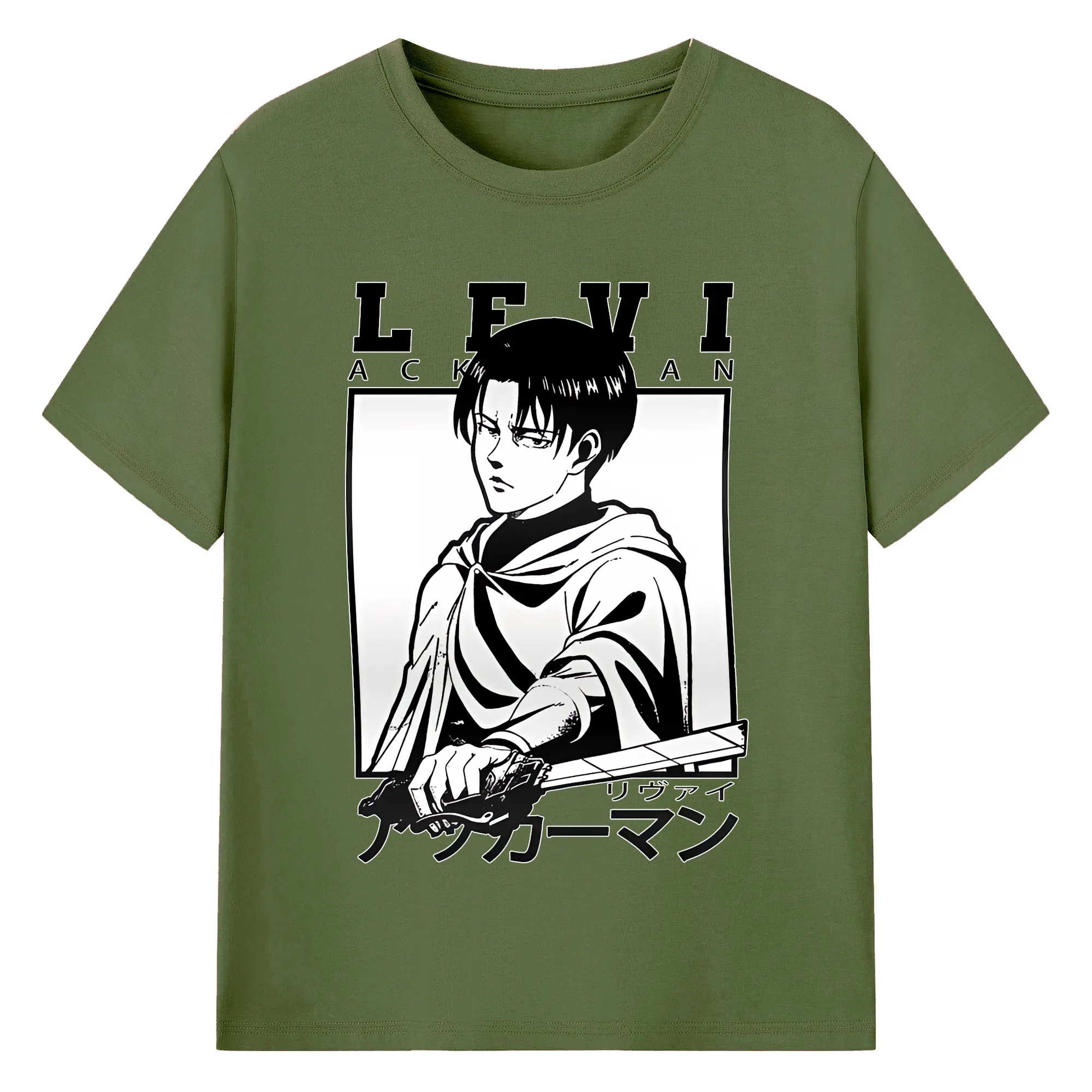 進撃の巨人 グッズ リヴァイ・アッカーマン - 綿100% 半袖Tシャツ ・ バックプリント ・ 快適 通気性 ・ 日常使い 散歩 スポーツ用