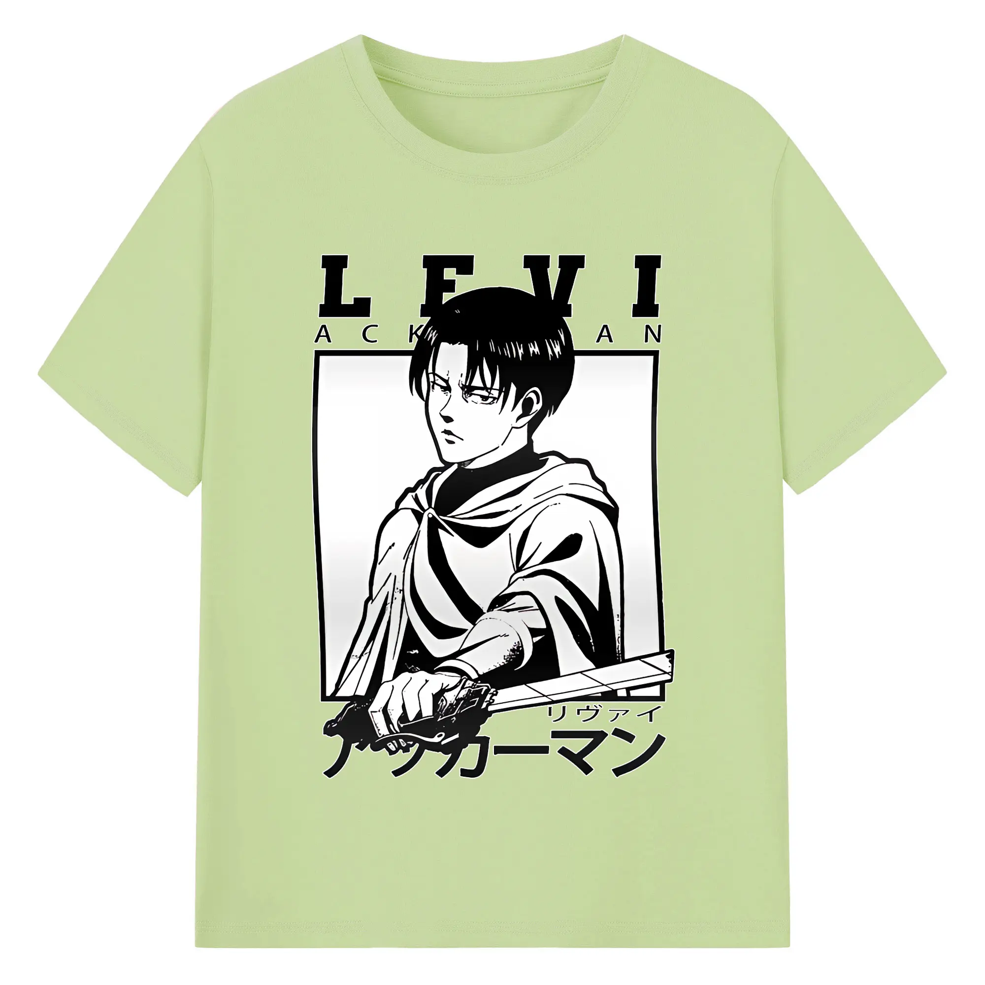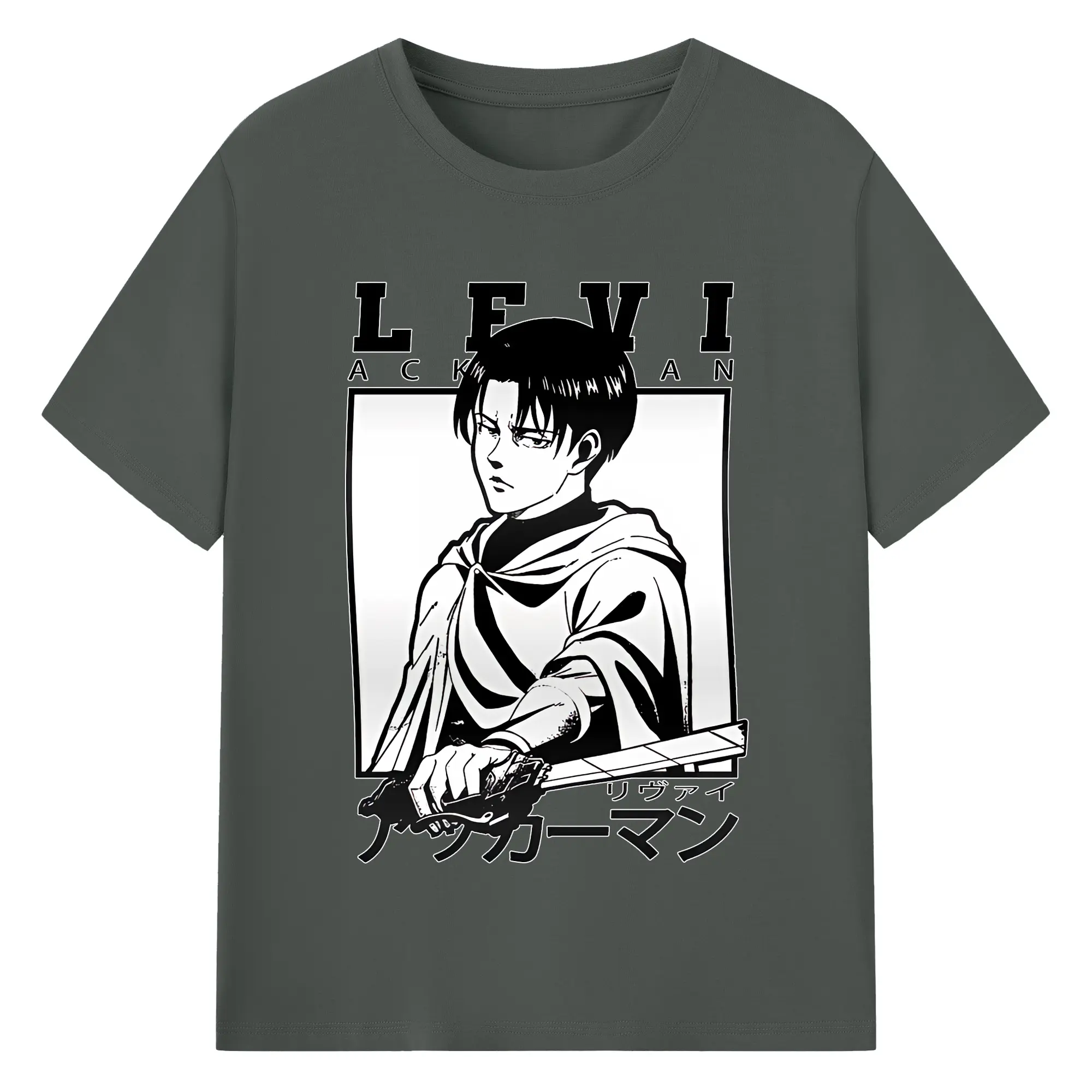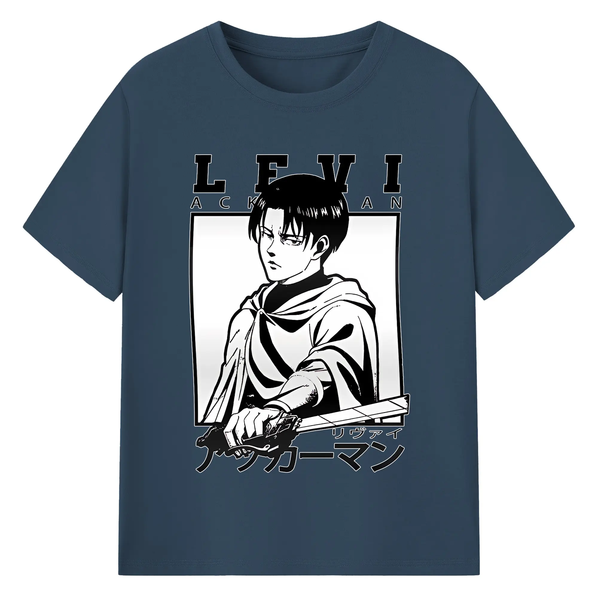 進撃の巨人 グッズ リヴァイ・アッカーマン - 綿100% 半袖Tシャツ ・ バックプリント ・ 快適 通気性 ・ 日常使い 散歩 スポーツ用