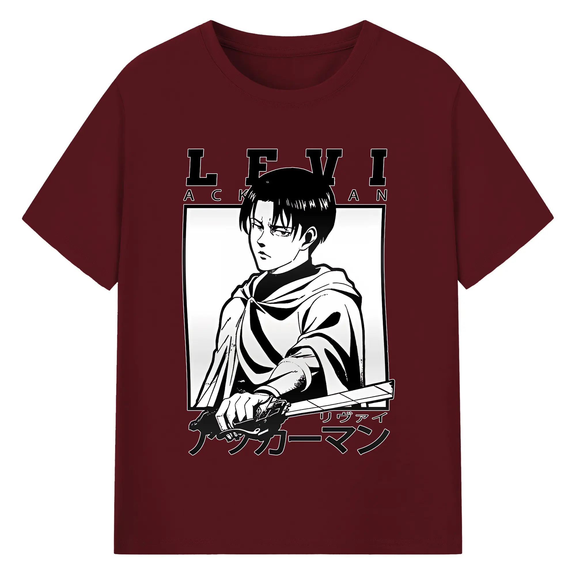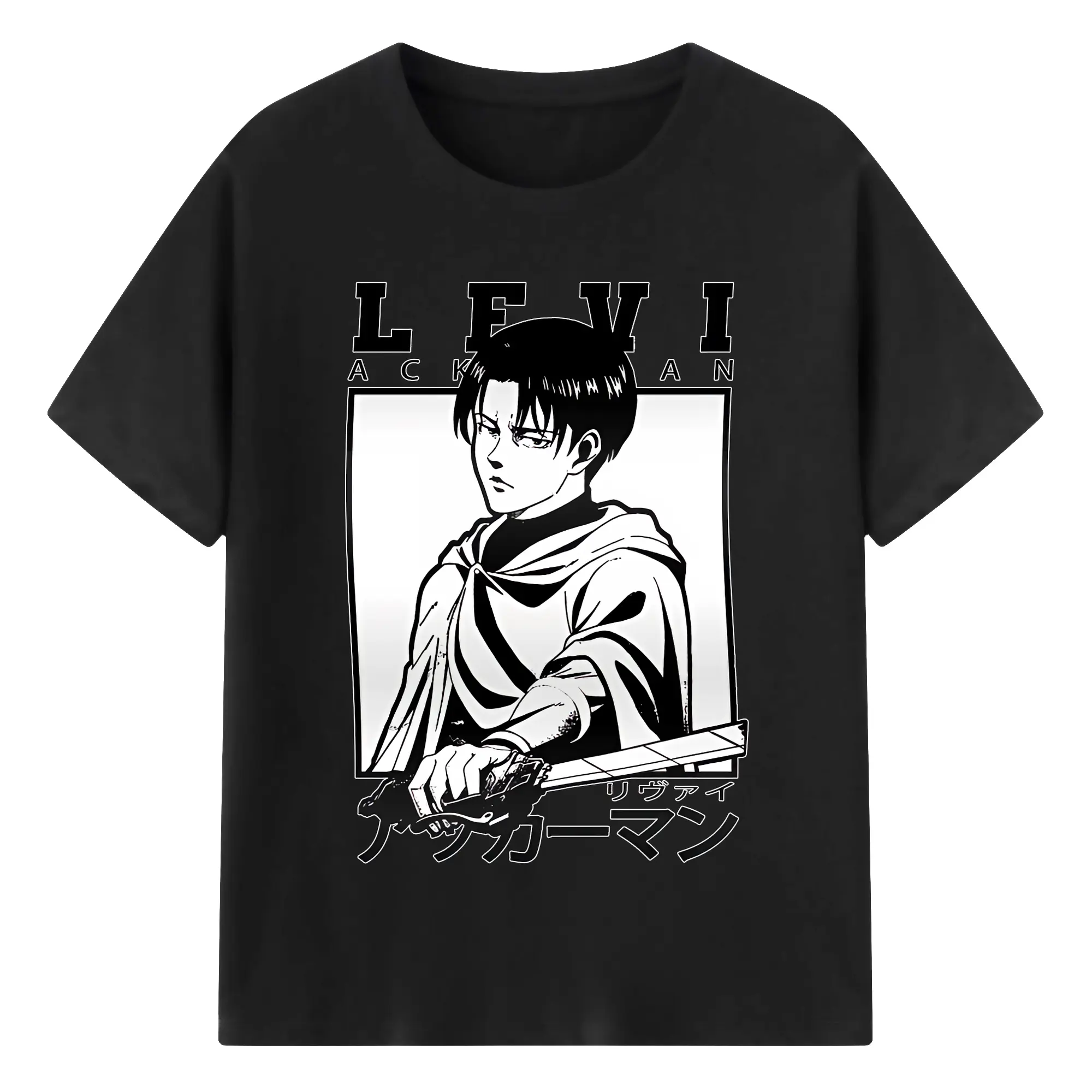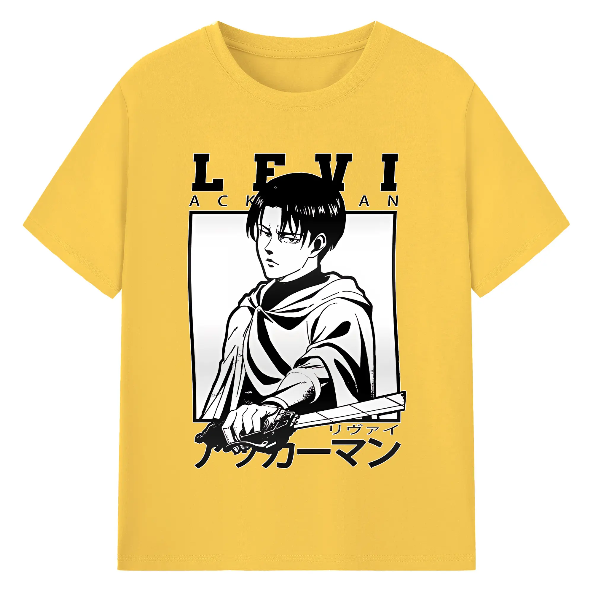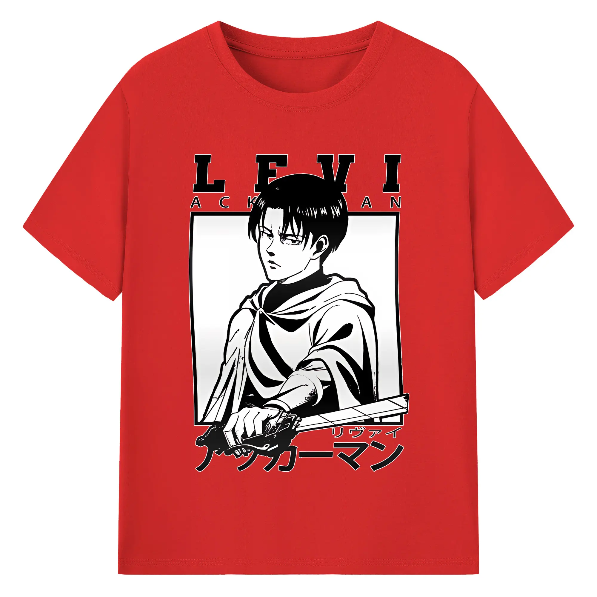 進撃の巨人 グッズ リヴァイ・アッカーマン - 綿100% 半袖Tシャツ ・ バックプリント ・ 快適 通気性 ・ 日常使い 散歩 スポーツ用