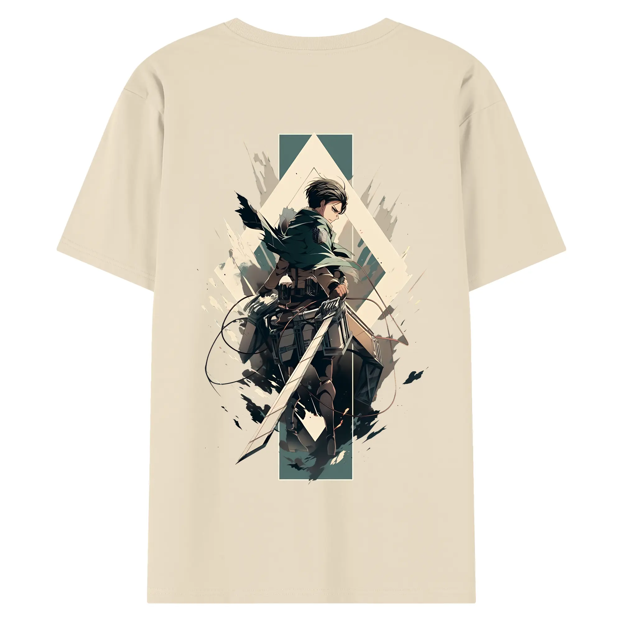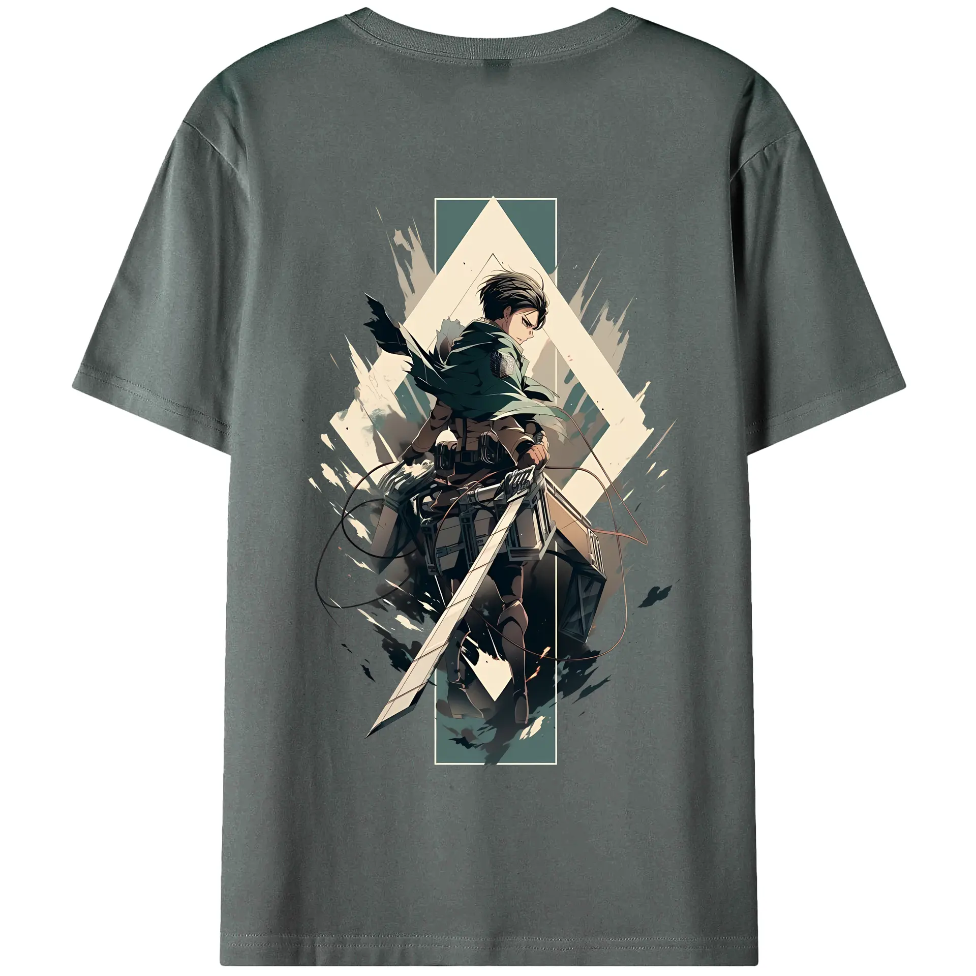 進撃の巨人 グッズ リヴァイ・アッカーマン - 綿100% ヴィンテージ風 半袖Tシャツ ・ 背面プリント ・ 柔らか肌触り ・ 通気性 快適 ・ スポーツ カジュアル 外出用