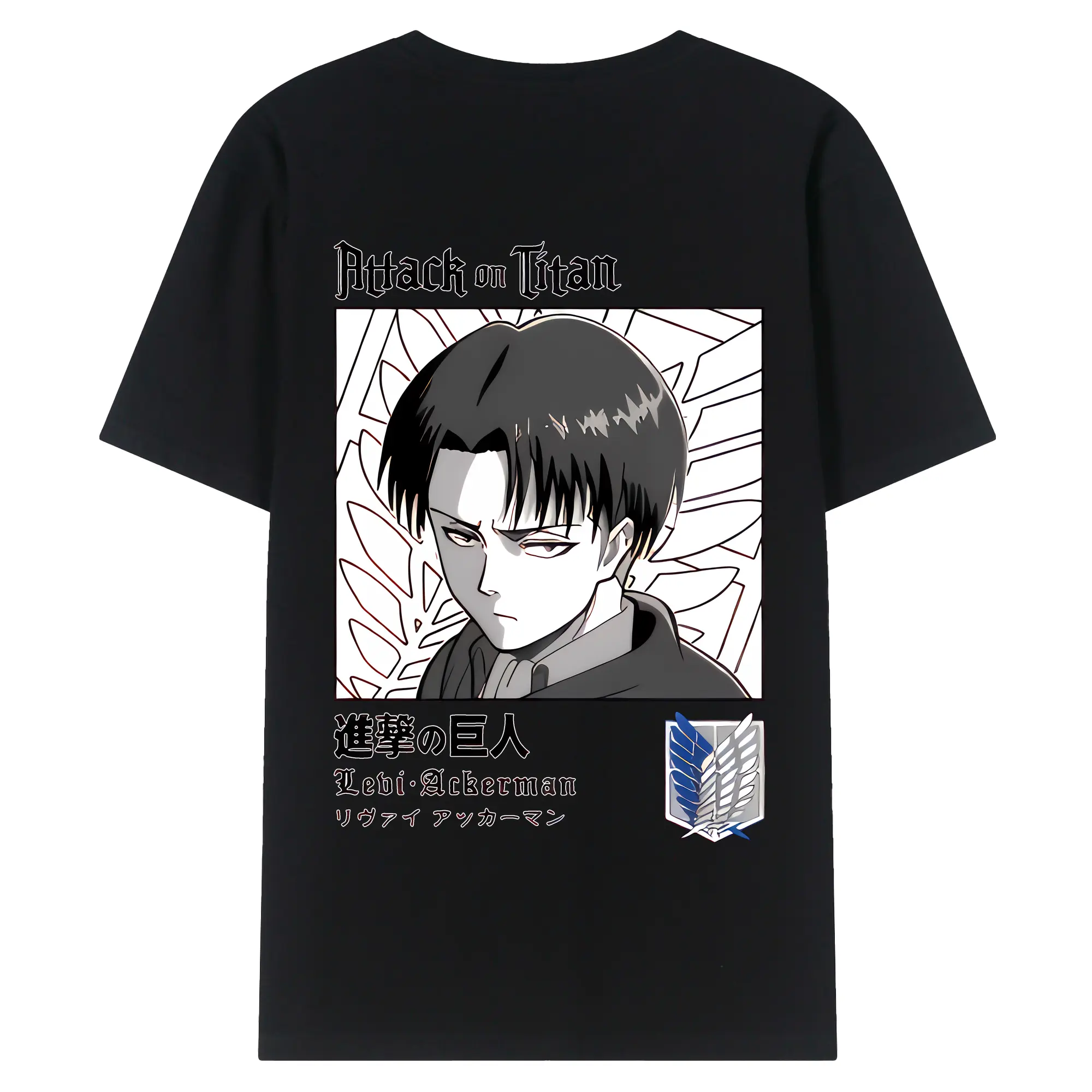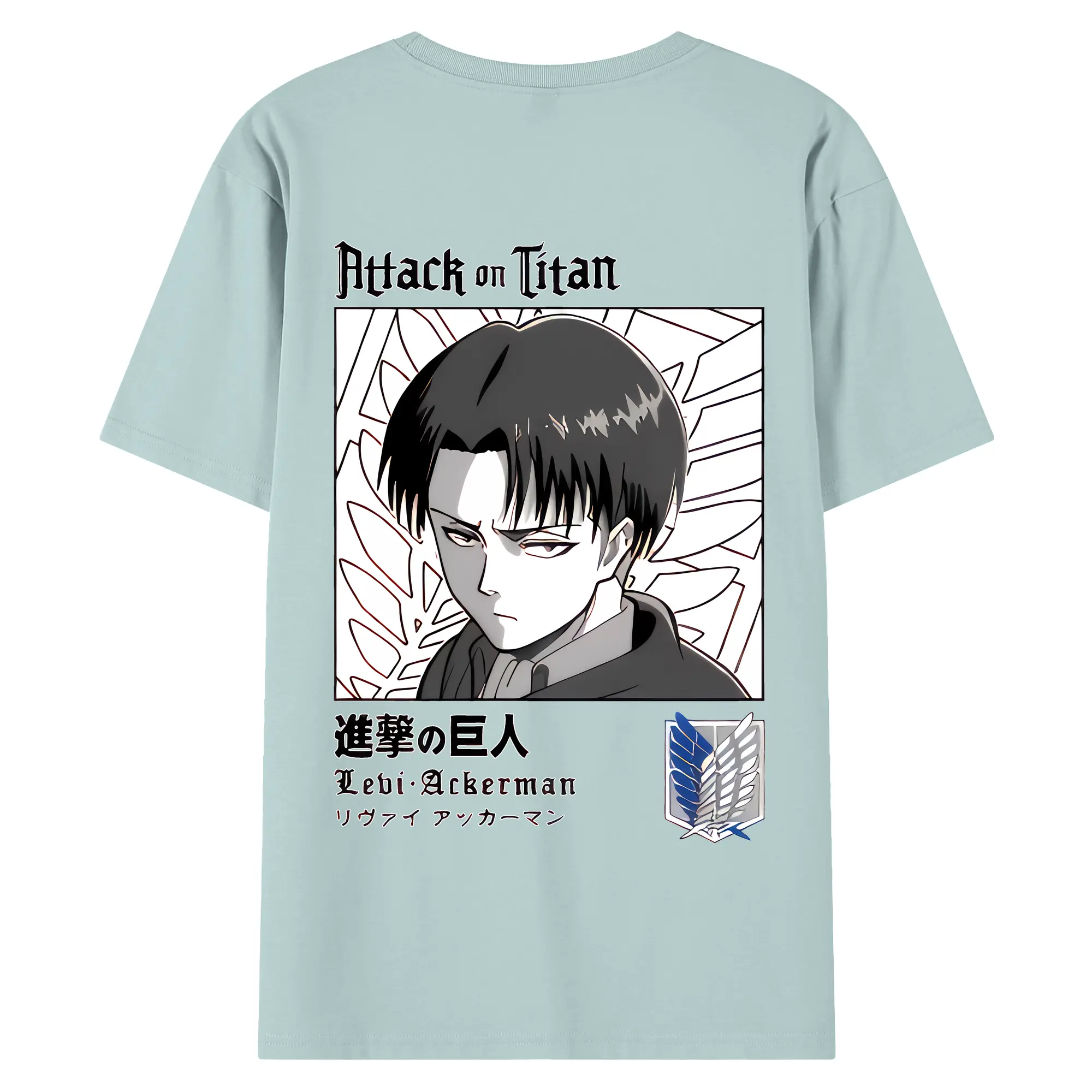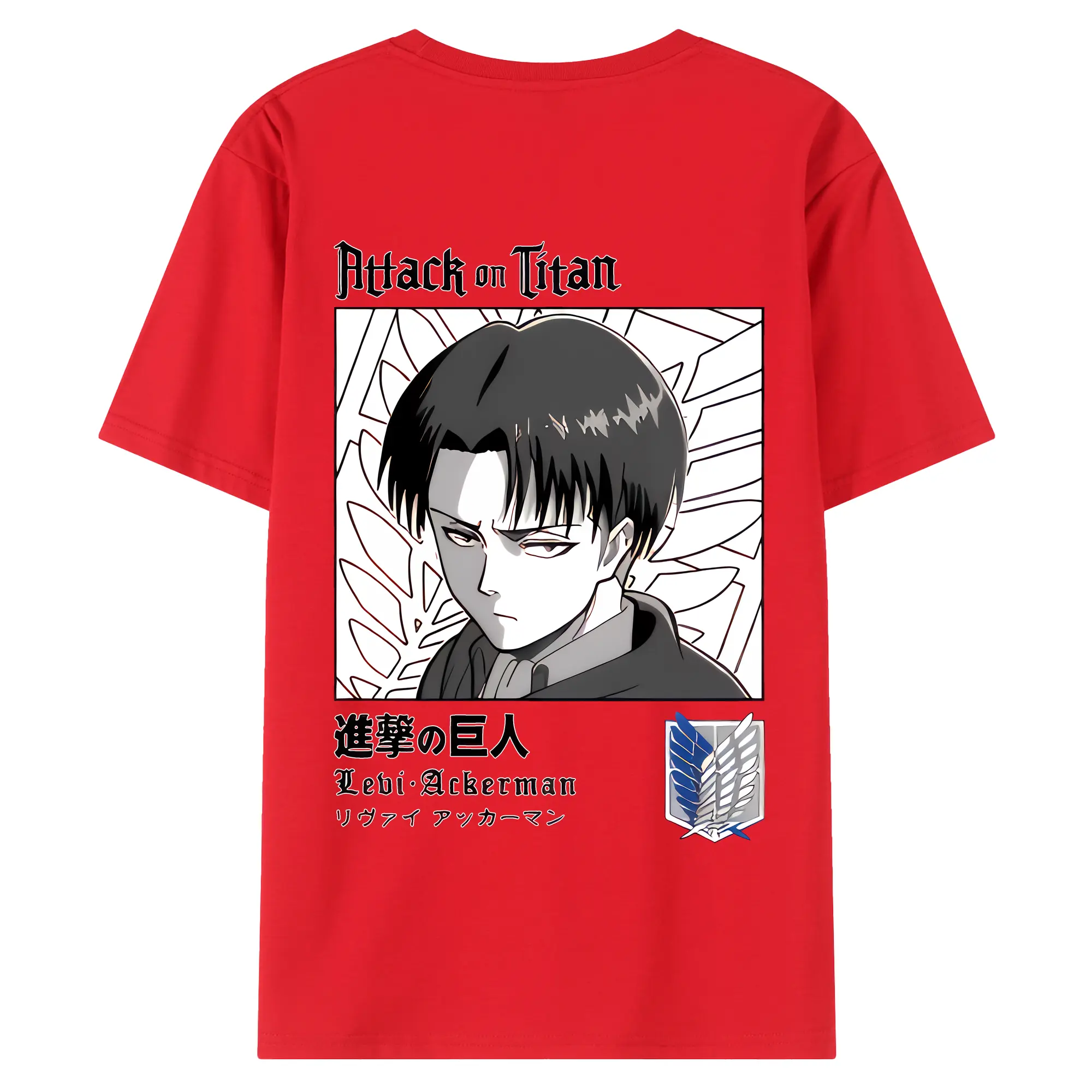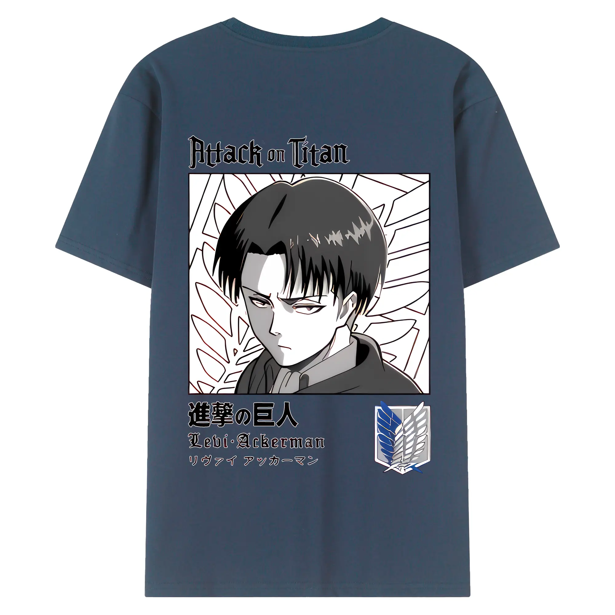 進撃の巨人 グッズ リヴァイ・アッカーマン - 綿100% 半袖Tシャツ ・ フロントプリント ・ 快適 通気性 ・ 日常使い 散歩 スポーツ用