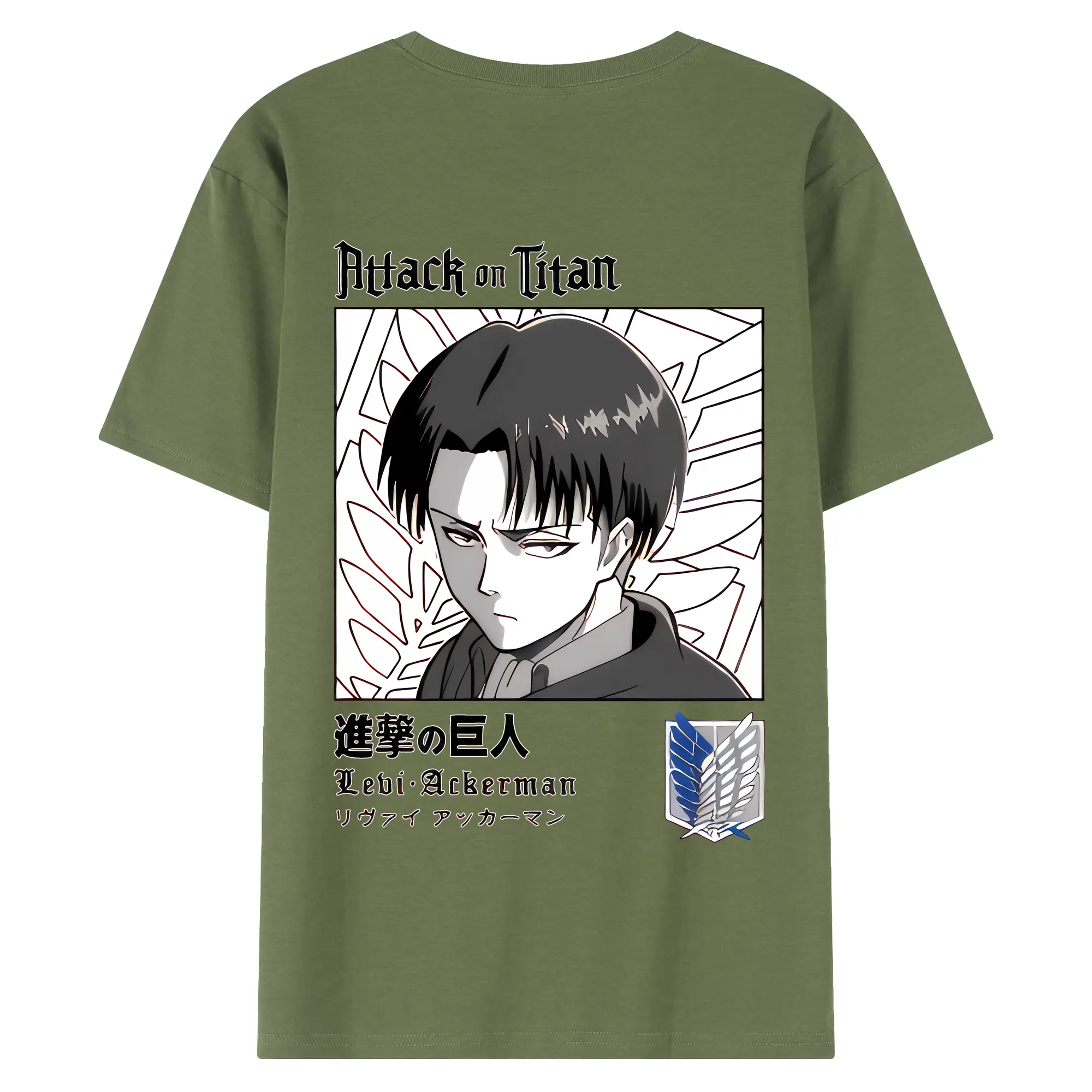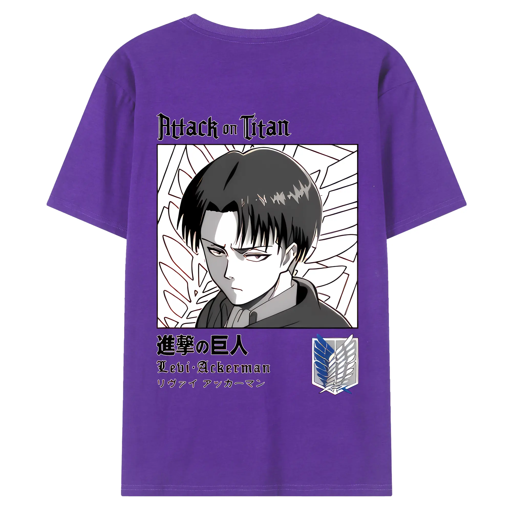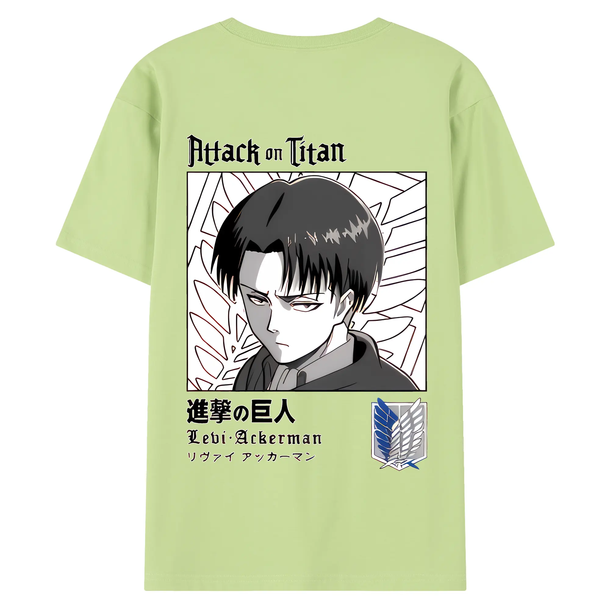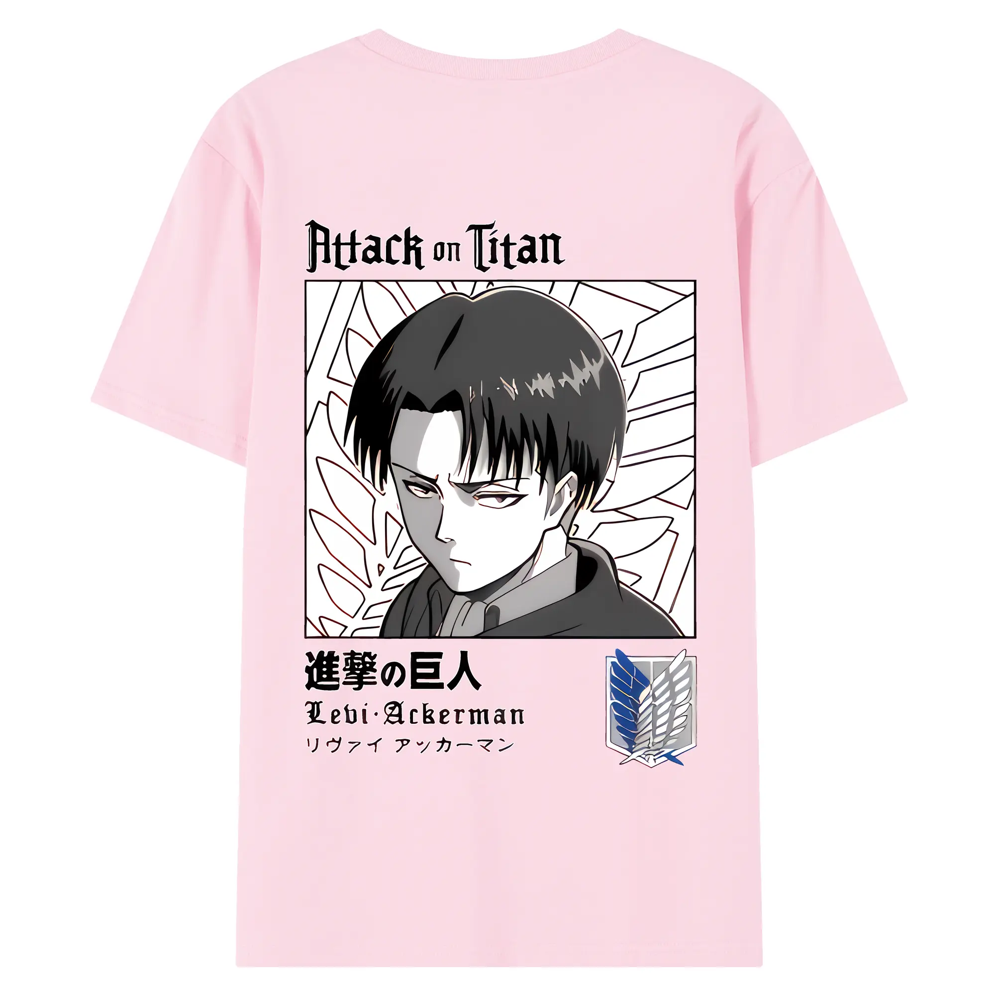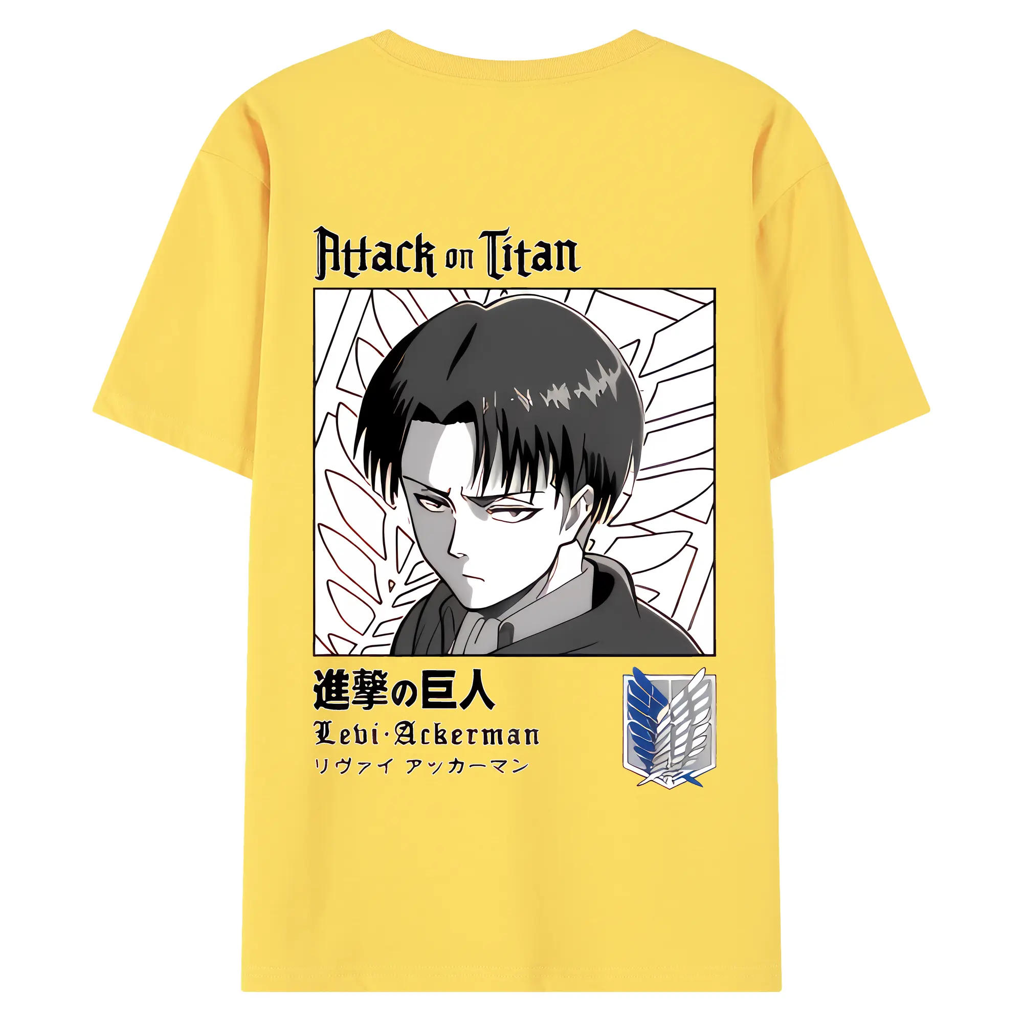 進撃の巨人 グッズ リヴァイ・アッカーマン - 綿100% 半袖Tシャツ ・ フロントプリント ・ 快適 通気性 ・ 日常使い 散歩 スポーツ用