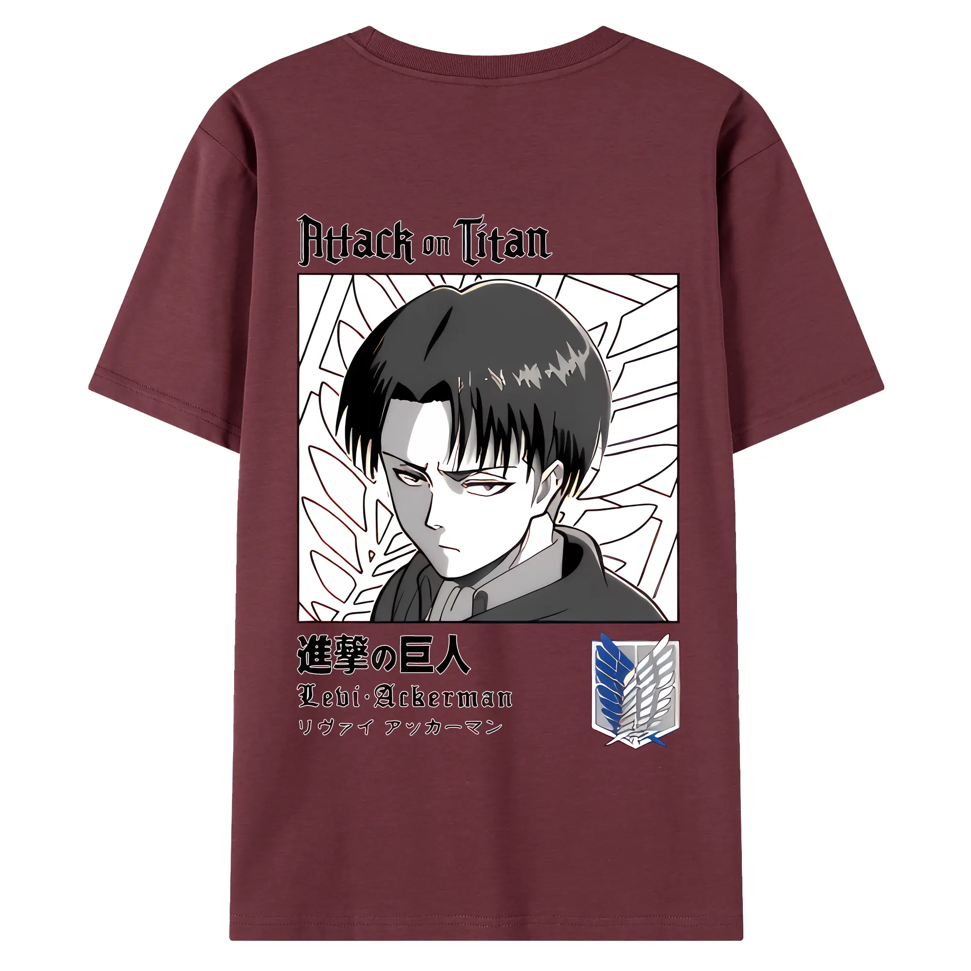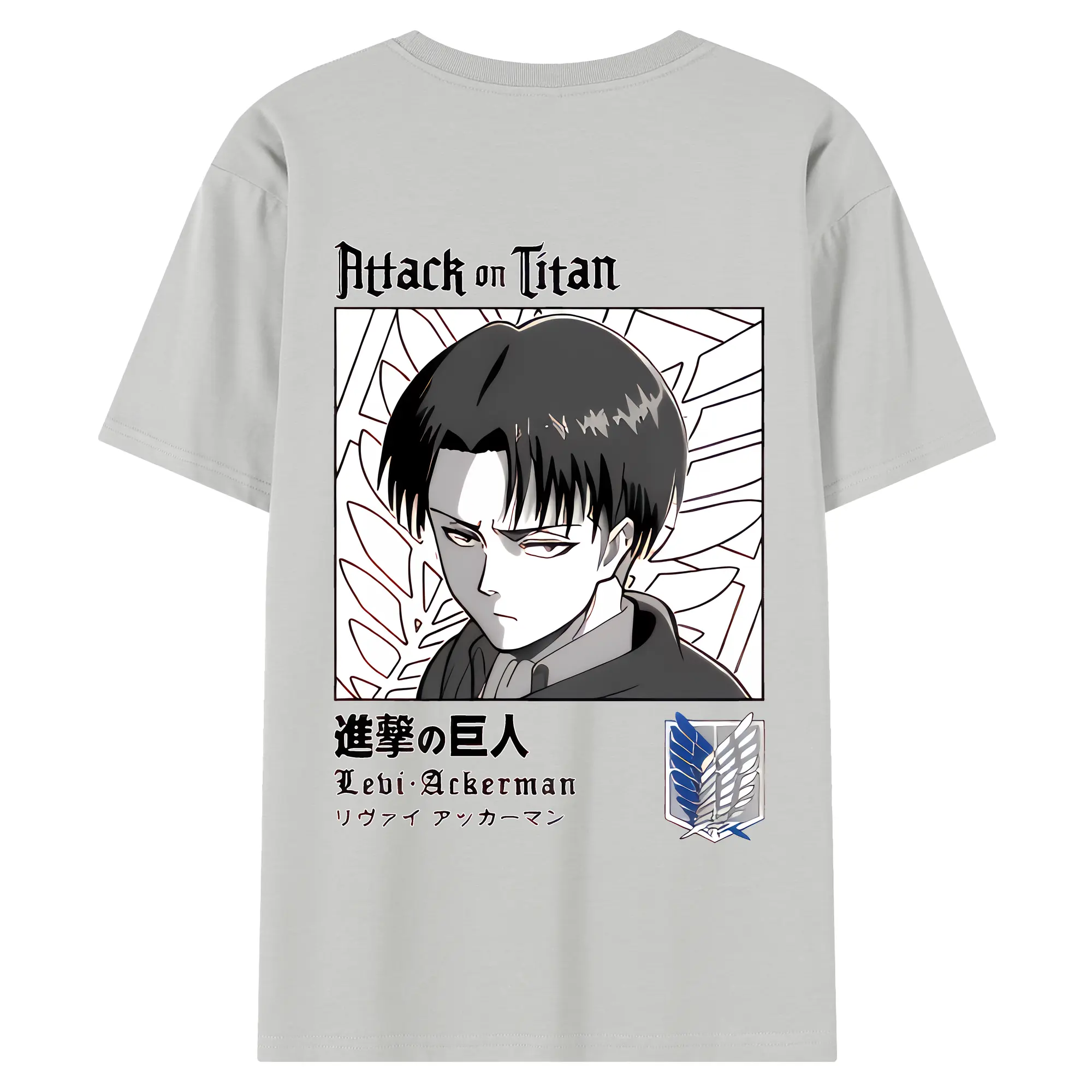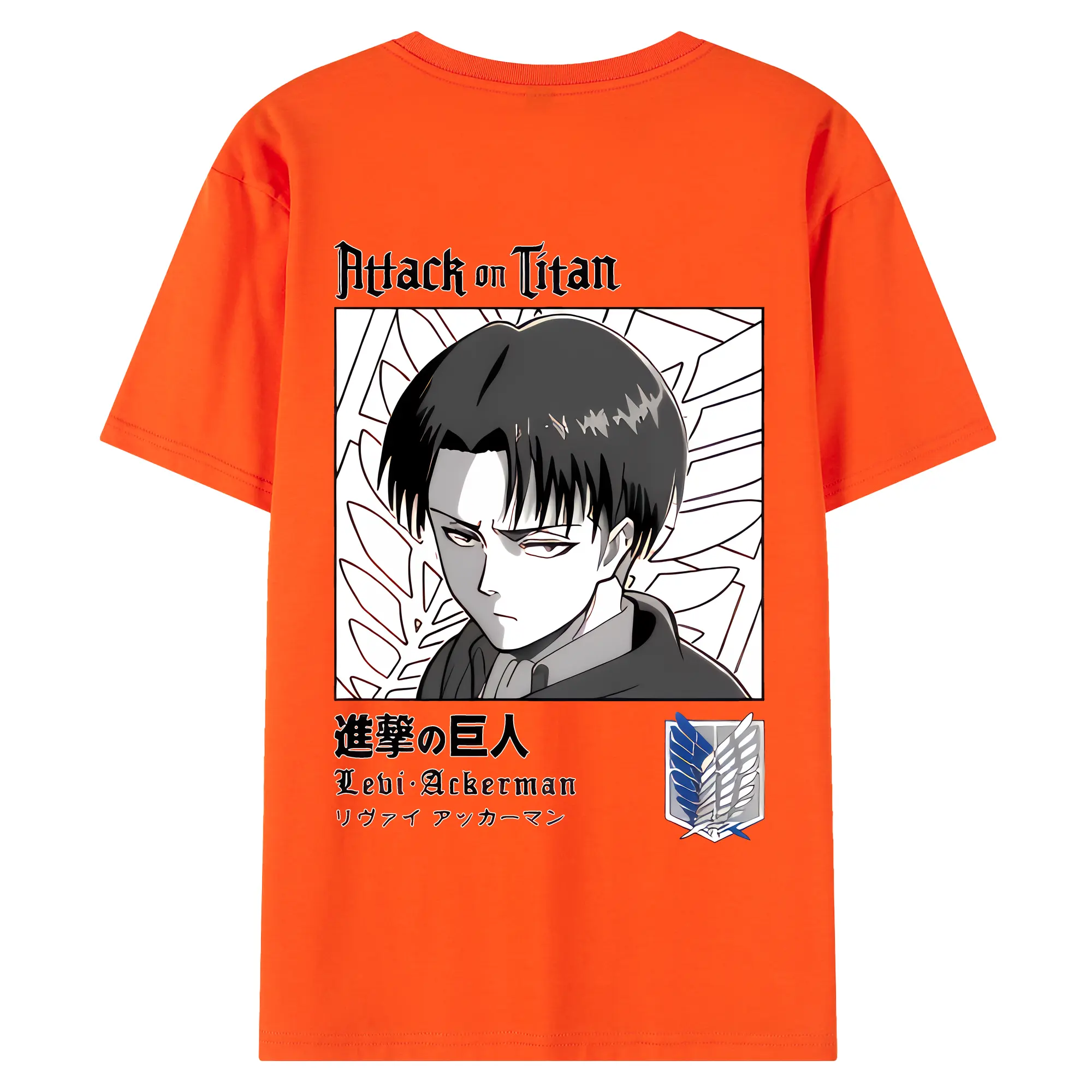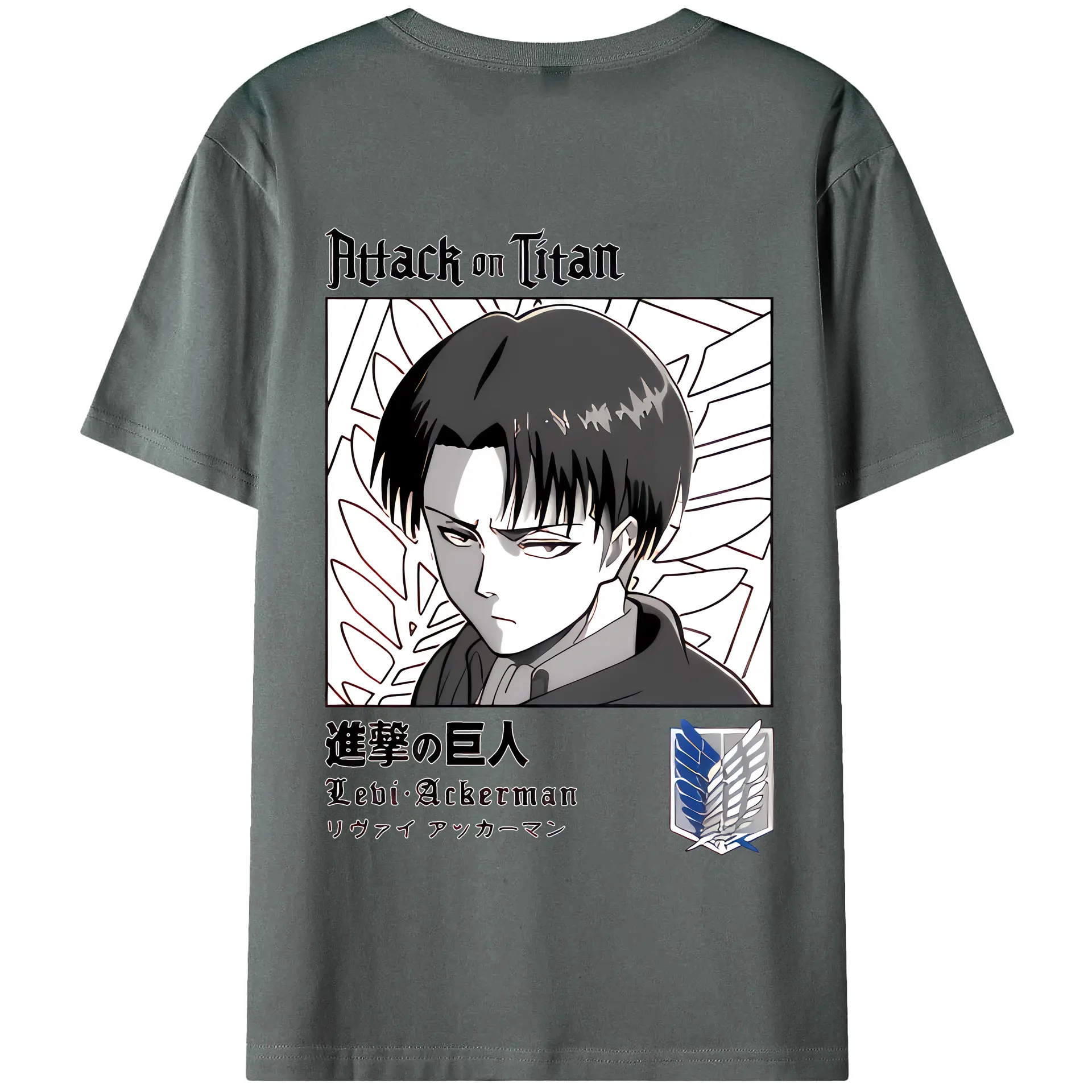 進撃の巨人 グッズ リヴァイ・アッカーマン - 綿100% ヴィンテージ風 半袖Tシャツ ・ 背面プリント ・ 柔らか肌触り ・ 通気性 快適 ・ スポーツ カジュアル 外出用