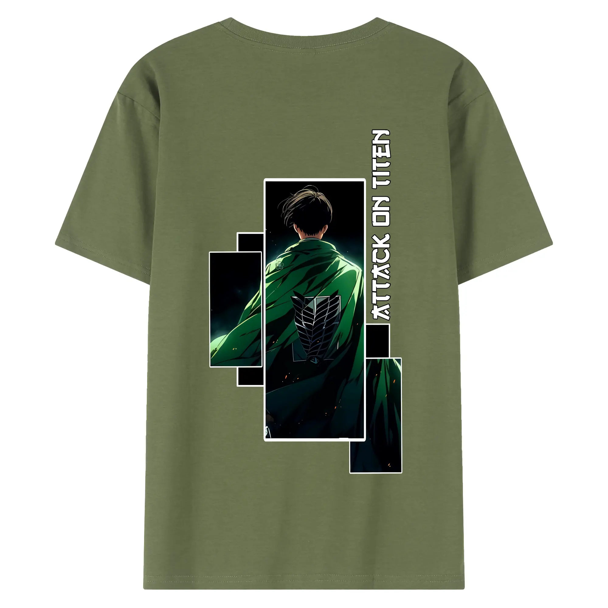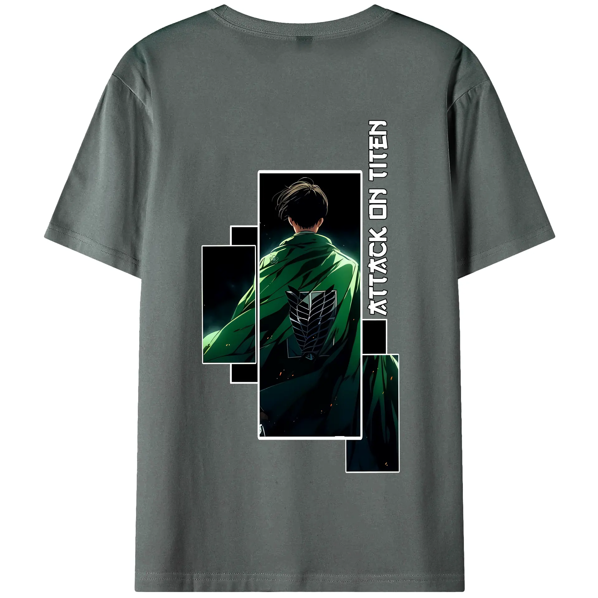 進撃の巨人 グッズ リヴァイ・アッカーマン - 綿100% ヴィンテージ風 半袖Tシャツ ・ 背面プリント ・ 柔らか肌触り ・ 通気性 快適 ・ スポーツ カジュアル 外出用