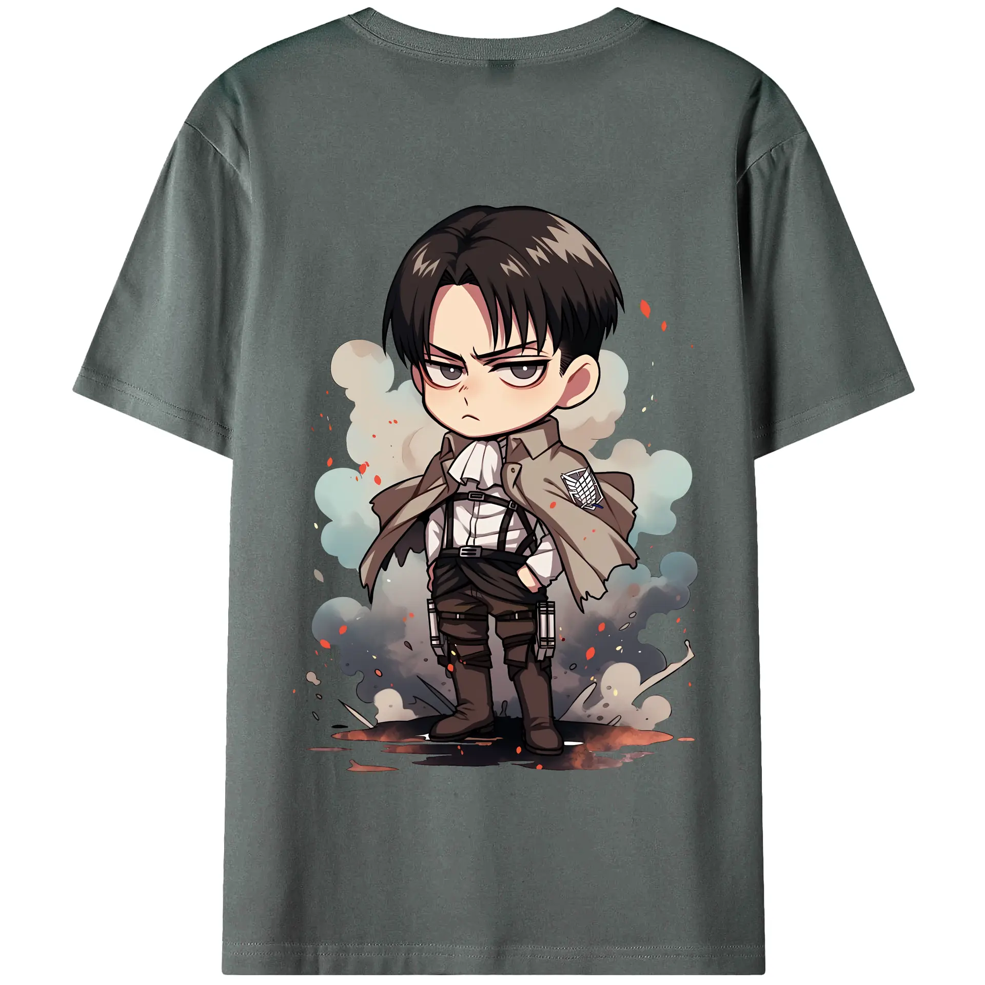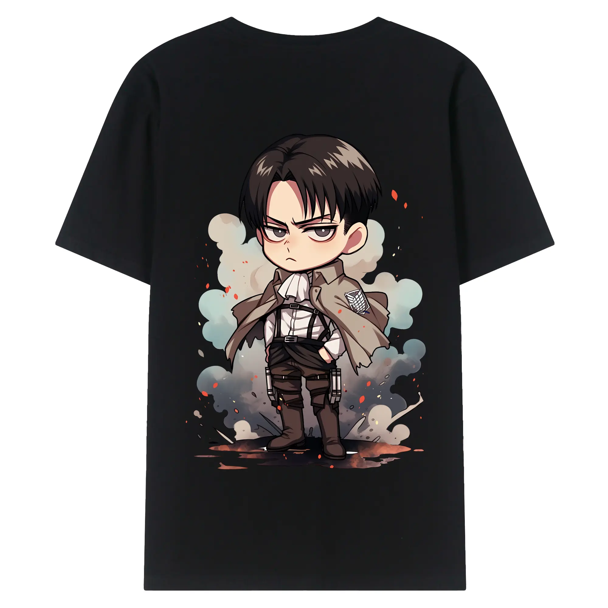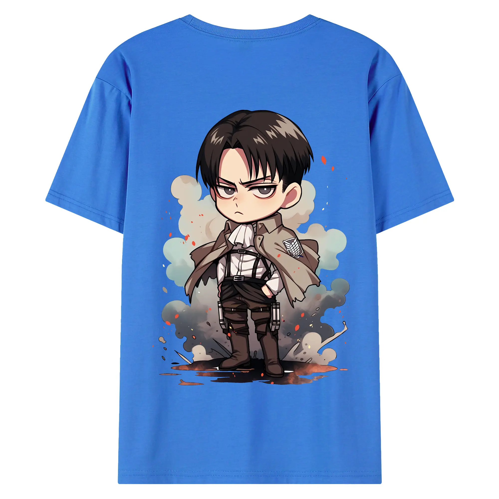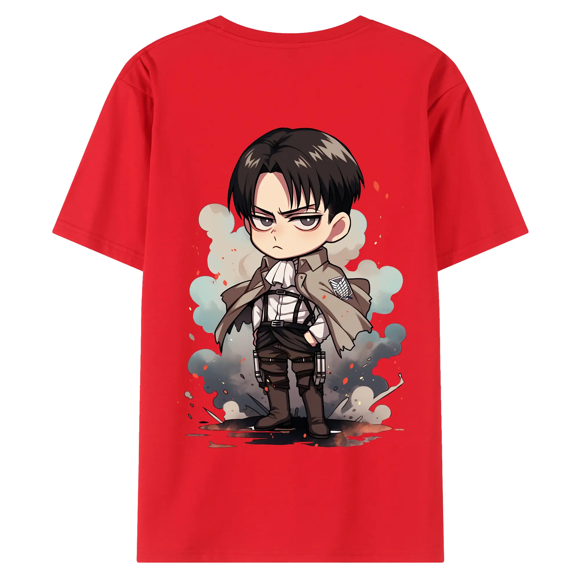 進撃の巨人 グッズ リヴァイ・アッカーマン - 綿100% 半袖Tシャツ ・ フロントプリント ・ 快適 通気性 ・ 日常使い 散歩 スポーツ用