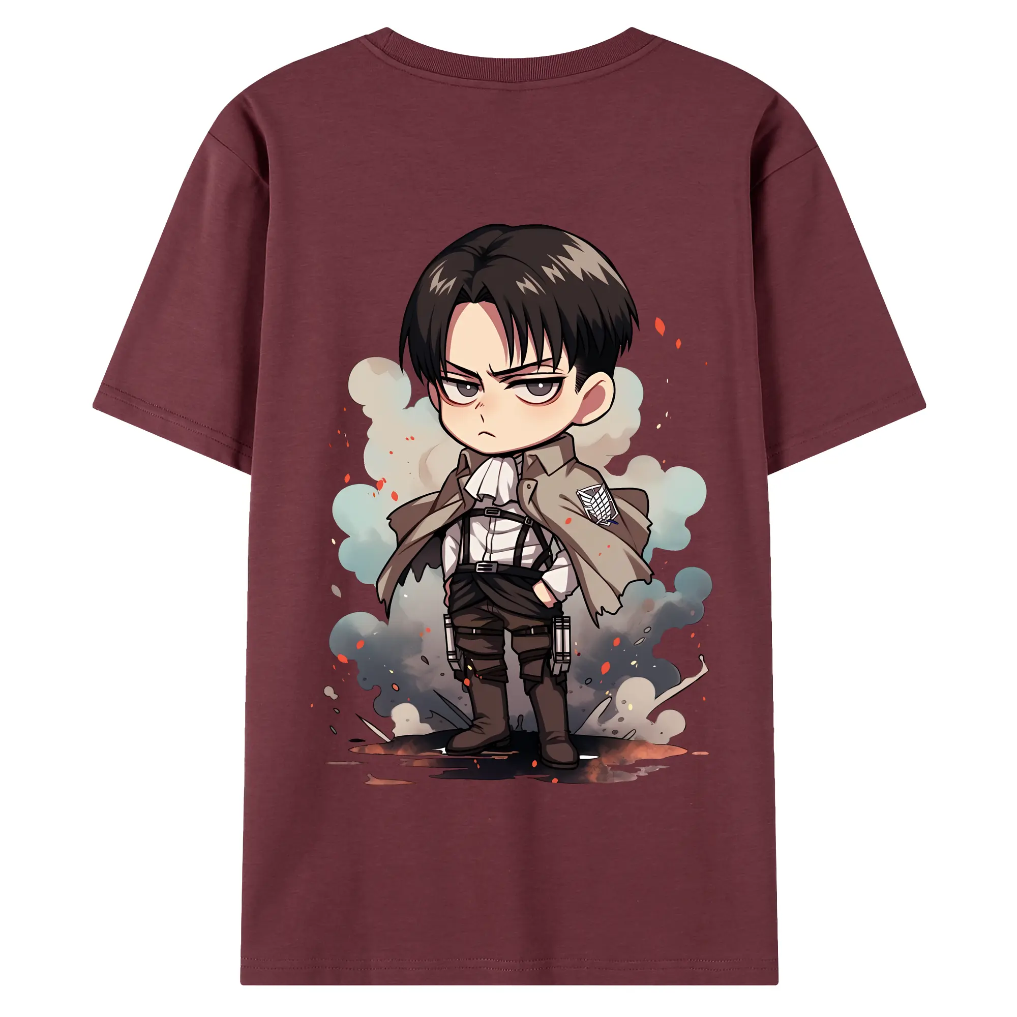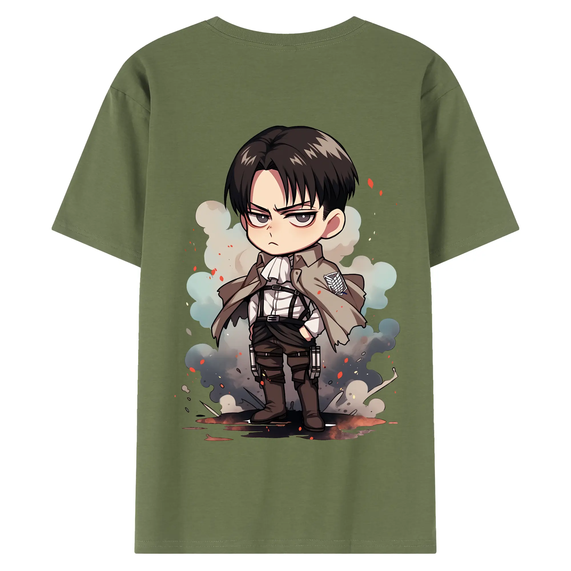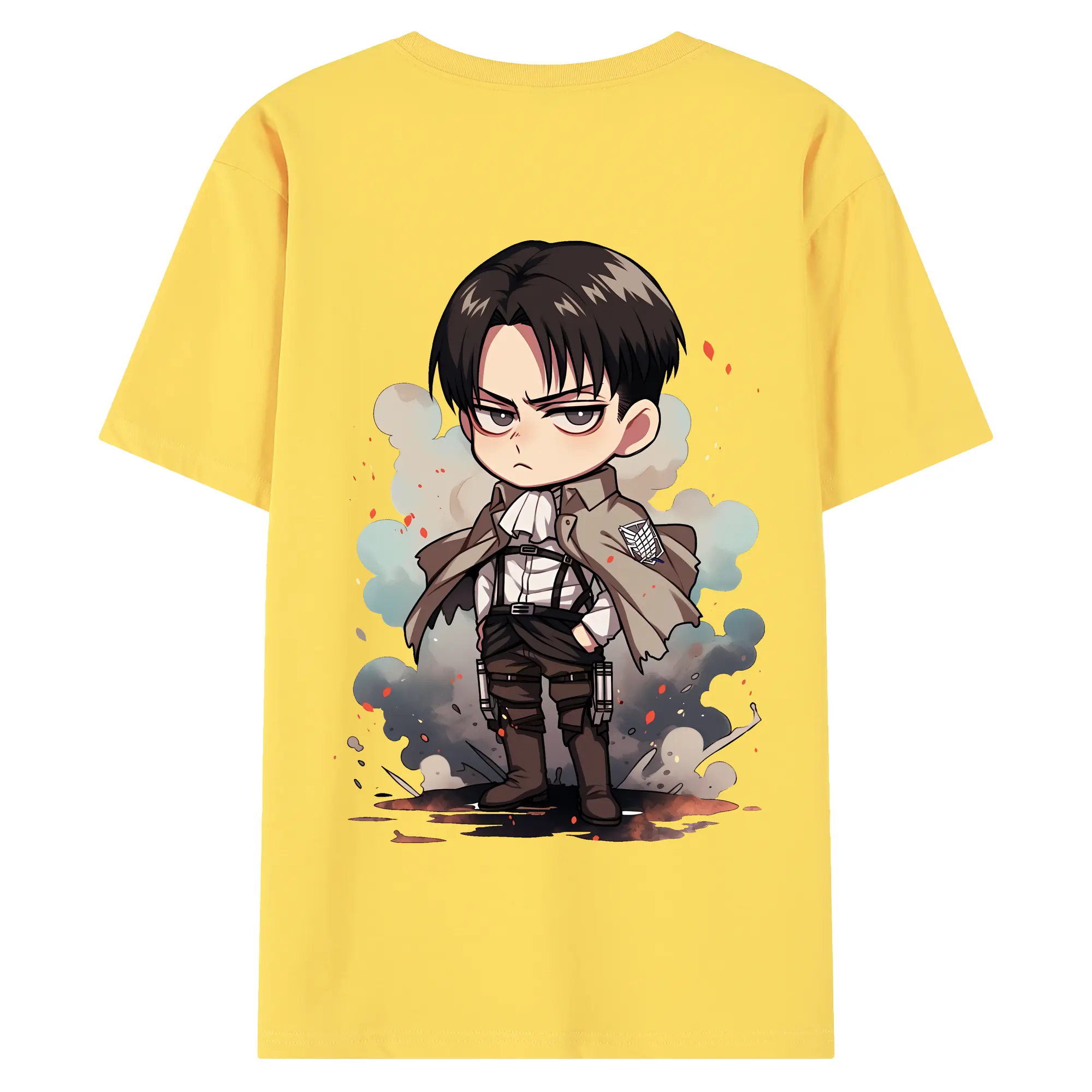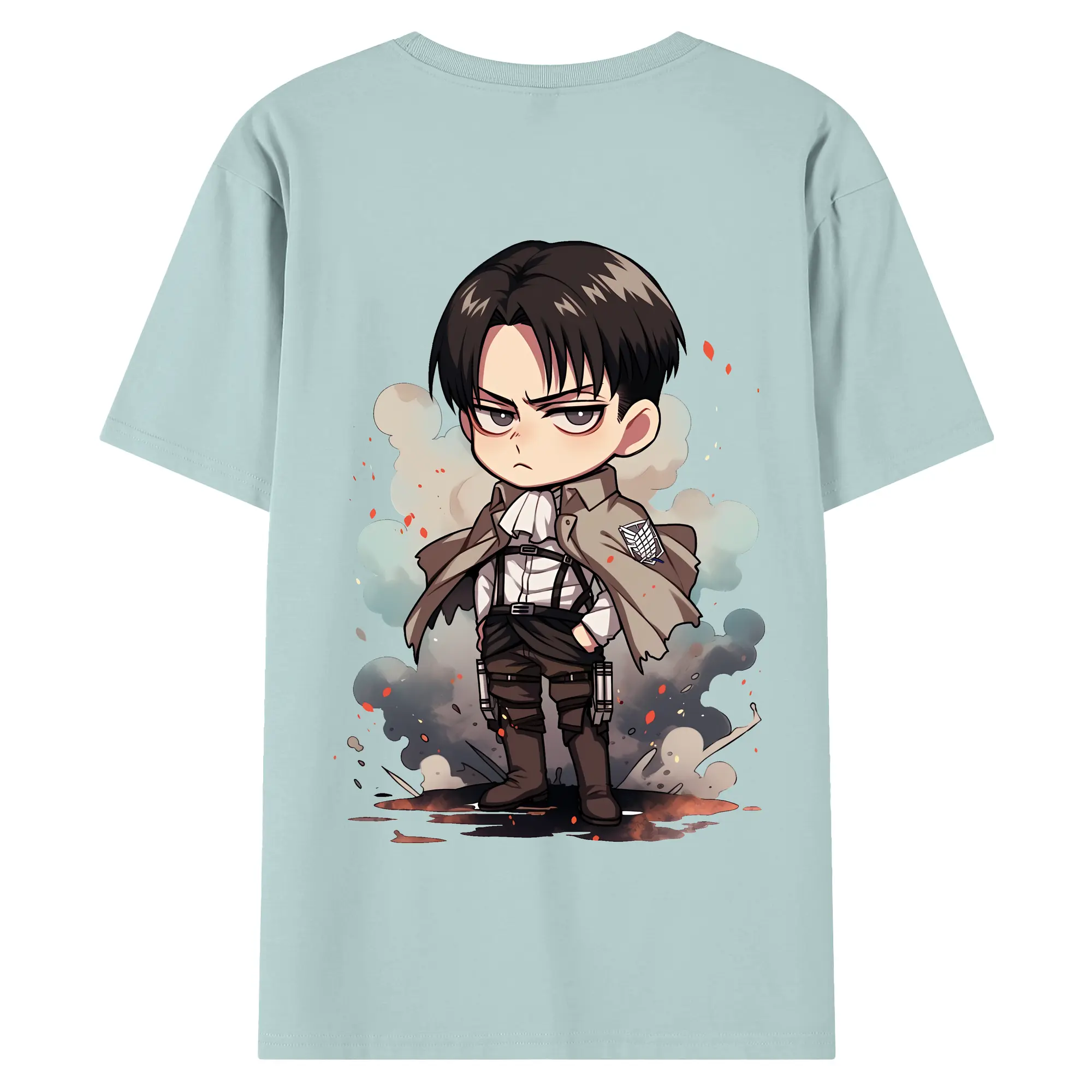 進撃の巨人 グッズ リヴァイ・アッカーマン - 綿100% 半袖Tシャツ ・ フロントプリント ・ 快適 通気性 ・ 日常使い 散歩 スポーツ用