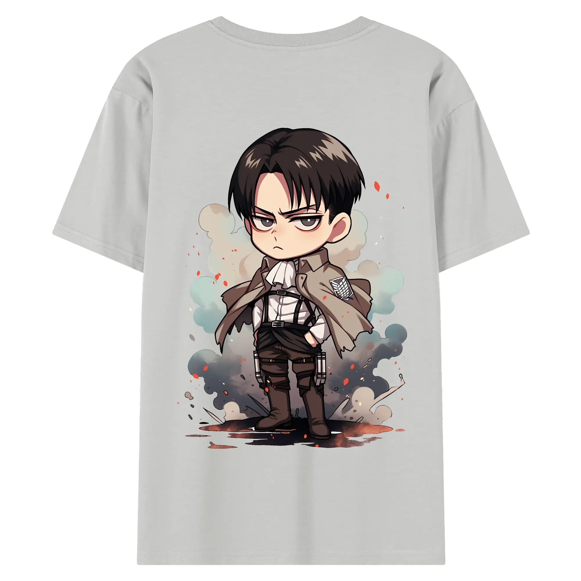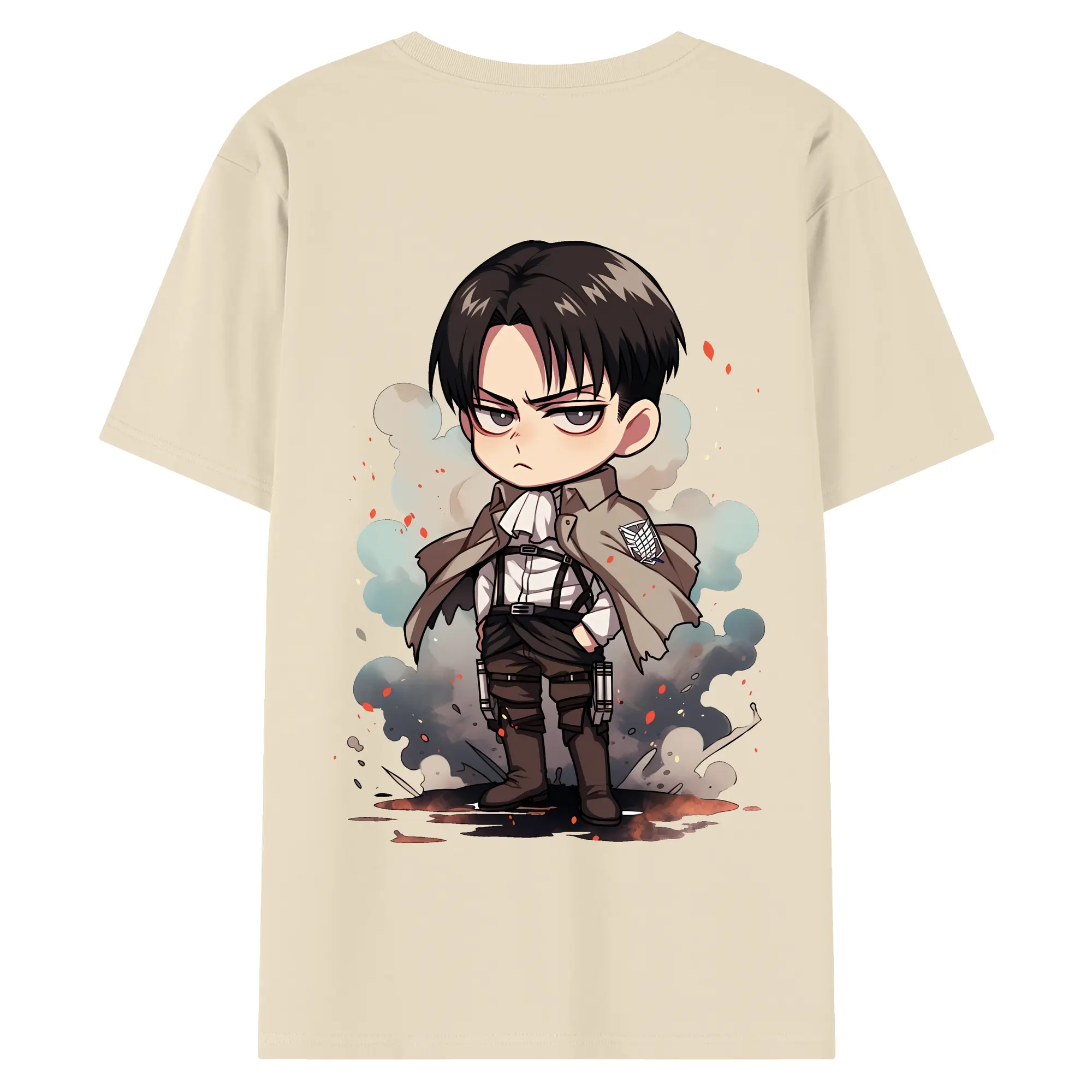 進撃の巨人 グッズ リヴァイ・アッカーマン - 綿100% ヴィンテージ風 半袖Tシャツ ・ 背面プリント ・ 柔らか肌触り ・ 通気性 快適 ・ スポーツ カジュアル 外出用