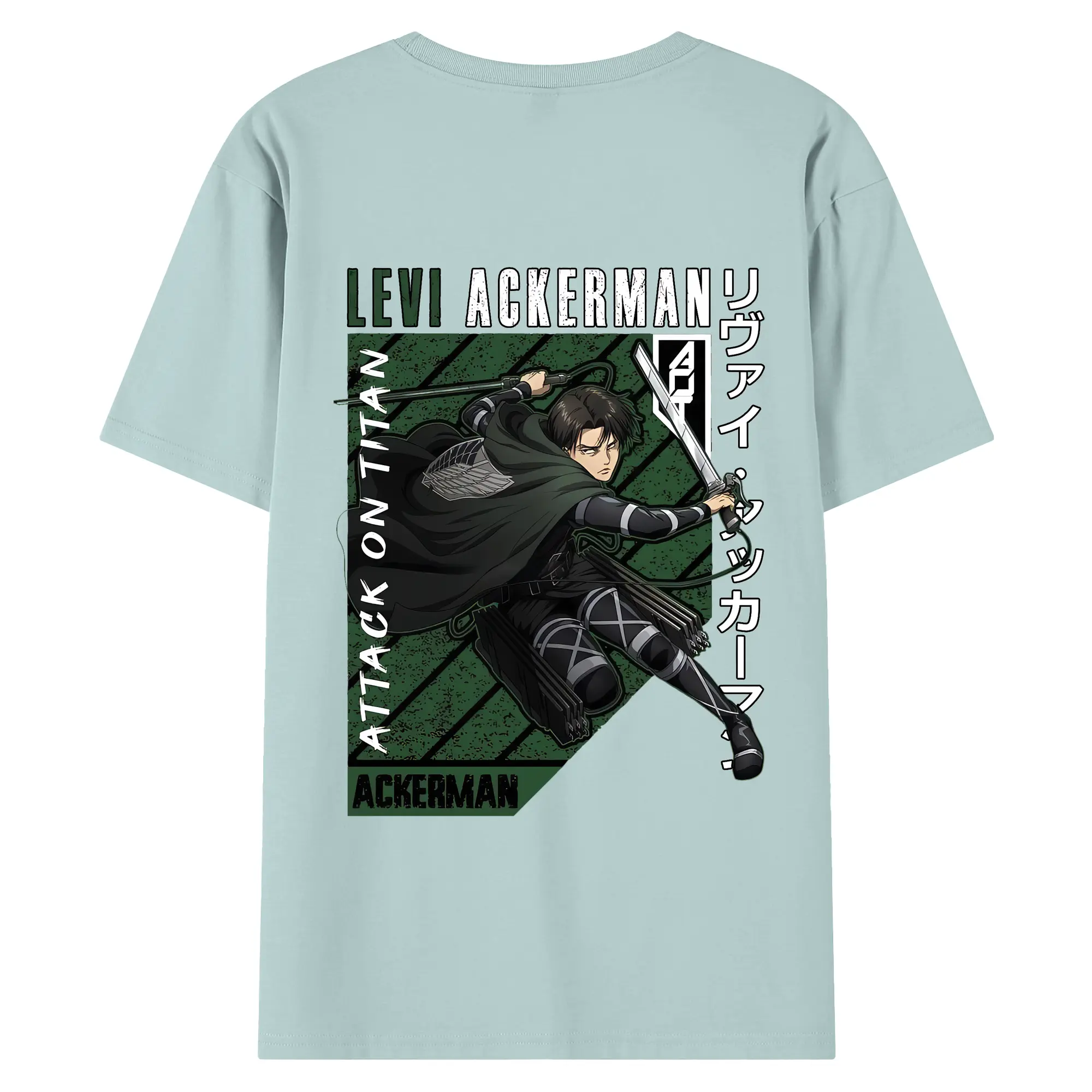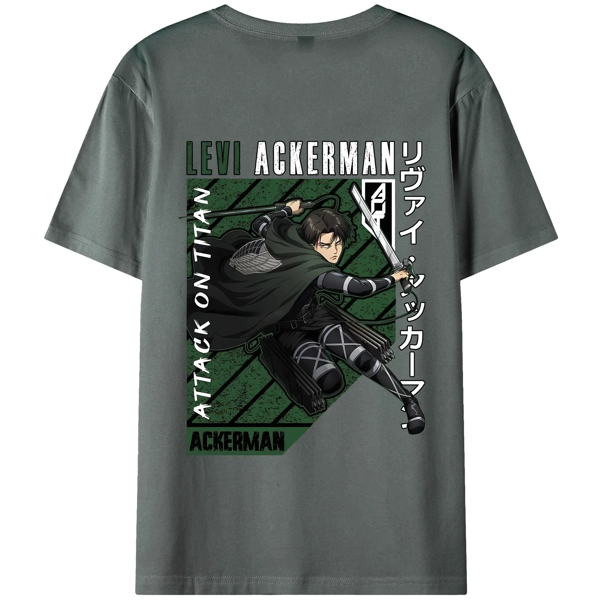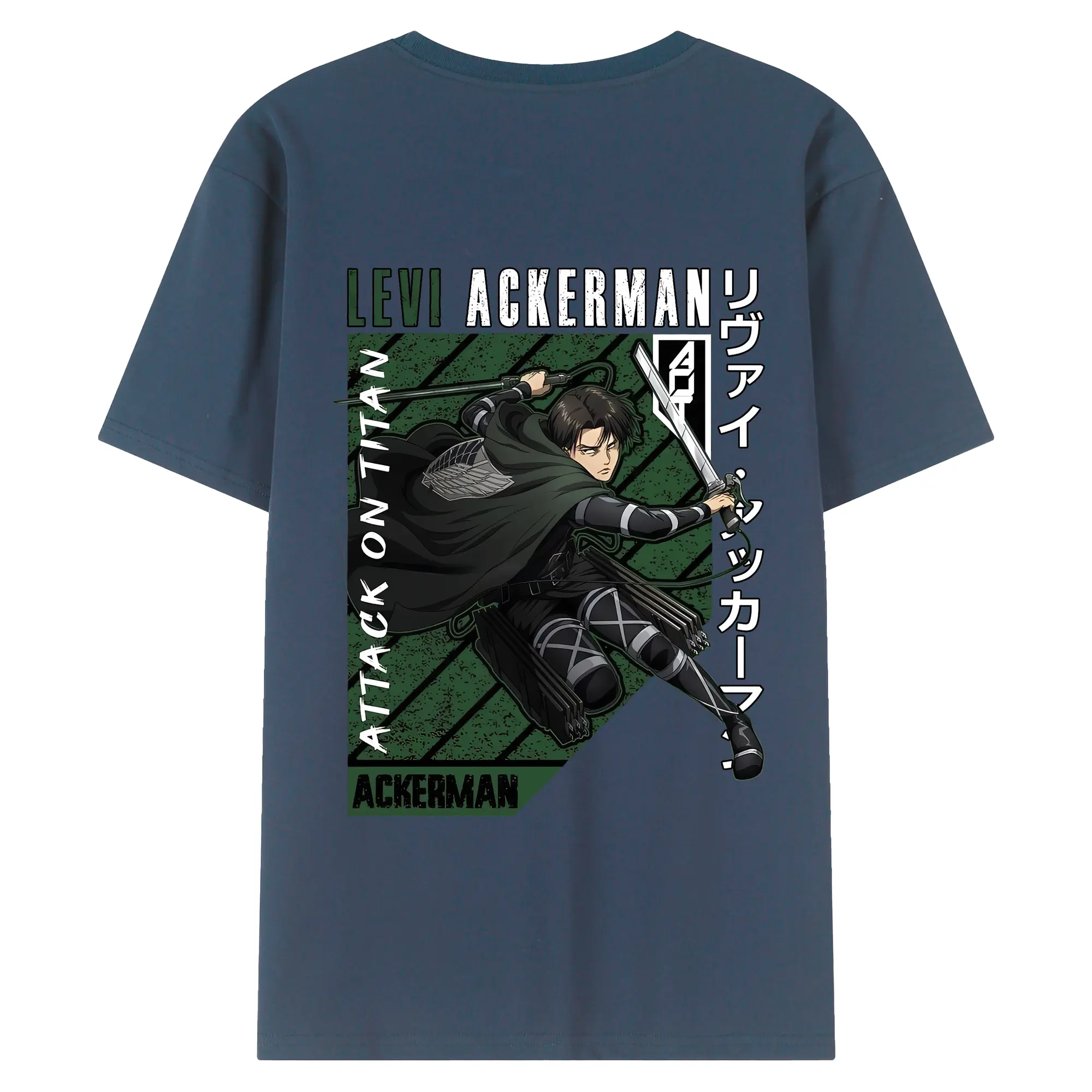 進撃の巨人 グッズ リヴァイ・アッカーマン - 綿100% ヴィンテージ風 半袖Tシャツ ・ 背面プリント ・ 柔らか肌触り ・ 通気性 快適 ・ スポーツ カジュアル 外出用