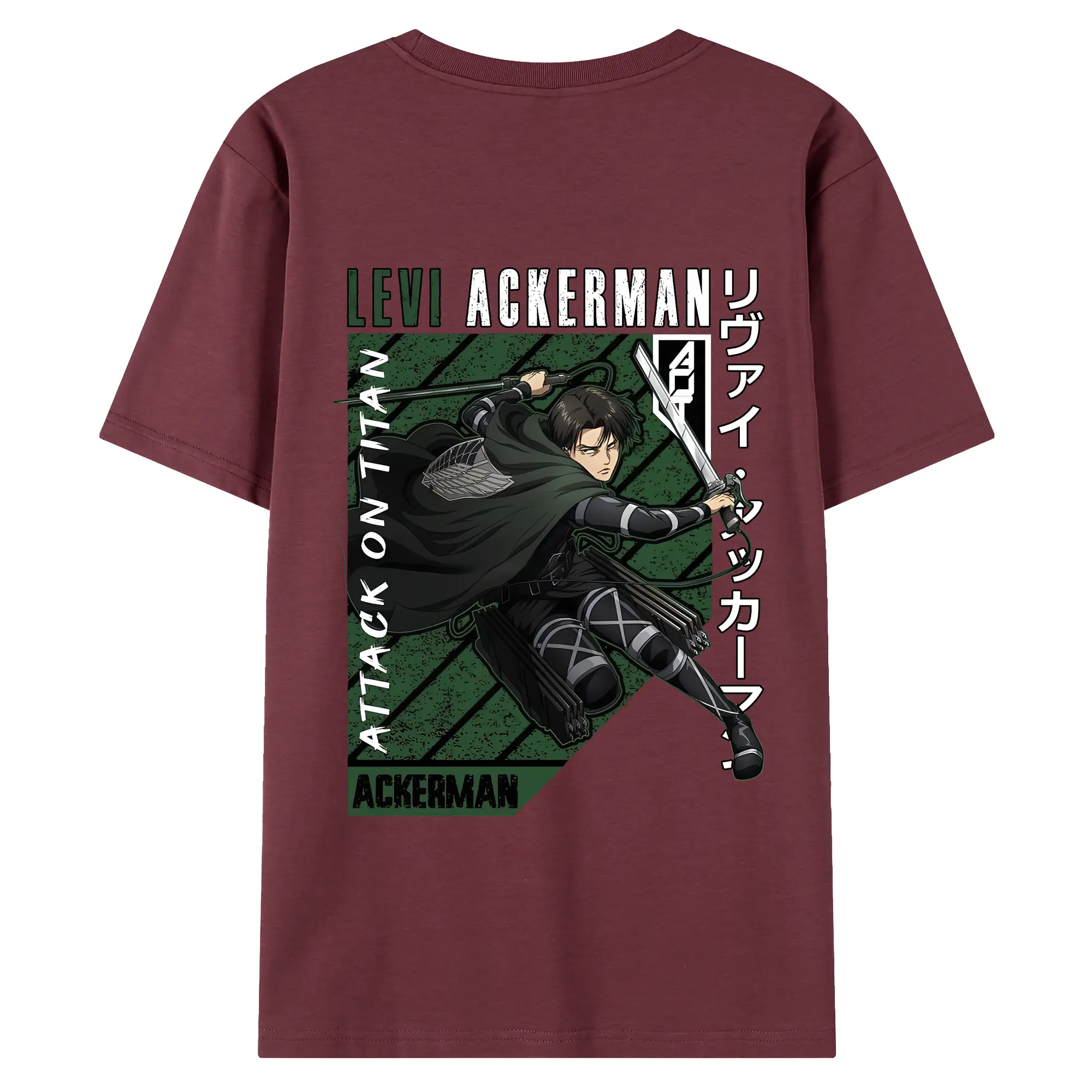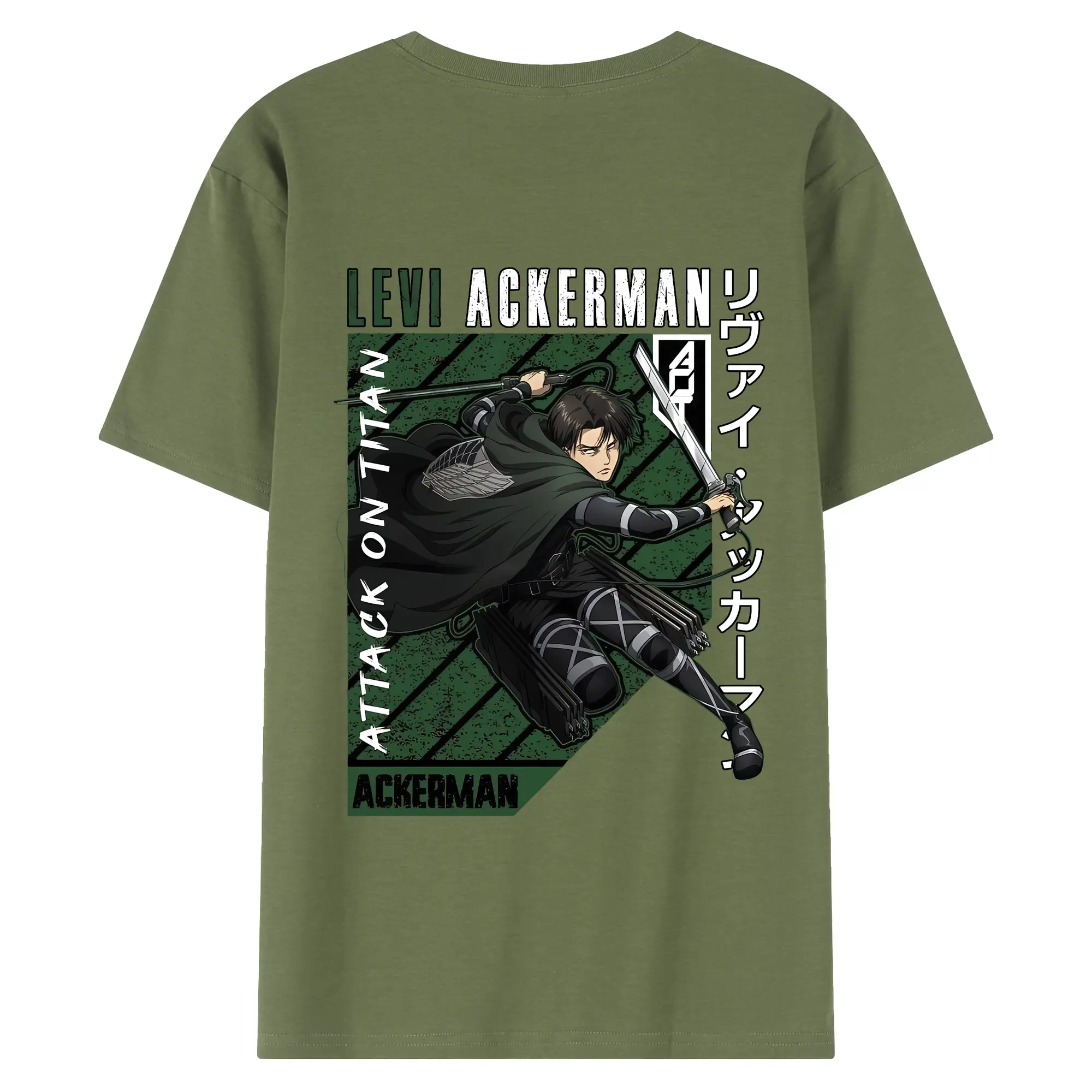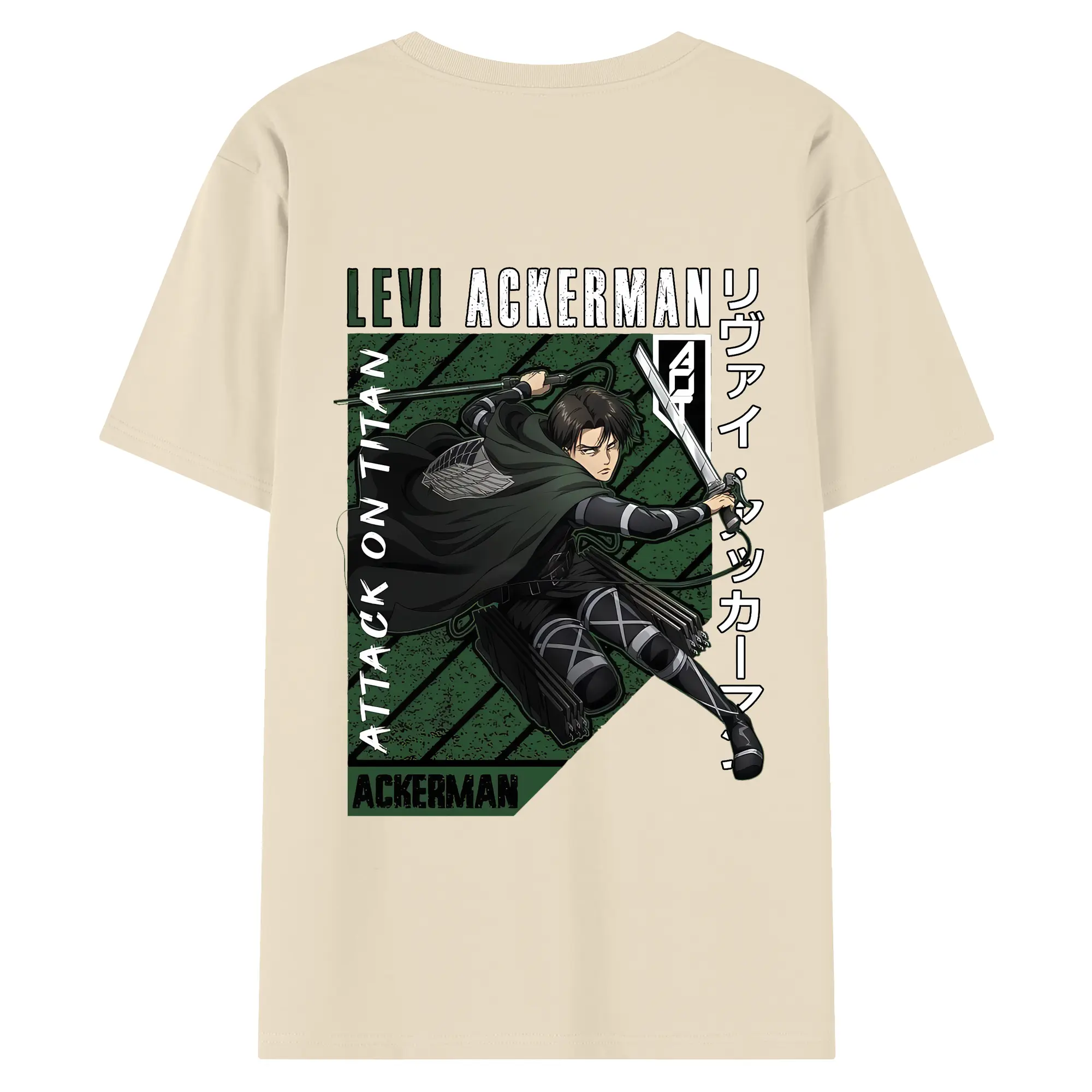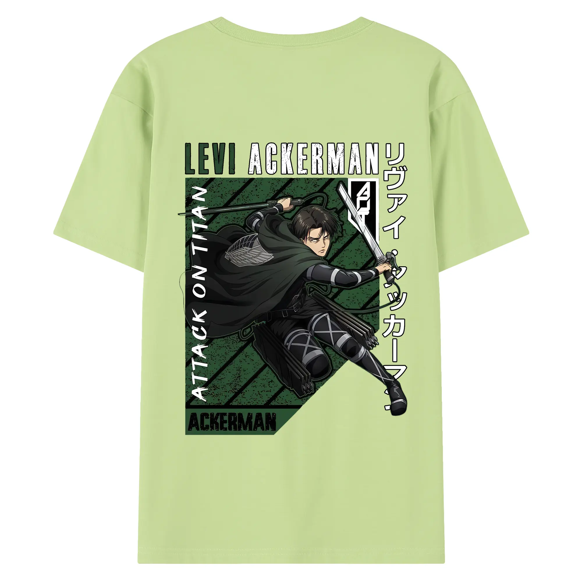 進撃の巨人 グッズ リヴァイ・アッカーマン - 綿100% ヴィンテージ風 半袖Tシャツ ・ 背面プリント ・ 柔らか肌触り ・ 通気性 快適 ・ スポーツ カジュアル 外出用