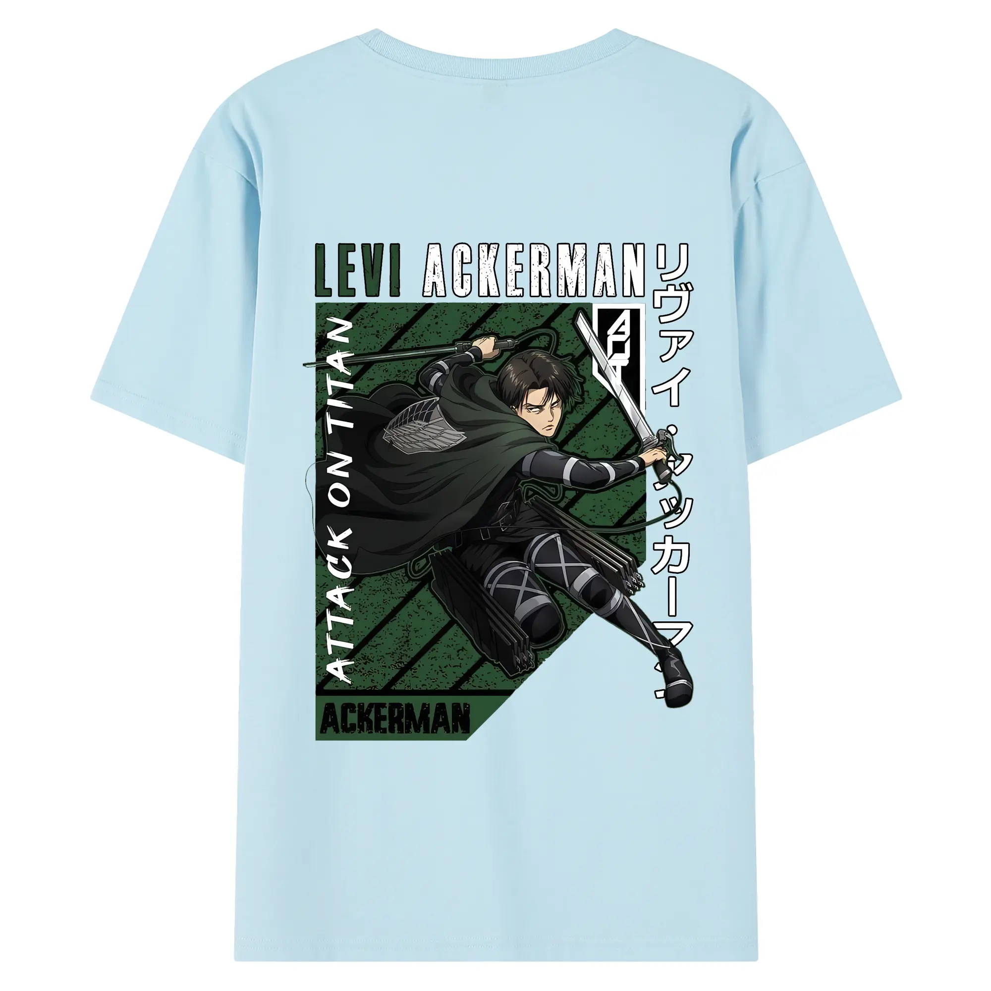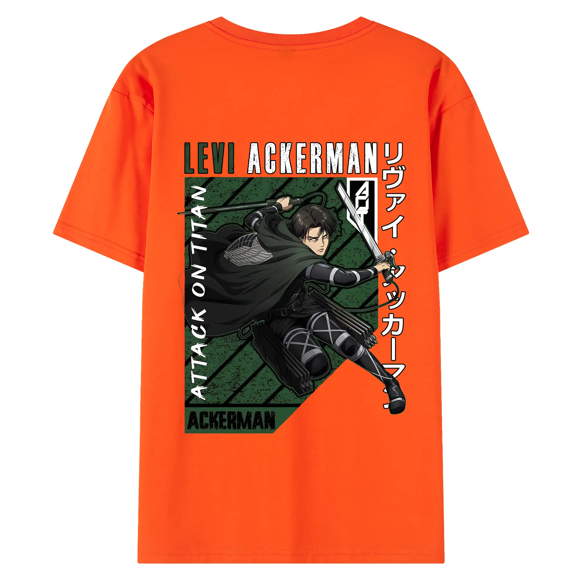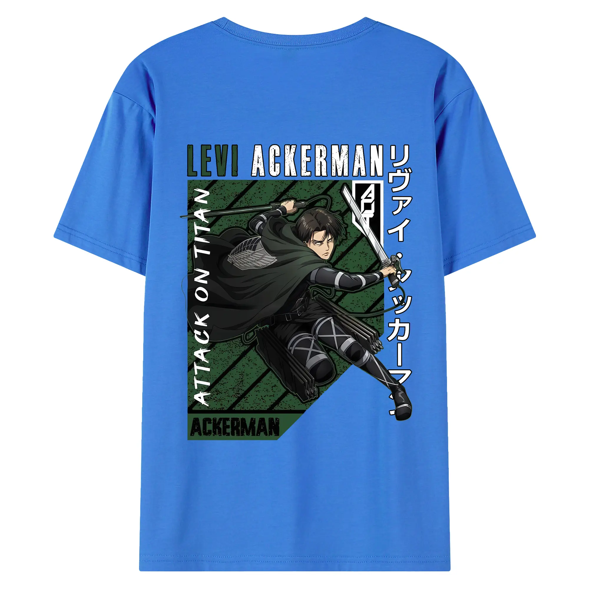 進撃の巨人 グッズ リヴァイ・アッカーマン - 綿100% 半袖Tシャツ ・ フロントプリント ・ 快適 通気性 ・ 日常使い 散歩 スポーツ用