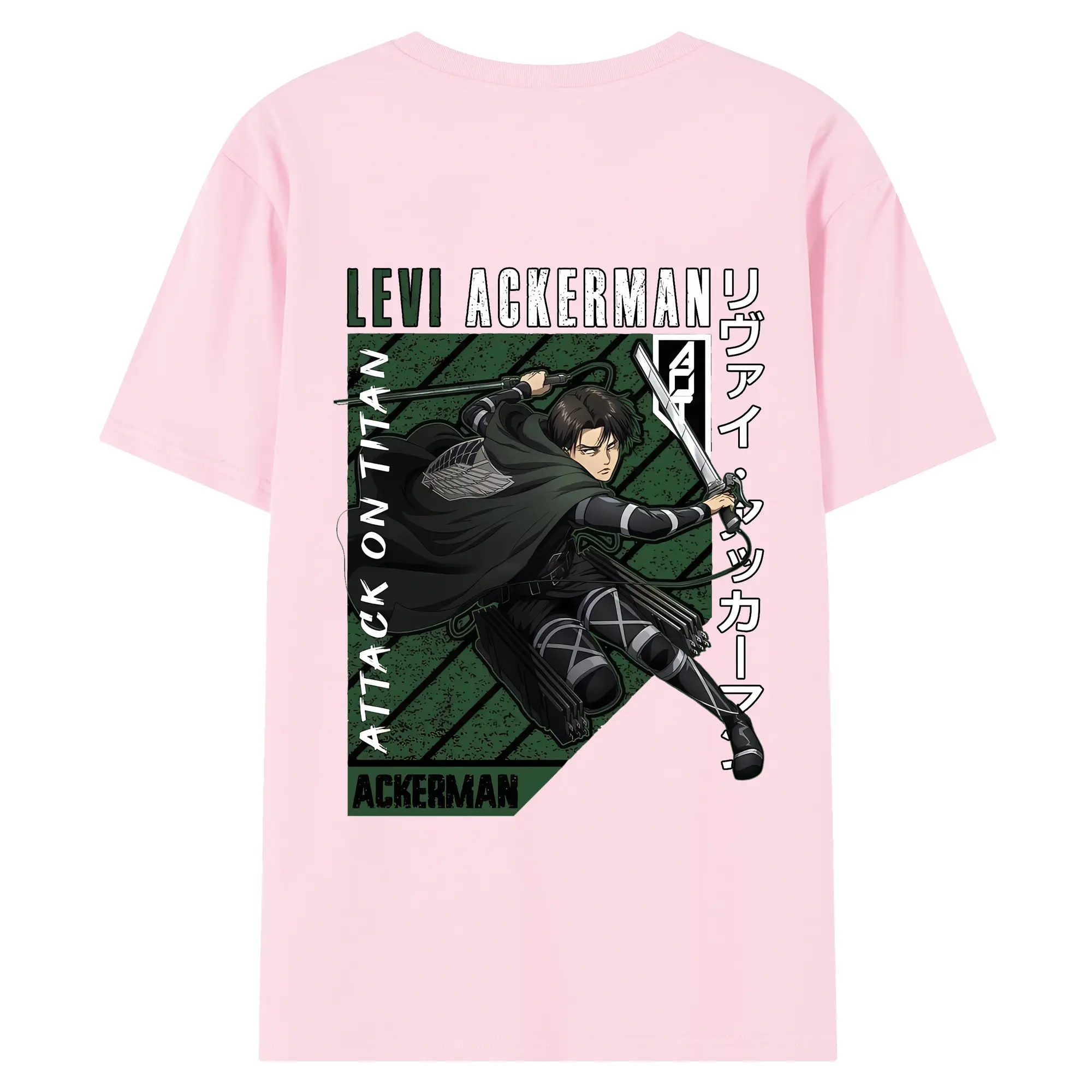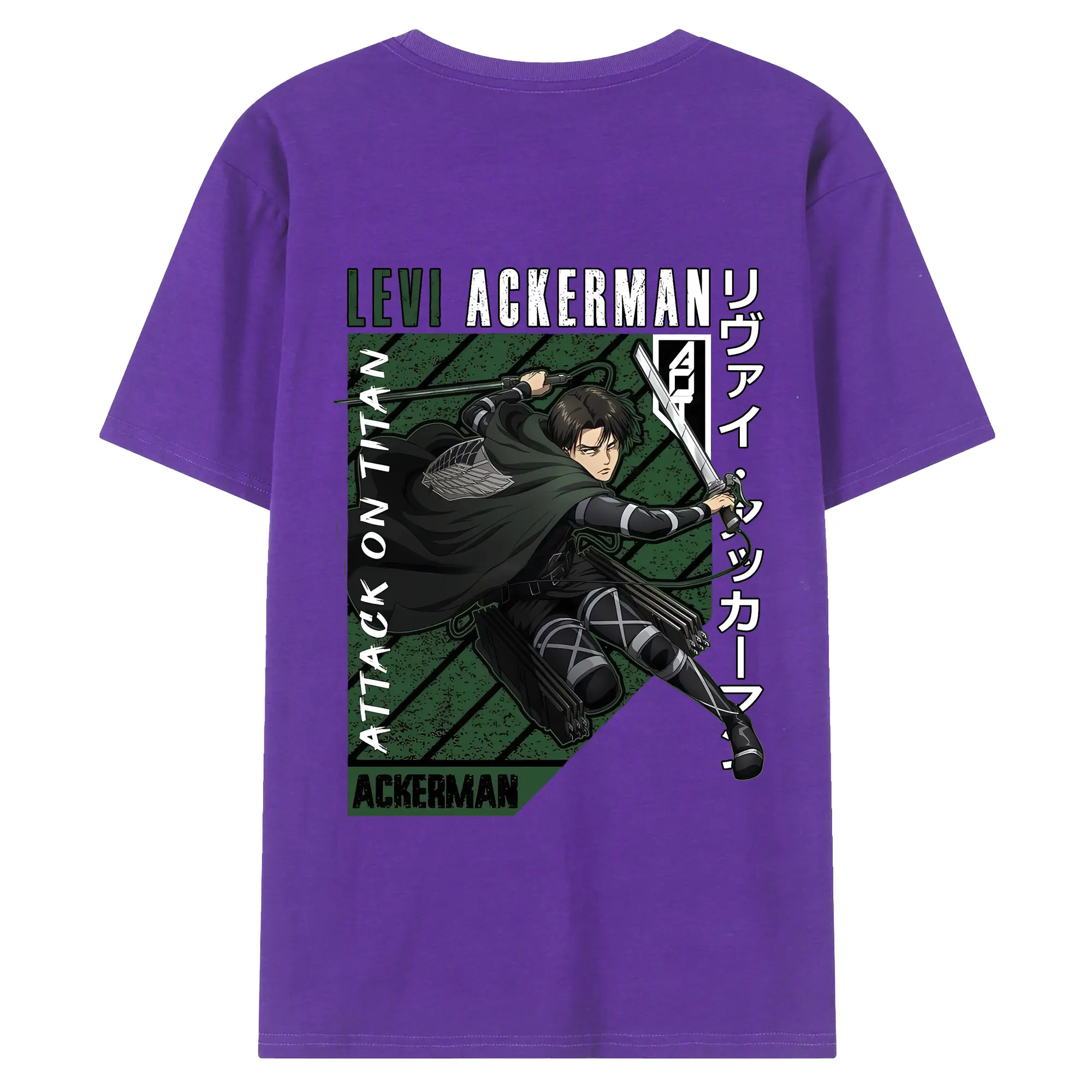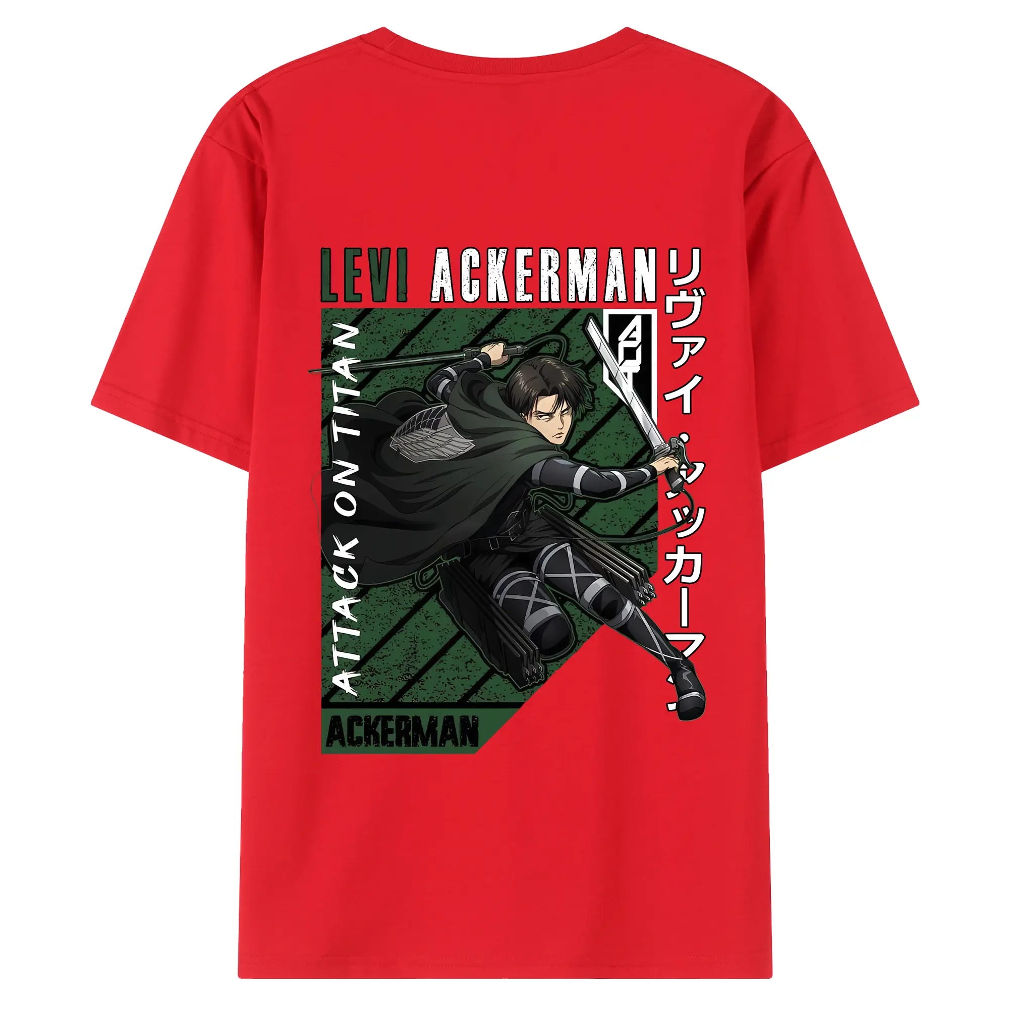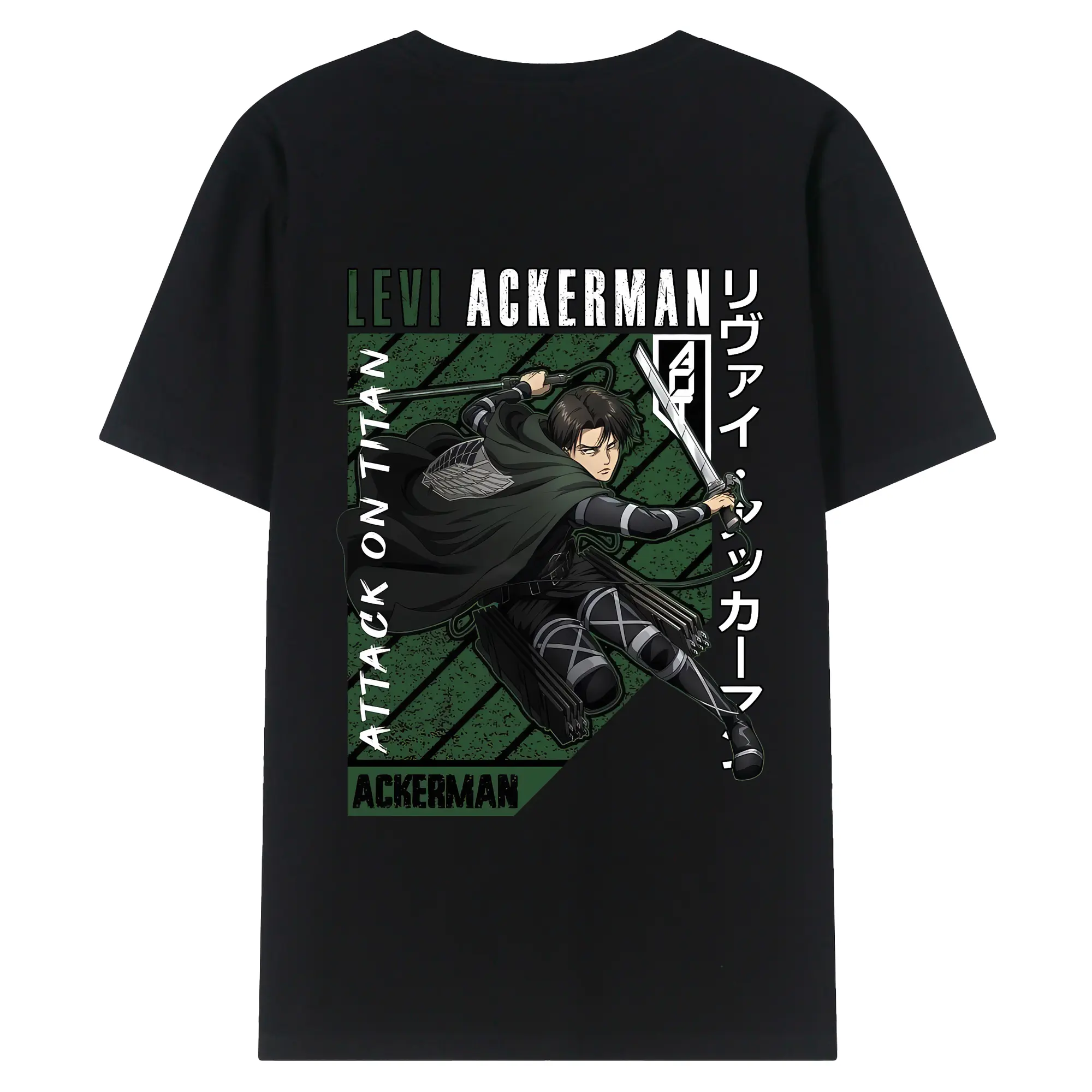 進撃の巨人 グッズ リヴァイ・アッカーマン - 綿100% 半袖Tシャツ ・ フロントプリント ・ 快適 通気性 ・ 日常使い 散歩 スポーツ用