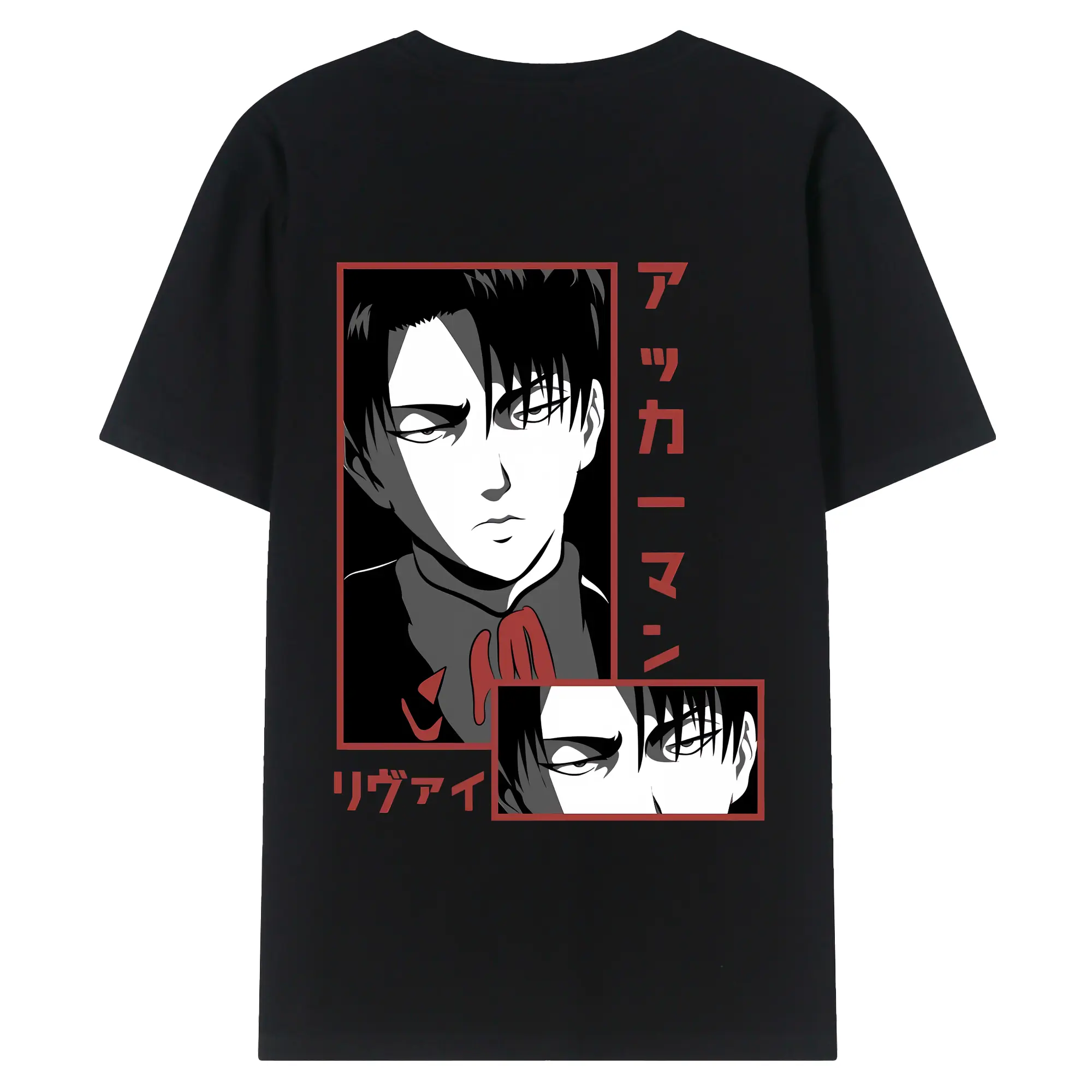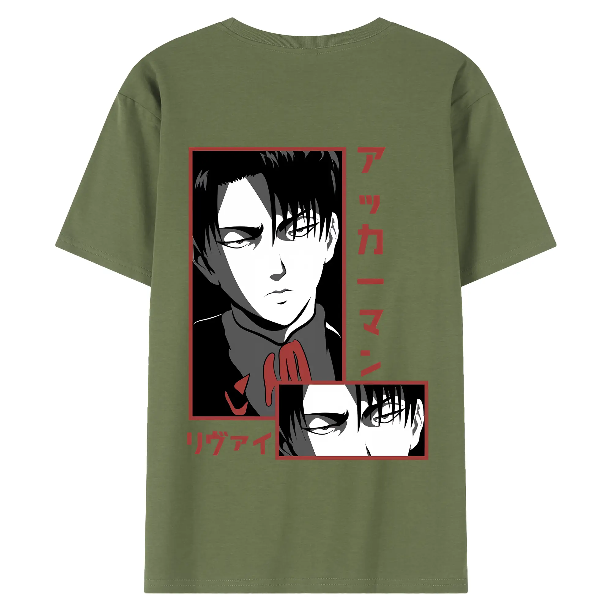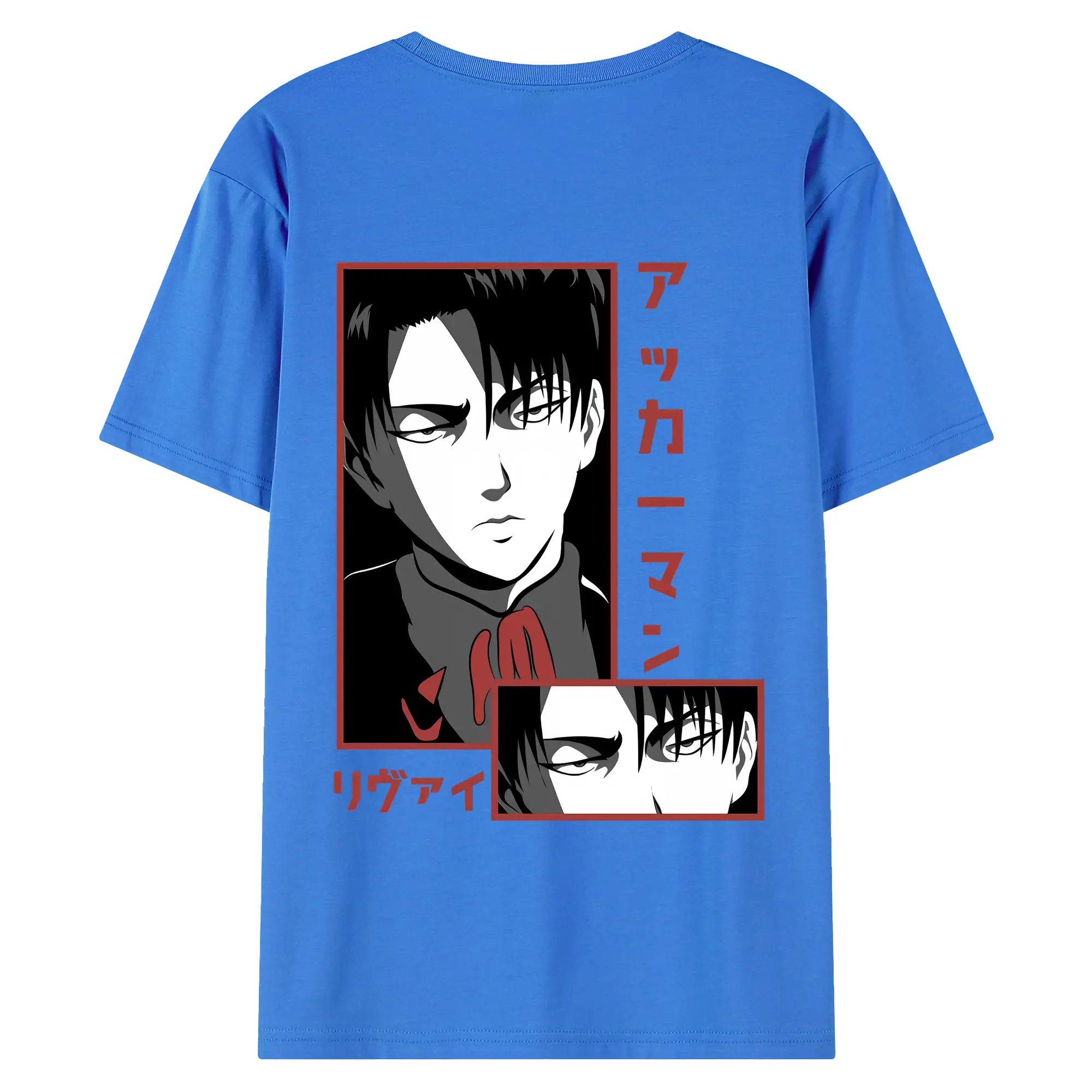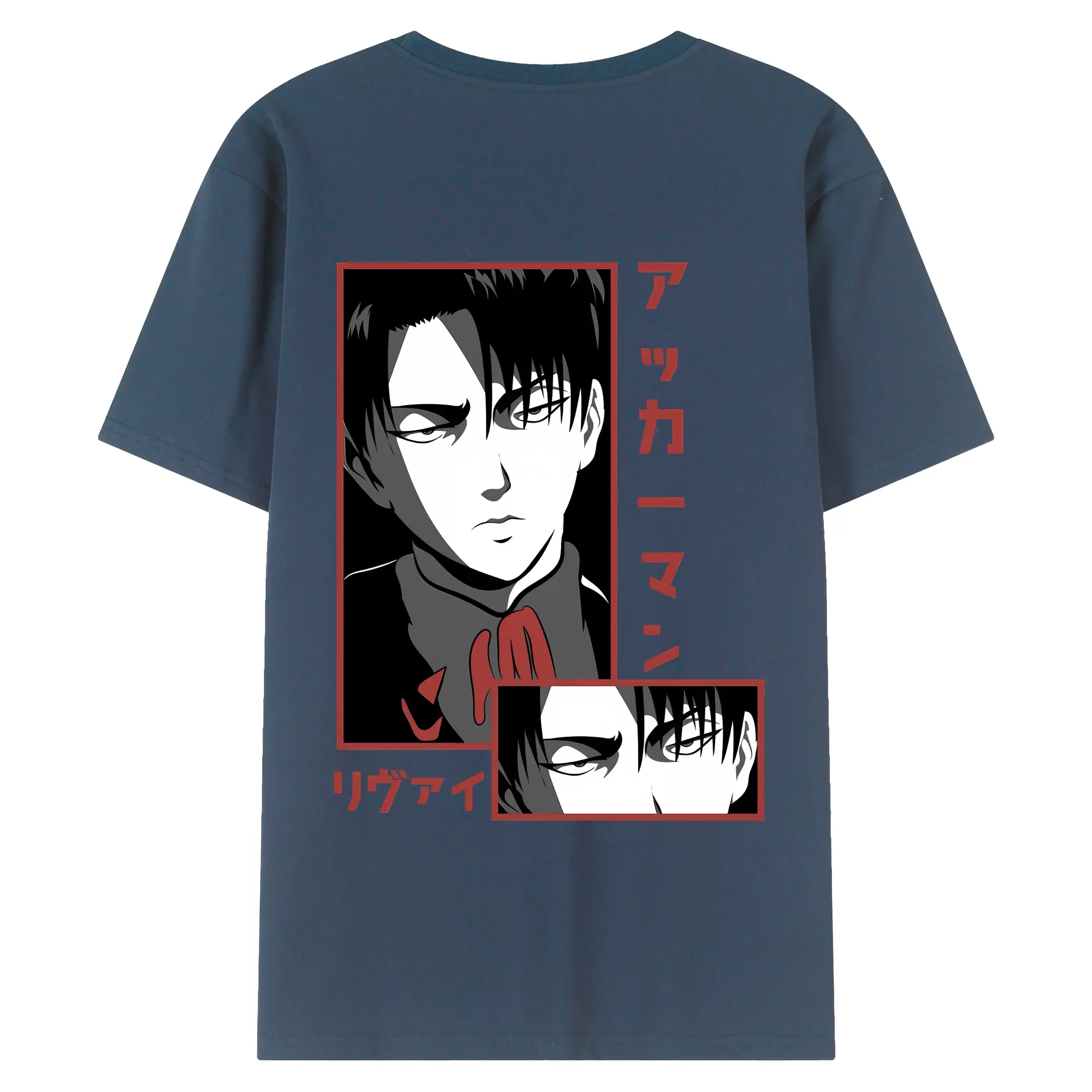 進撃の巨人 グッズ リヴァイ・アッカーマン - 綿100% 半袖Tシャツ ・ フロントプリント ・ 快適 通気性 ・ 日常使い 散歩 スポーツ用